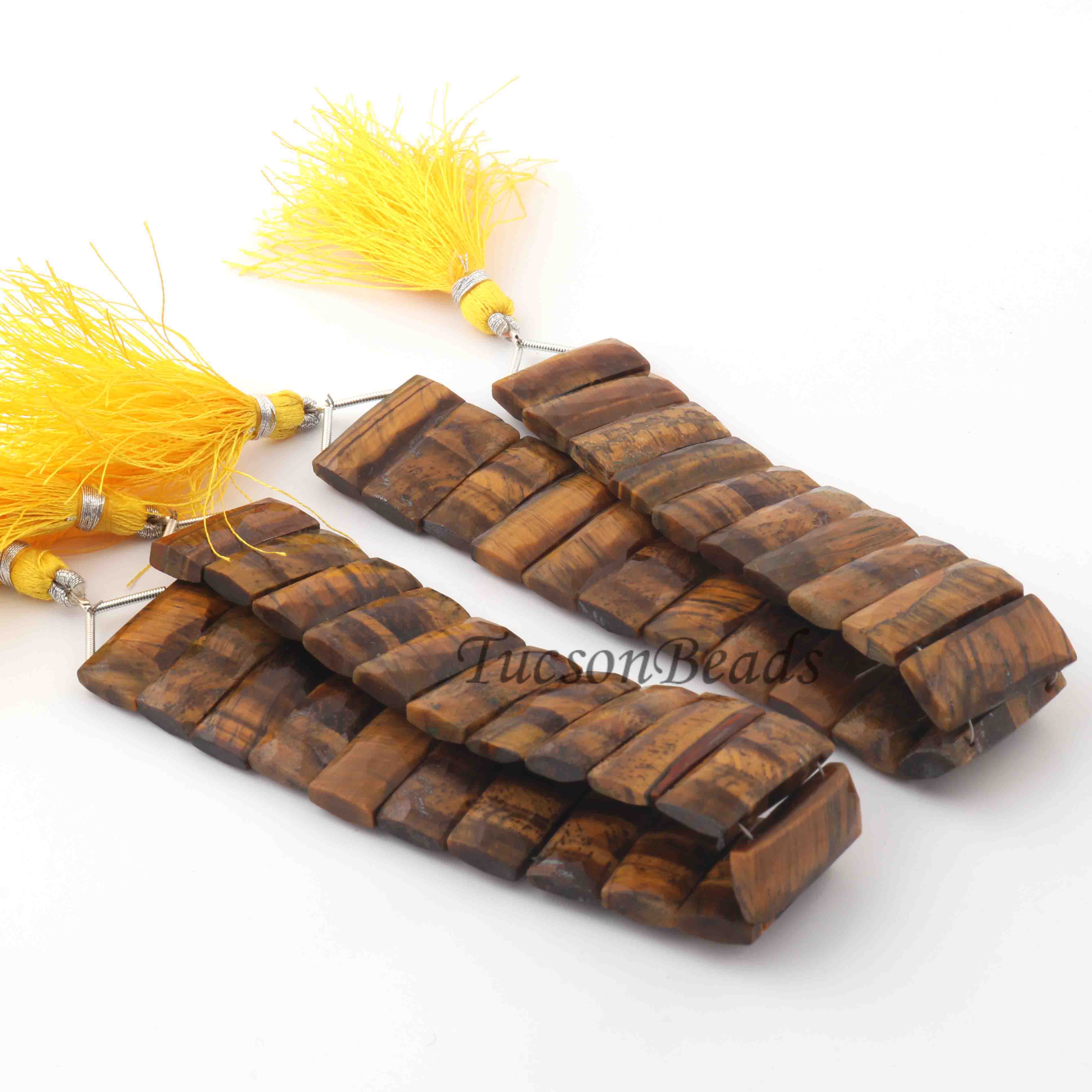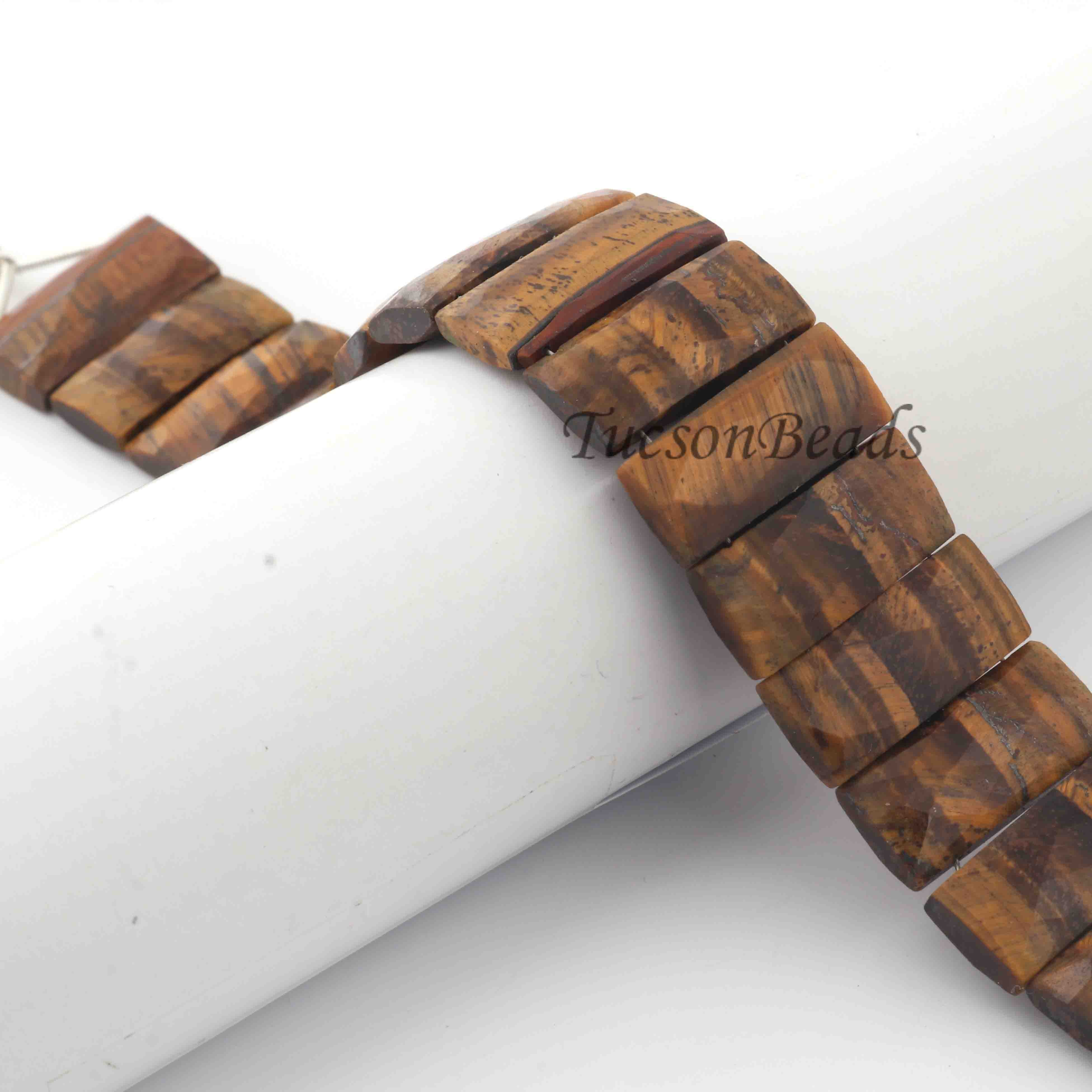1 Strand Brown Tiger Eye Fancy Chicklet shape Beads - Brown Tiger Eye Faceted Rectangle Beads 21mmx10mm 8 Inches BR2311
