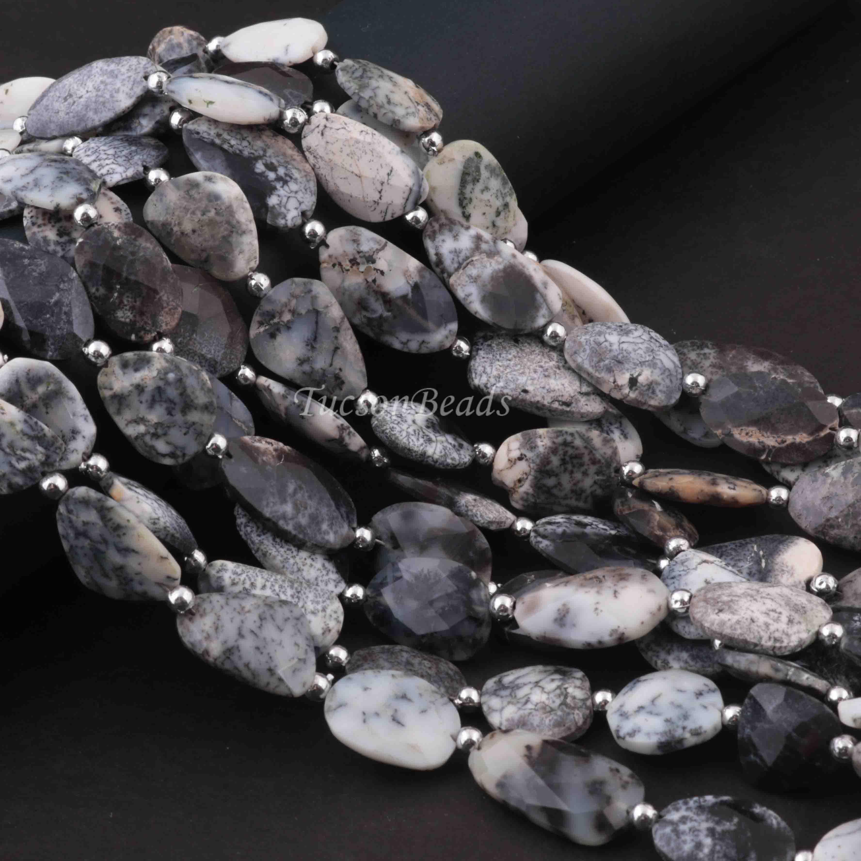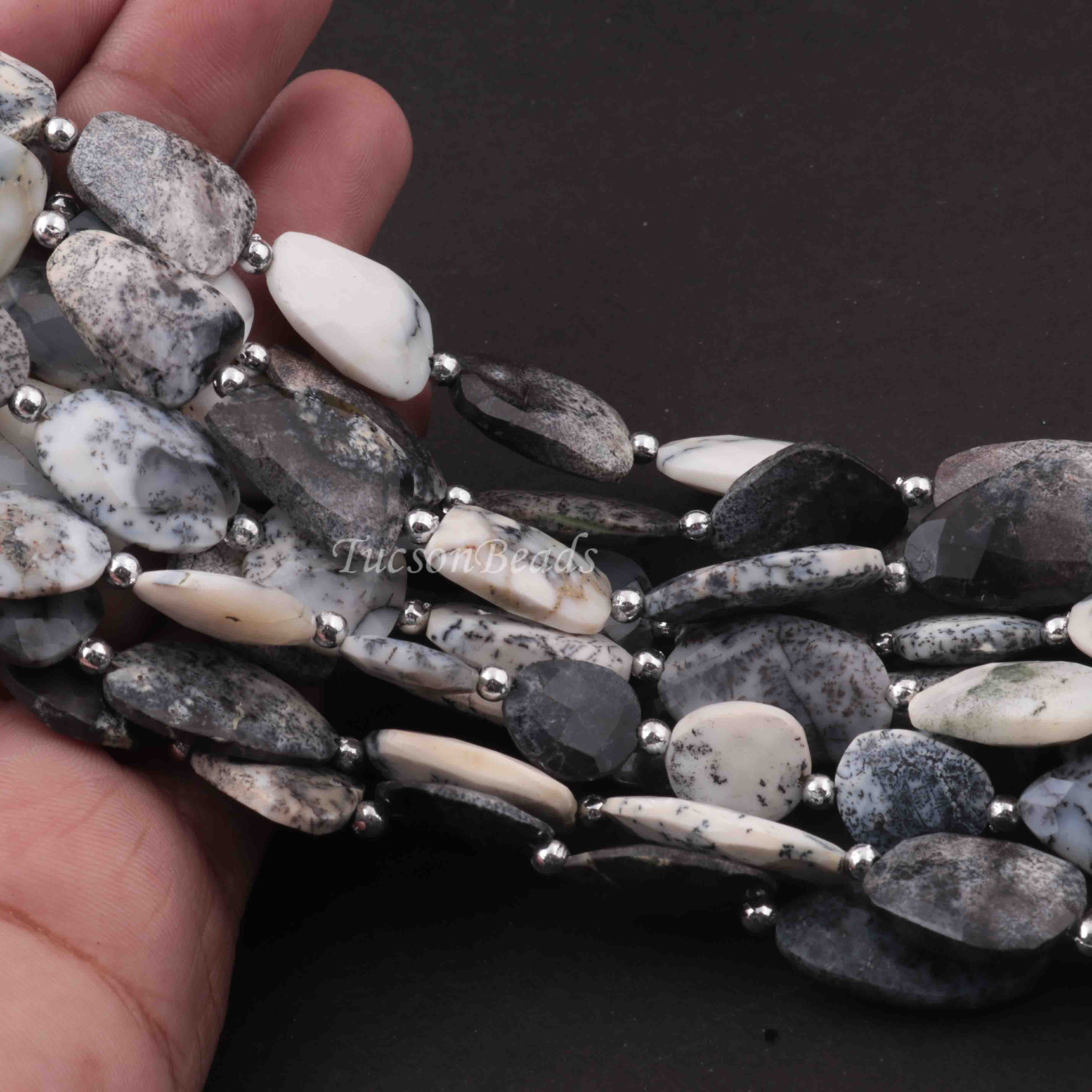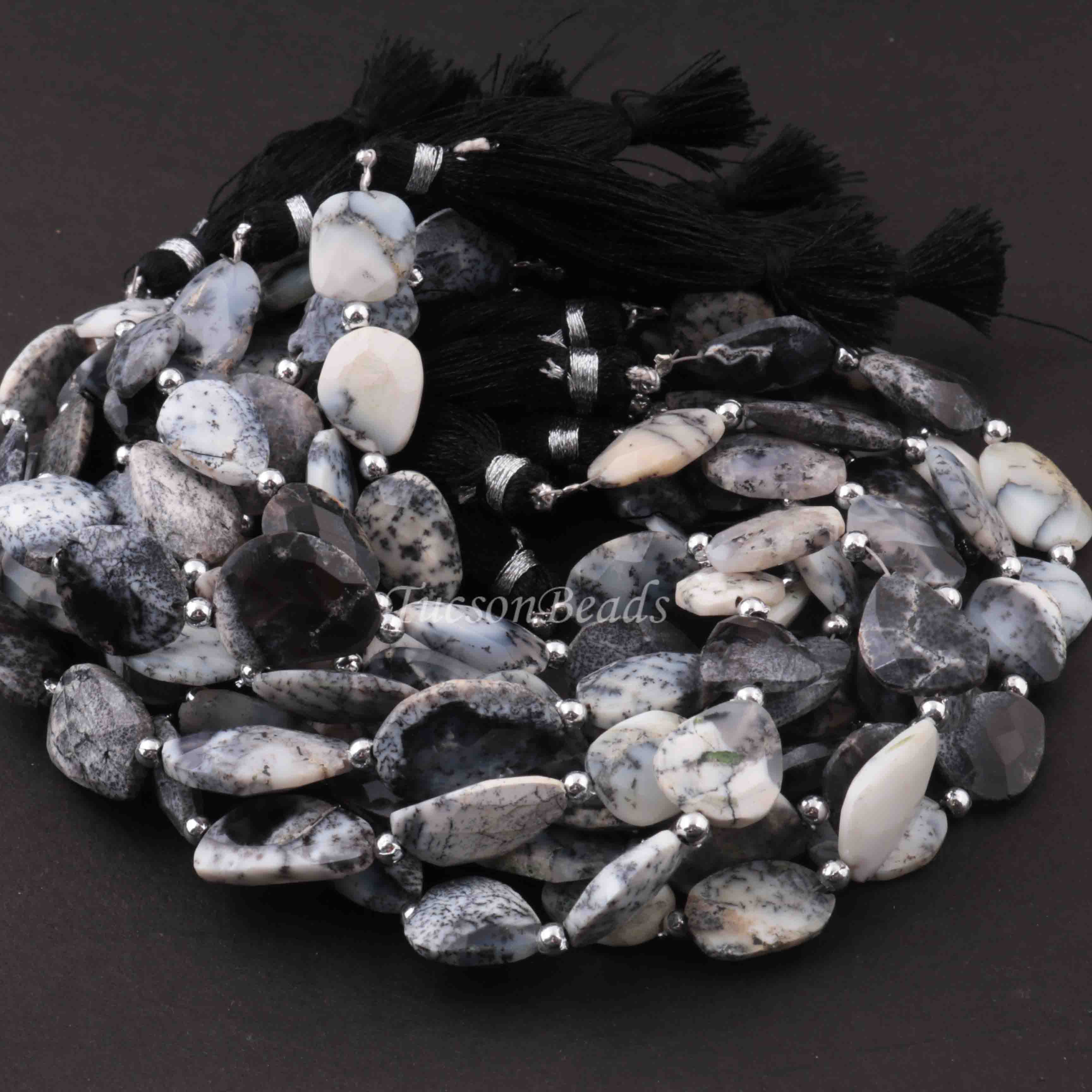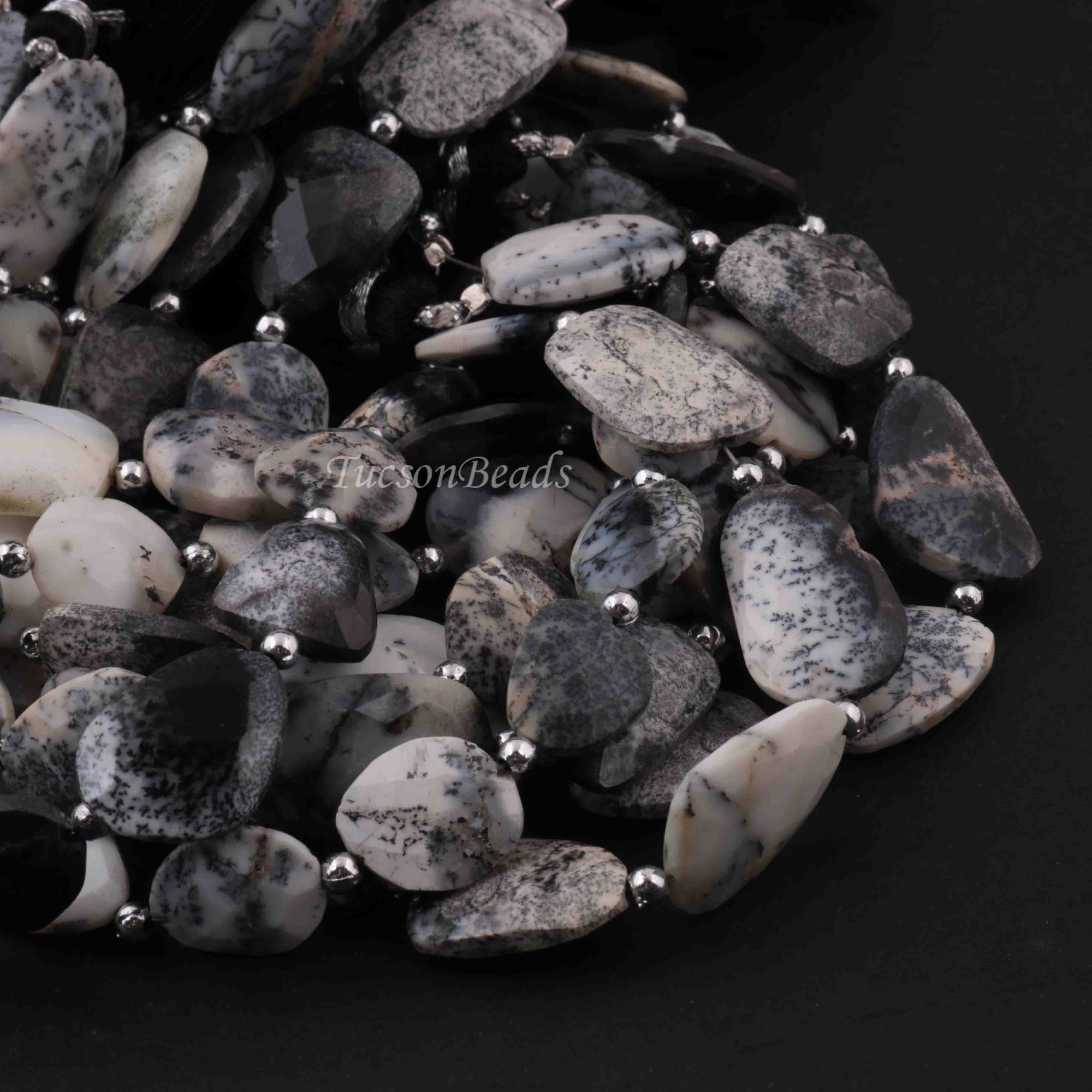 1 Strand Dendrite Opal Faceted Briolettes -Assorted Shape Briolettes - 23mmx13mm-12mmx11mm-8.5 inch BR0231