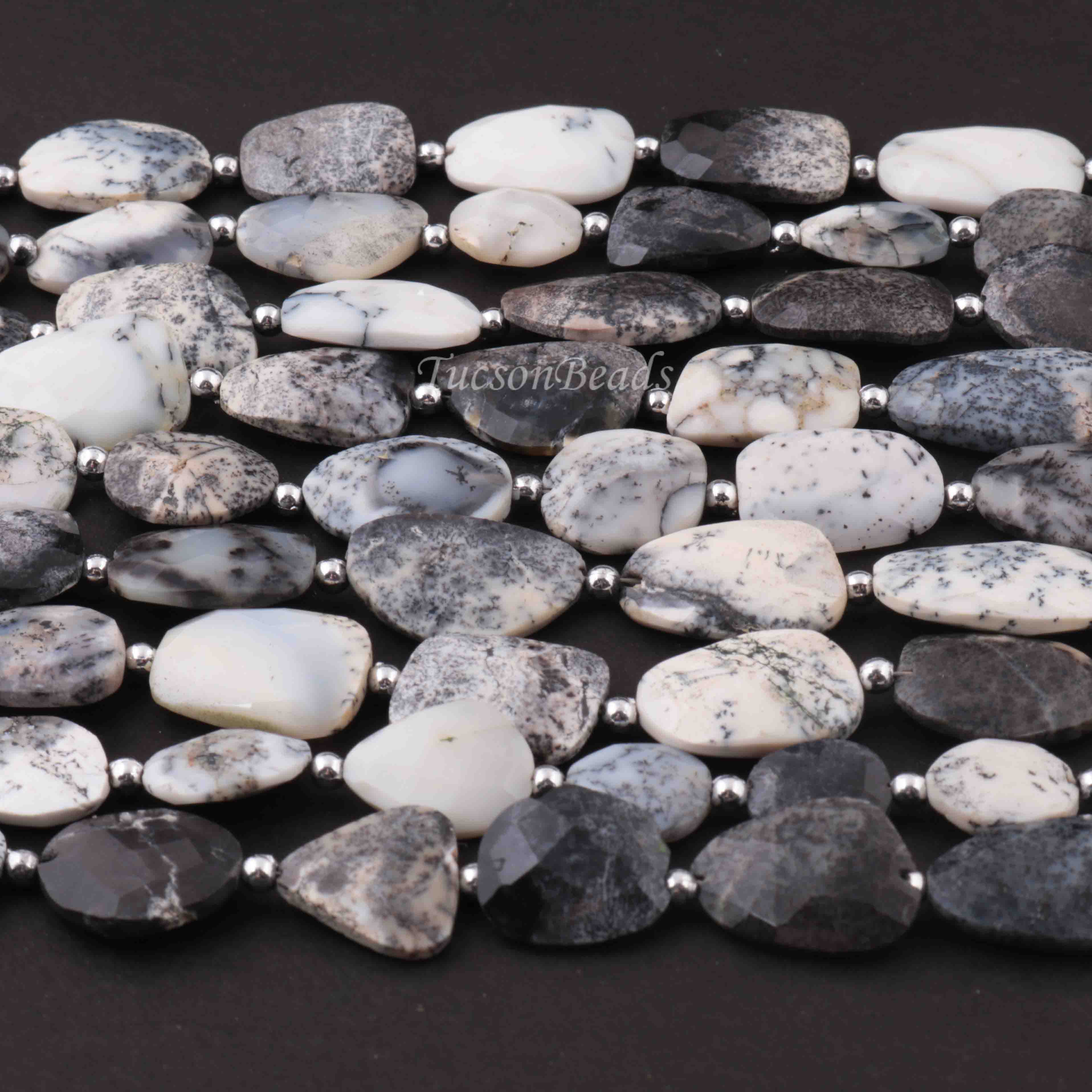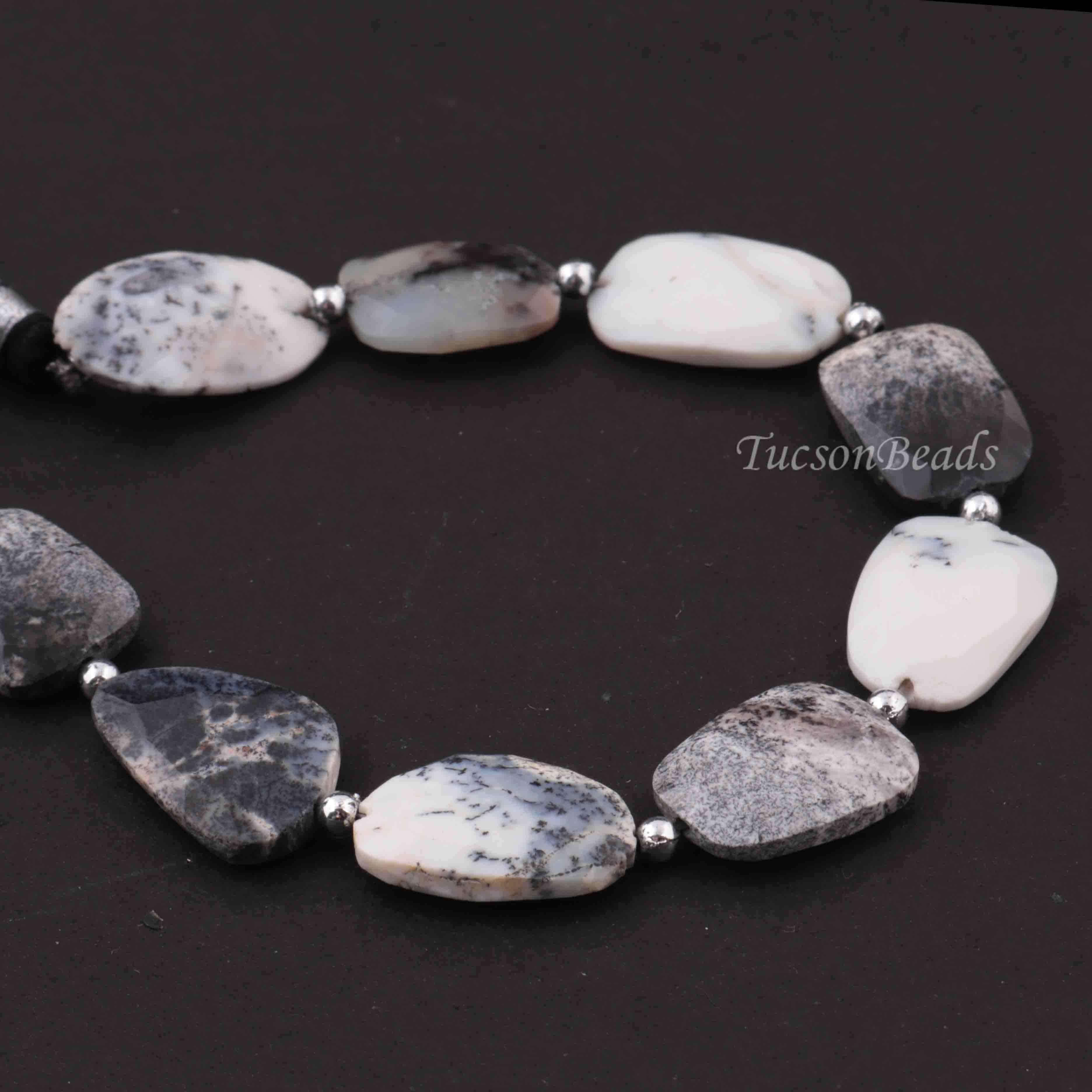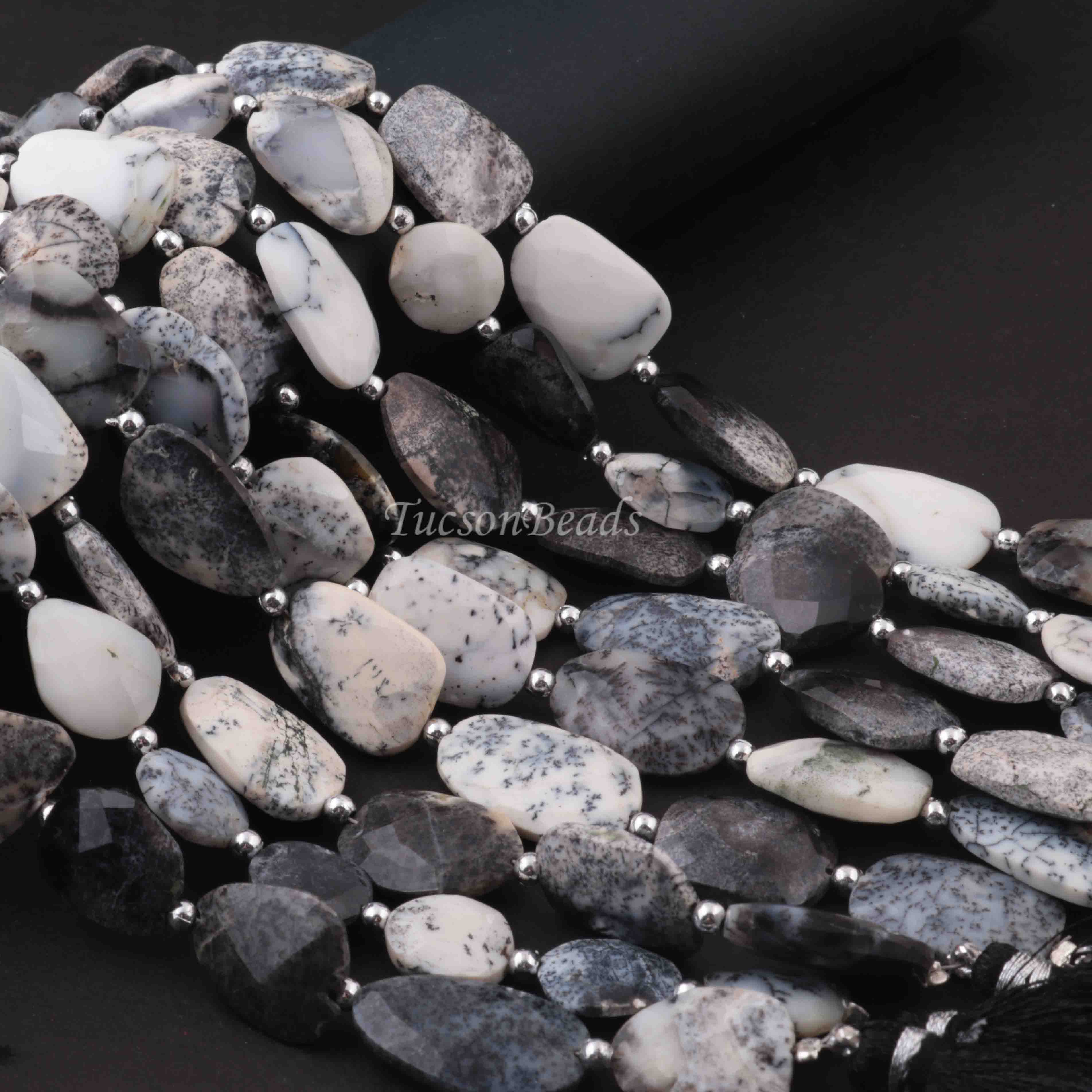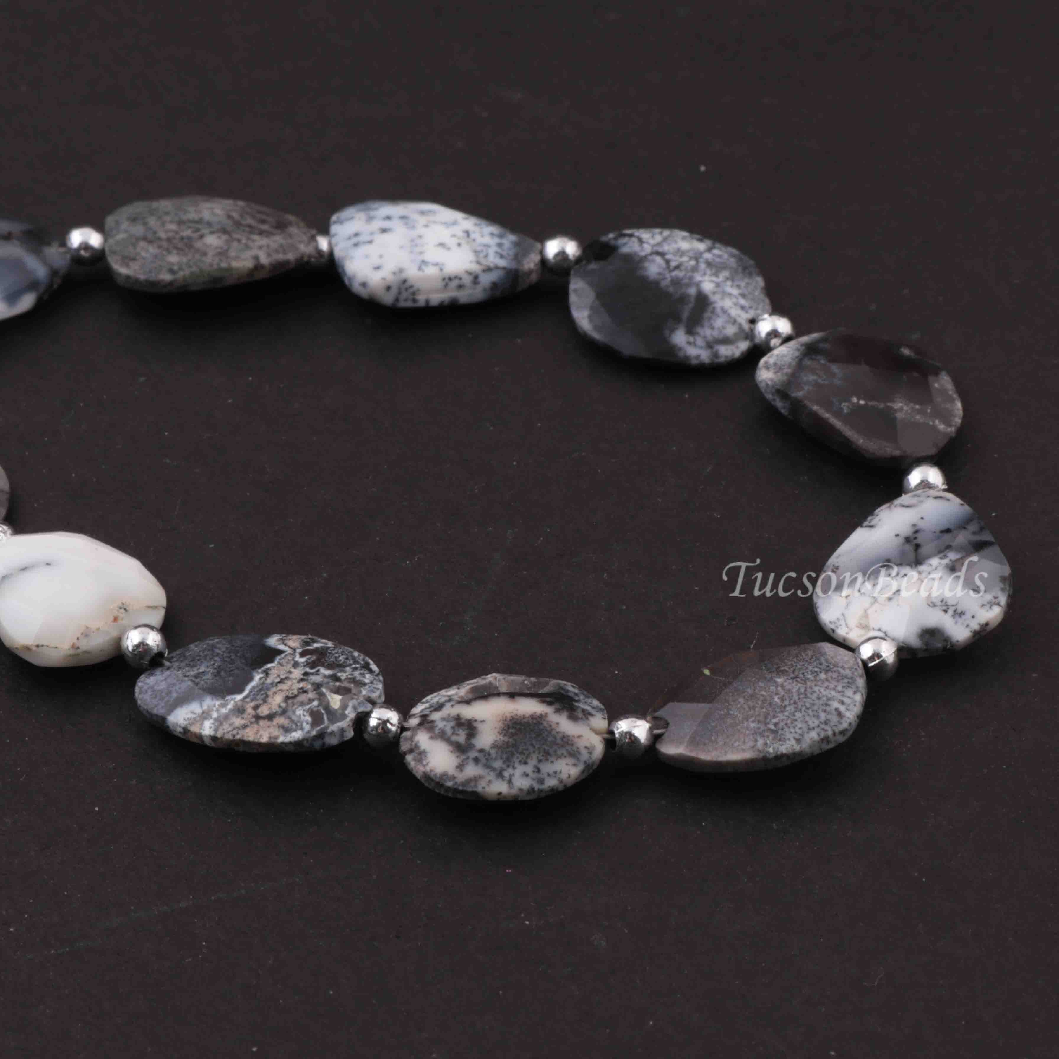 1 Strand Dendrite Opal Faceted Briolettes -Assorted Shape Briolettes - 23mmx13mm-12mmx11mm-8.5 inch BR0231