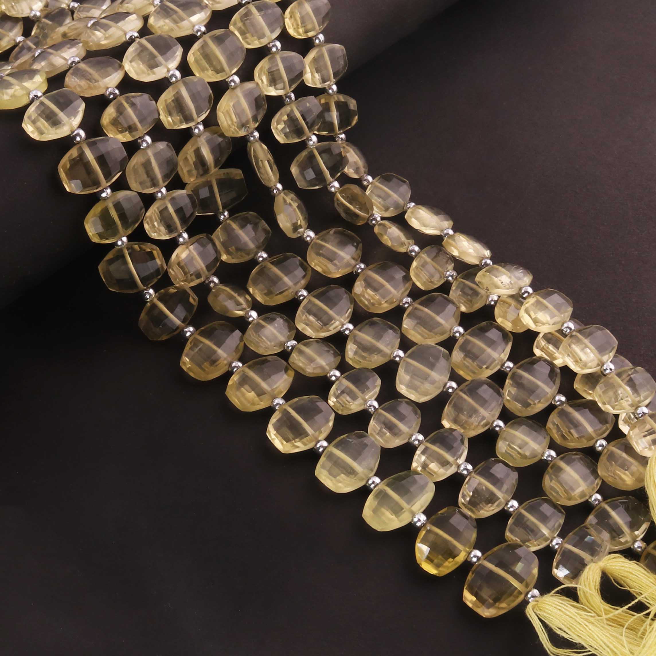 1 Strand Lemon Quartz Faceted Fancy Shape Beads, Straight Drill Lemon Quartz Fancy Beads, Faceted Briolettes 8mmx11mm - 11mmx15mm -10 Inches BR03465