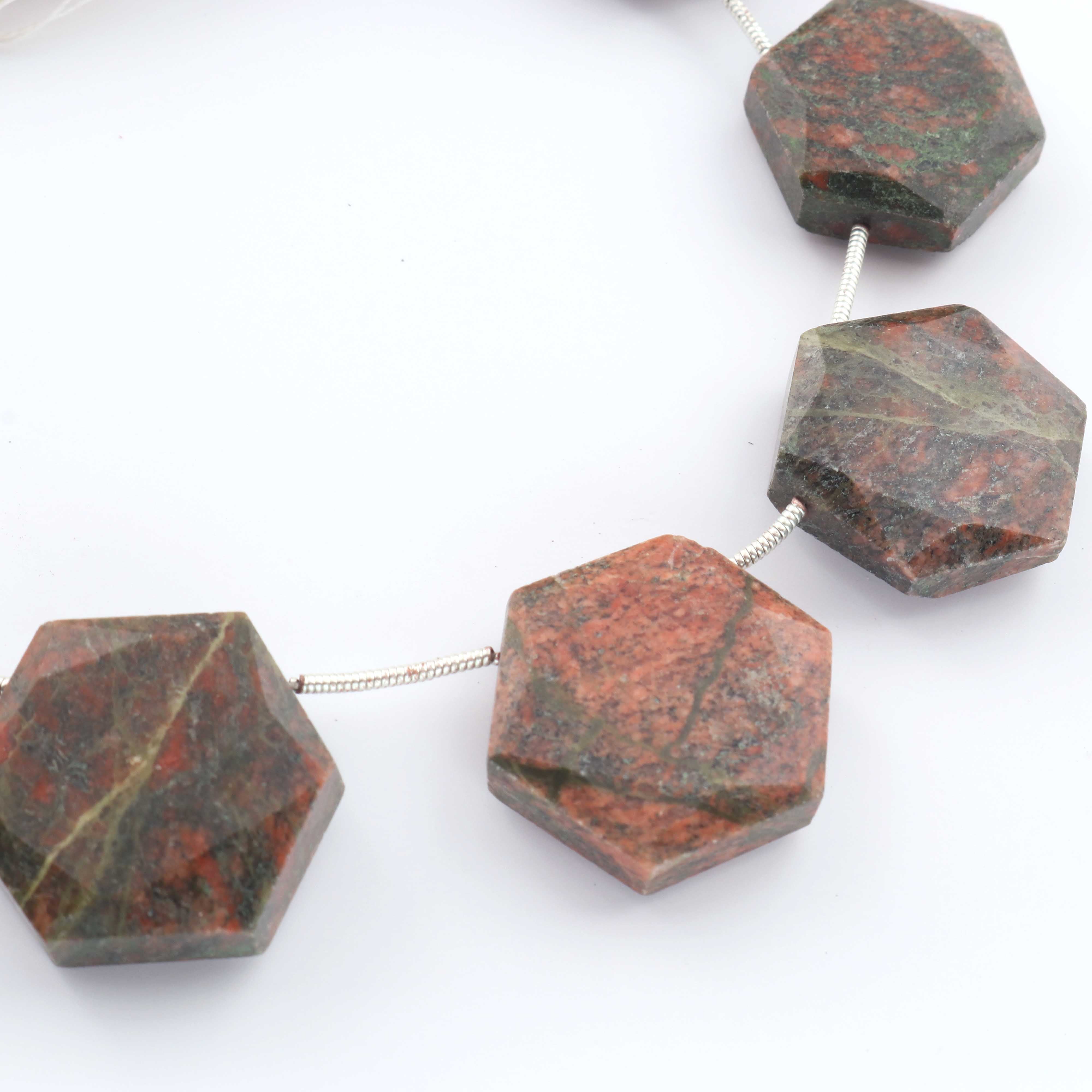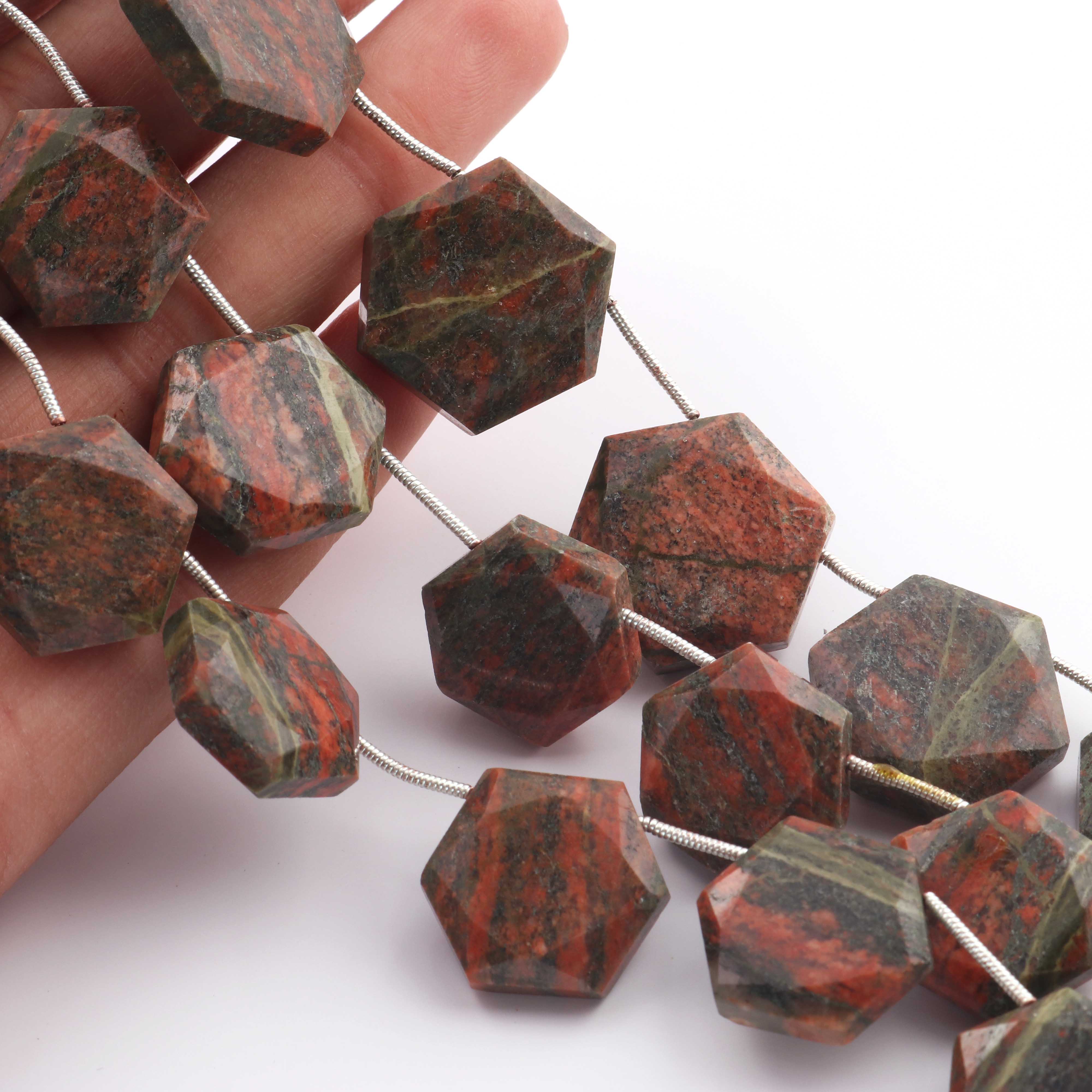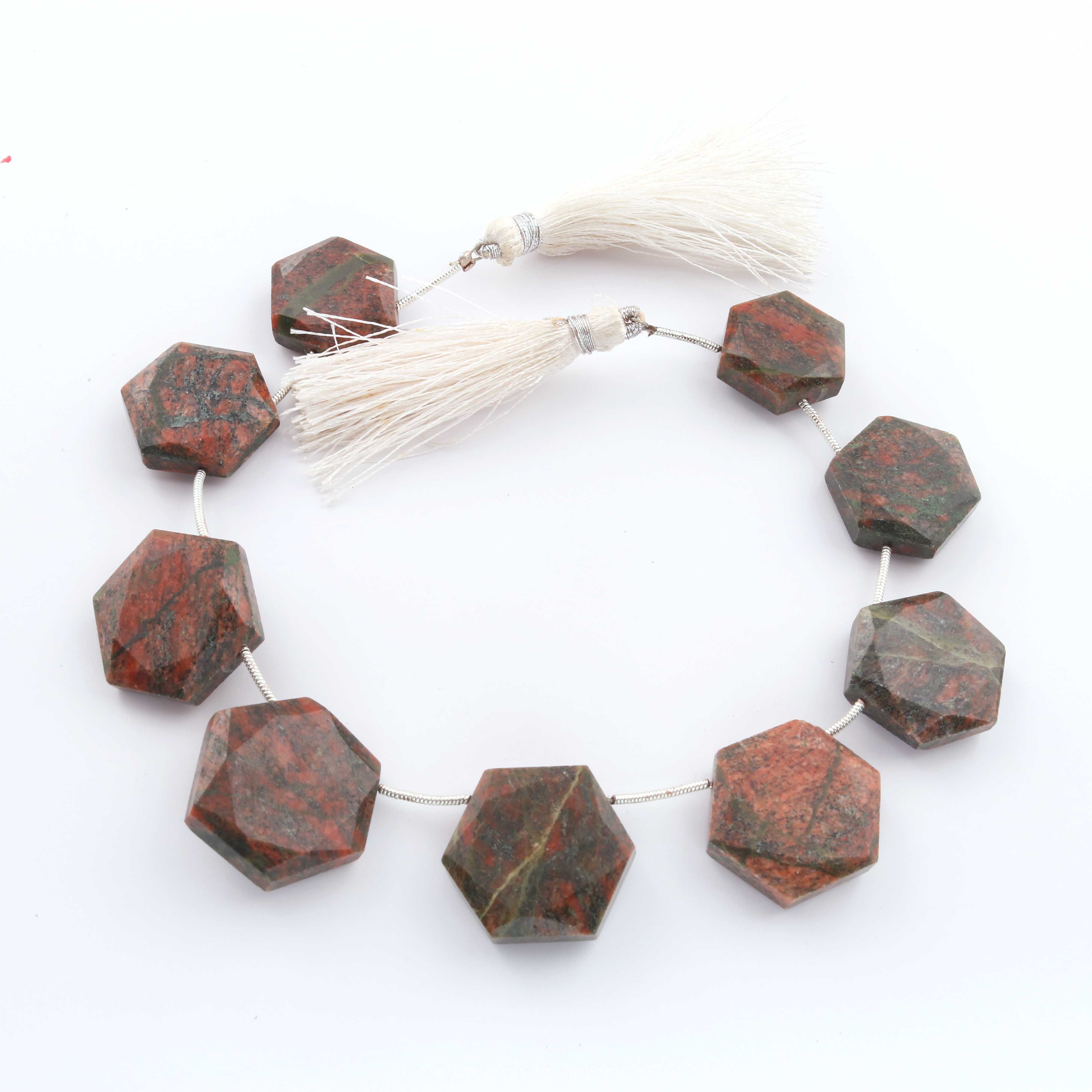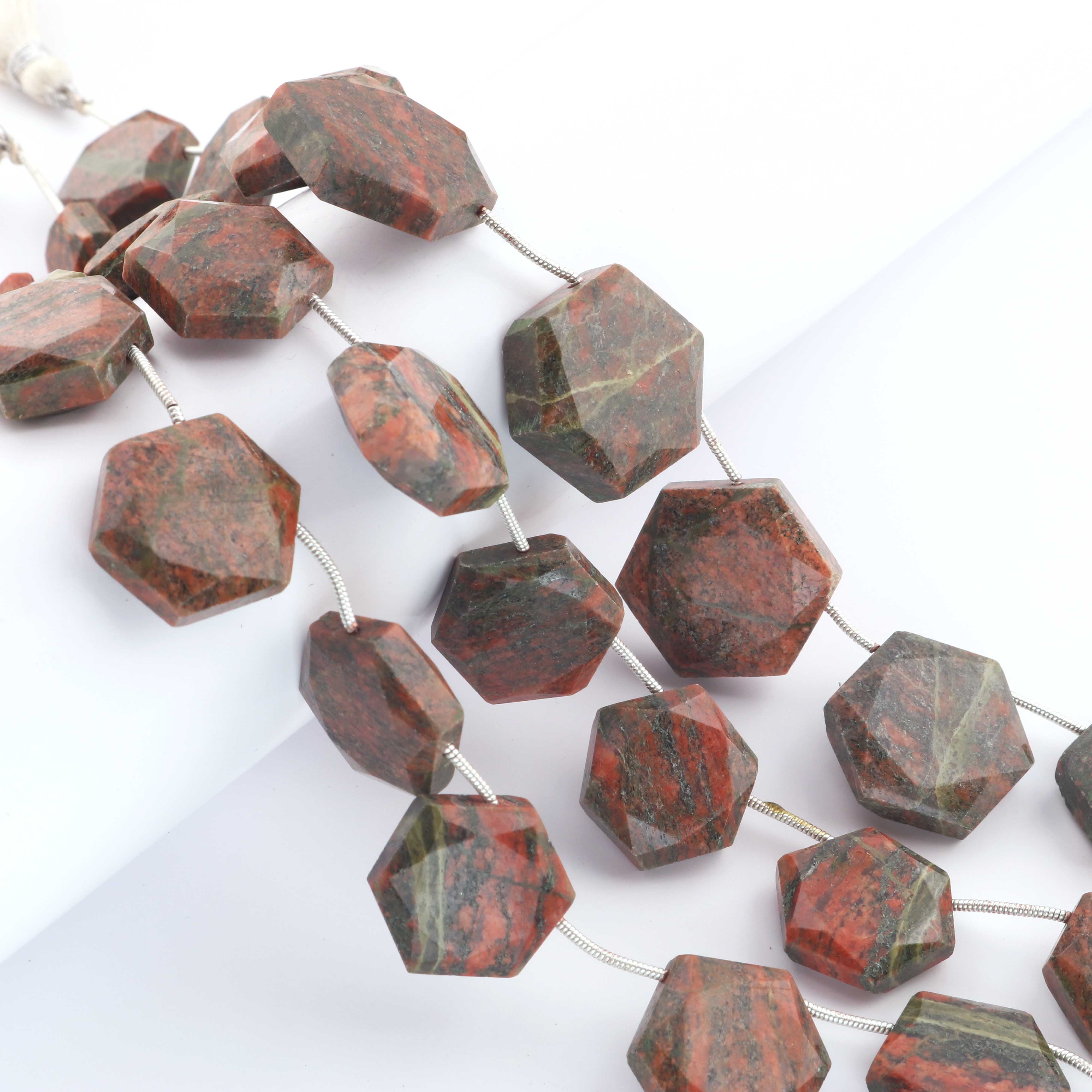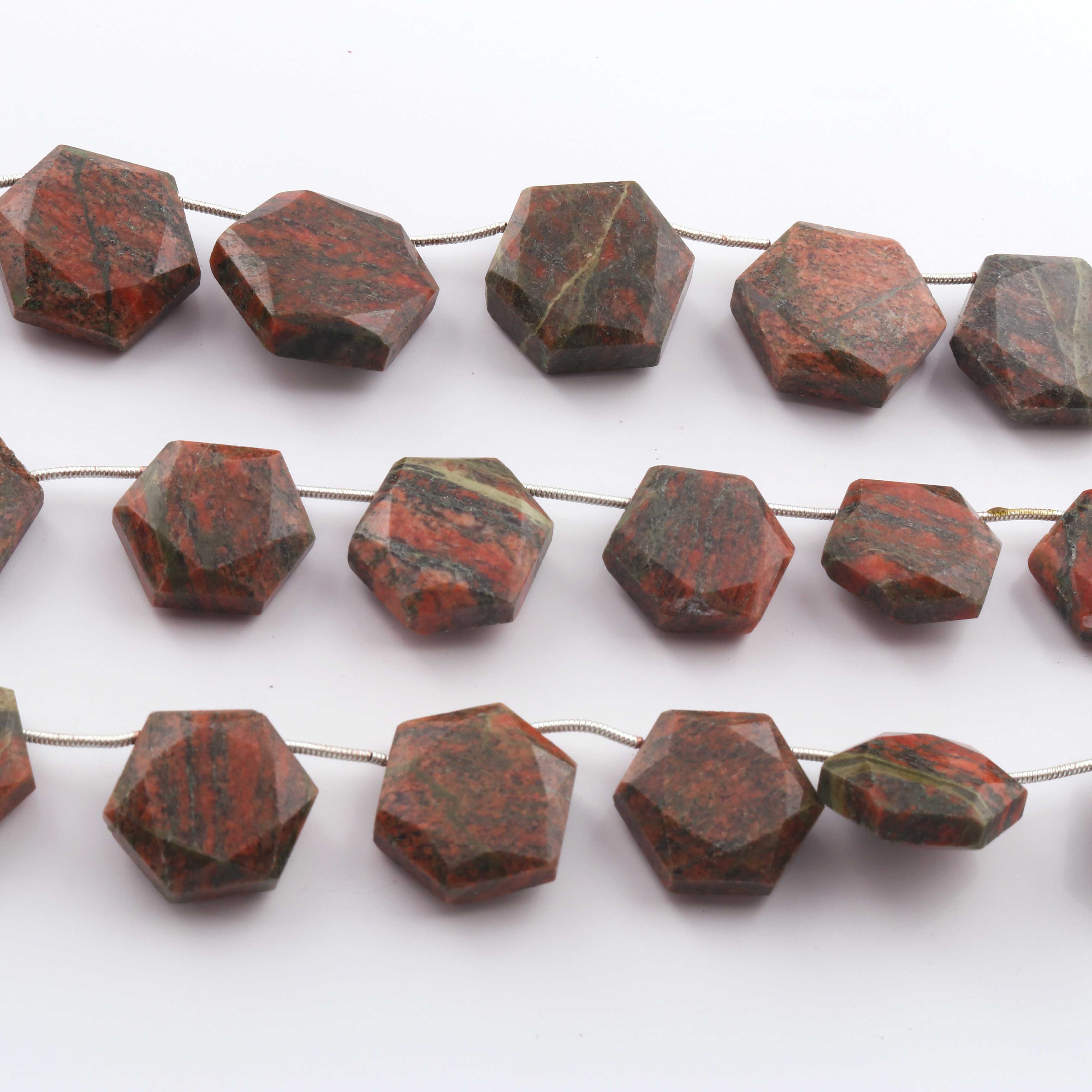 1 Strand Unakite Faceted Briolettes - Hexagon Shape Briolettes - 13mm23mm - 9 Inches br03396