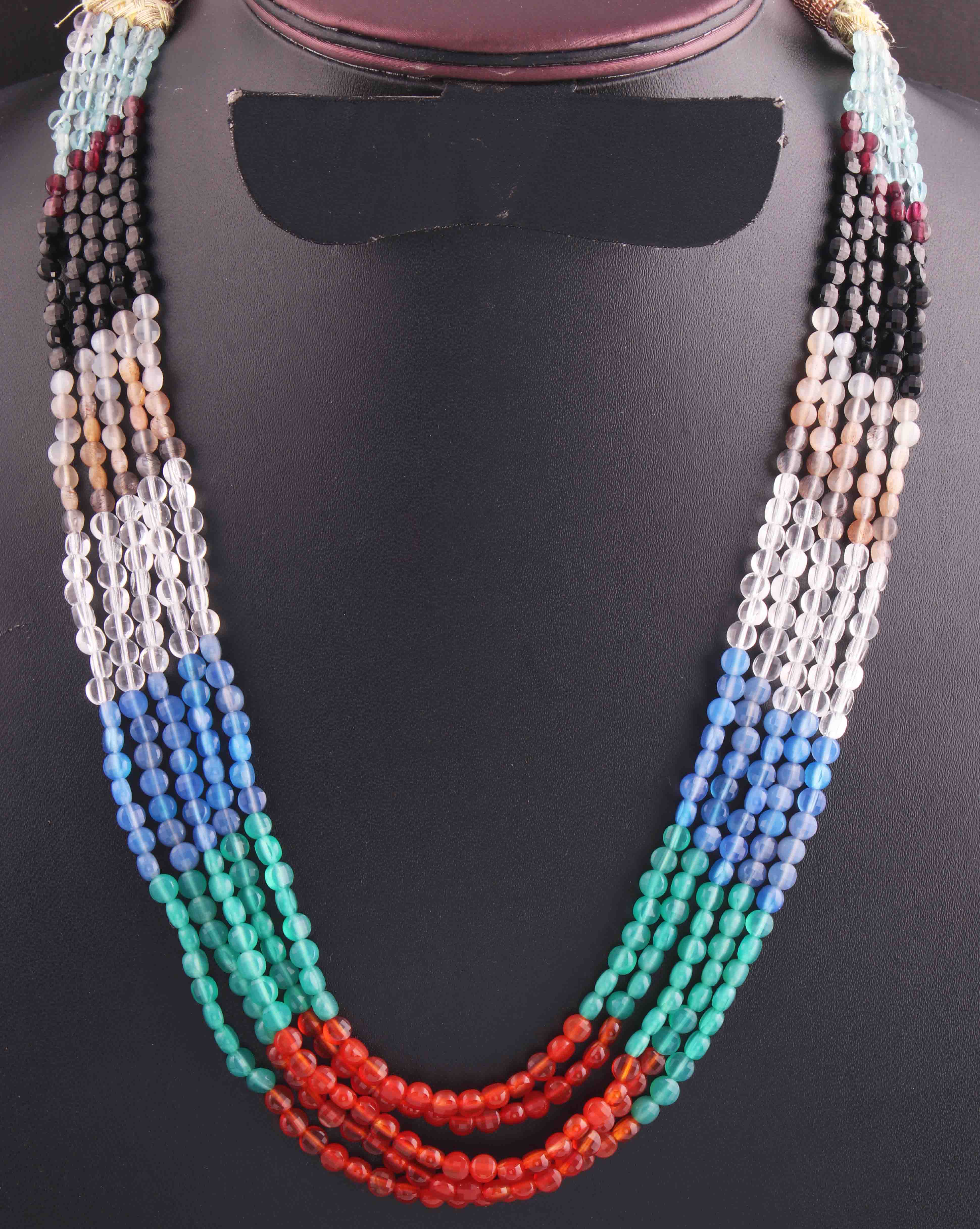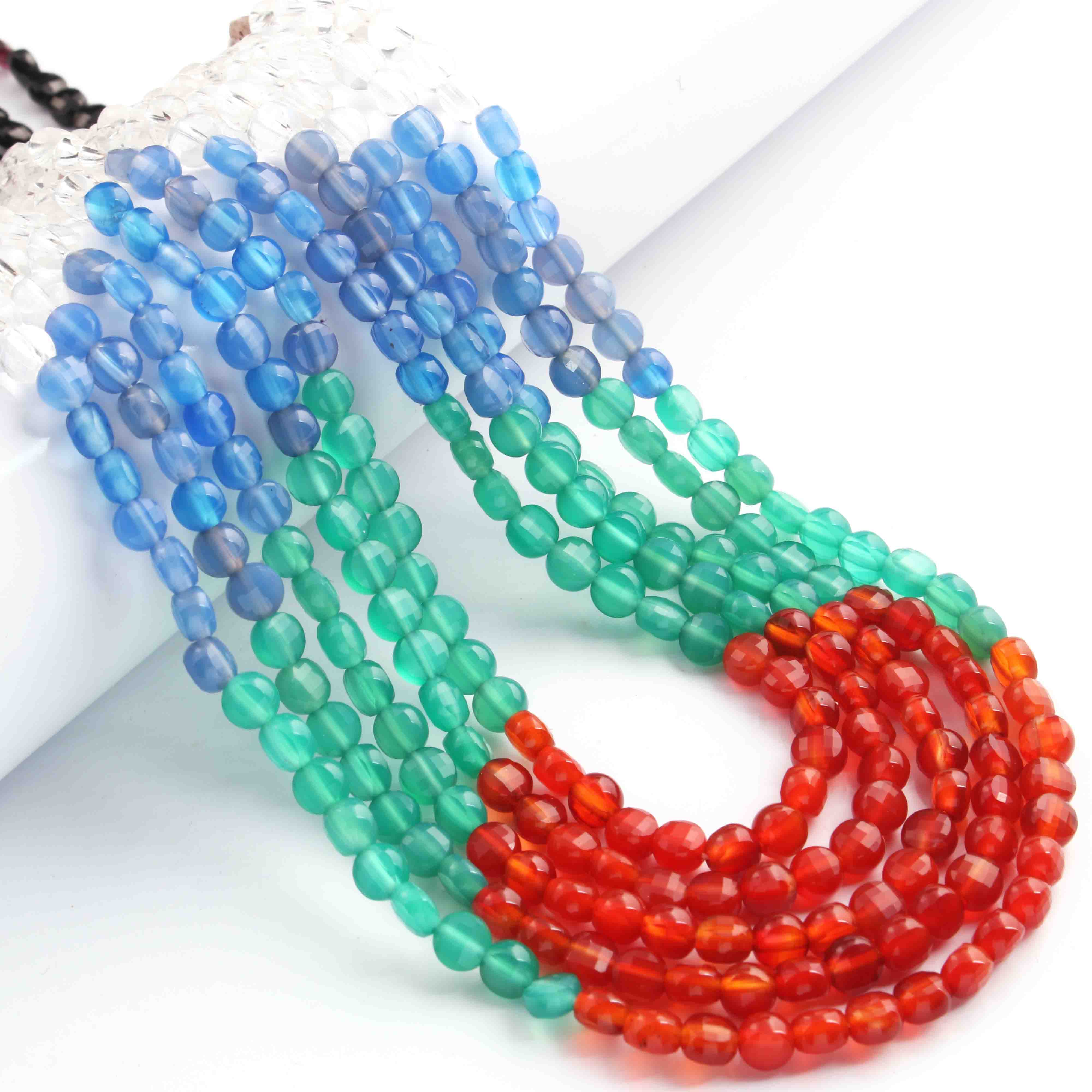 5 Strand AAA Quality Multi Color Faceted Coin beads Ready To Wear Necklace - Coin Beads 4mm- 17 Inch BRU202