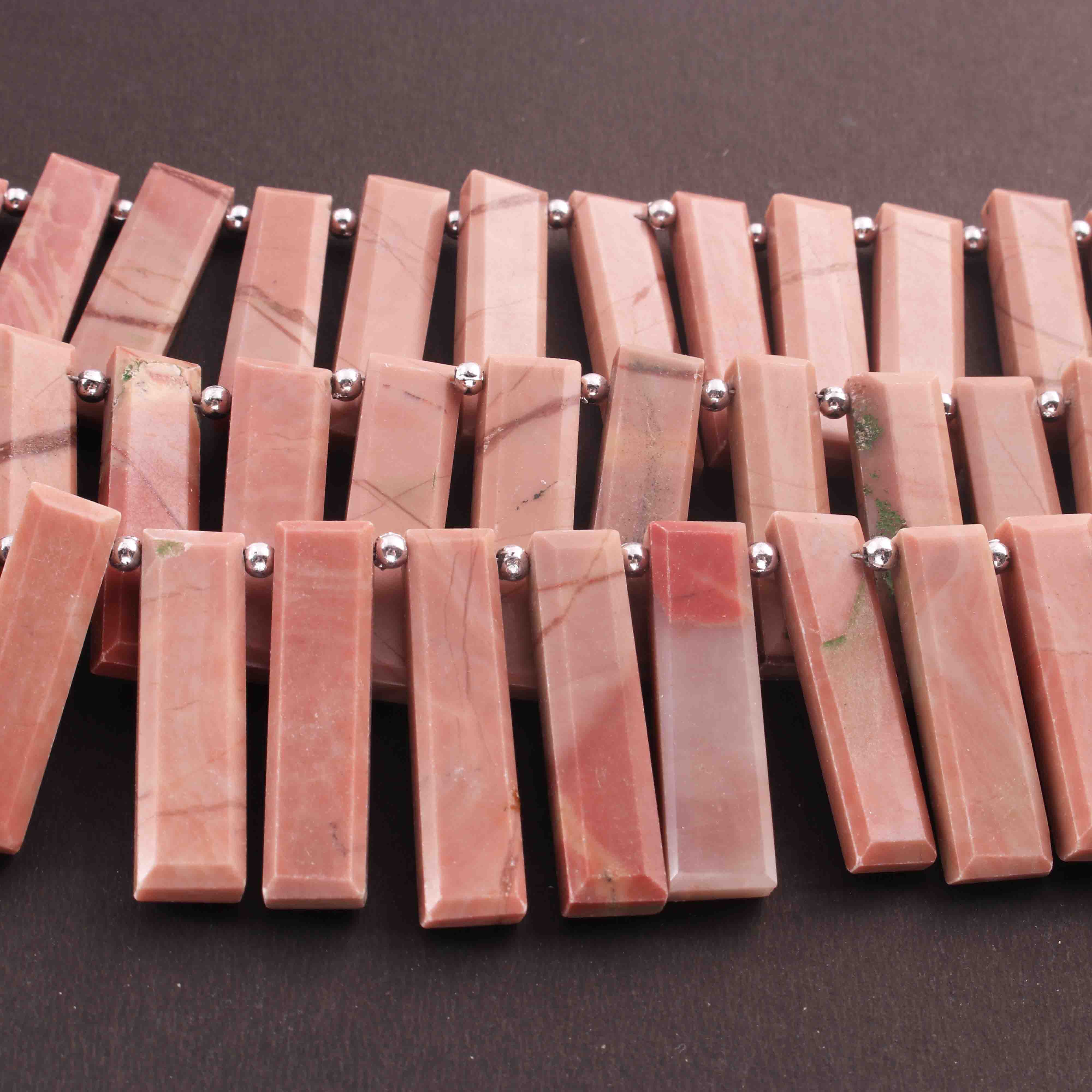 1 Long Strand Peach Moonstone Facetad Rectangle Shape , Briolettes - 34mmx8mm-15mmx8mm- 9 inches BR01616