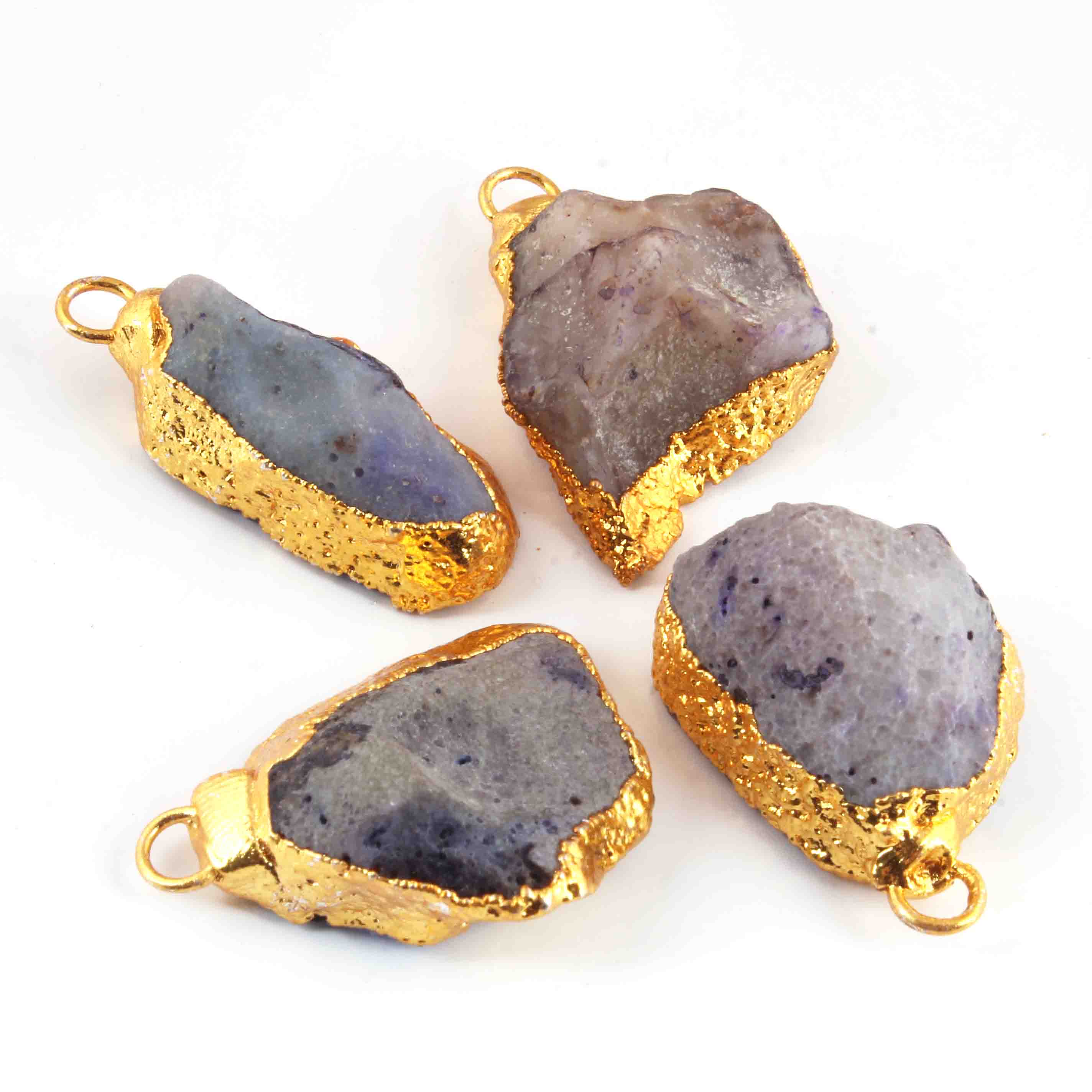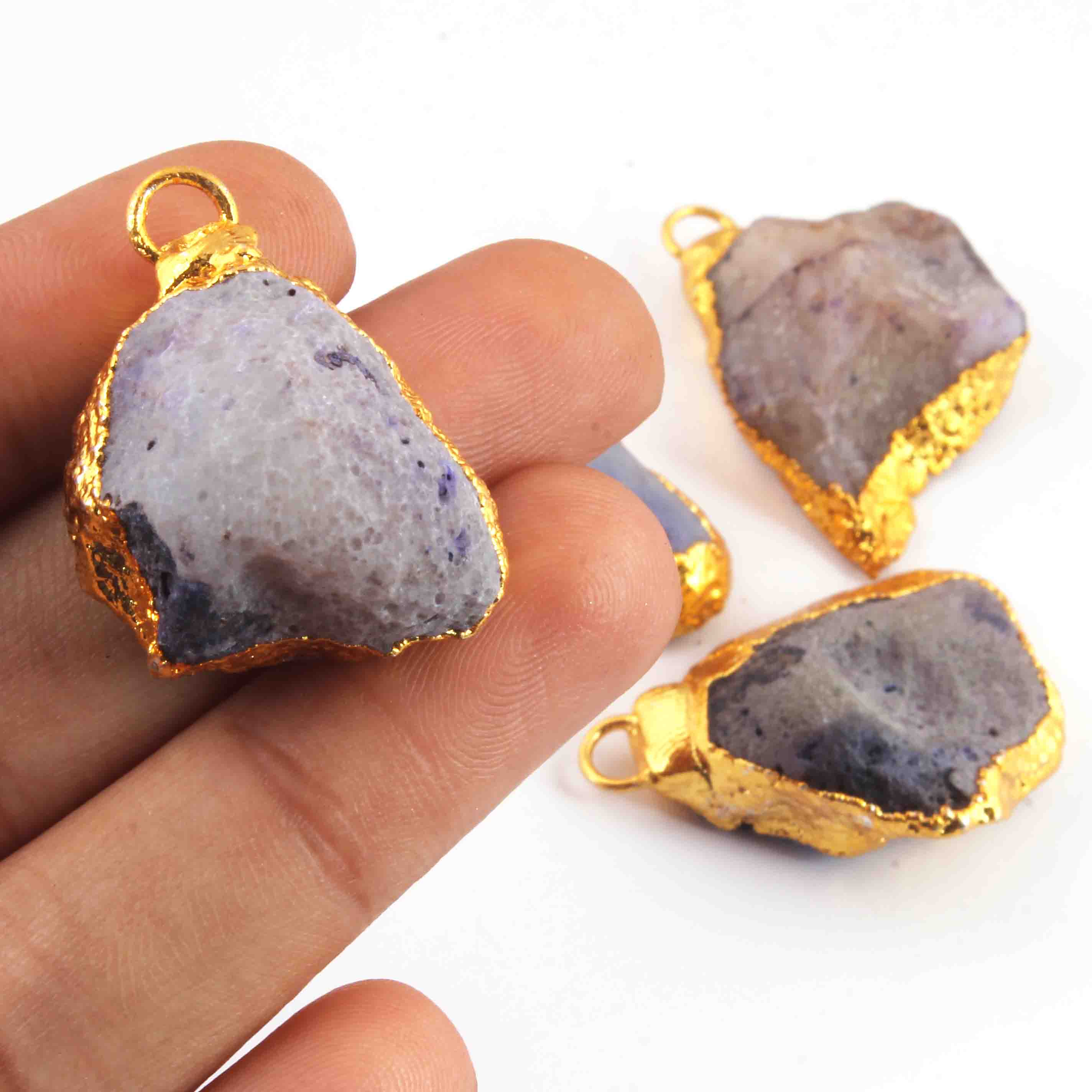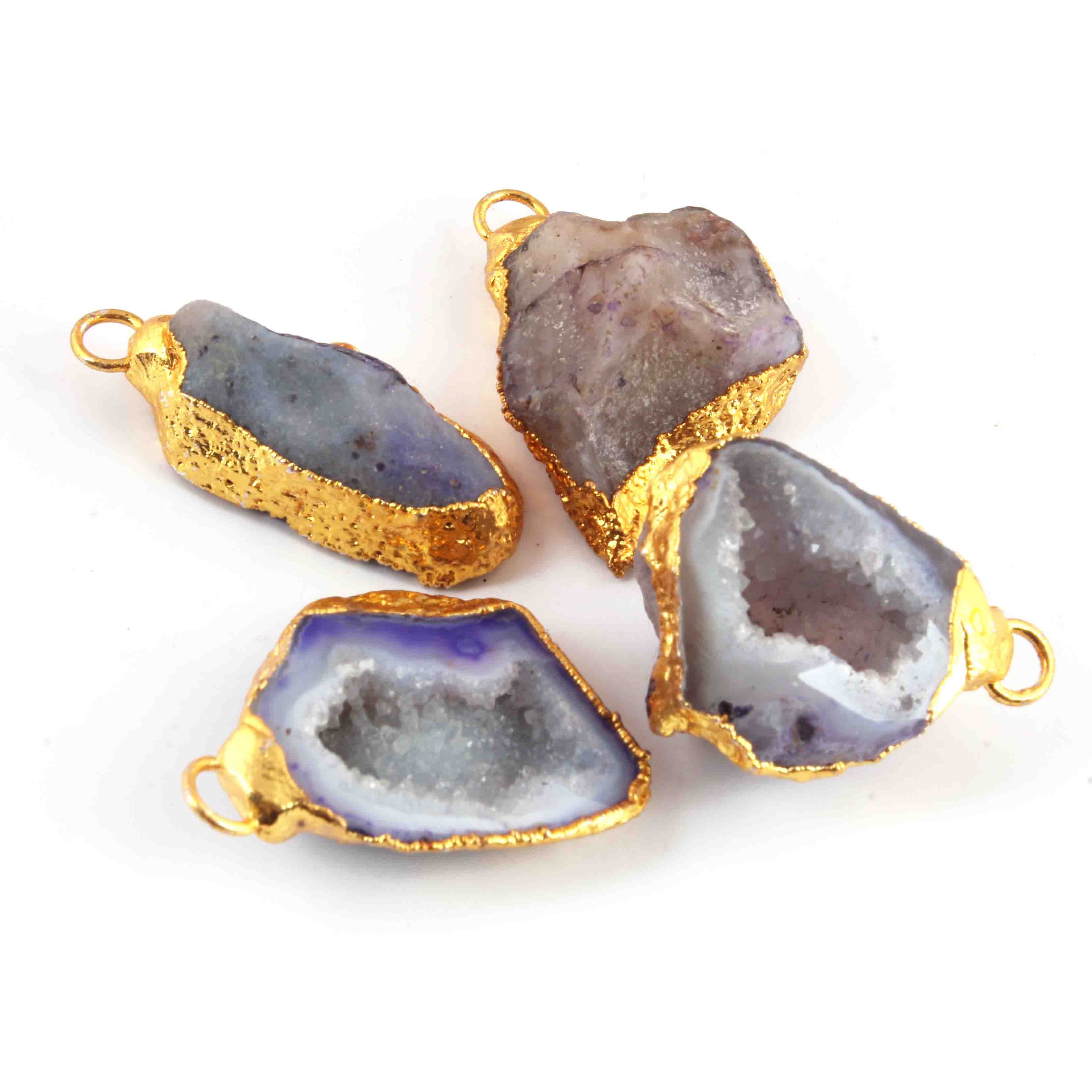 4 Pcs 24k Gold Plated Geode Agate Purple Druzzy Slice Pendant , Fancy Shape Druzzy , Gemstone Pendant 35mmx14mm-30mmx20mm Jewelry Making DRZ329