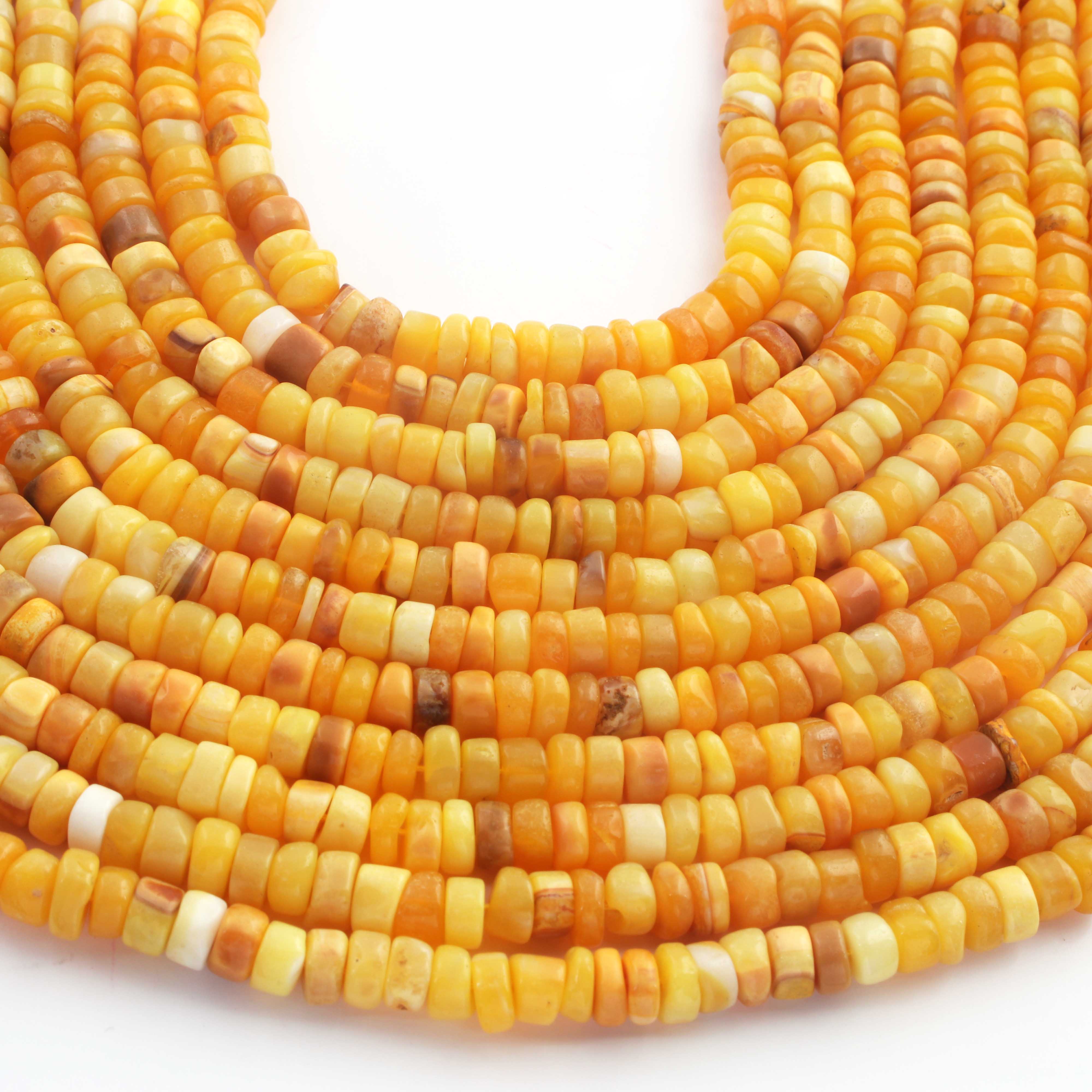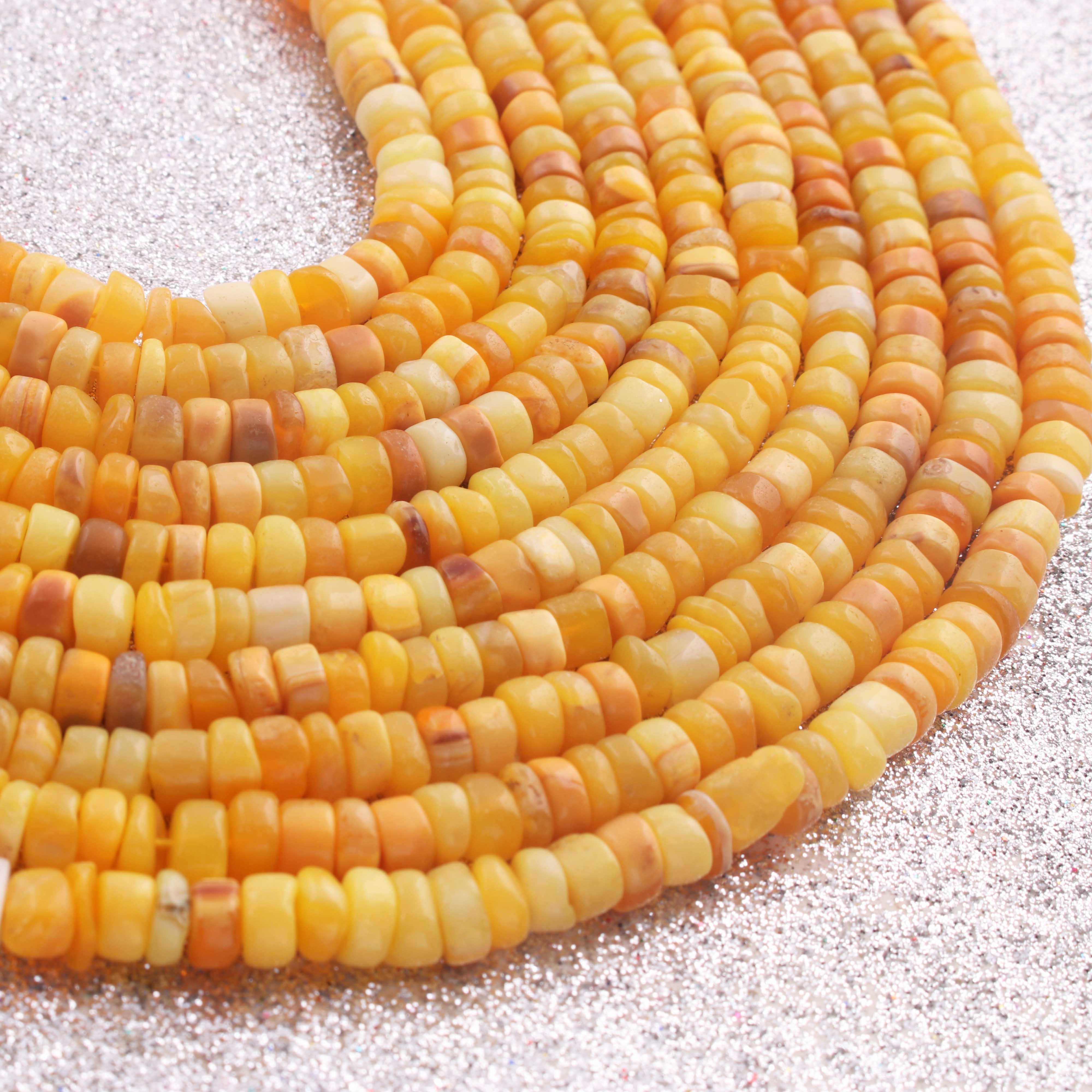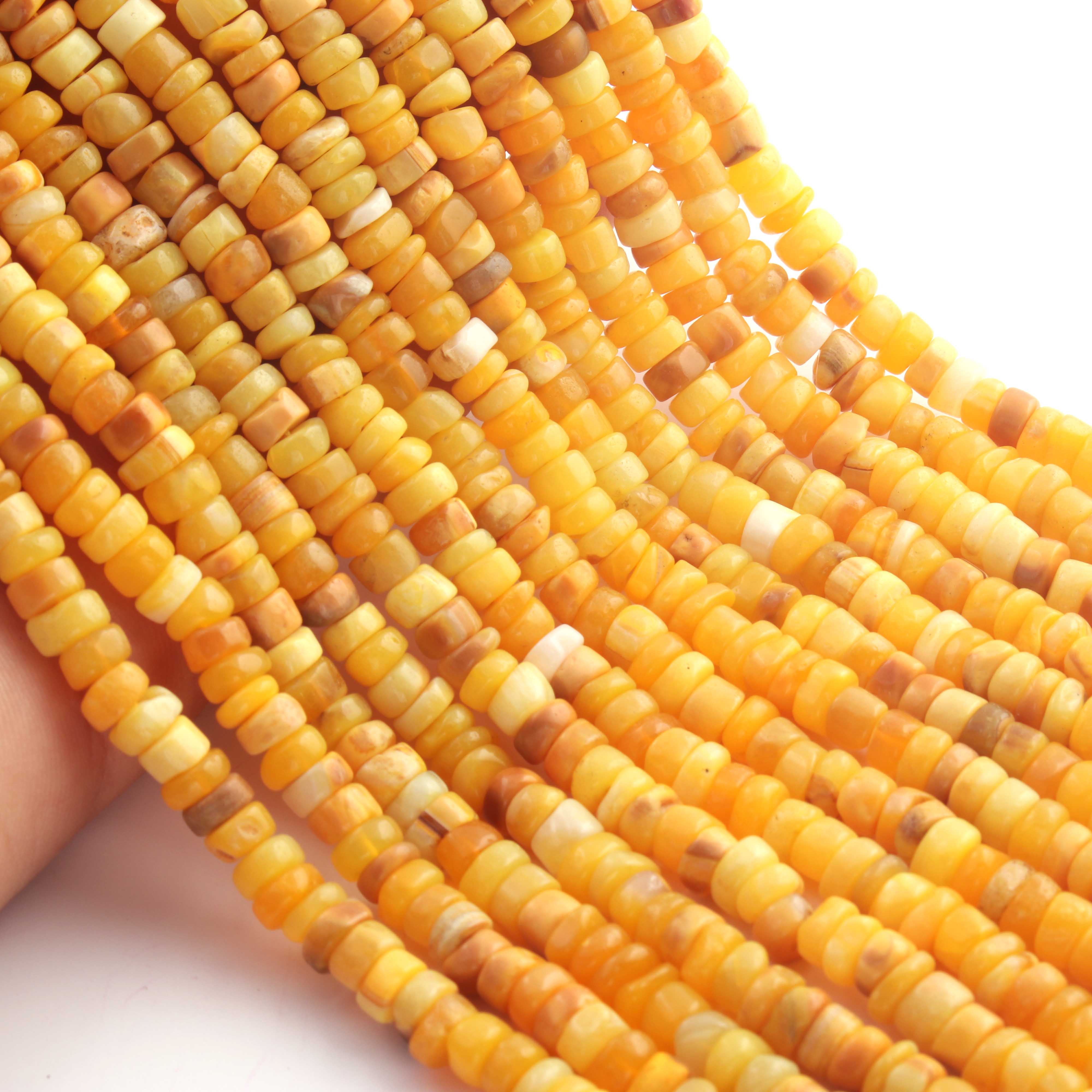1 Long Strand Beautiful Shaded Yellow Opal Smooth Heishi Tyre Beads -Yellow Opal Gemstone Beads- 6mm-7mm-13 Inches BR02987