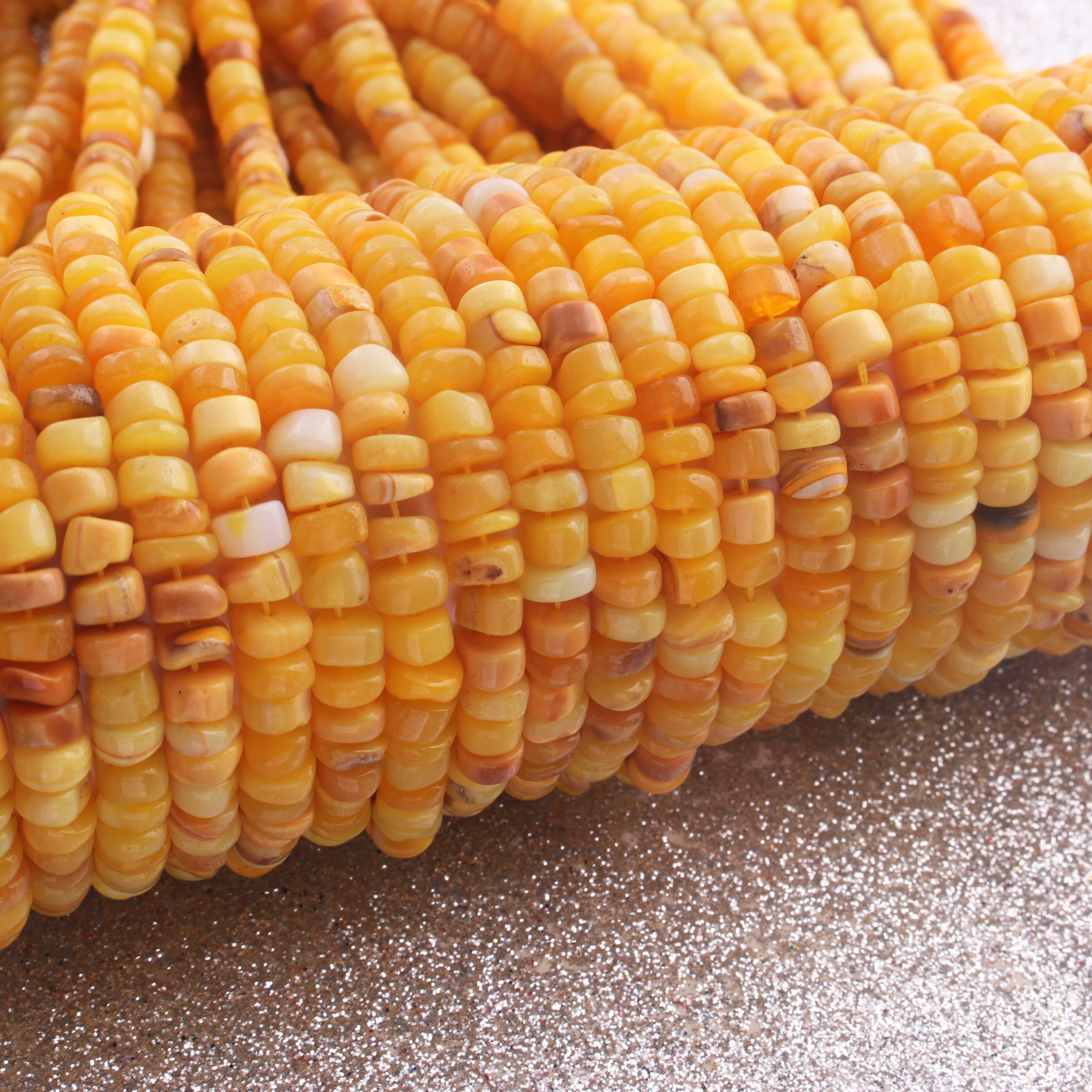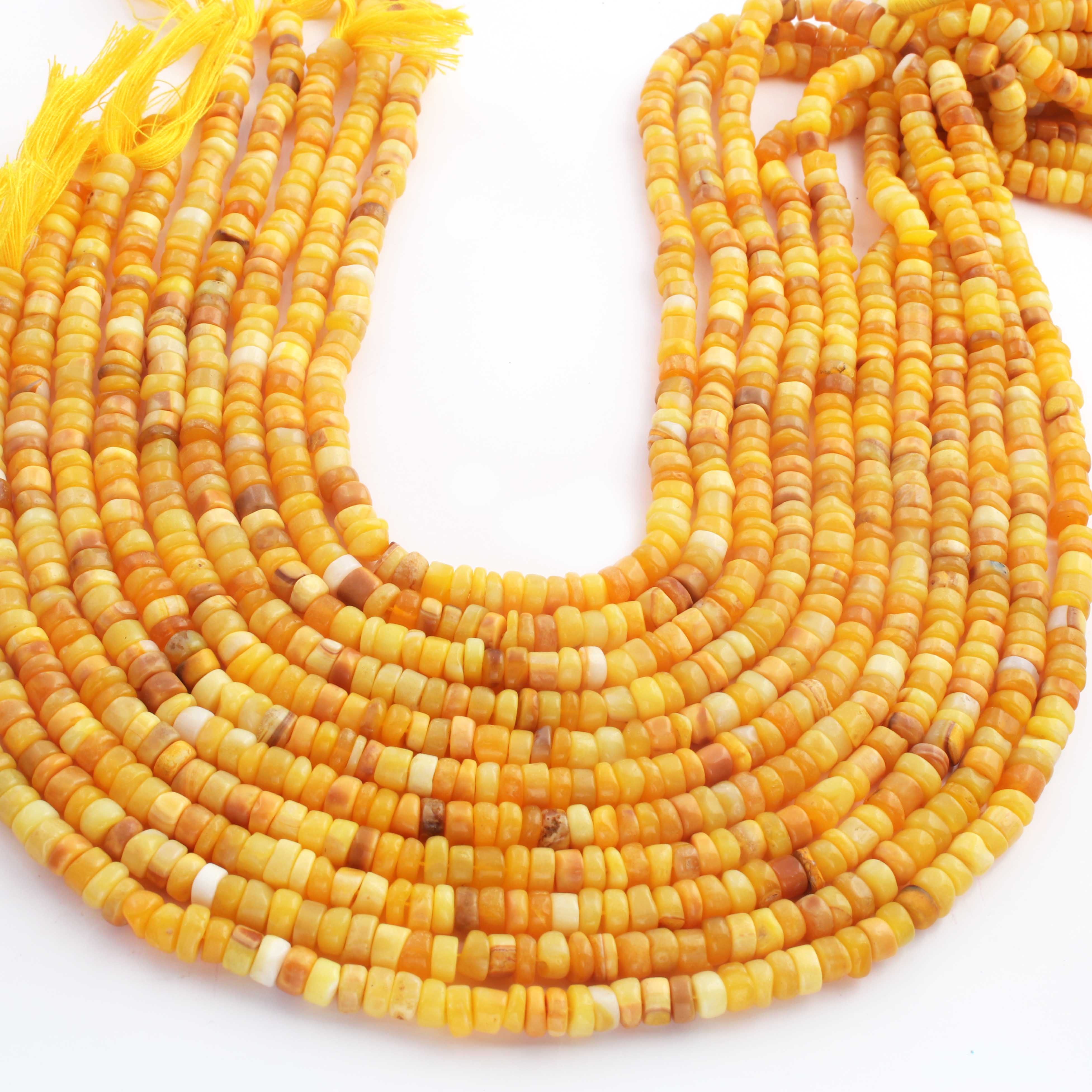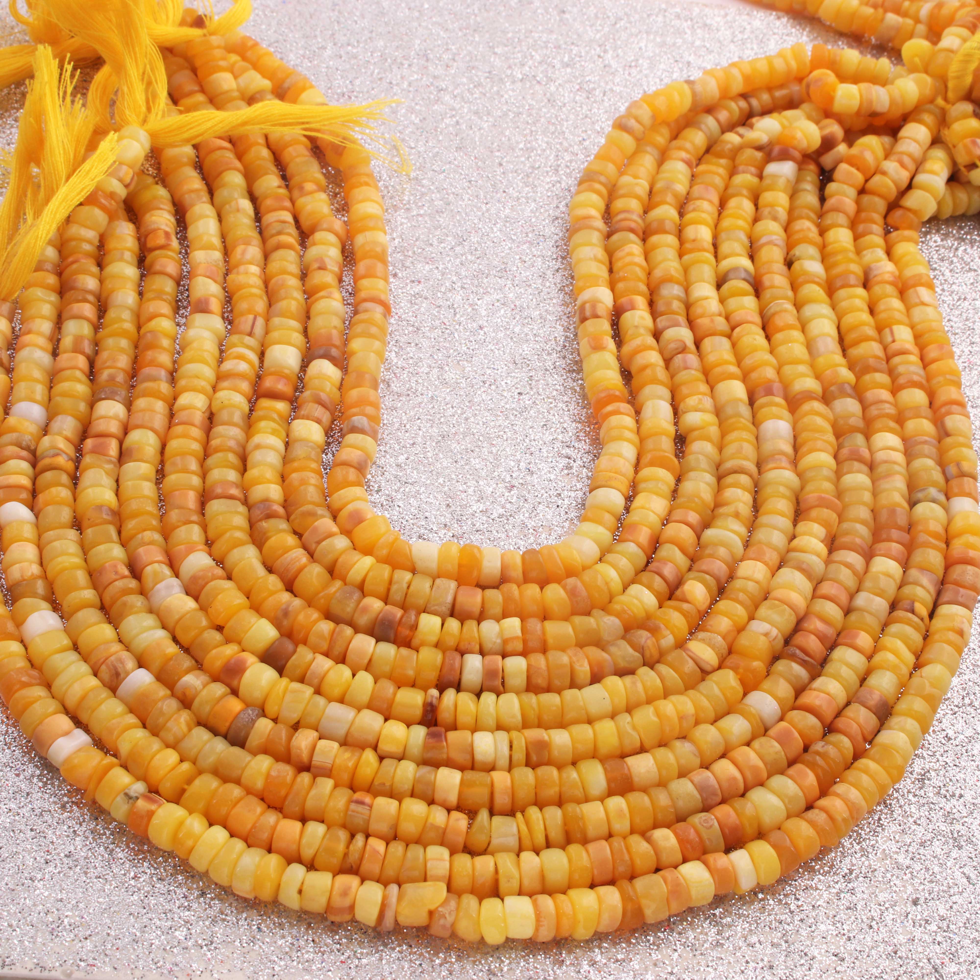 1 Long Strand Beautiful Shaded Yellow Opal Smooth Heishi Tyre Beads -Yellow Opal Gemstone Beads- 6mm-7mm-13 Inches BR02987