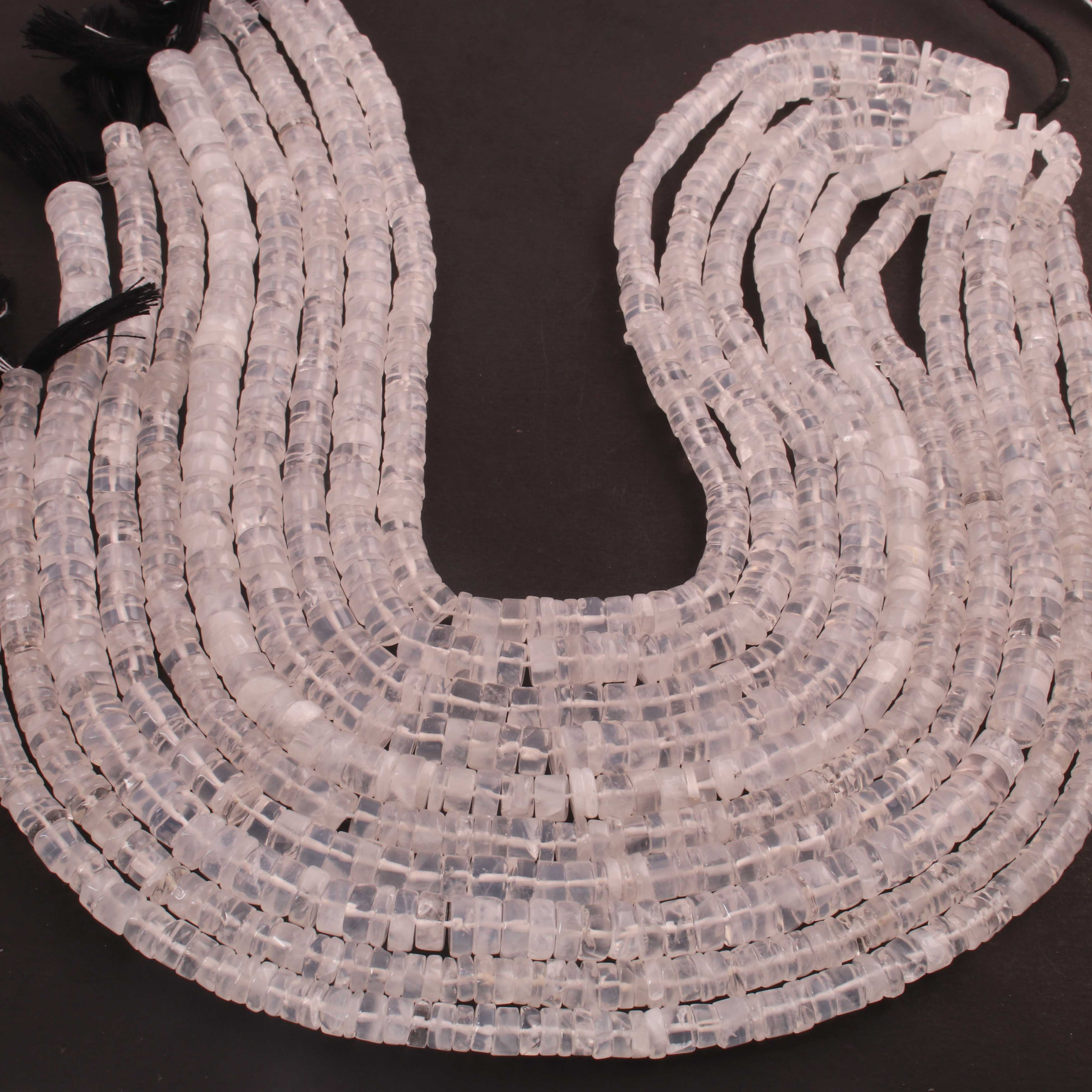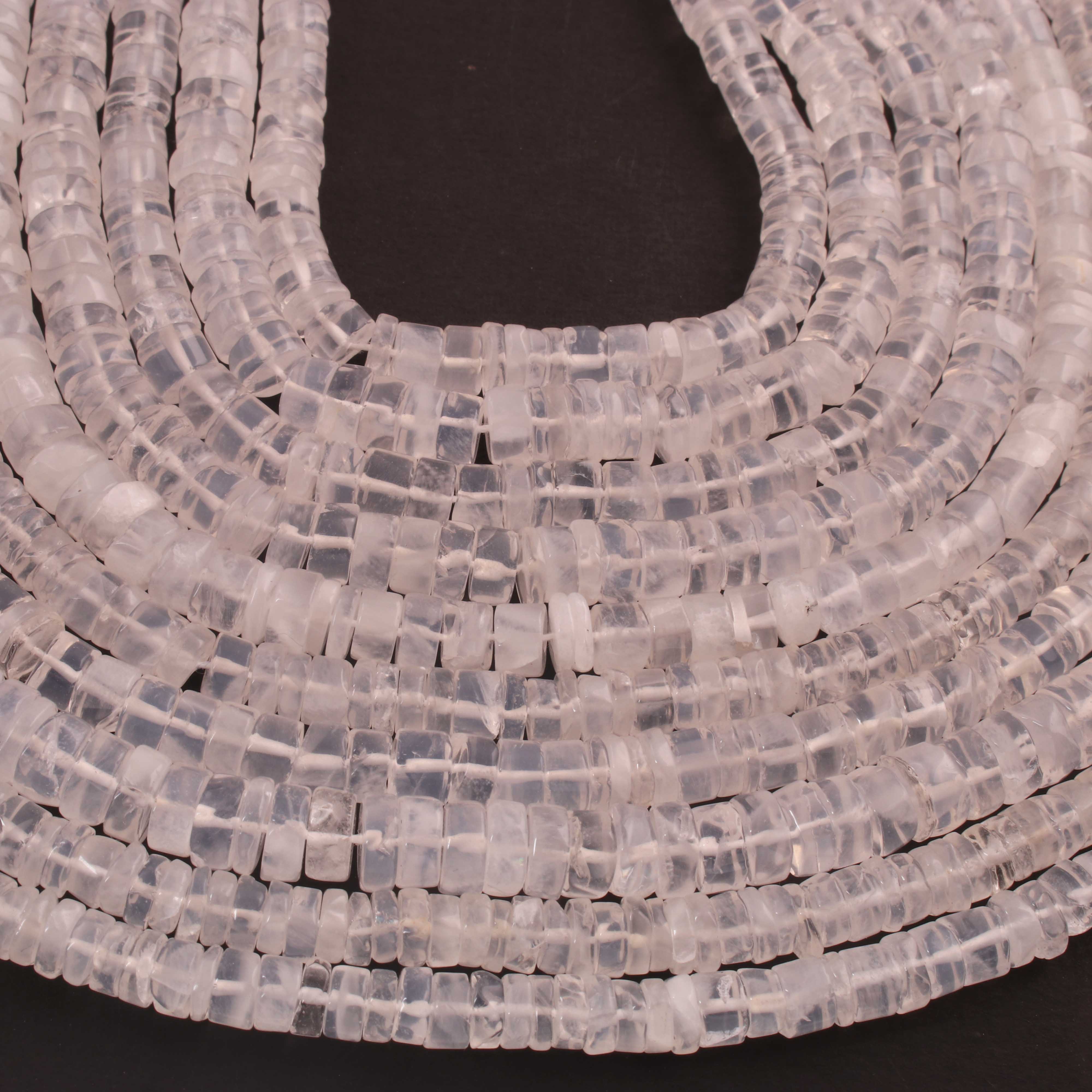 1 Long Strand Crystal Quartz Smooth Heishi , Tyre Briolettes - Gemstone Wheel Shape Briolettes -6mm- 7mm - 13 Inches BR03111