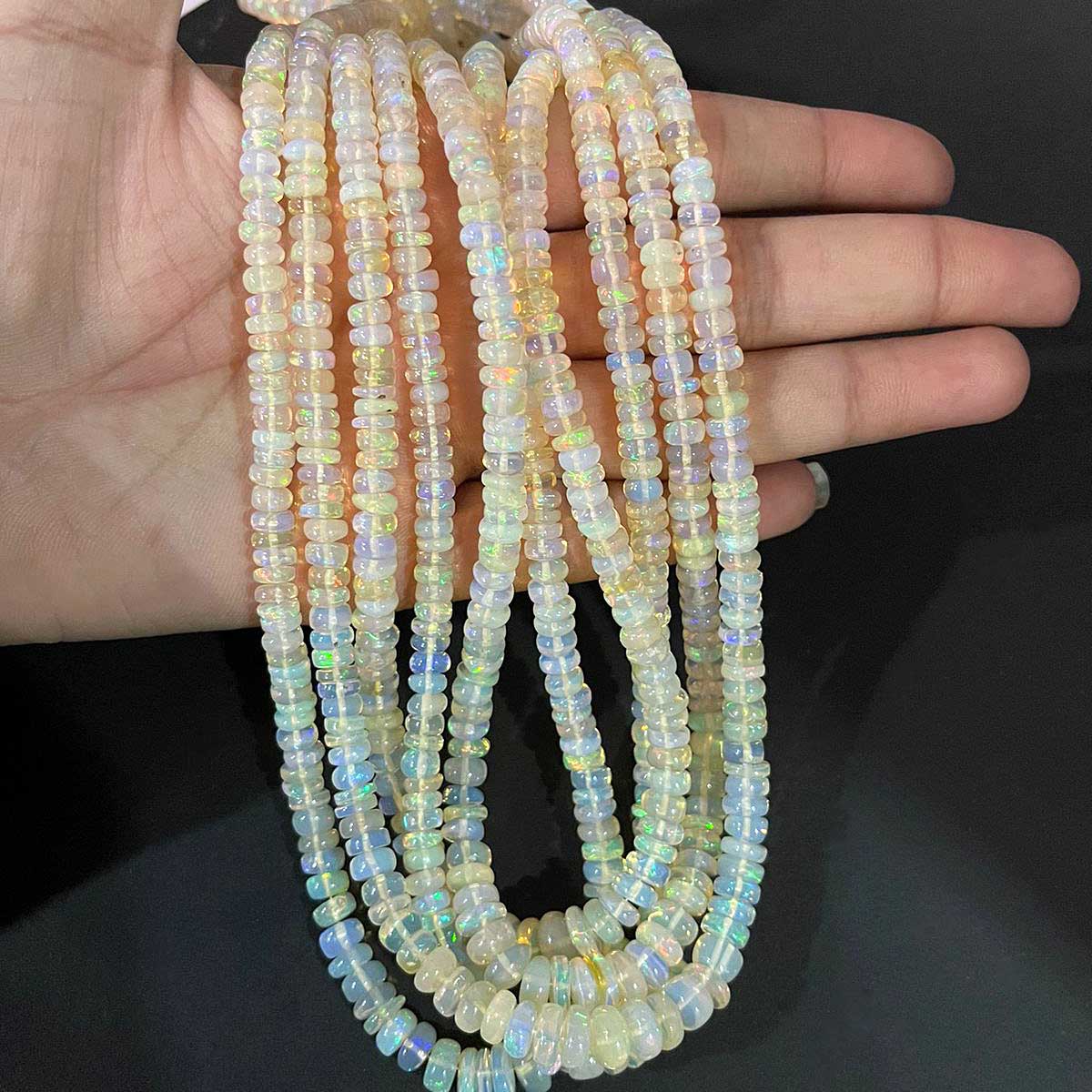 1 Long Strand Ethiopian Welo Opal Smooth Rondelles - Ethiopian Roundelles Beads 5mm-9mm 16 Inches BR03185