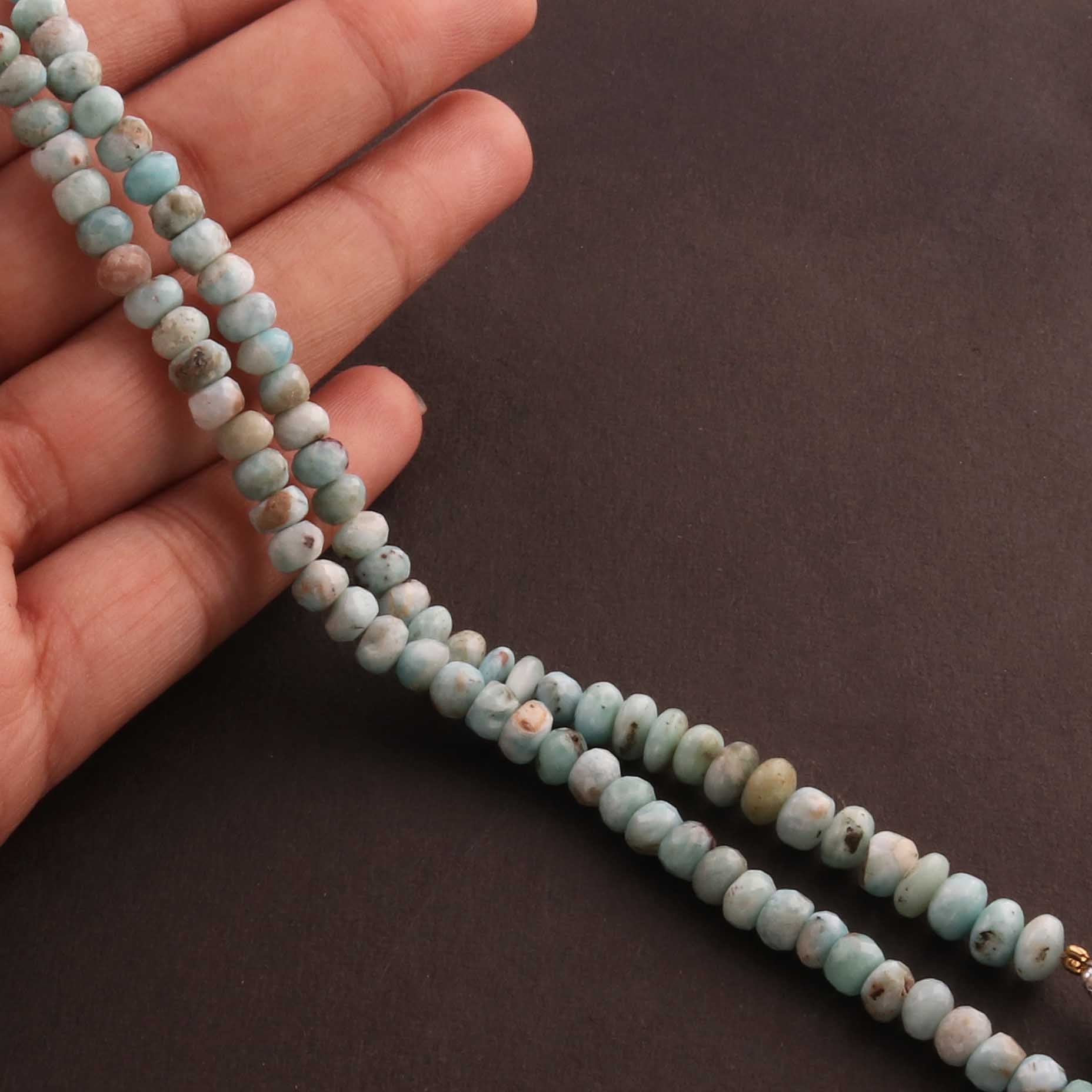1 Long Strand Larimar Faceted Roundels -Round Shape Roundels 6mm-8 Inches BR1521