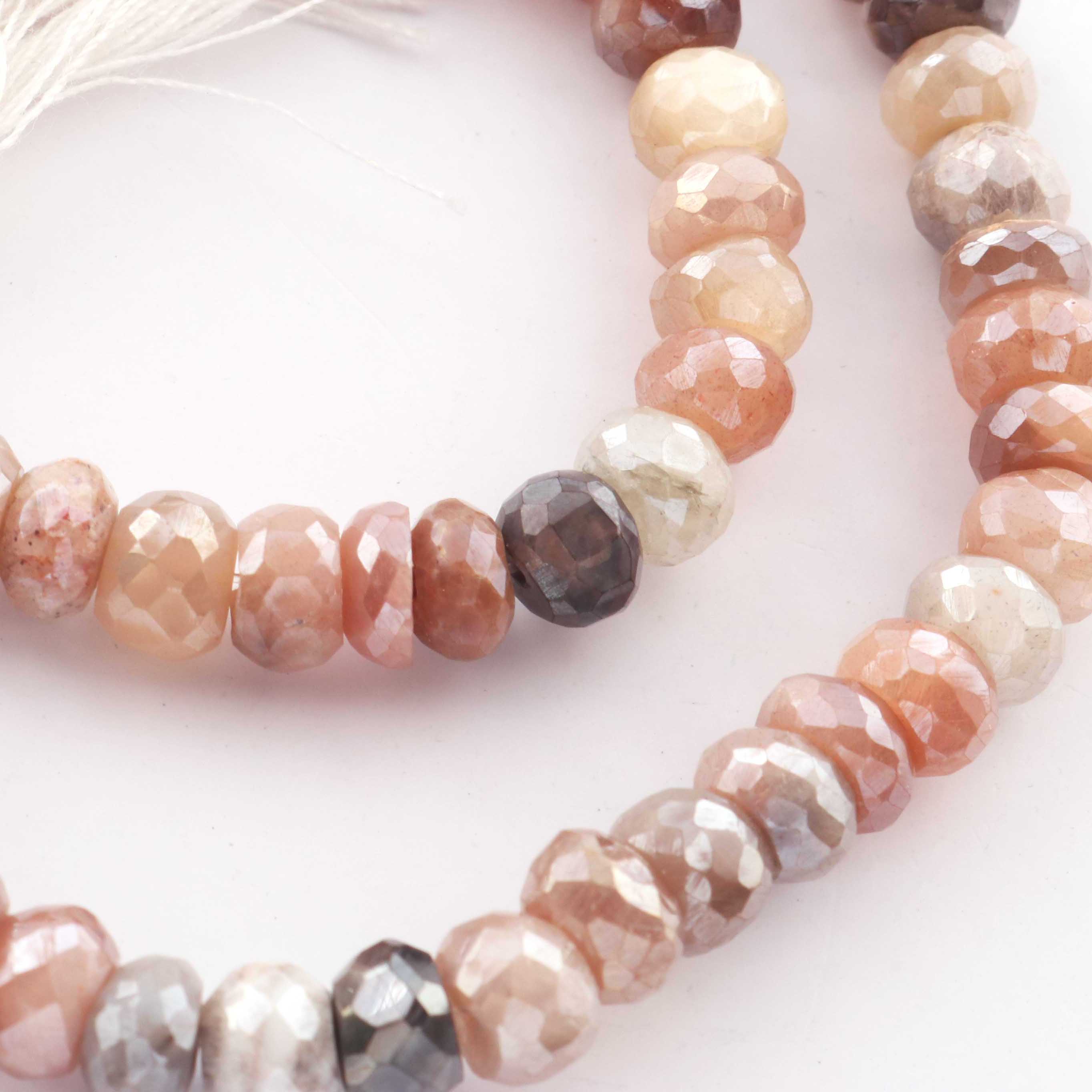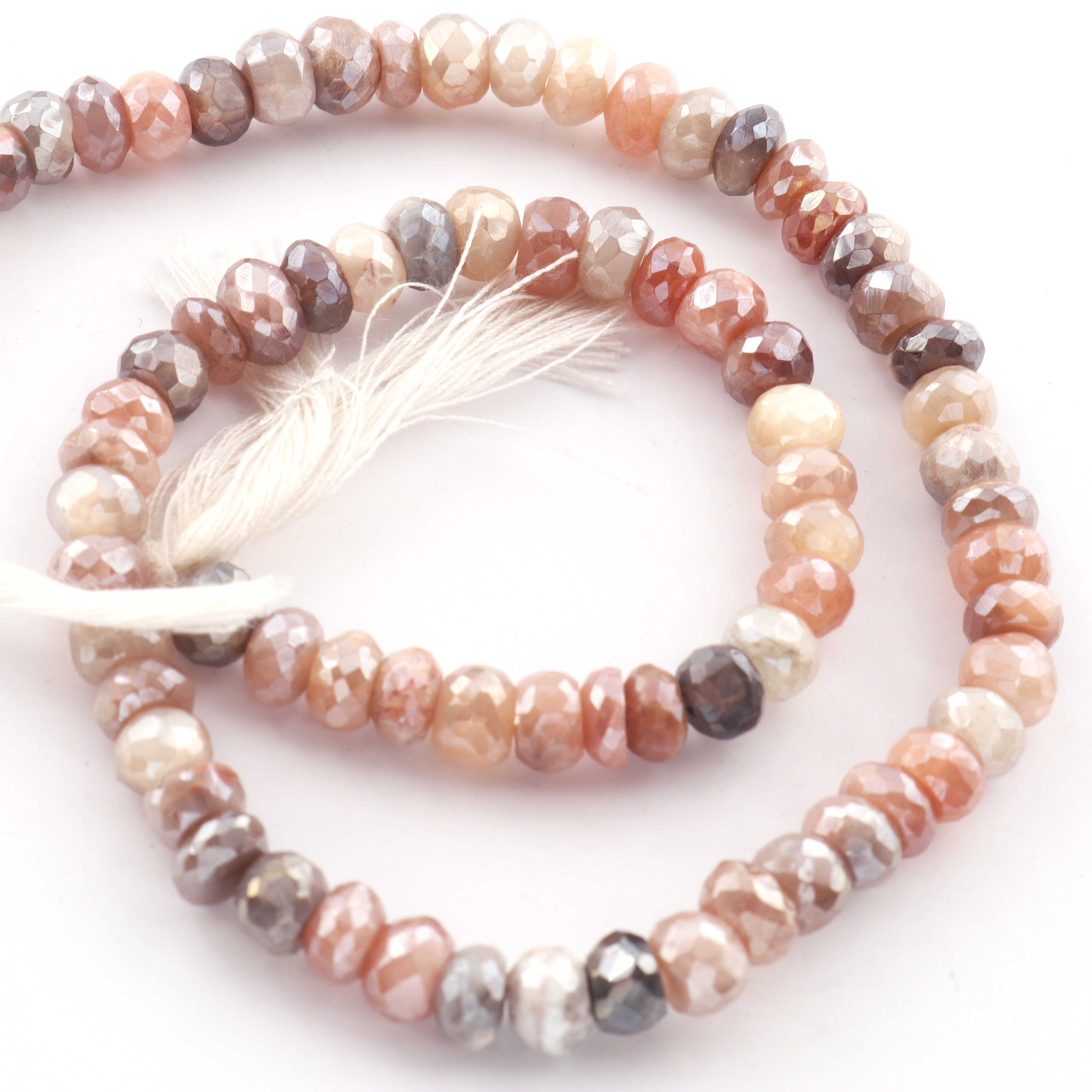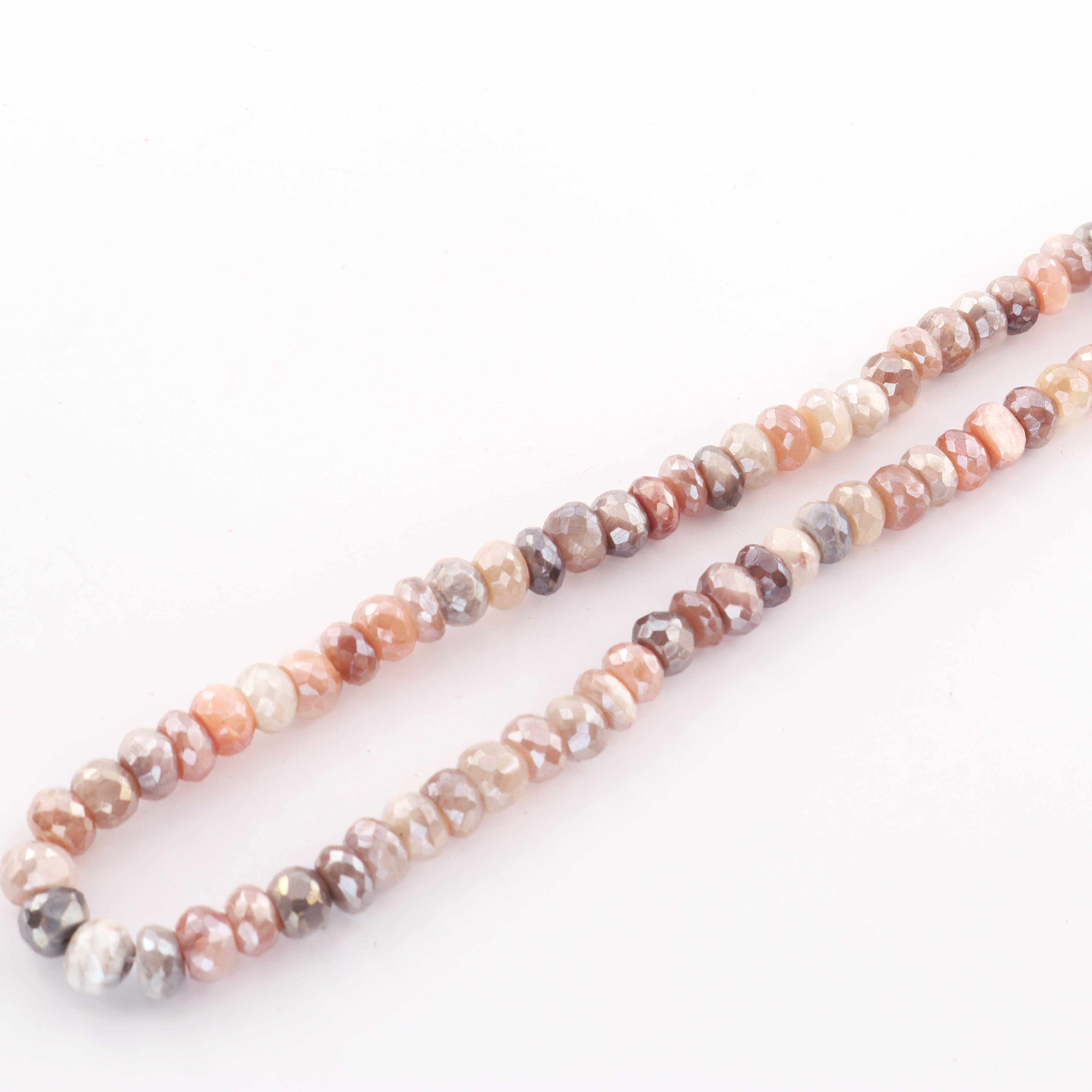 1 Long Strand Multi Moonstone Silver coated Faceted Roundels - Multi Moonstone Roundels Beads 6mm-7mm 13. Inches long BR605