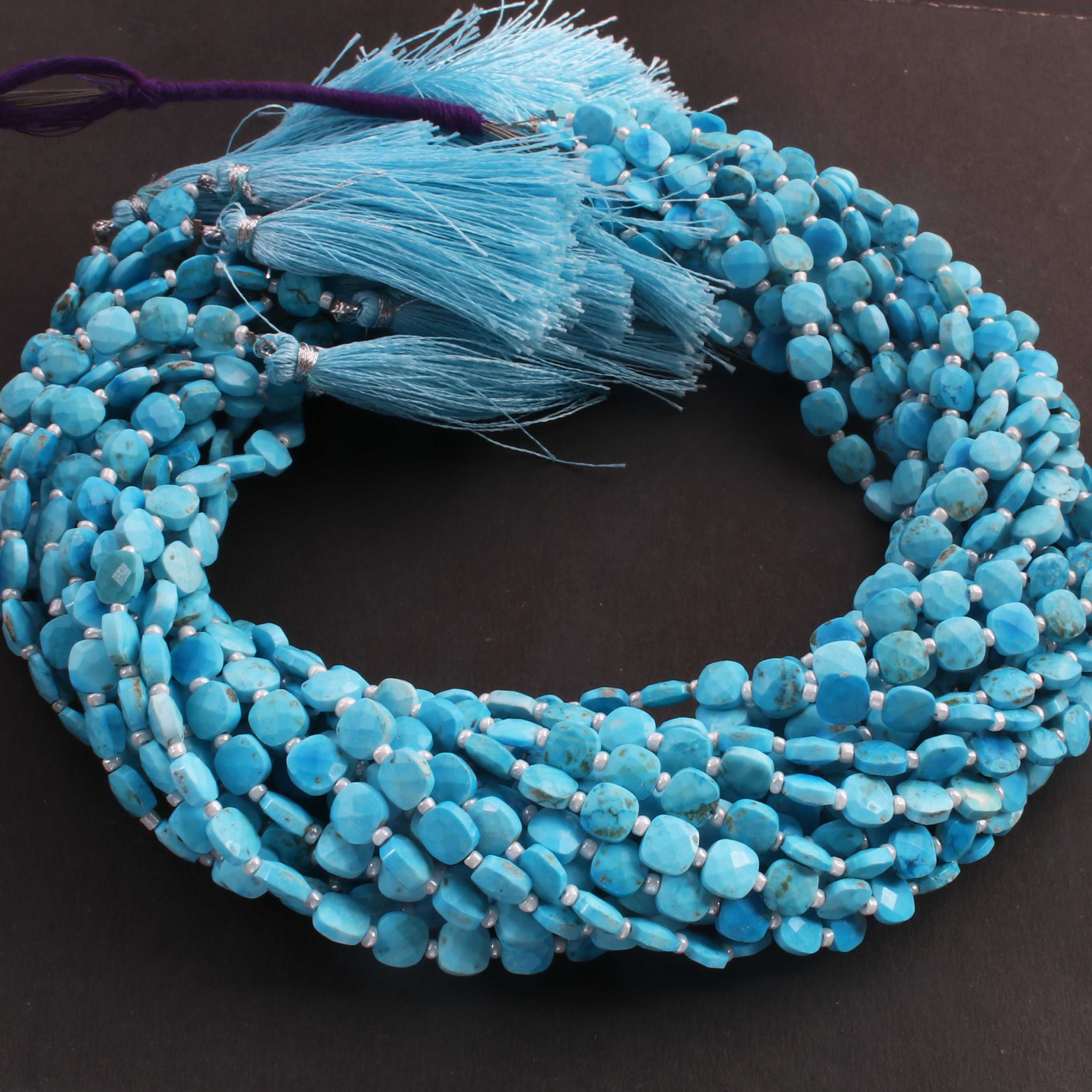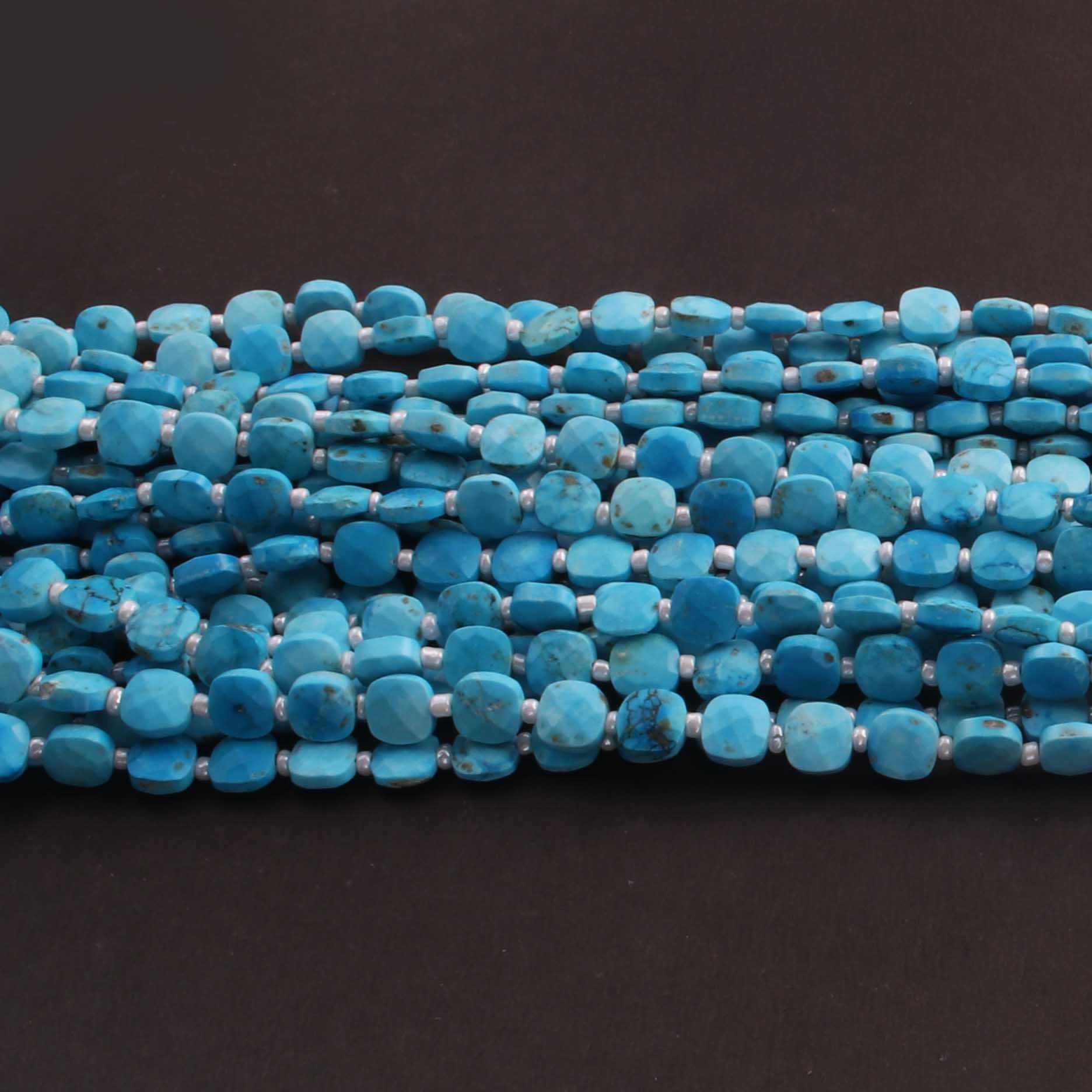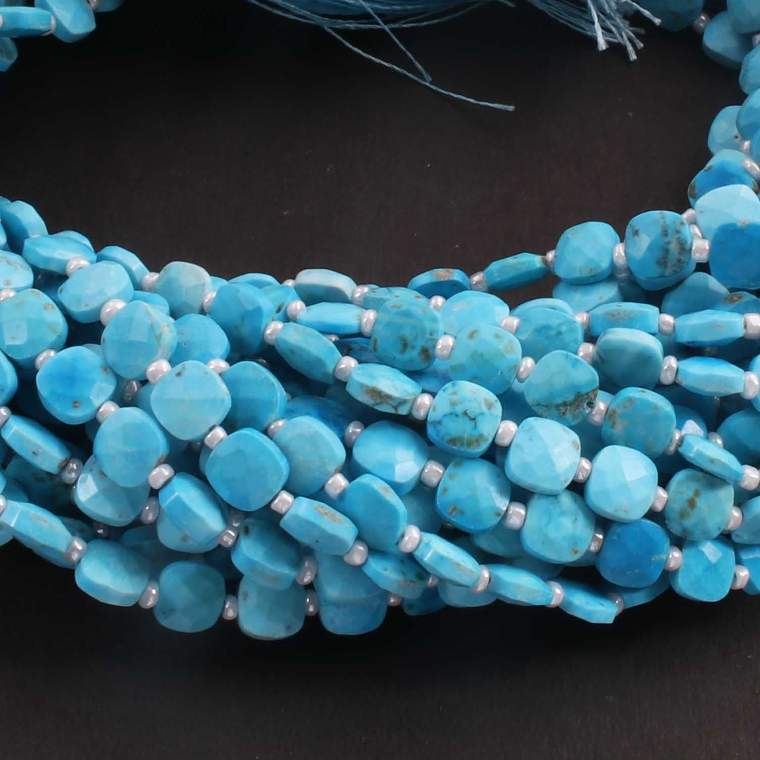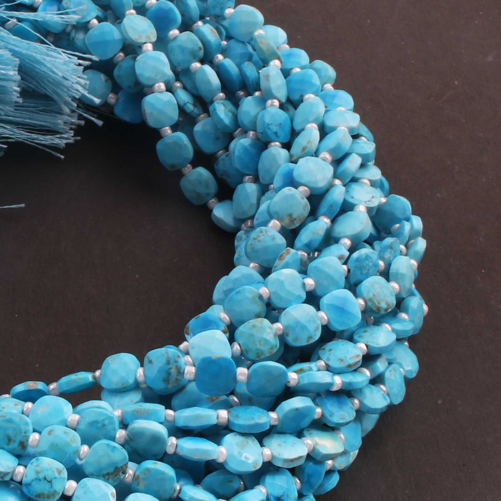 1  Long Strand Turquoise  Faceted Briolettes - Cushion Shape Briolettes  6mm-7mm -14 Inches BR02663