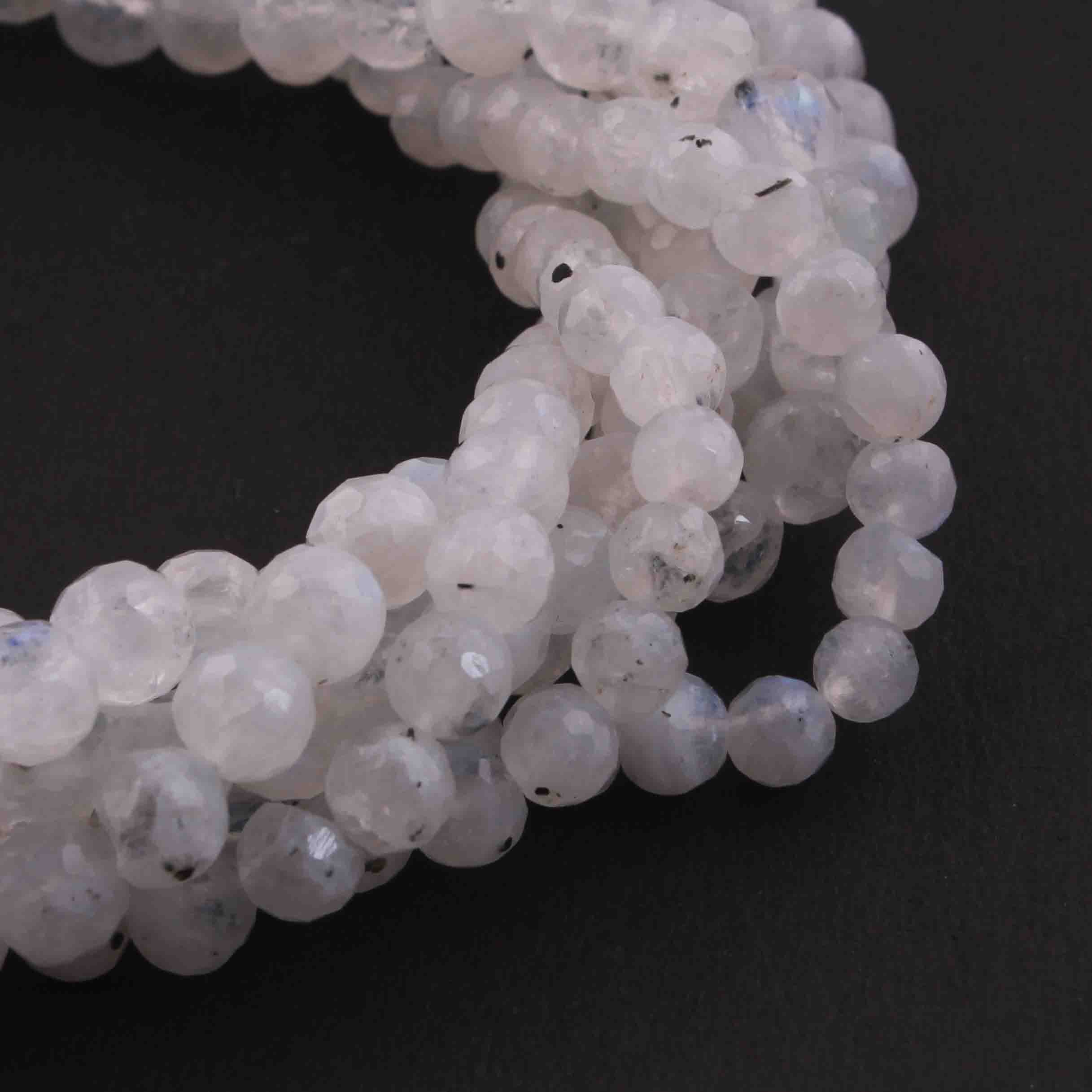 1 Long Strand White Labradorite Faceted Briolettes - Round Shape Briolettes , Jewelry Making Supplies 5mm-6mm 13.5 Inches BR0639