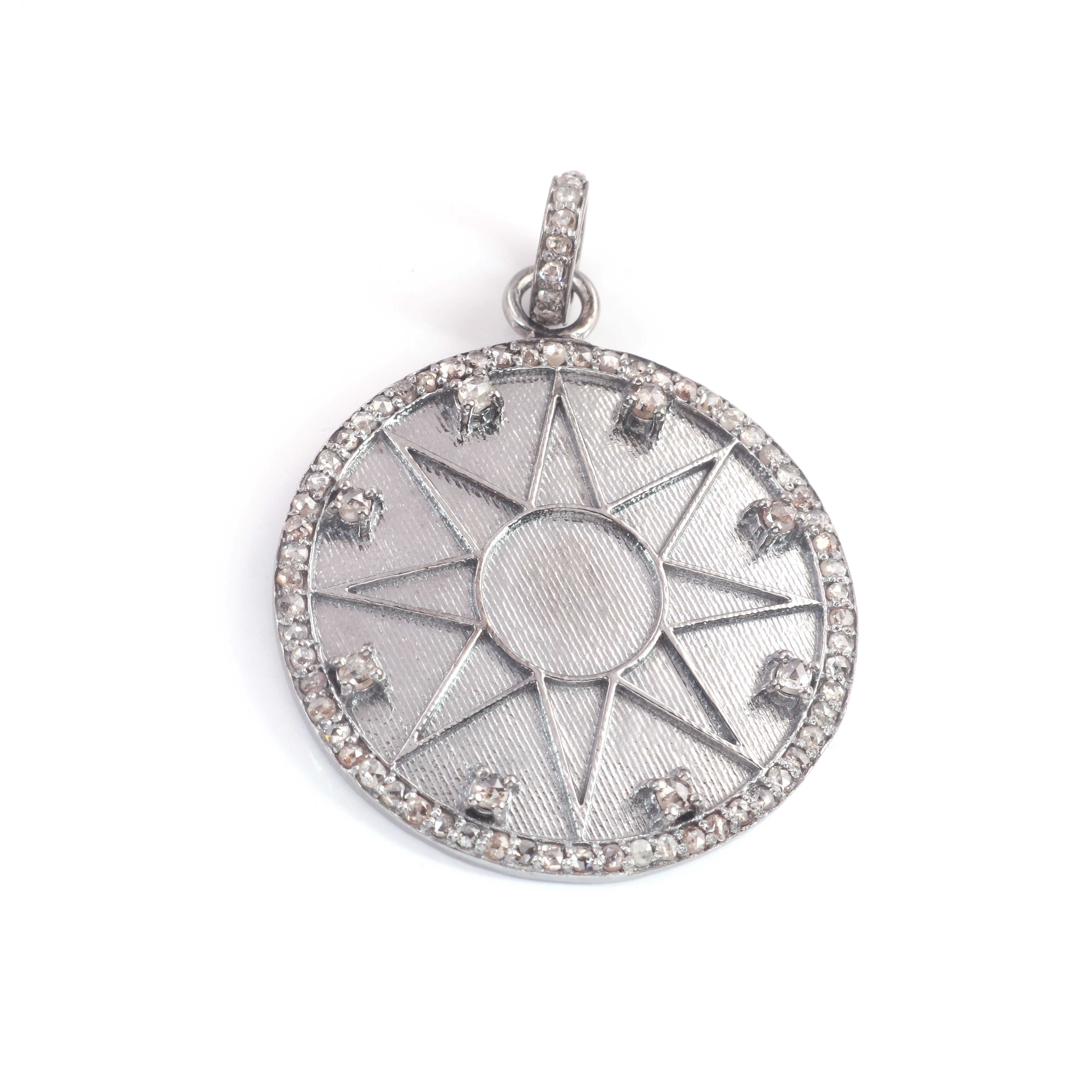 1 PC Antique Finish Pave Diamond Designer Round Pendant - 925 Sterling Silver- Yellow Gold -Diamond Pendant 36mmx31mm PD1978