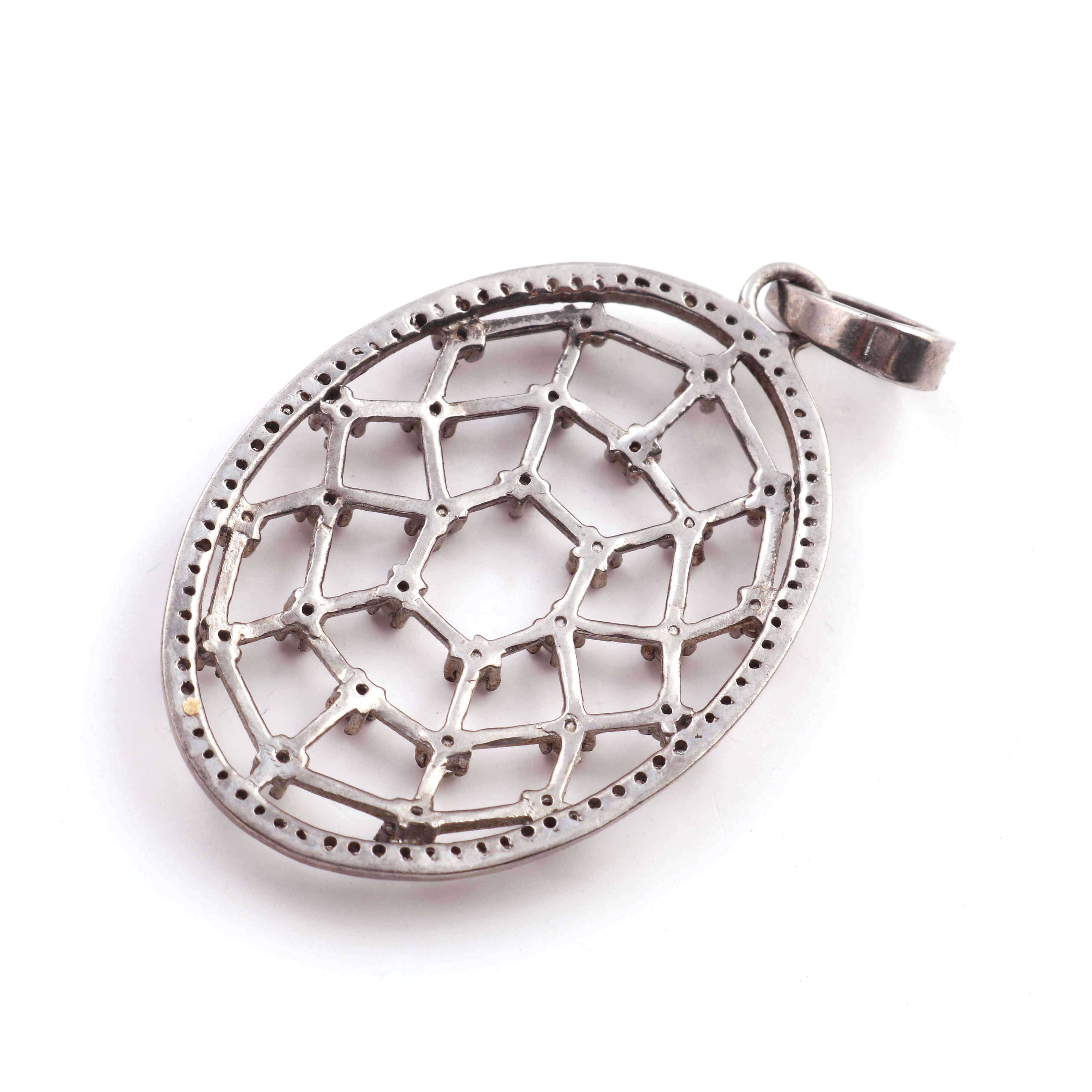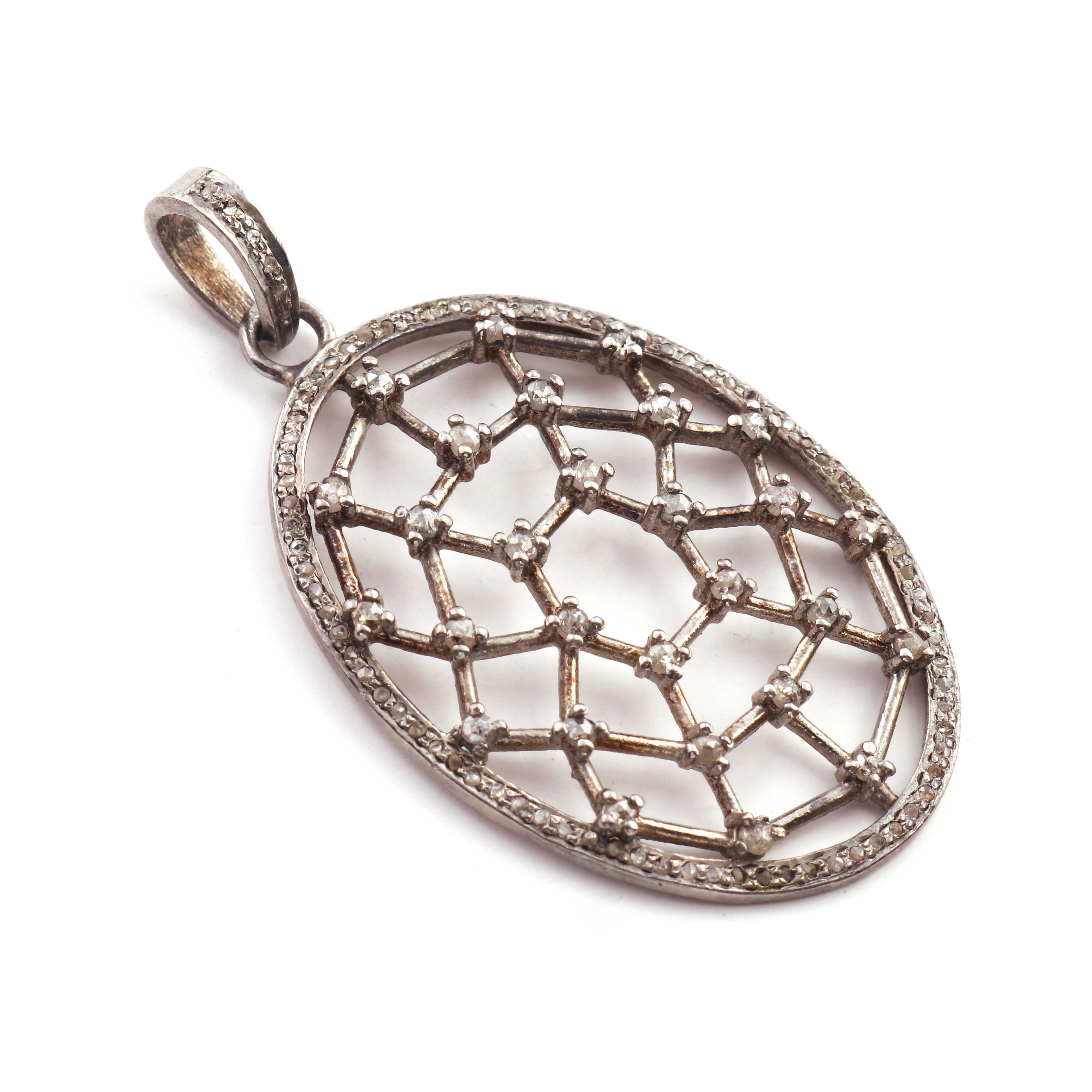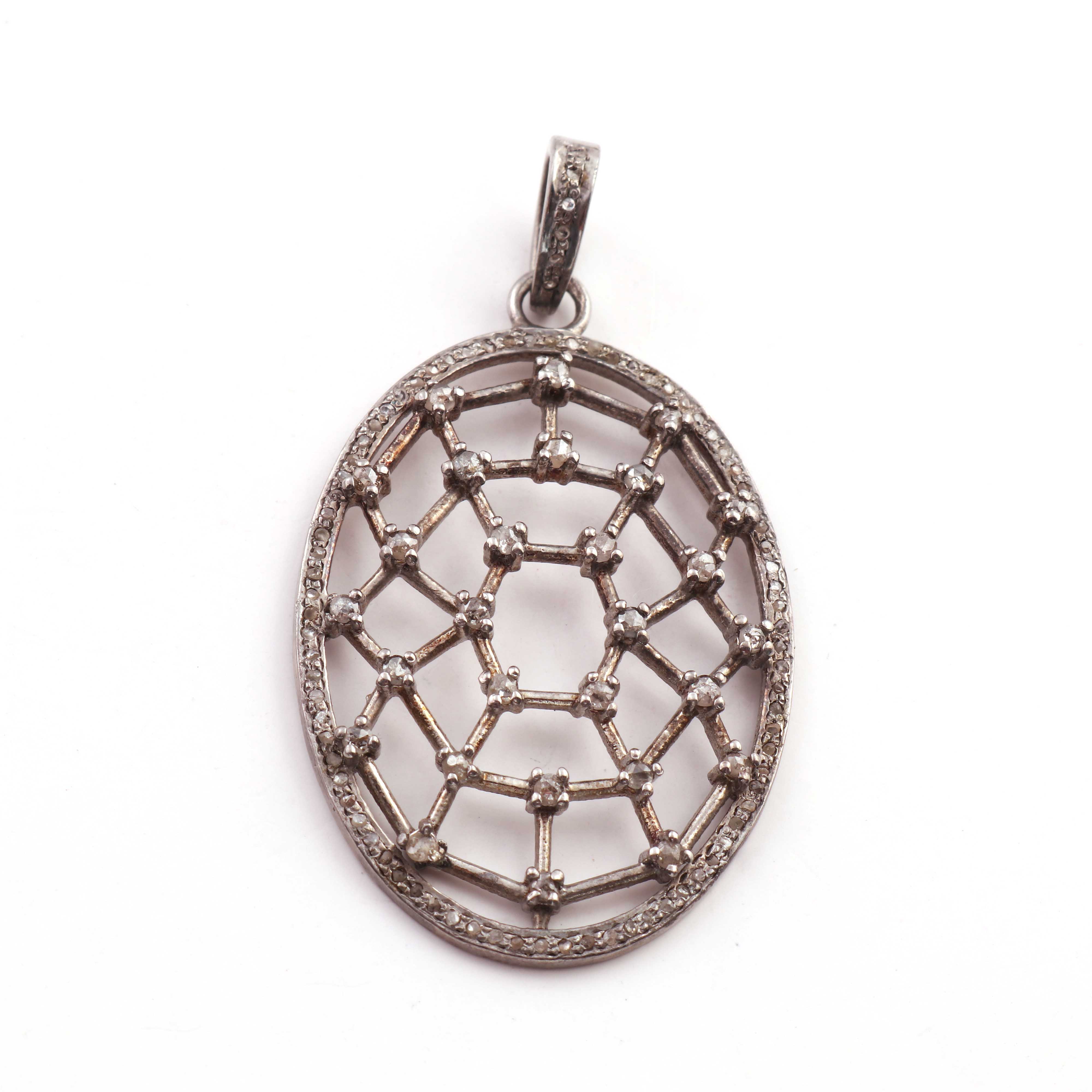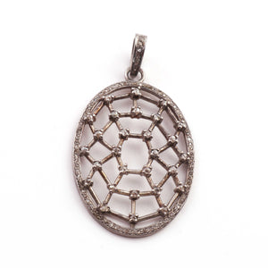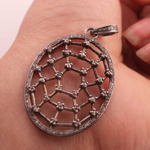 1 Pc Antique Finish Pave Diamond Oval With Double Cut Diamond Pendant - 925 Sterling Silver - Necklace Pendant 44mmx29mm PD1162