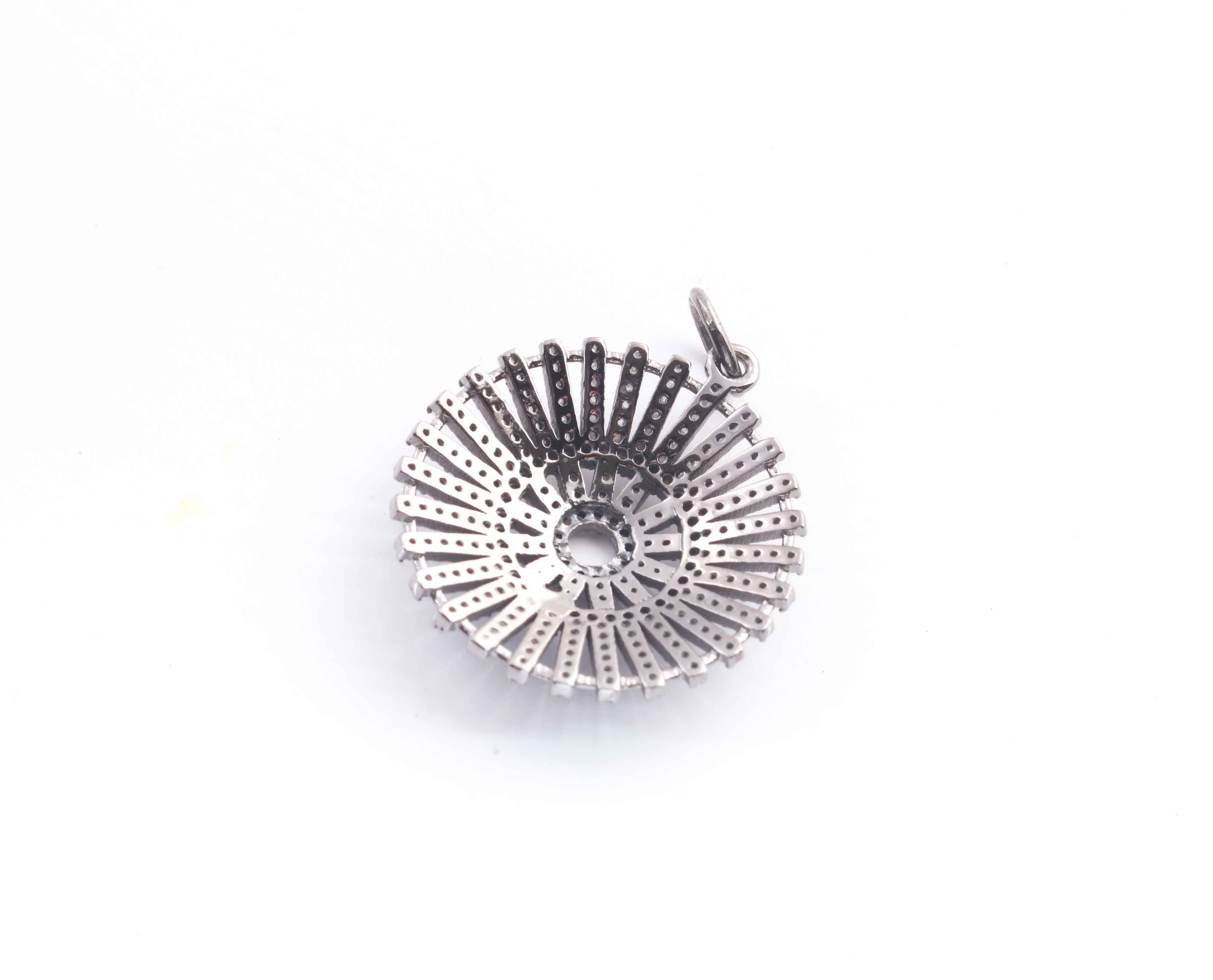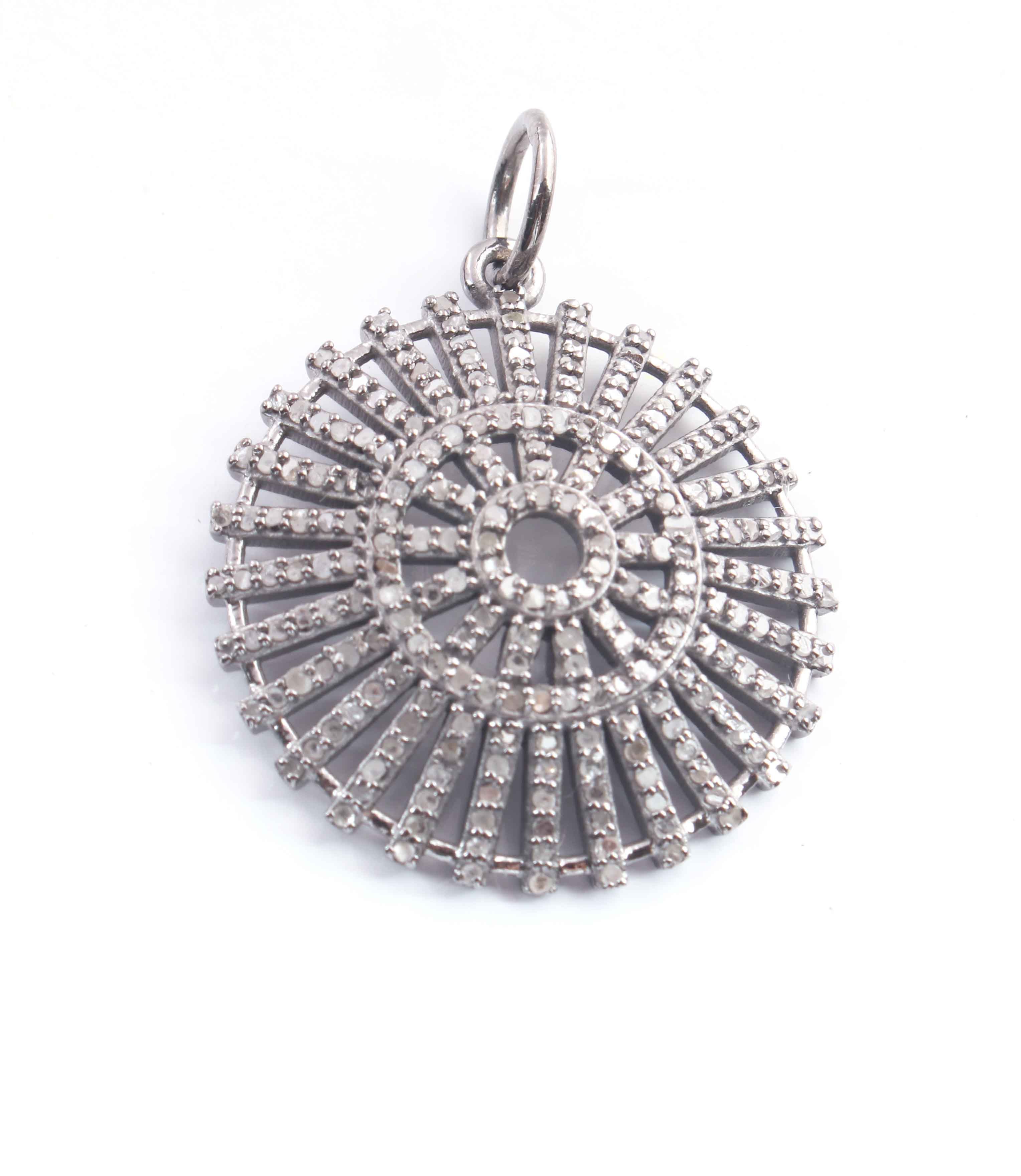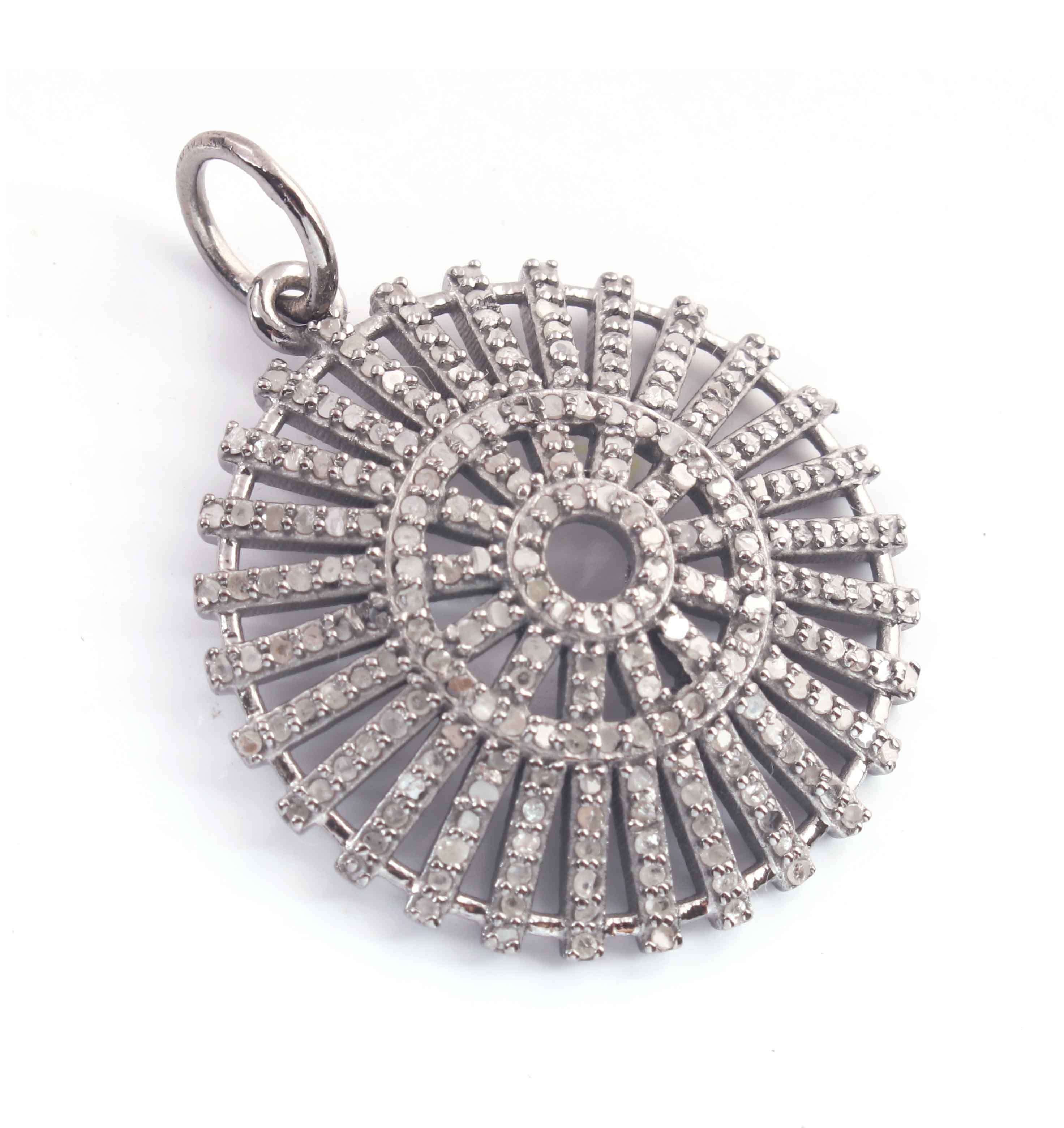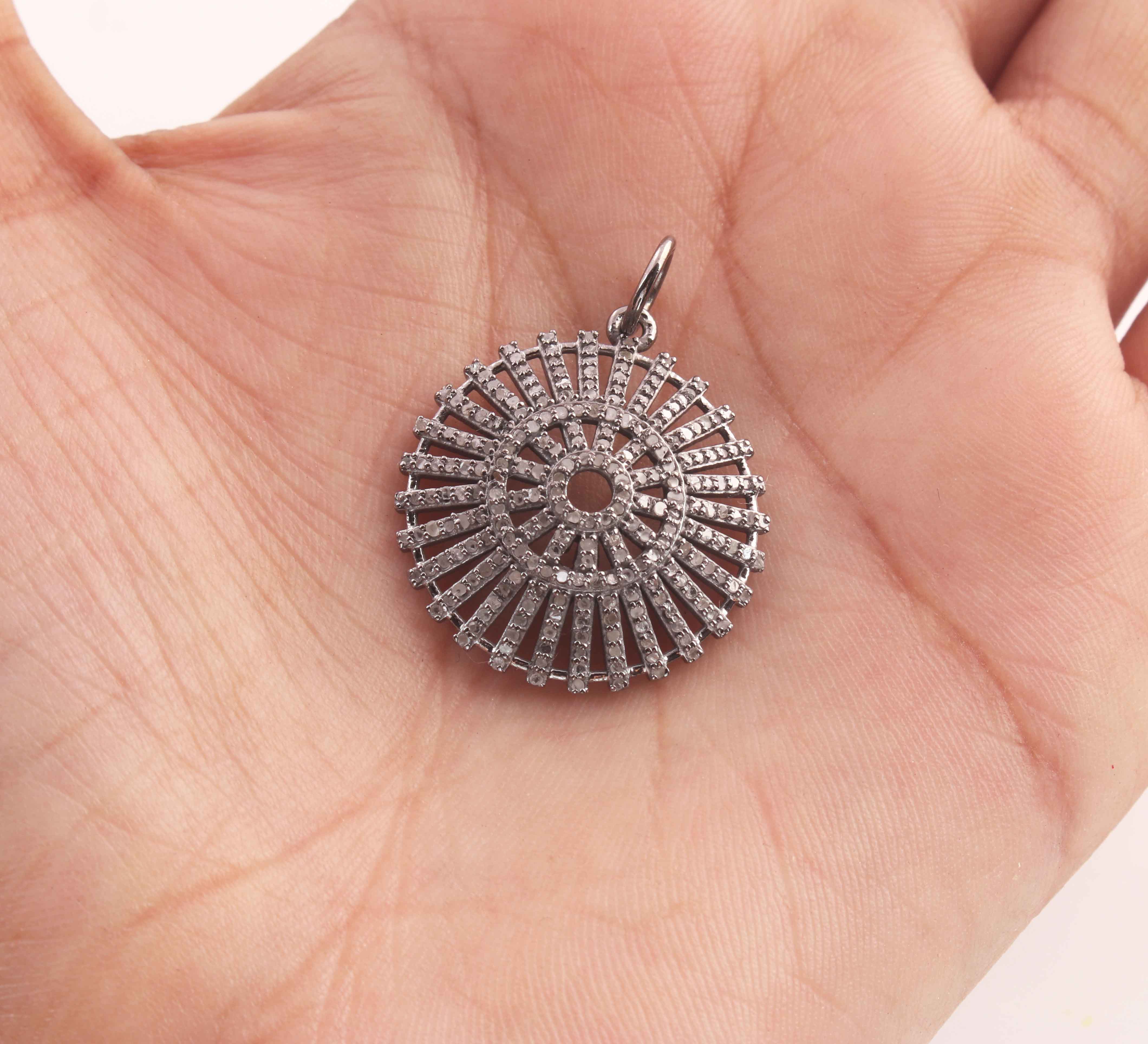 1 Pc Beautiful Antique Finish Pave Diamond Round Pendant - 925 Sterling Silver - Necklace Pendant 31mmx24mm PD1010