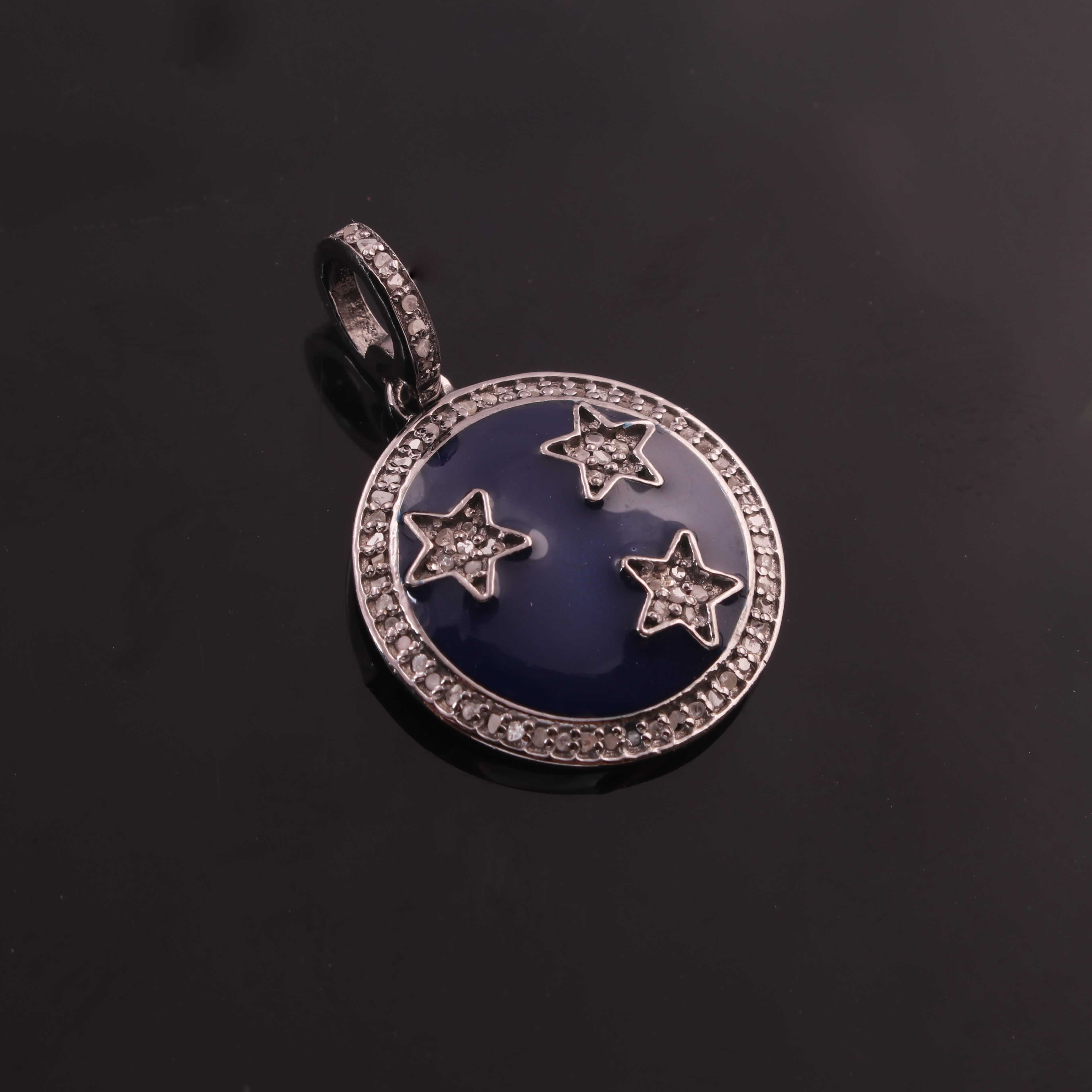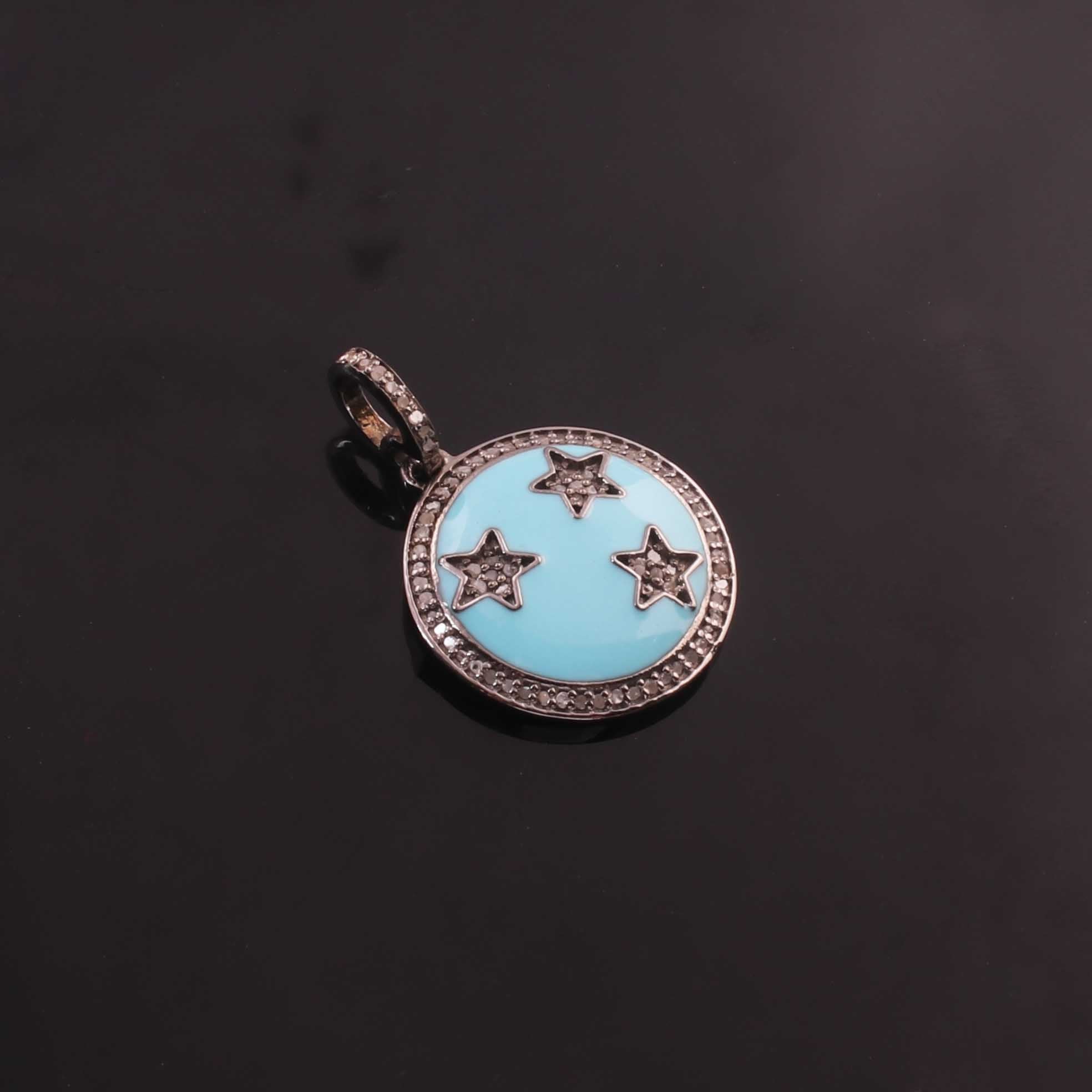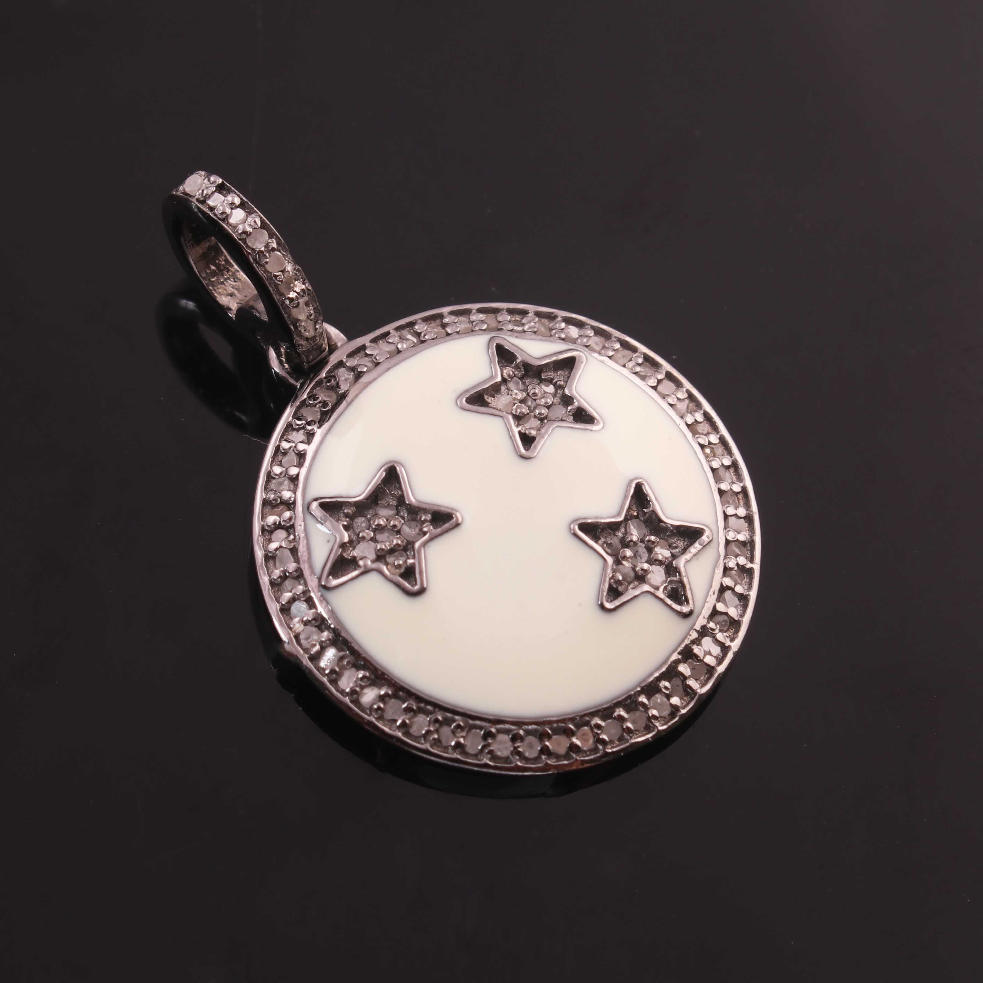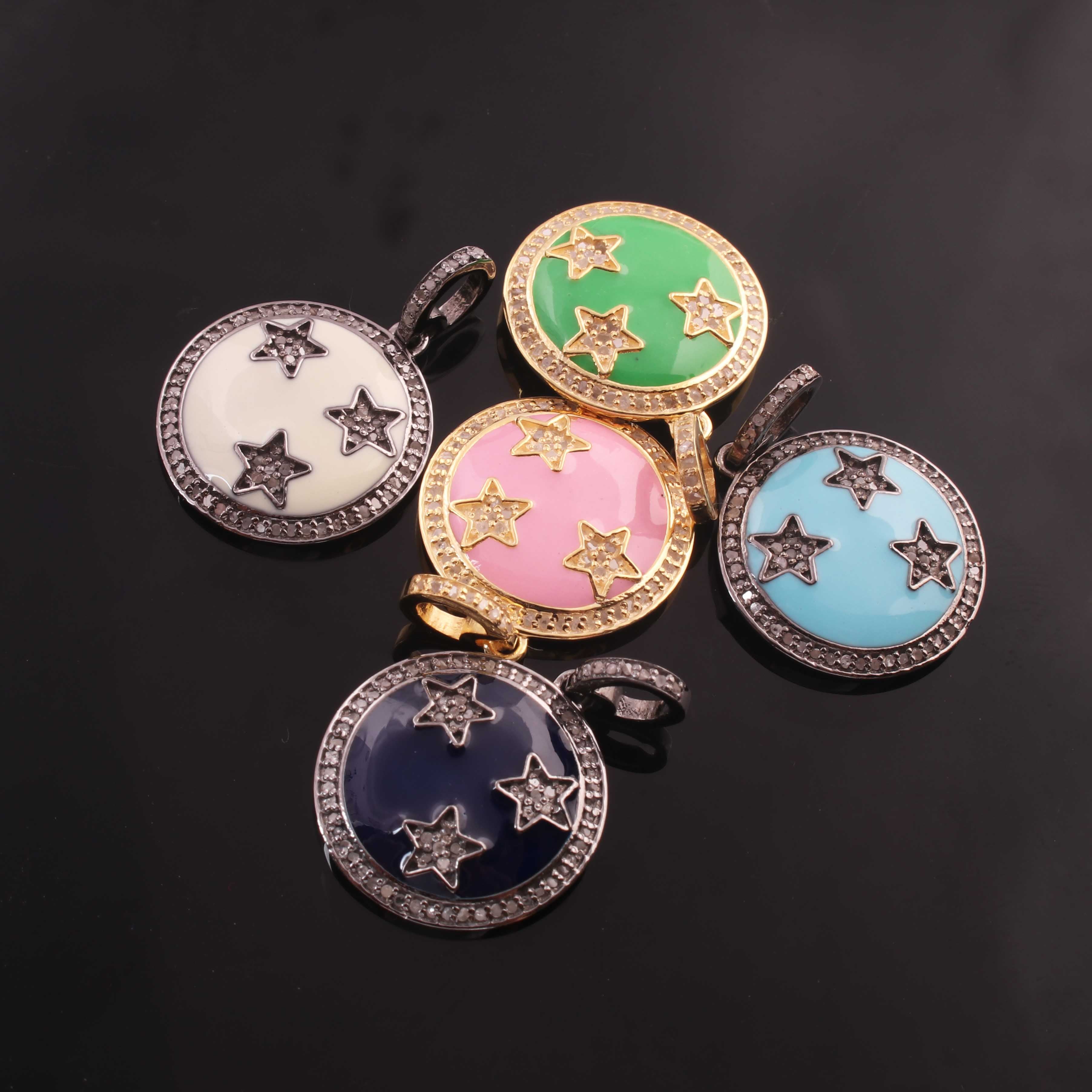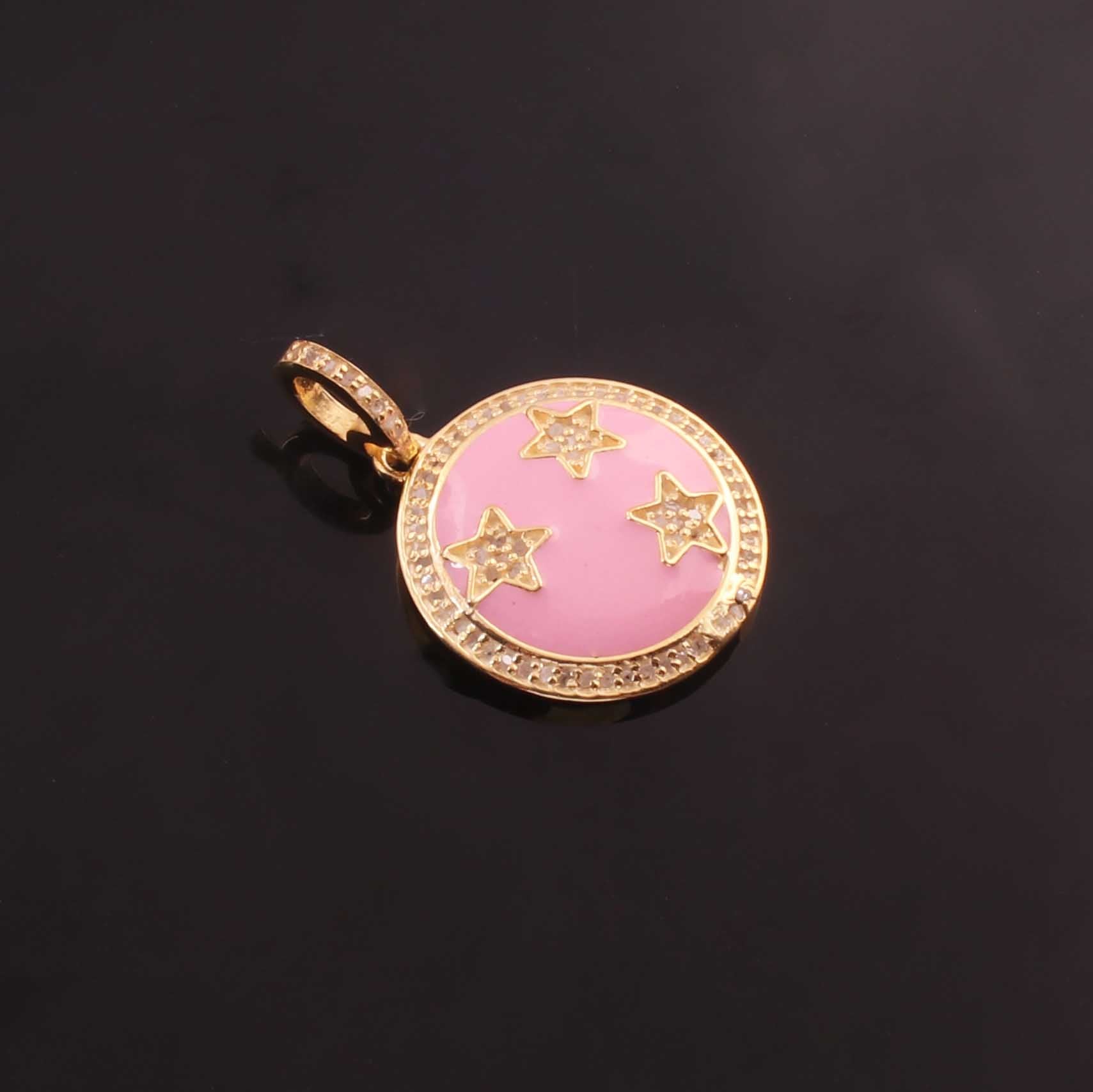 1 Pc Beautiful Pave Diamond Round Bakelite Charm with Star Over 925 Sterling Silver & Yellow Gold Vermeil Enamel Designer Round Pendant 20mm PD1936