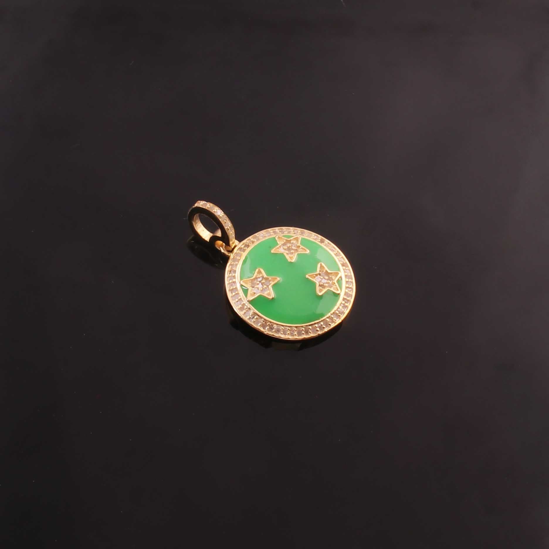 1 Pc Beautiful Pave Diamond Round Bakelite Charm with Star Over 925 Sterling Silver & Yellow Gold Vermeil Enamel  Designer Round Pendant 20mm PD1936