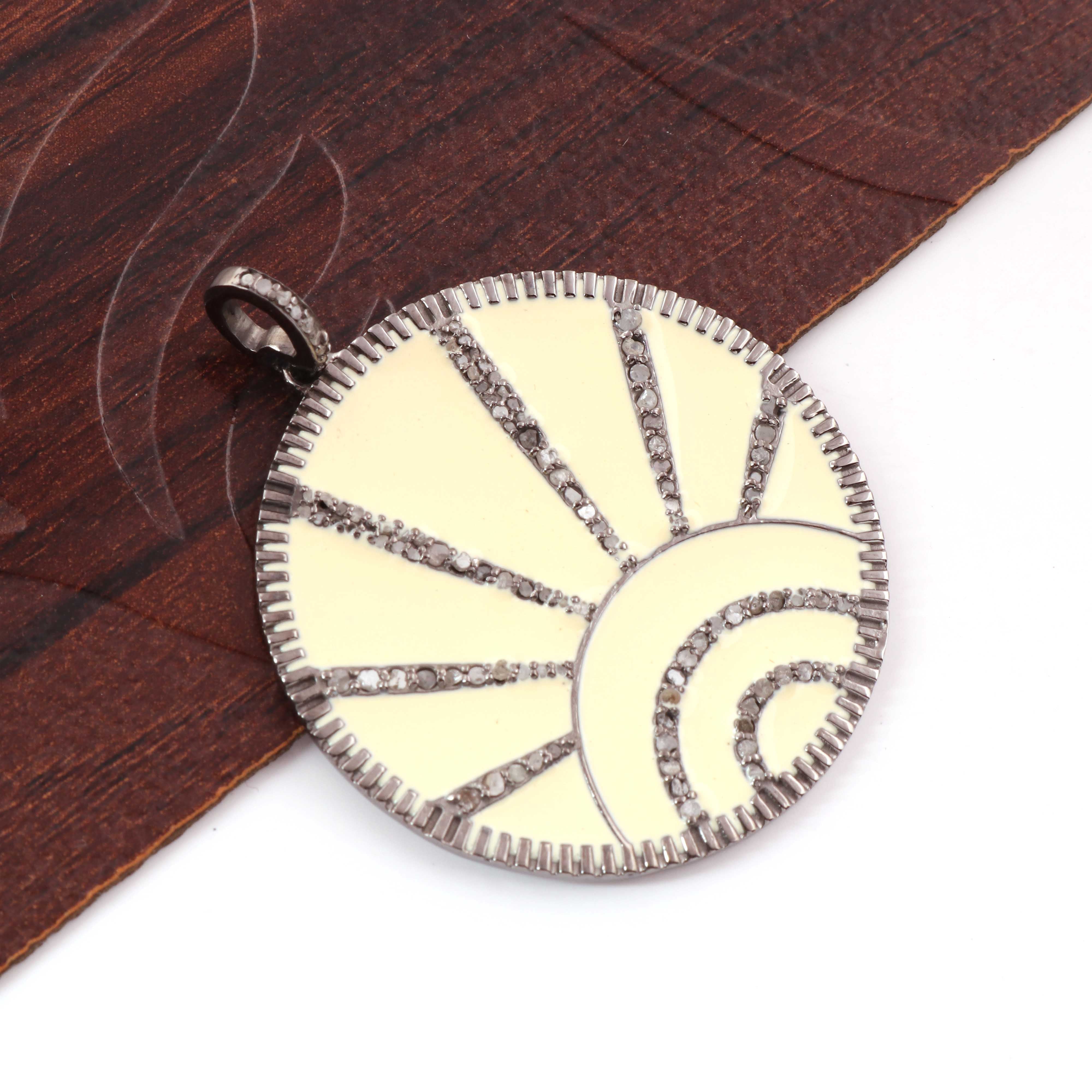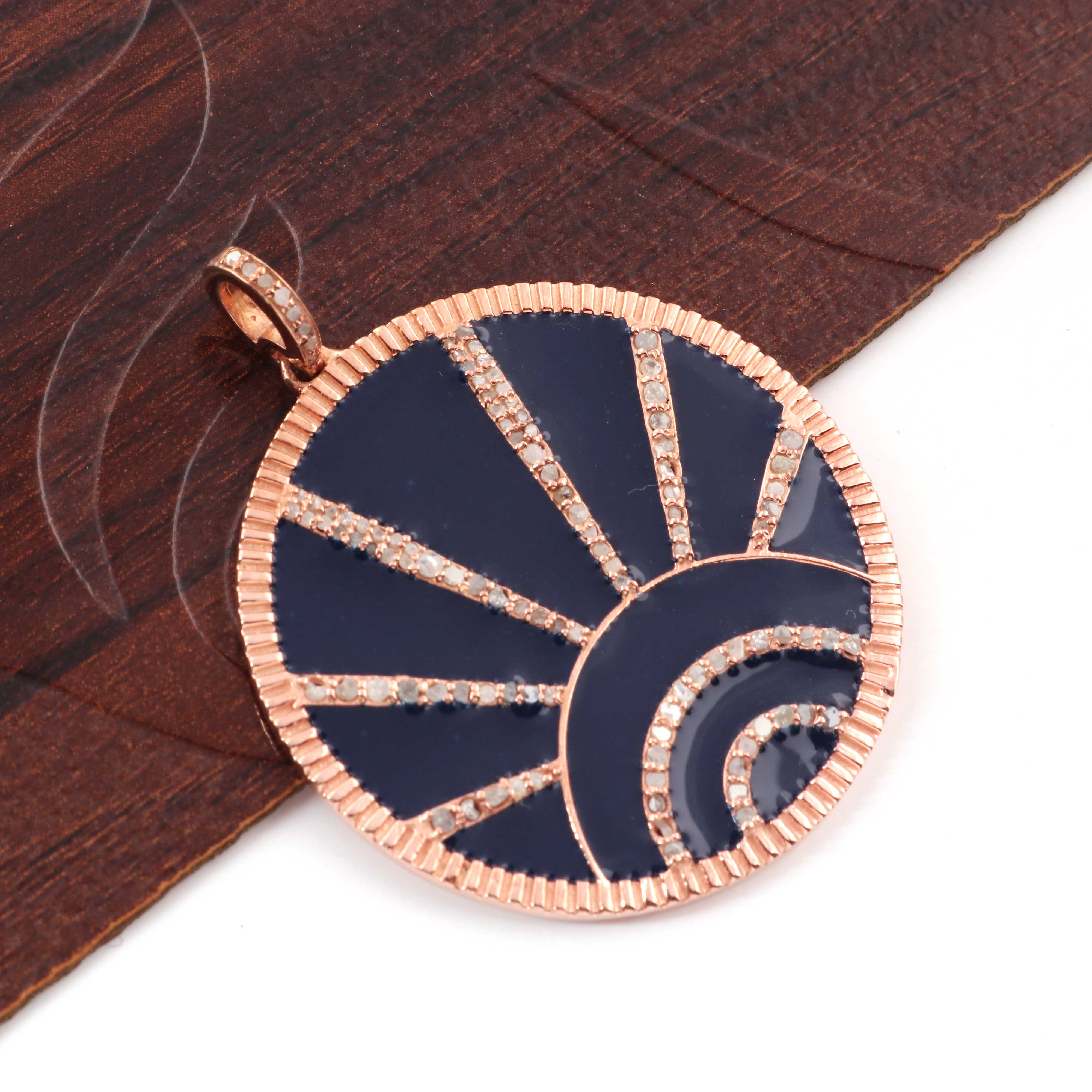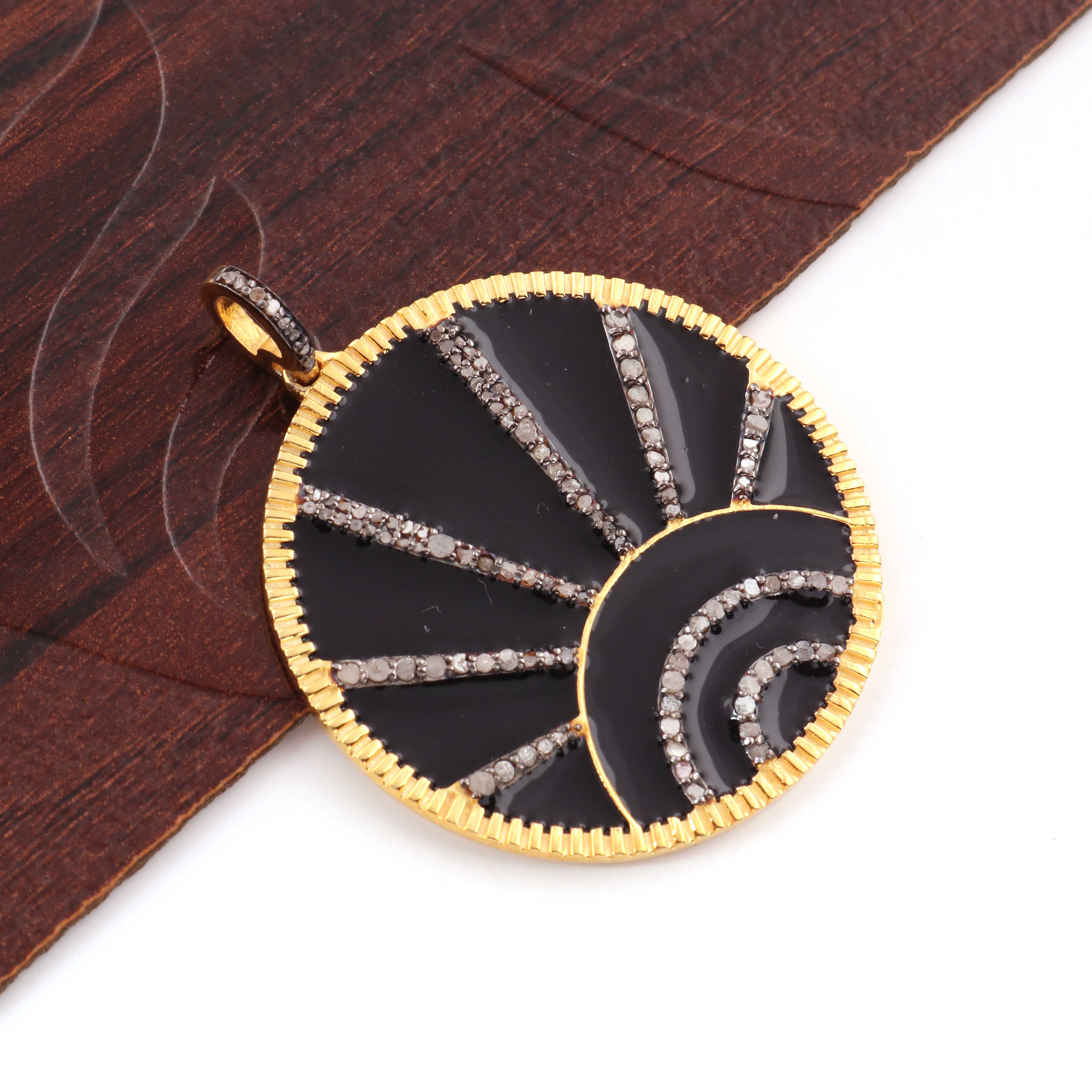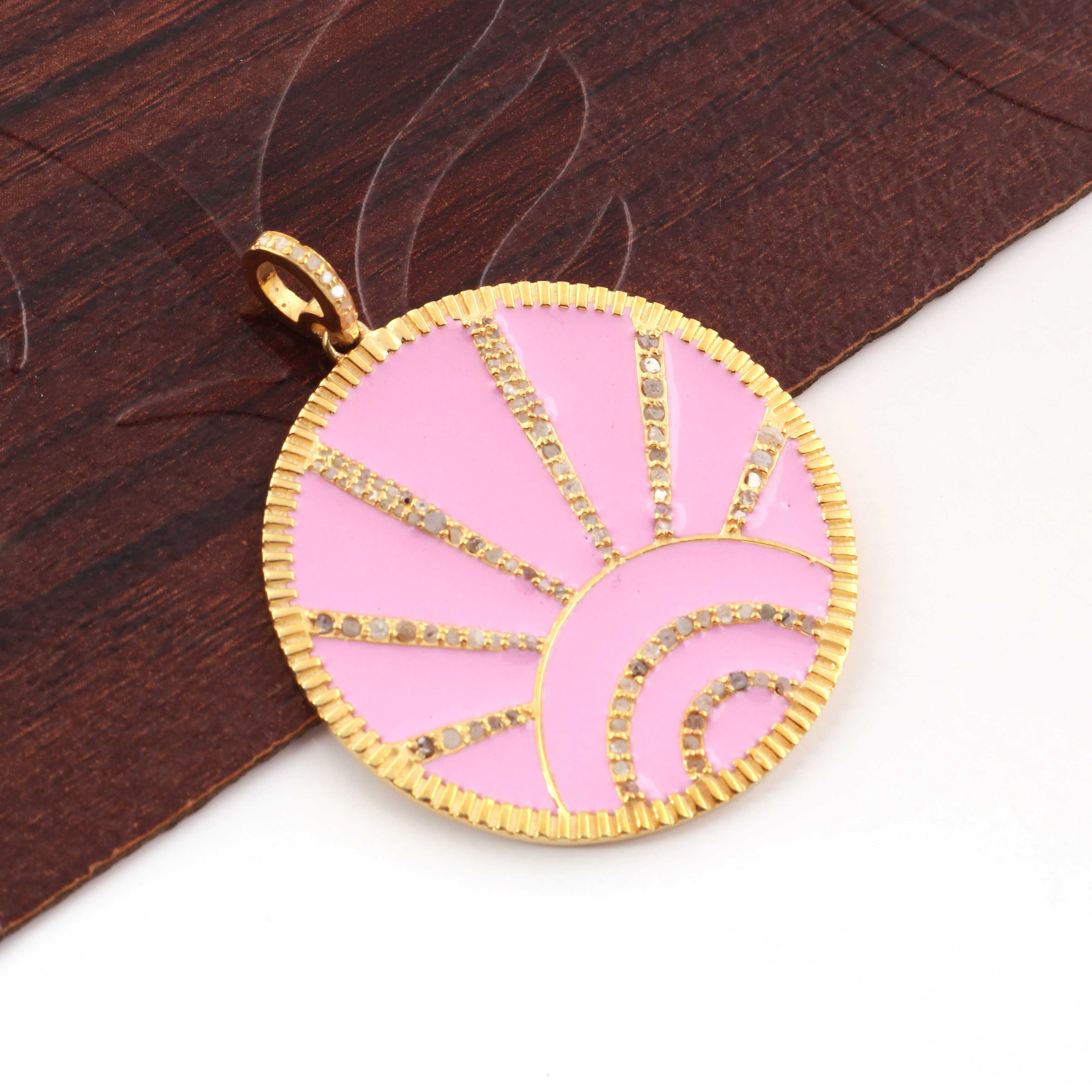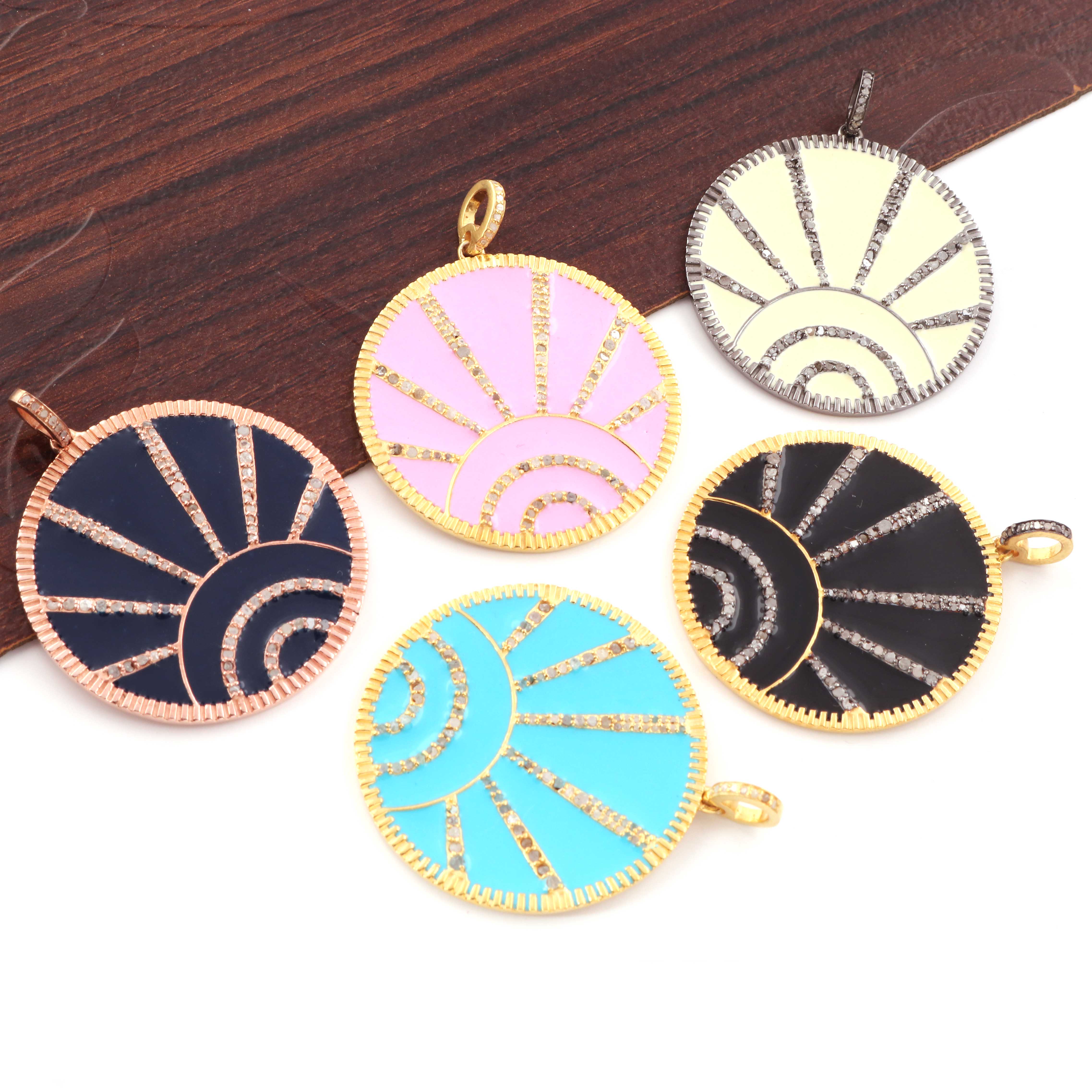 1 Pc Beautiful Pave Diamond Sun Bakelite Charm- 925 Sterling Silver ,Vermeil ,Yellow & Rose Gold Vermeil Enamel Designer Sun Pendant 36mm PD1782
