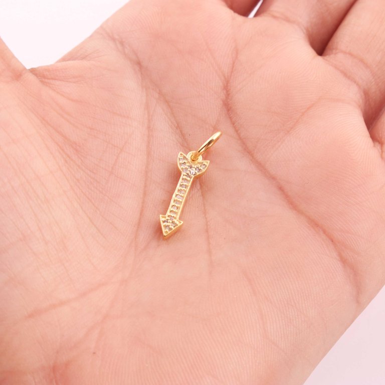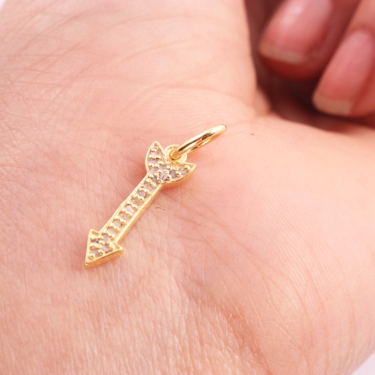 1 PC Pave Diamond Arrow Charm Yellow Gold Vermeil Pendant , 20mmx5mm PDC00052