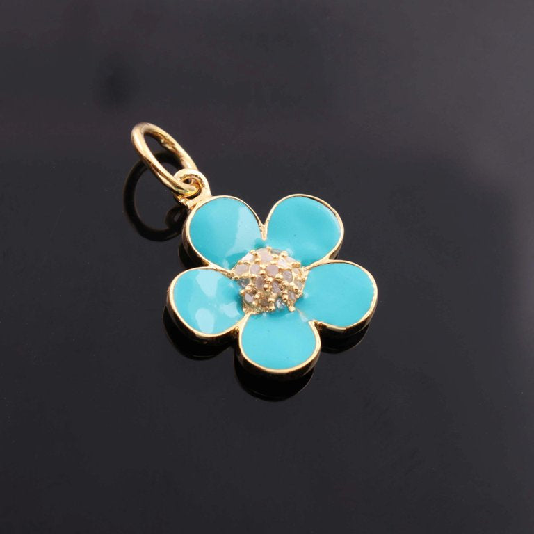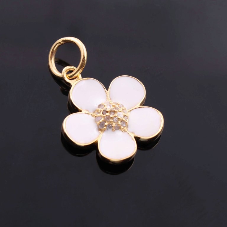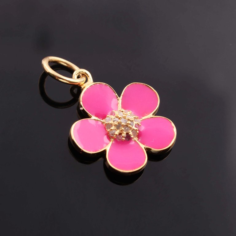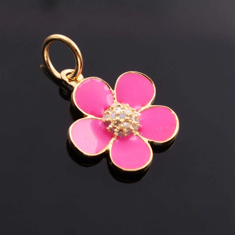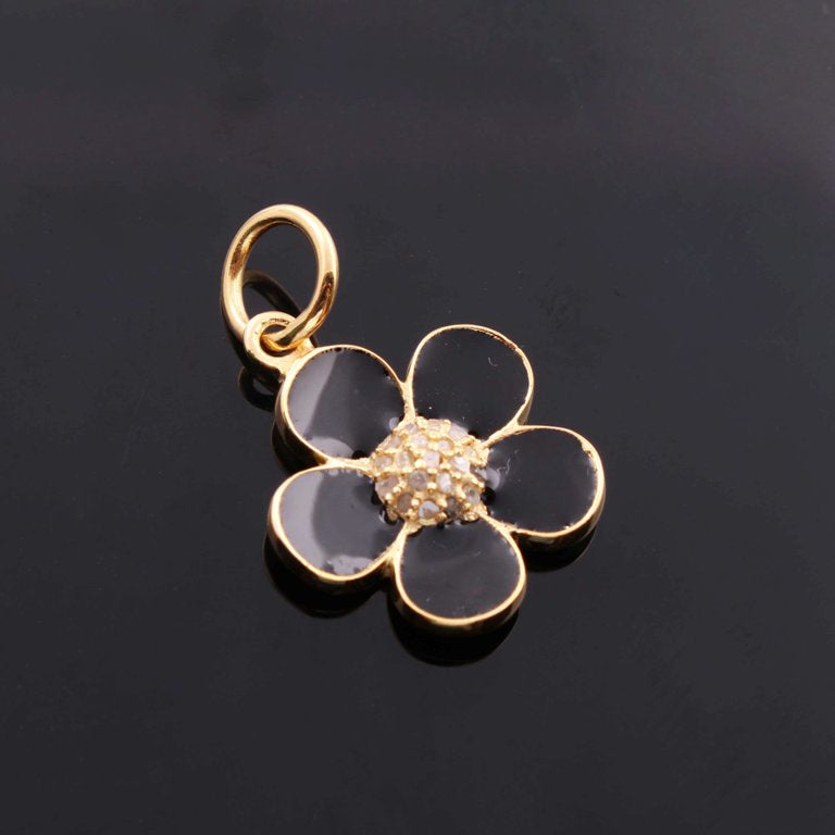 1 Pc Pave Diamond Bakelite Flower Yellow Gold Vermeil Pendant, Pave Diamond Jewelry 23mmx15mm PDC00173