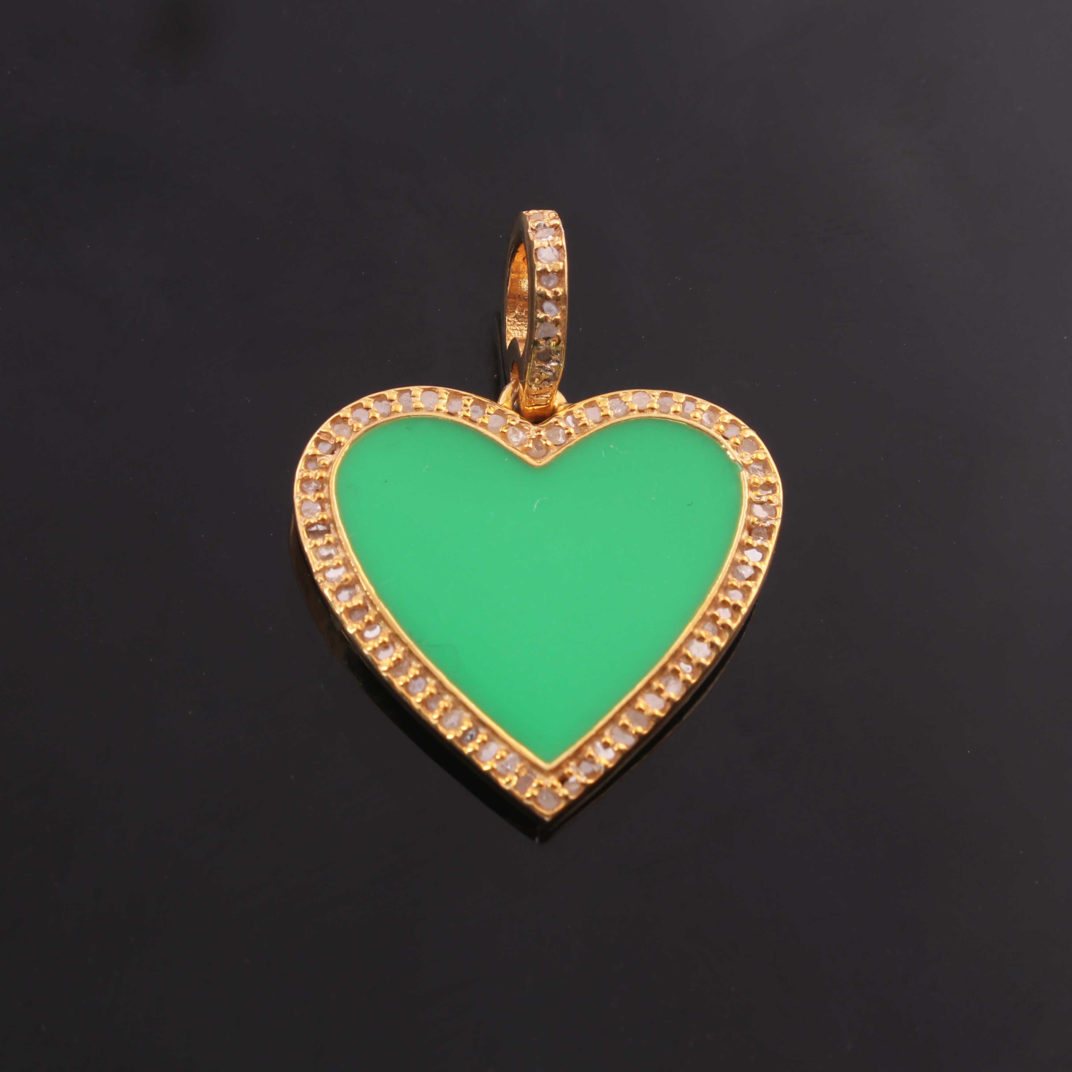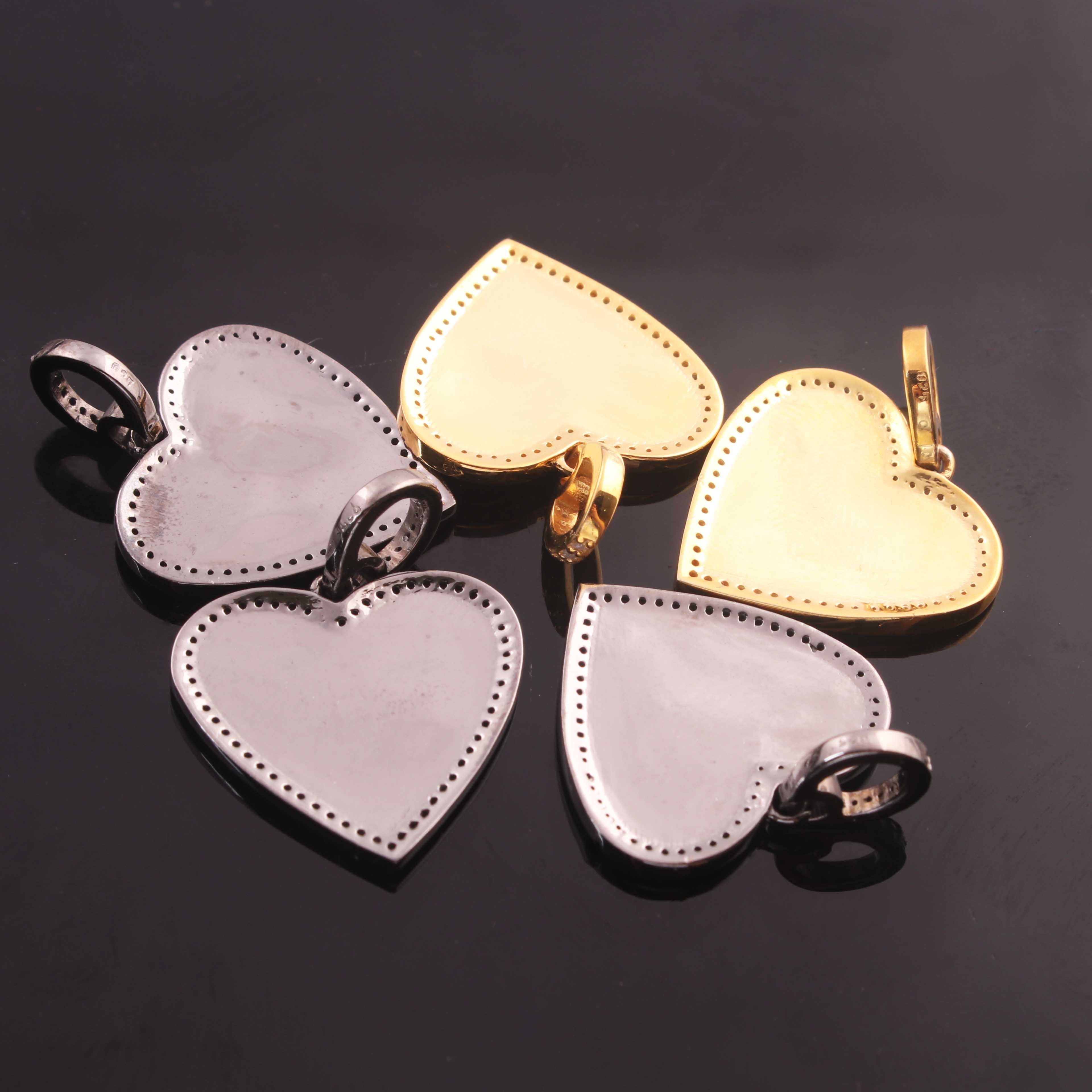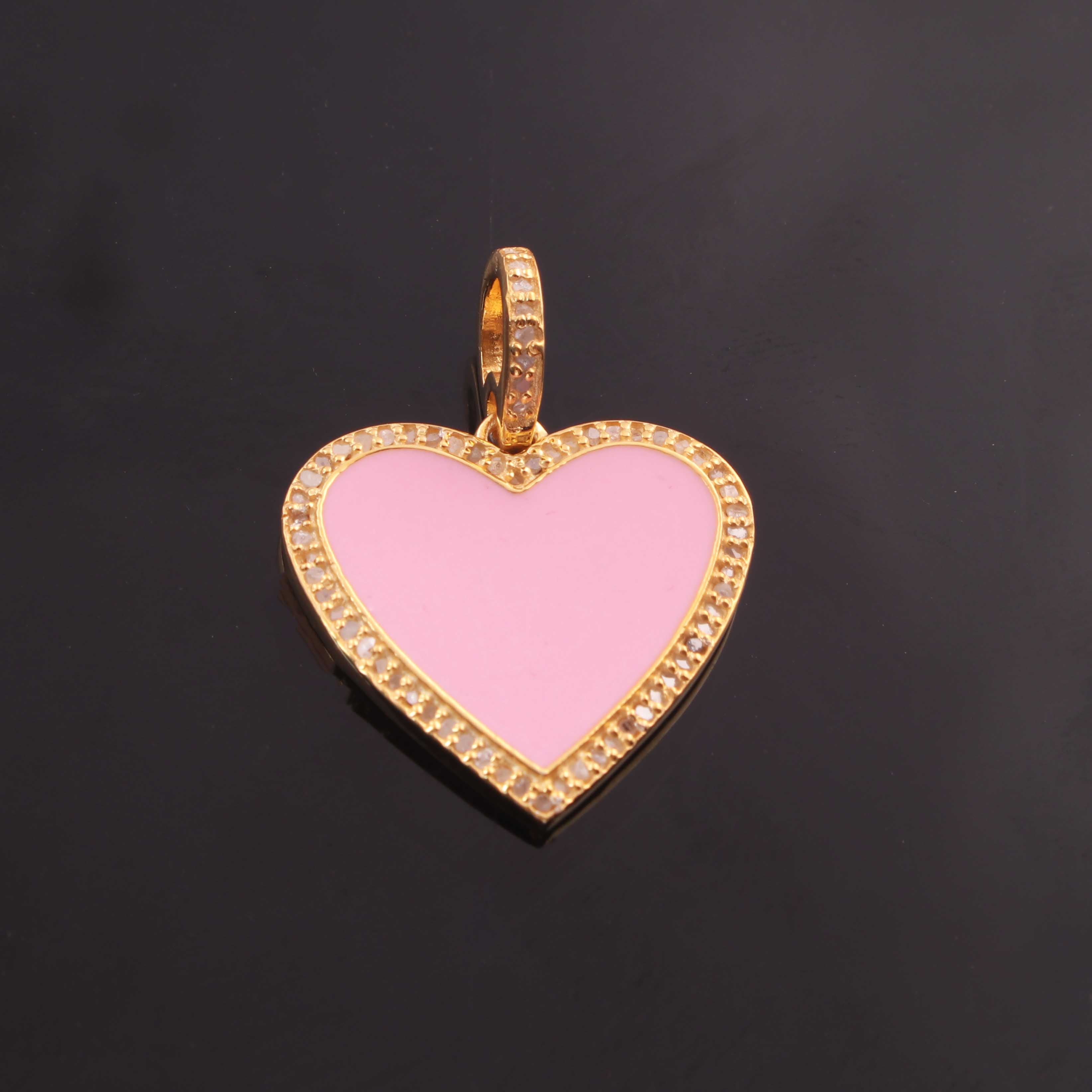 1 PC Pave Diamond Bakelite Heart Charm Over 925 sterling Silver, Yellow Gold Enamel Pendant - 20mm PD1937