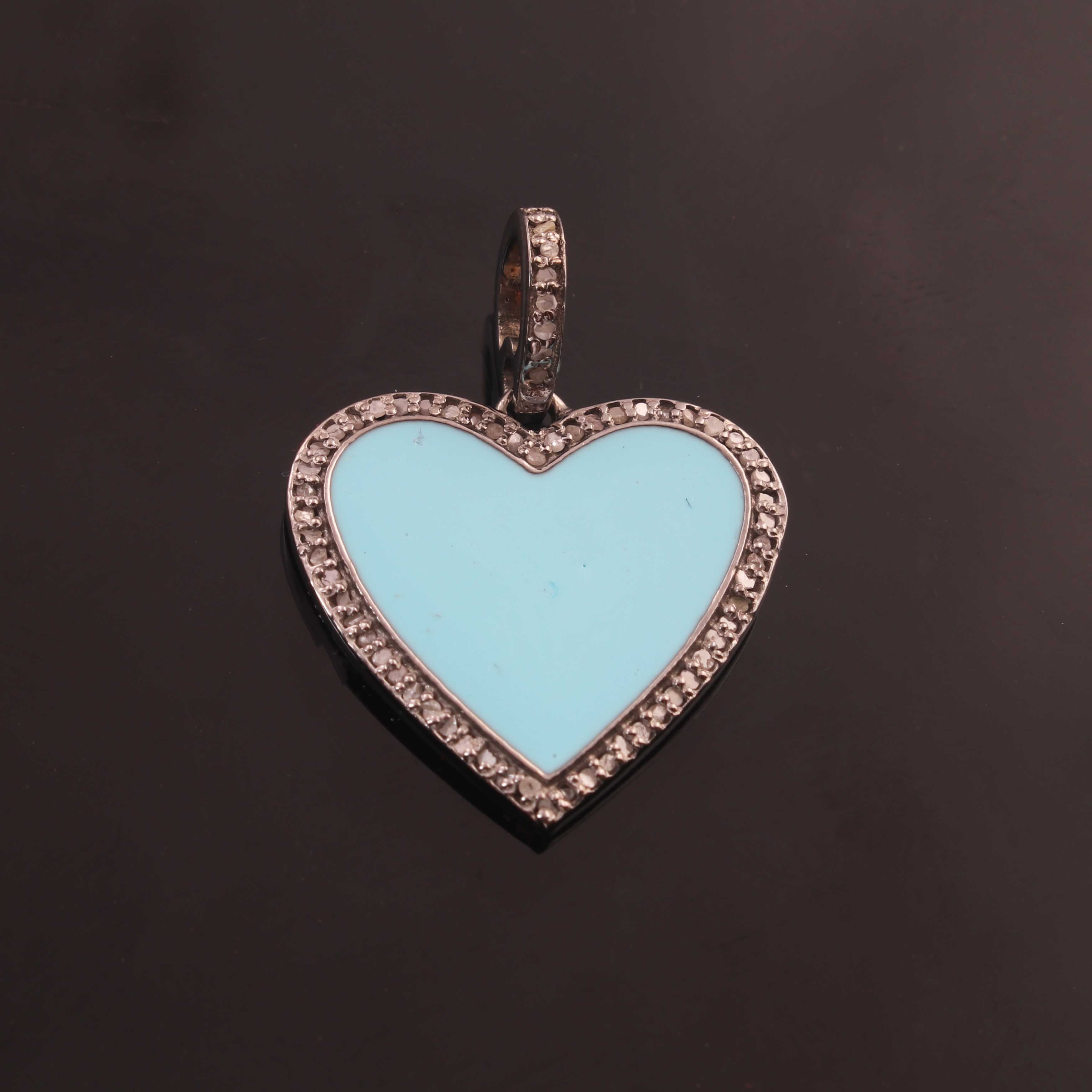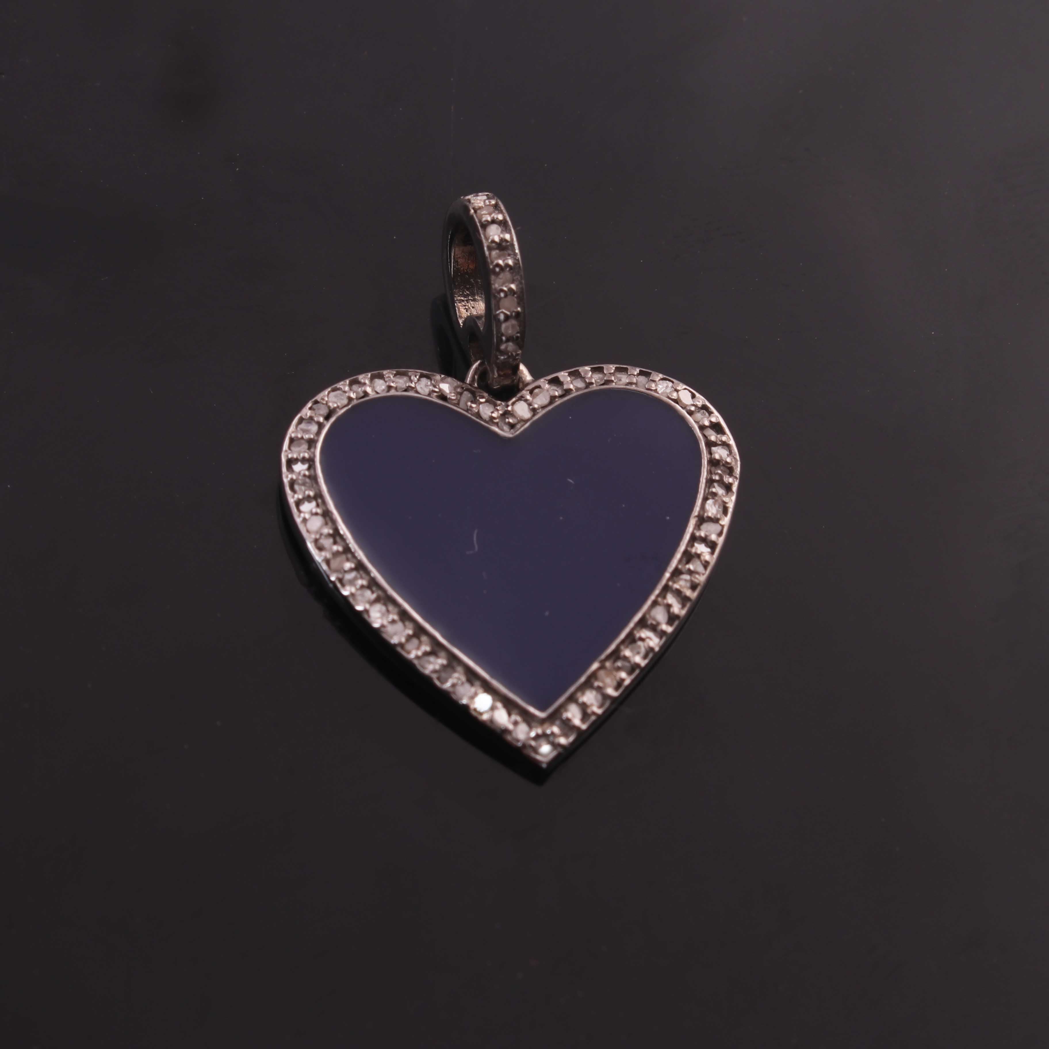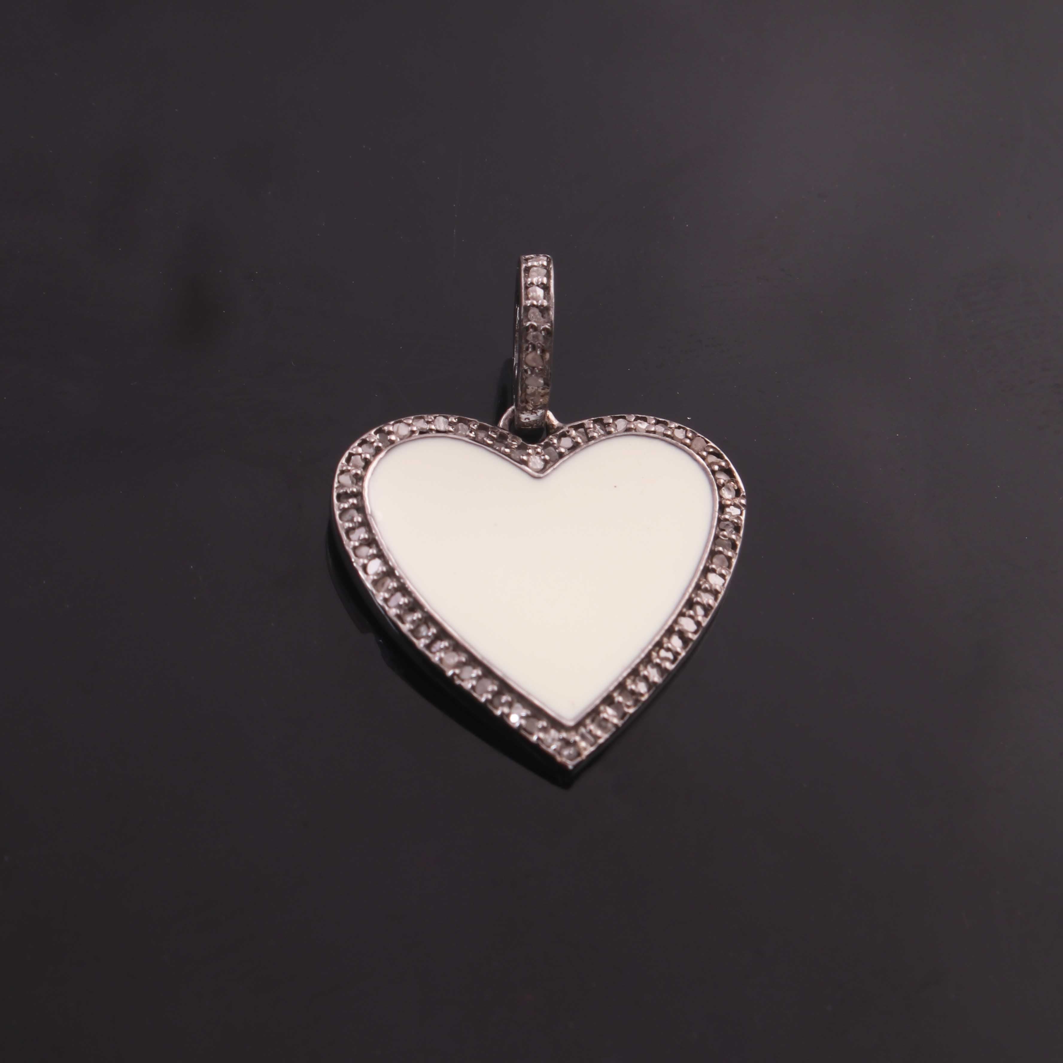 1 PC Pave Diamond Bakelite Heart Charm Over 925 sterling Silver, Yellow Gold Enamel Pendant - 20mm PD1937