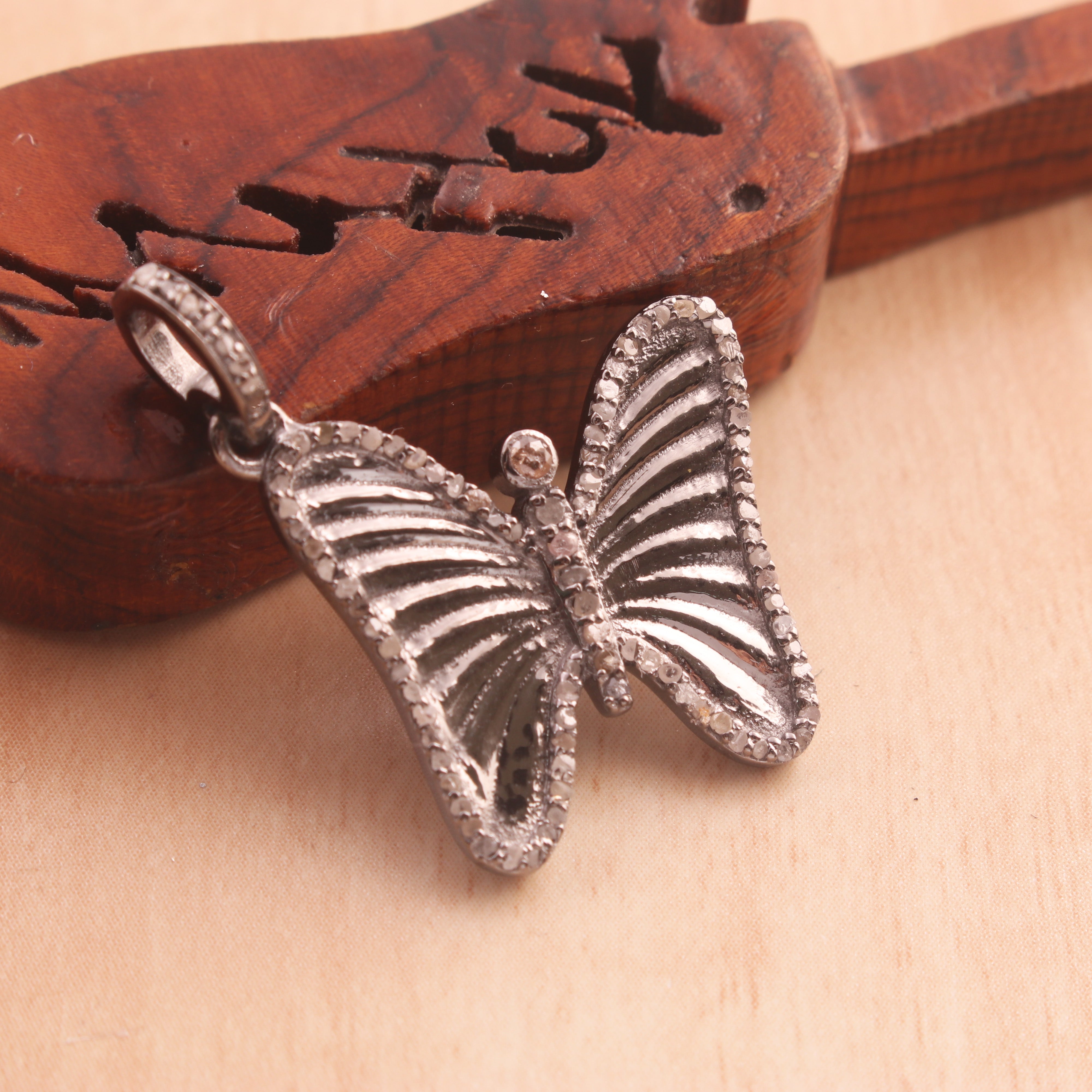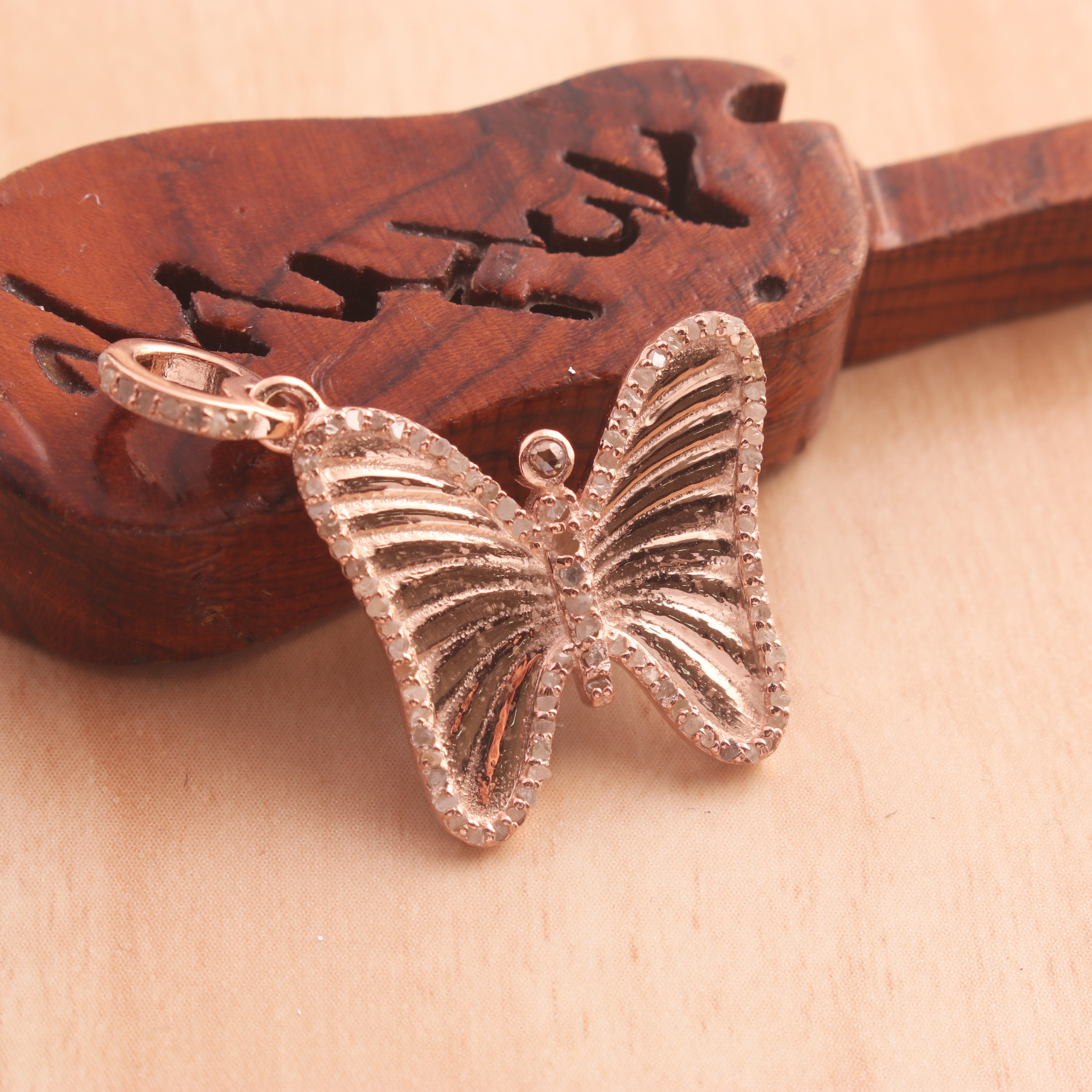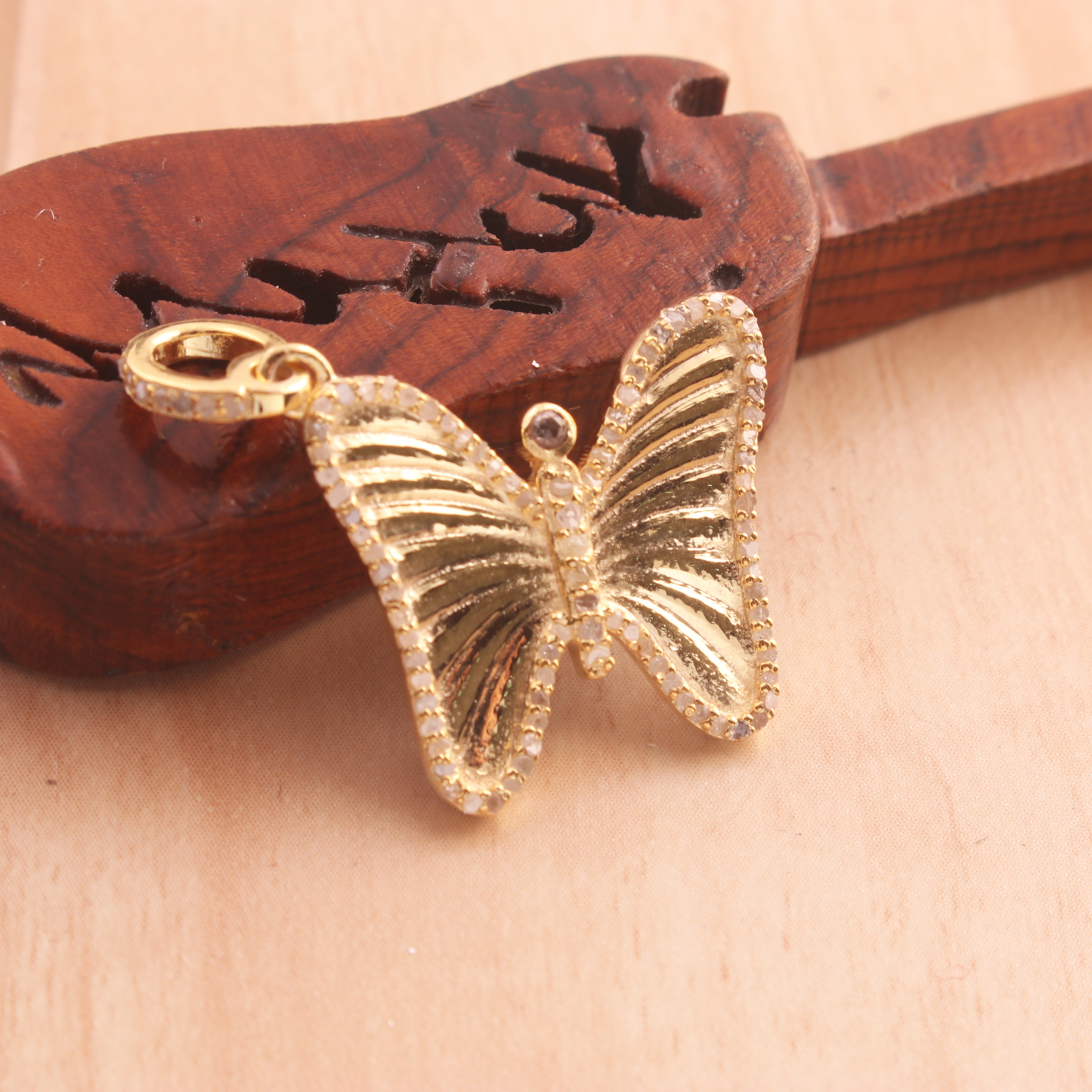 1 Pc Pave Diamond Butterfly Charm Pendant, Designer Charm, 925 Sterling Silver , Yellow & Rose Gold Vermeil , Diamond Pendant 22mmx21mm PD1810