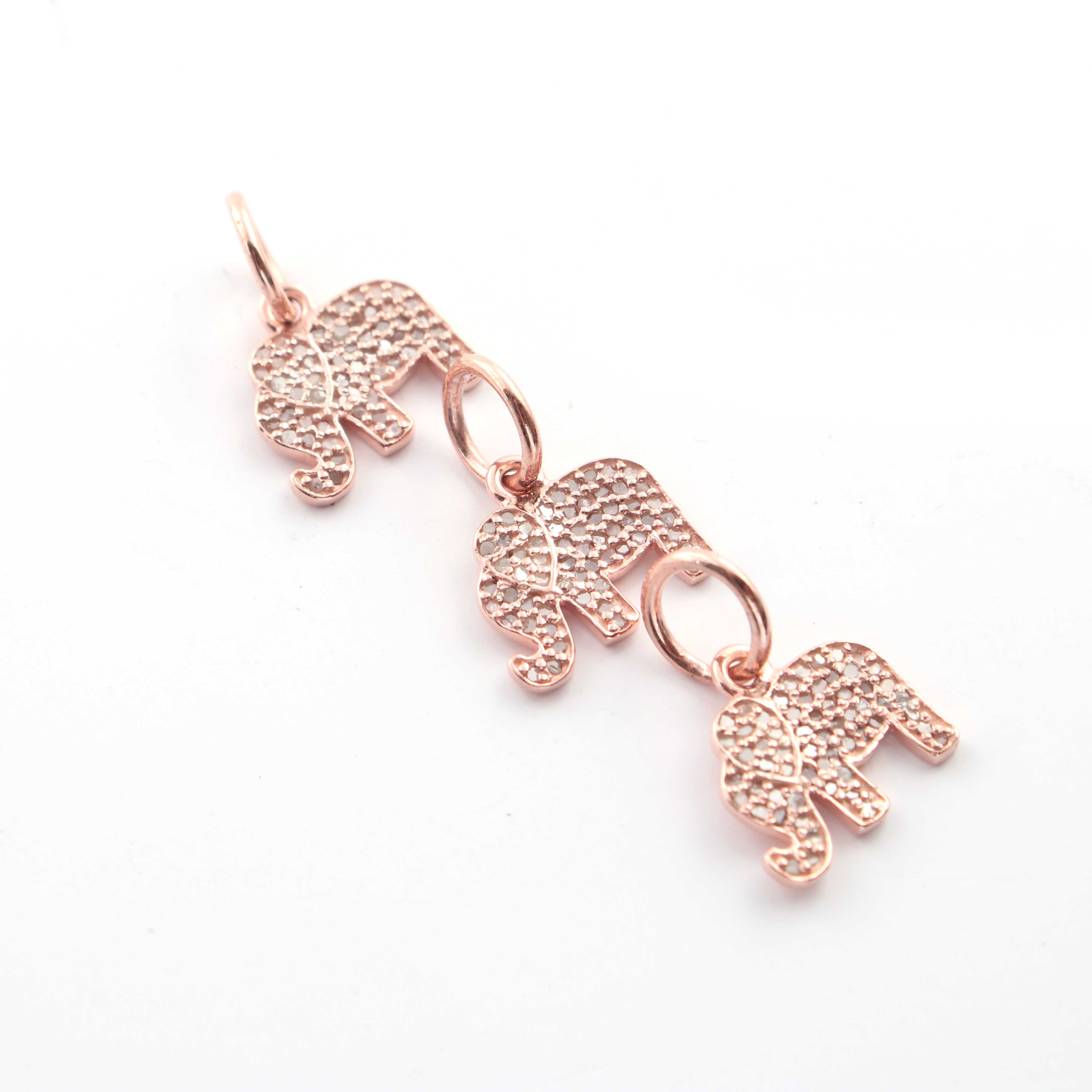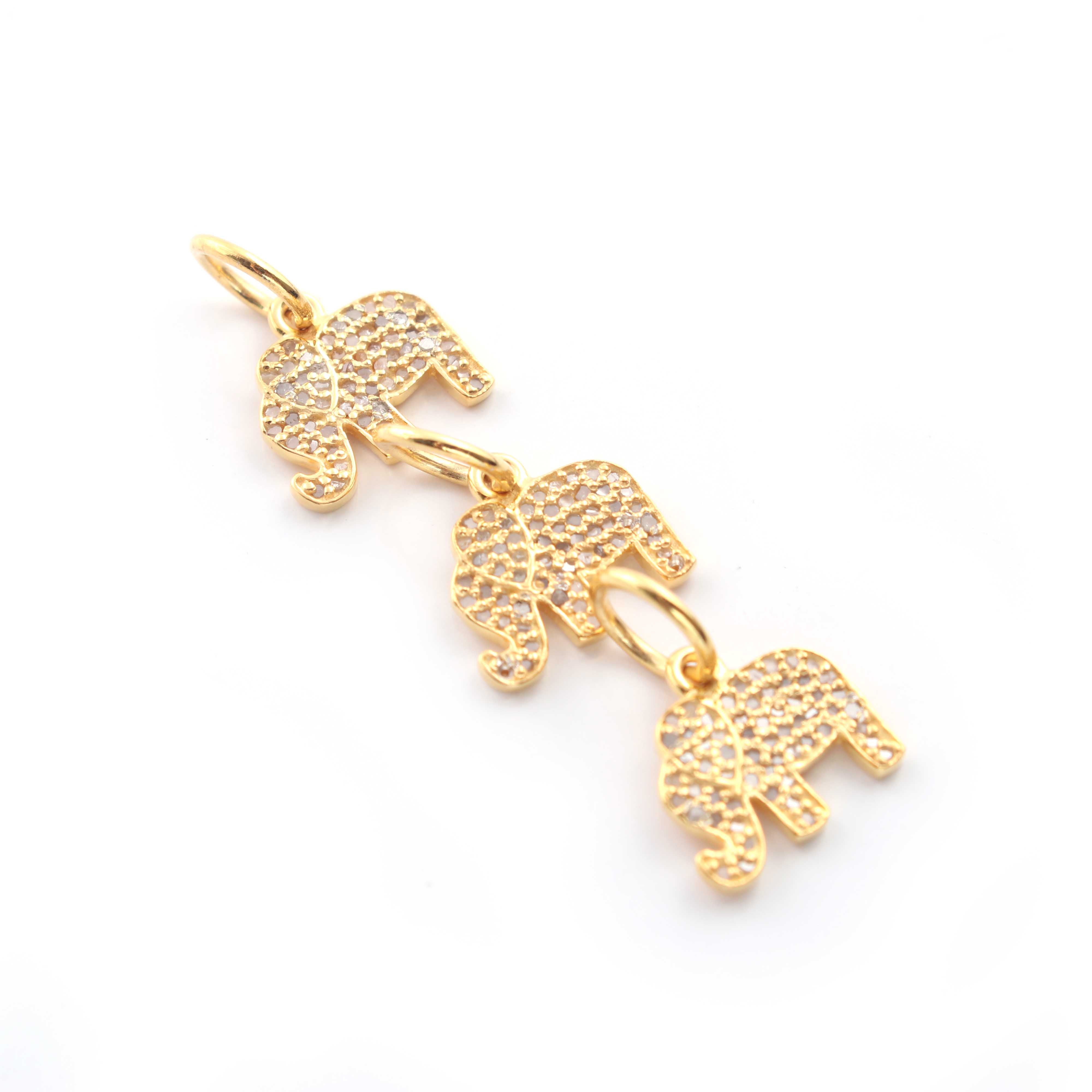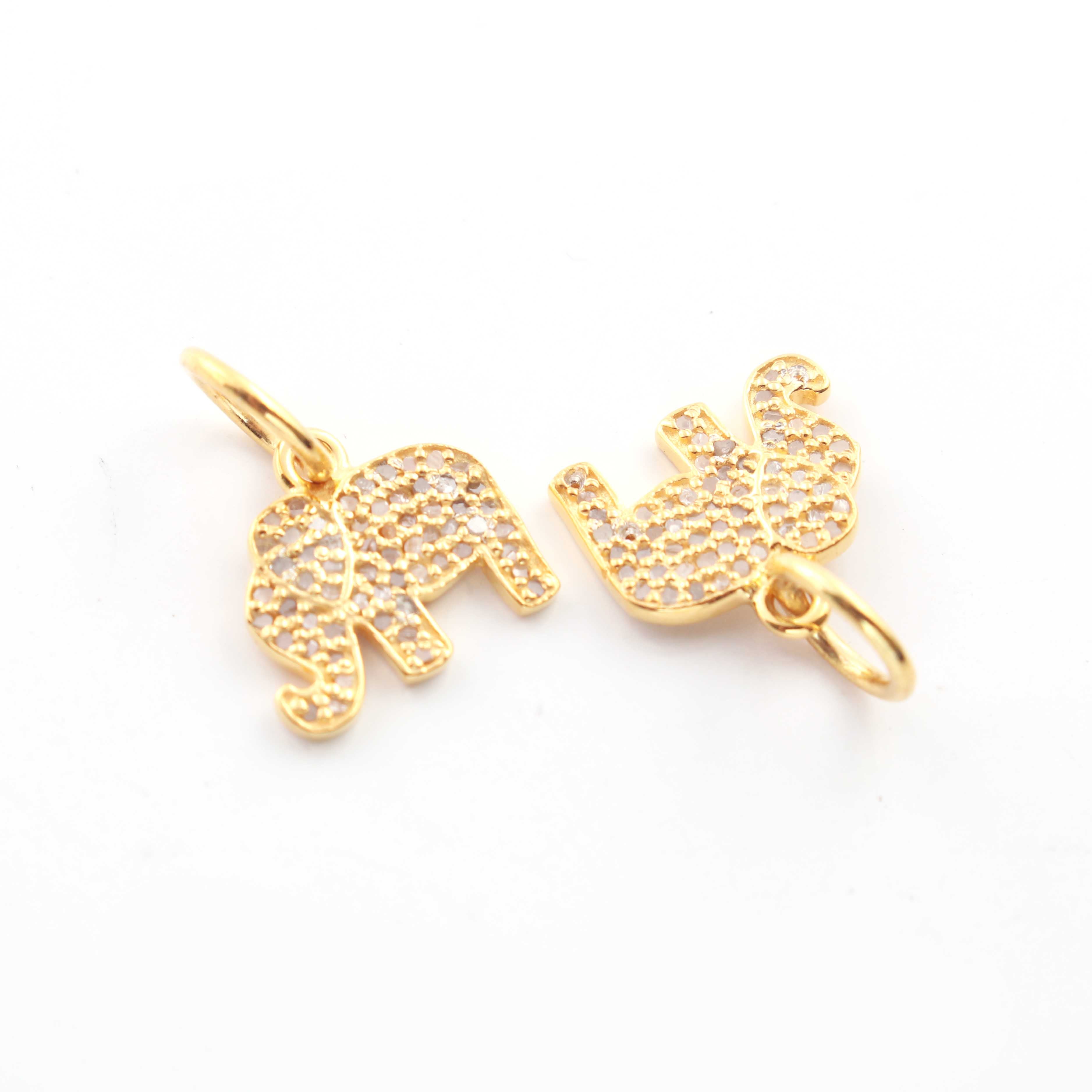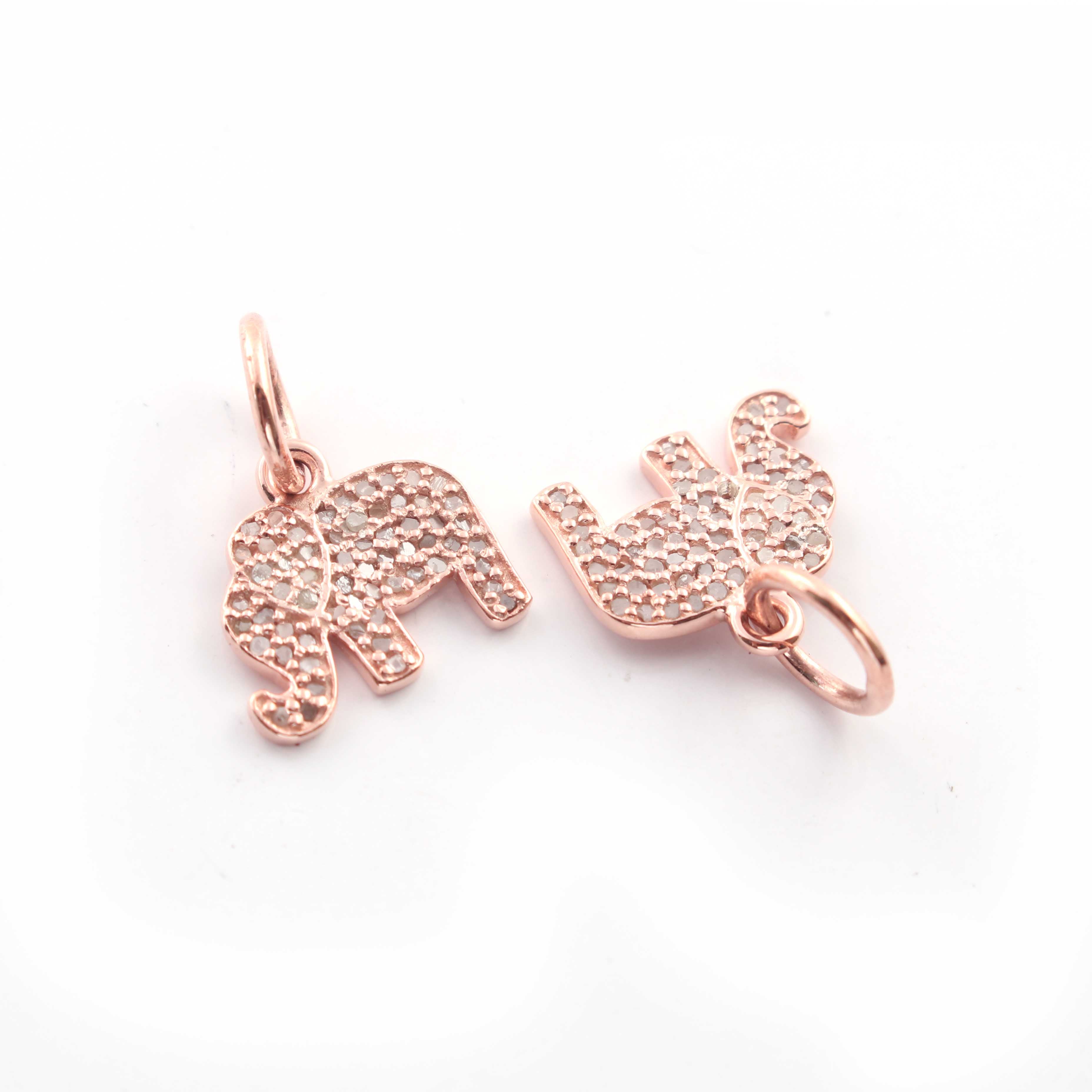 1 PC Pave Diamond Elephant Charm 925 Sterling Silver, Yellow & Rose Gold Vermeil Pendant, 16mmx13mm PDC00053