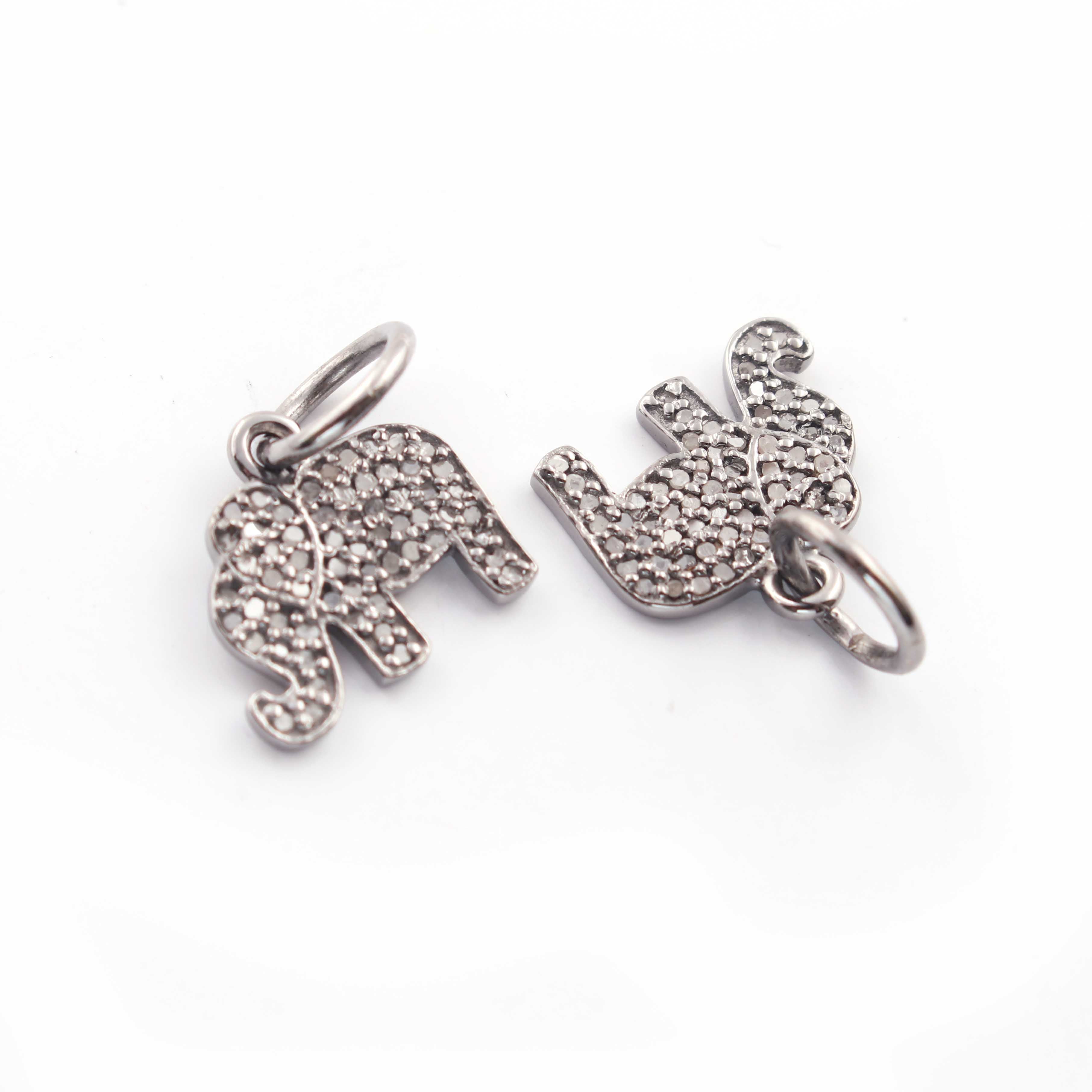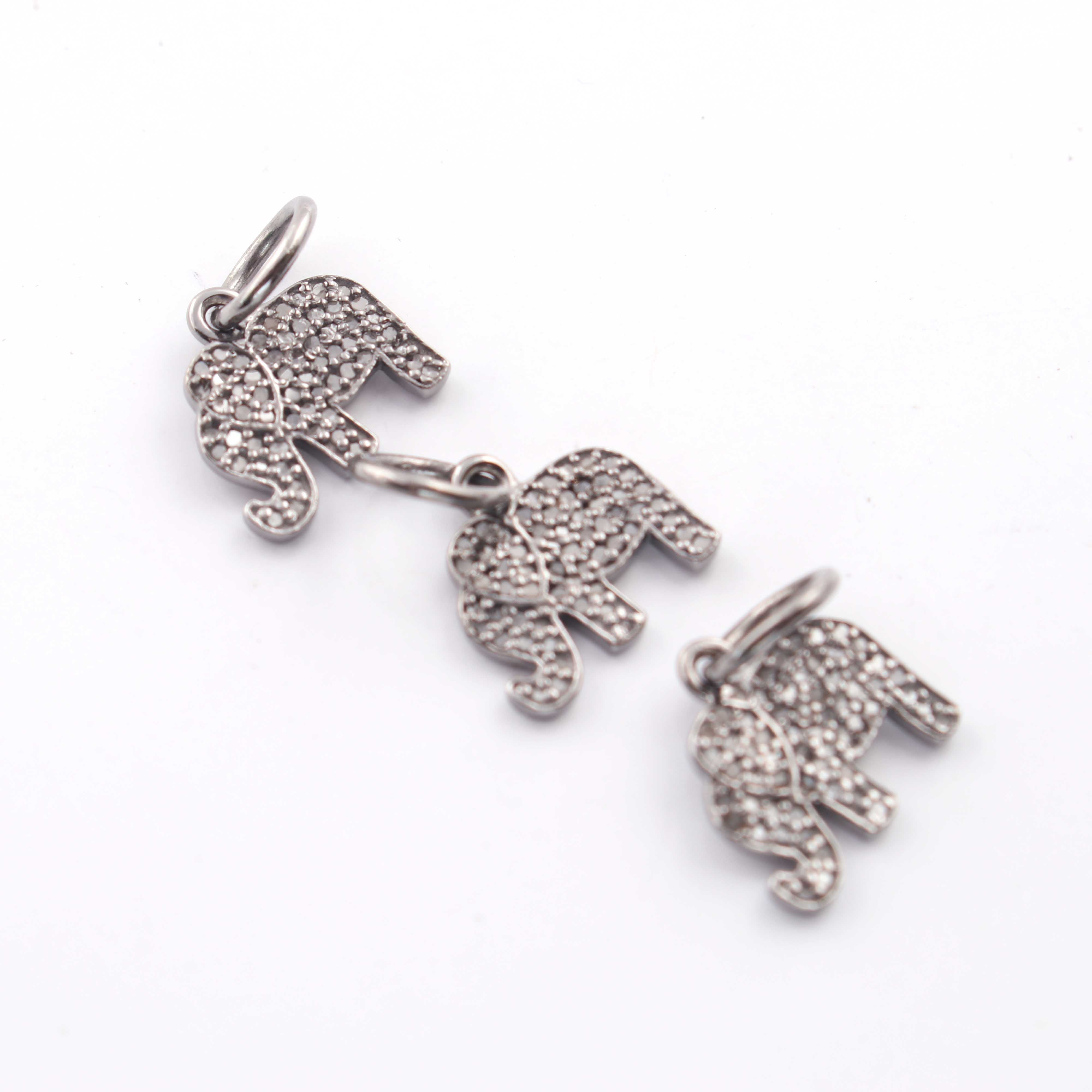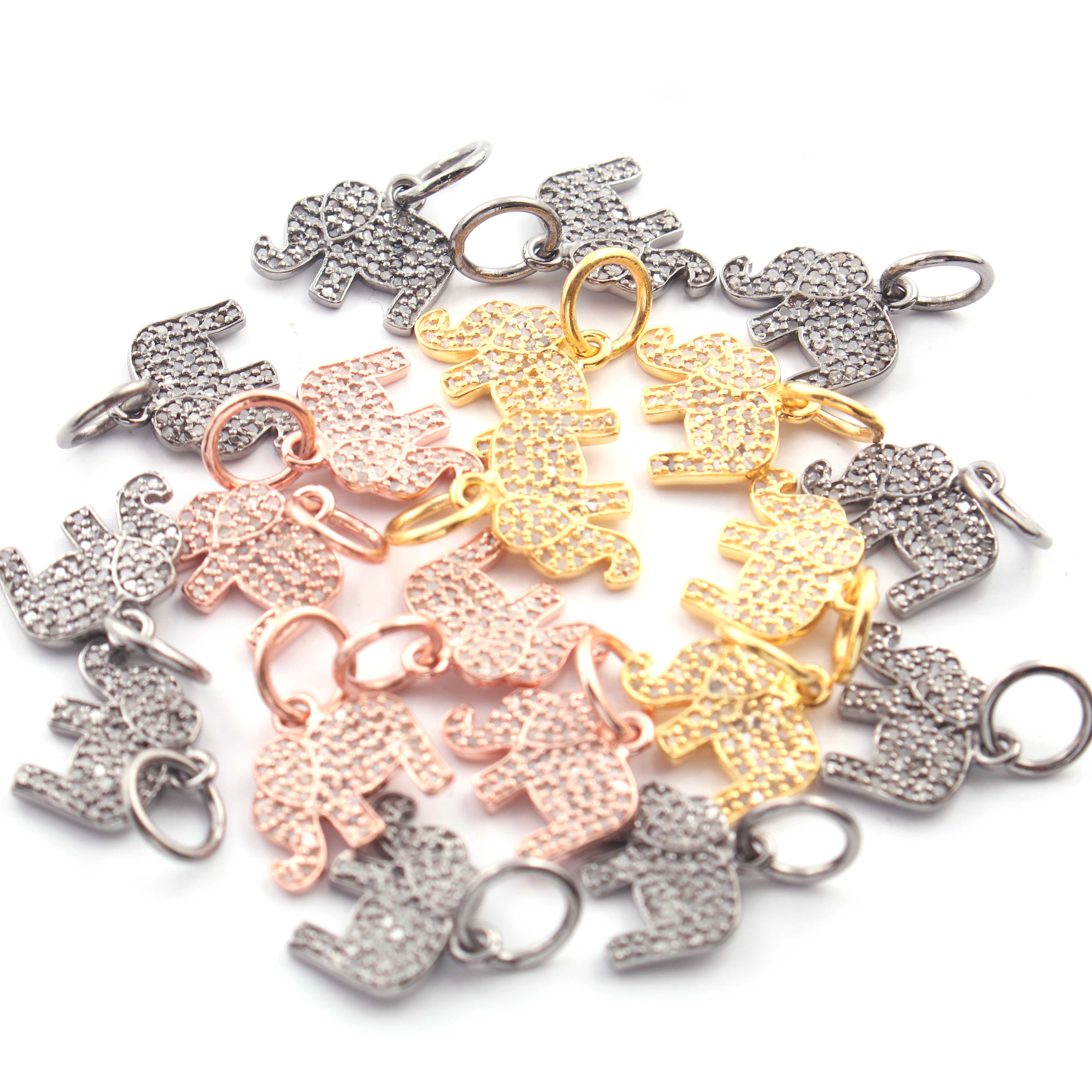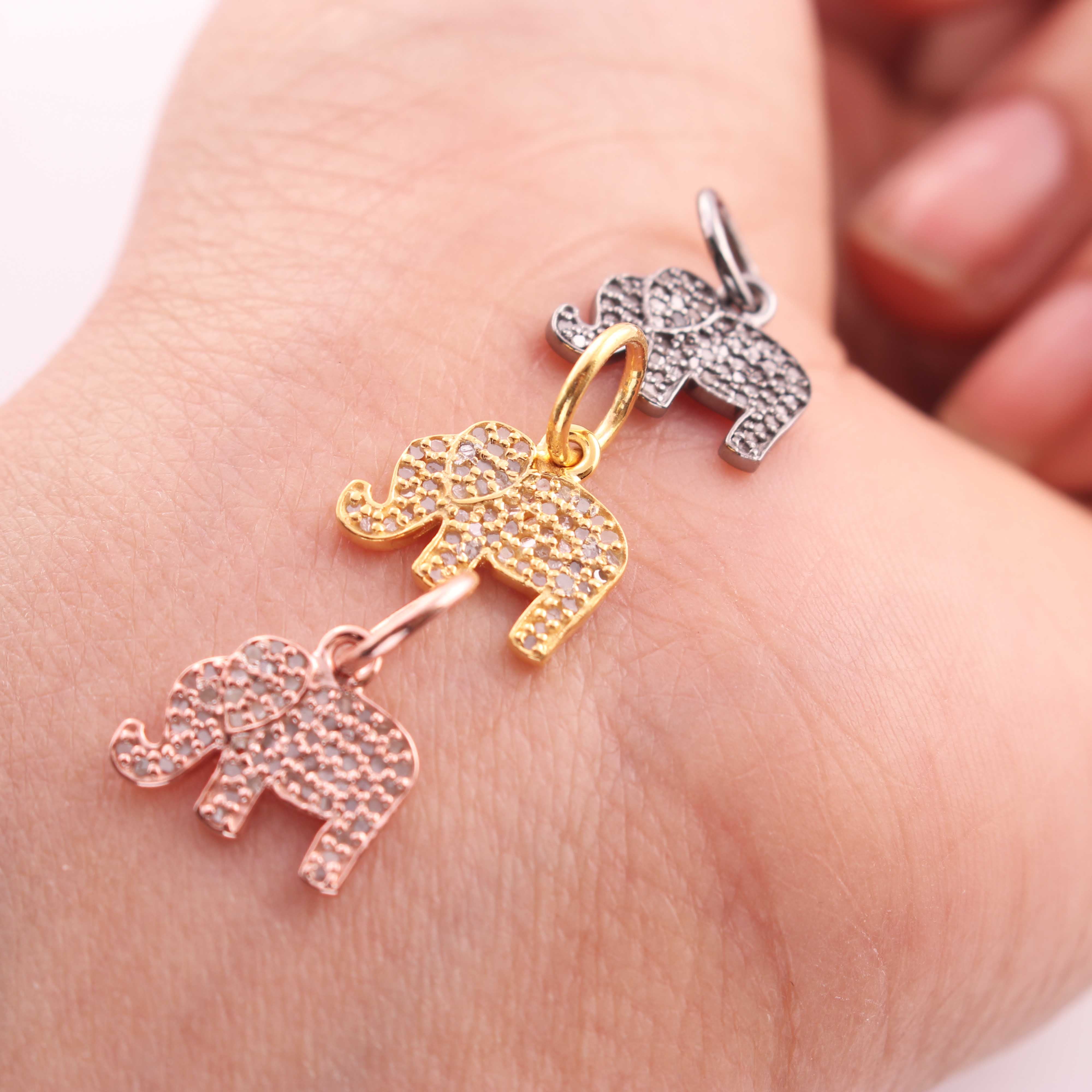 1 PC Pave Diamond Elephant Charm 925 Sterling Silver, Yellow & Rose Gold Vermeil Pendant, 16mmx13mm PDC00053