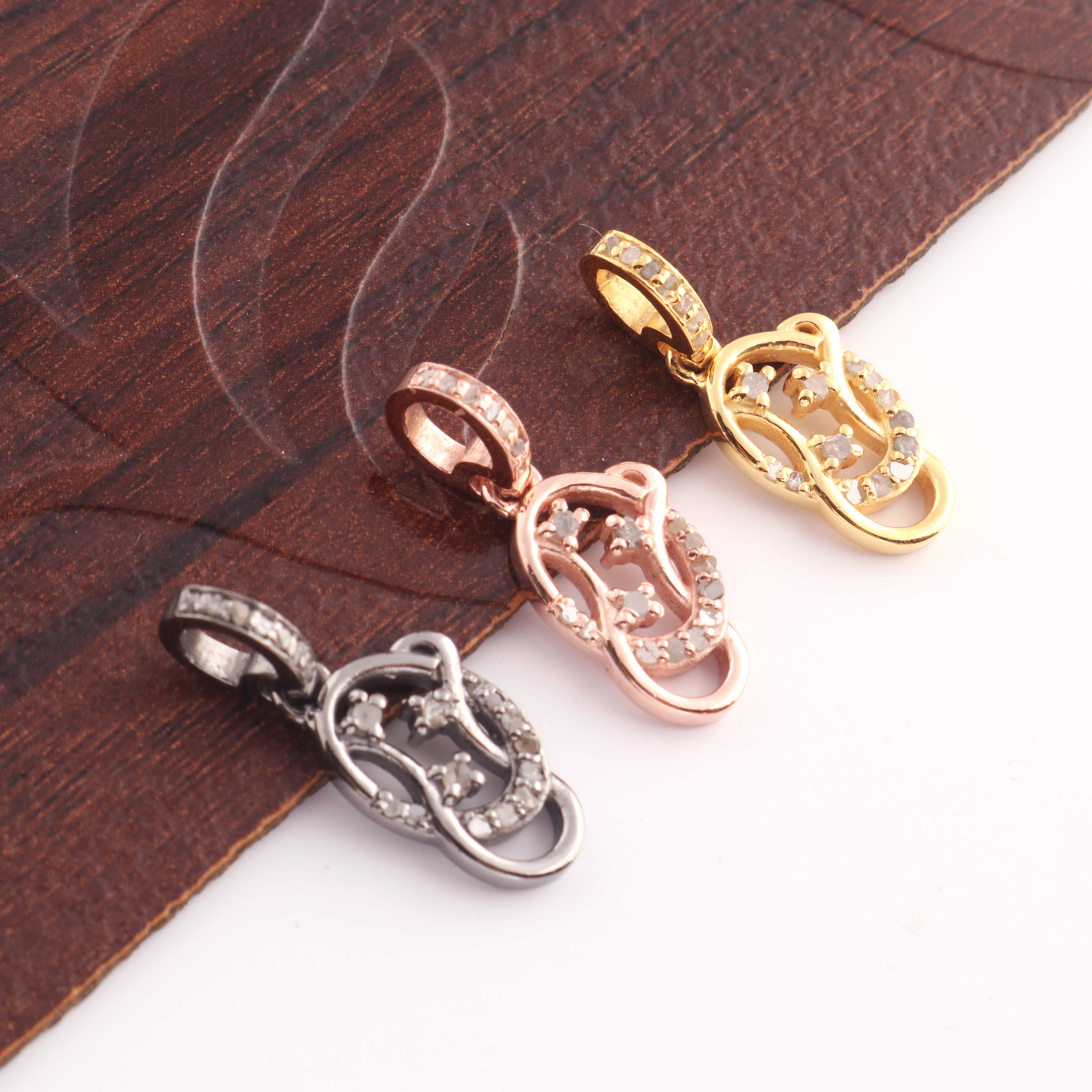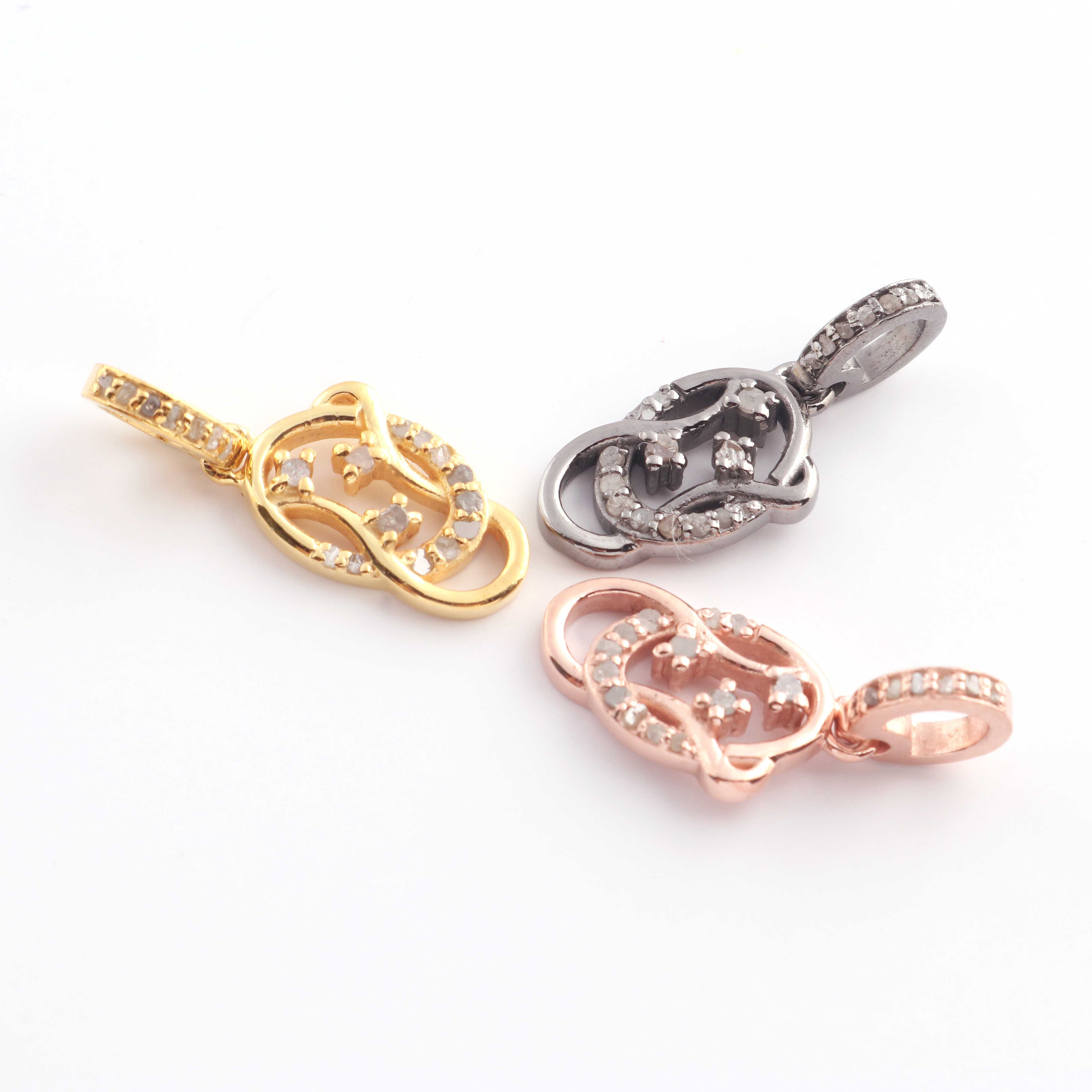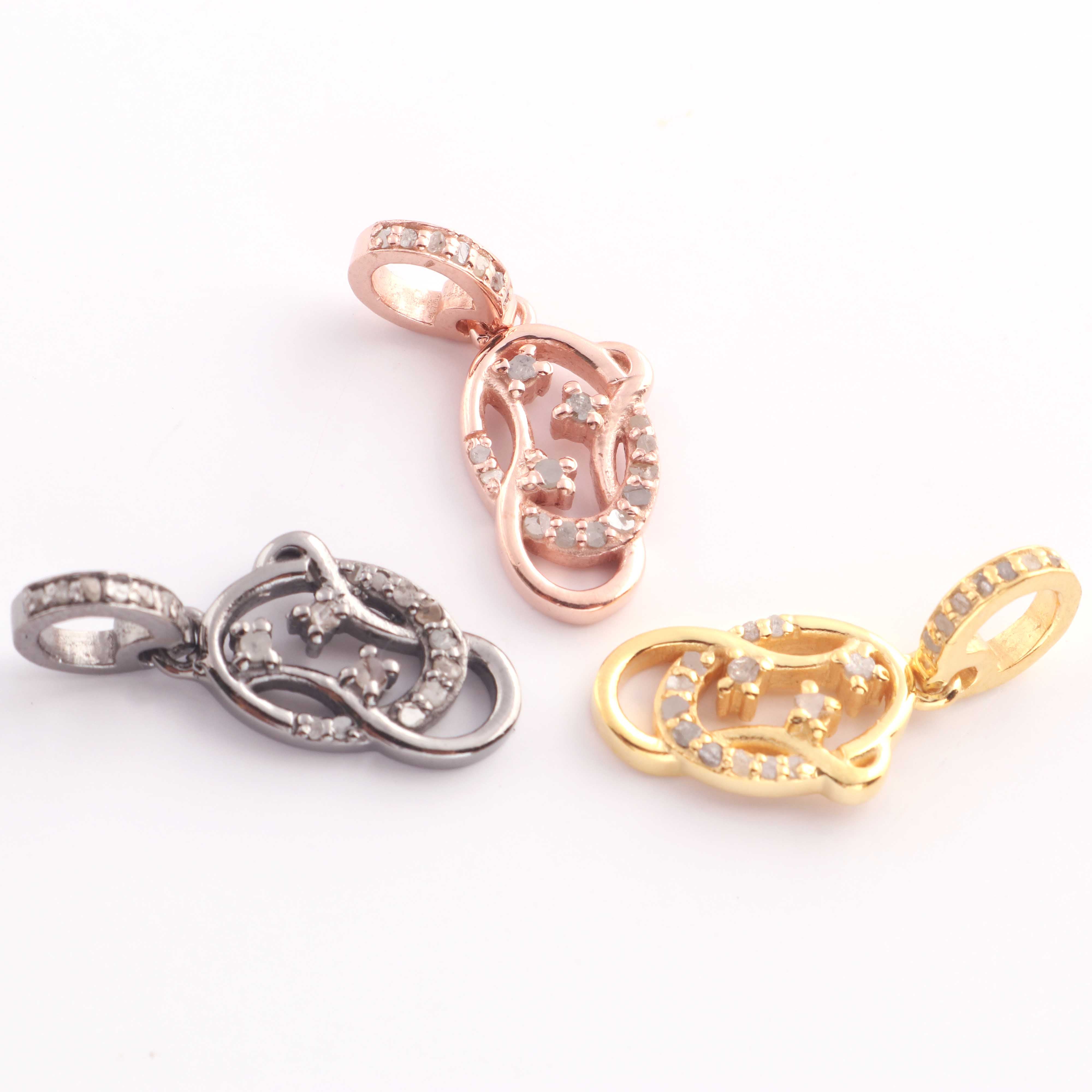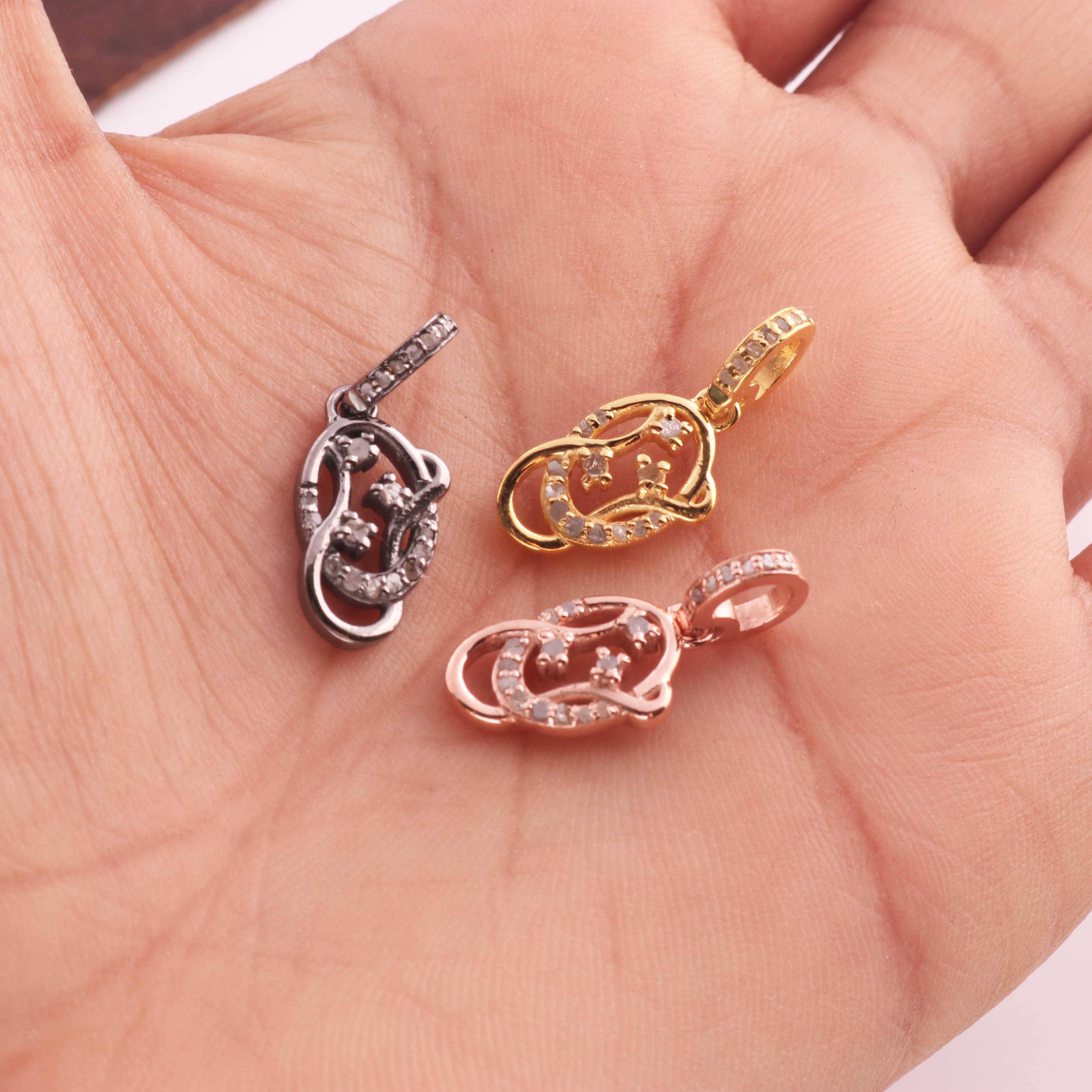 1 Pc Pave Diamond Fancy Charm Pendant, 925 Sterling Silver, Rose & Yellow Gold Vermeil Fancy Pendant Pave Diamond Jewelry 17mmx10mm You Choose PDC000446