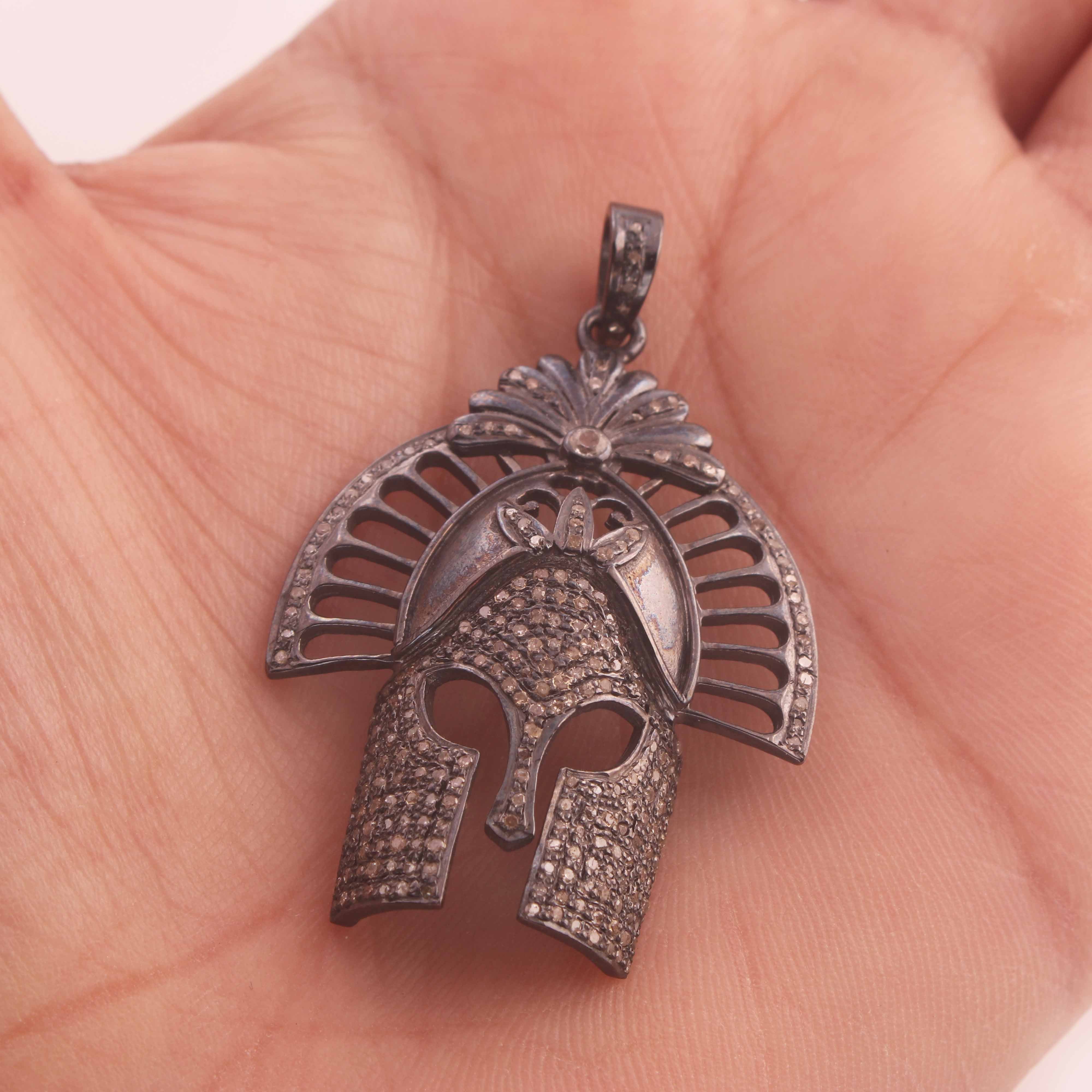1 PC Pave Diamond Genuine Designer Mask Pendant - 925 Sterling Silver 66mmx26mm PD292