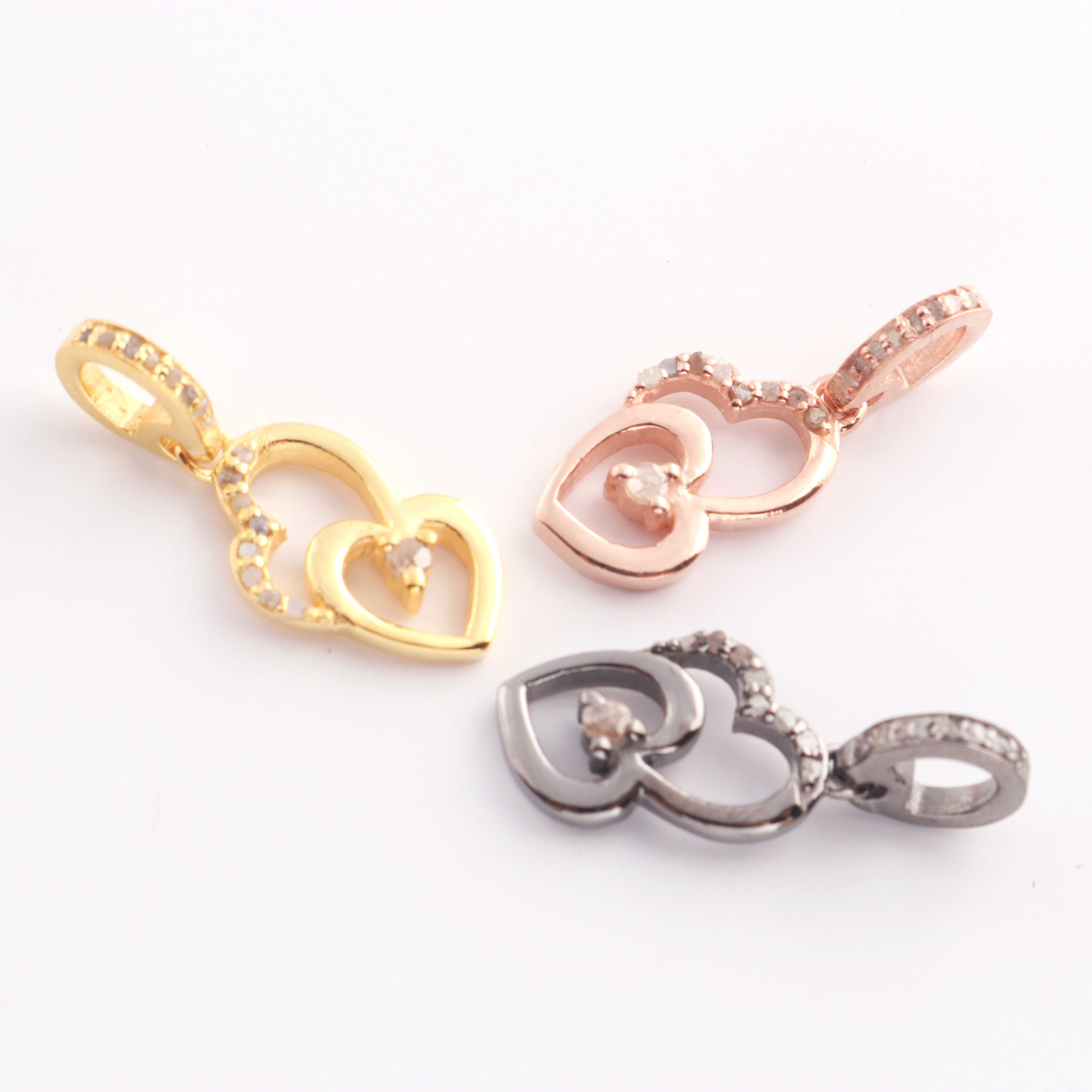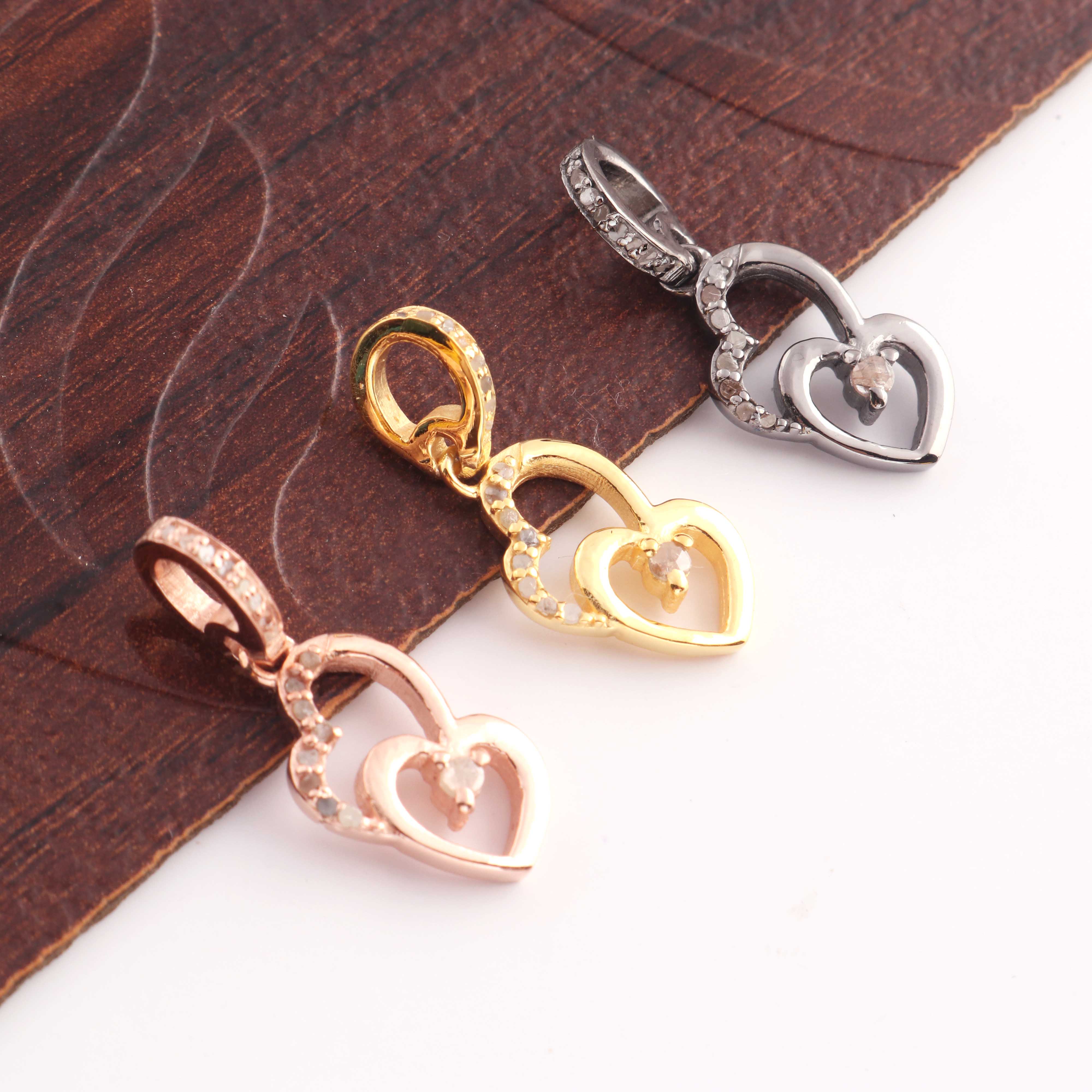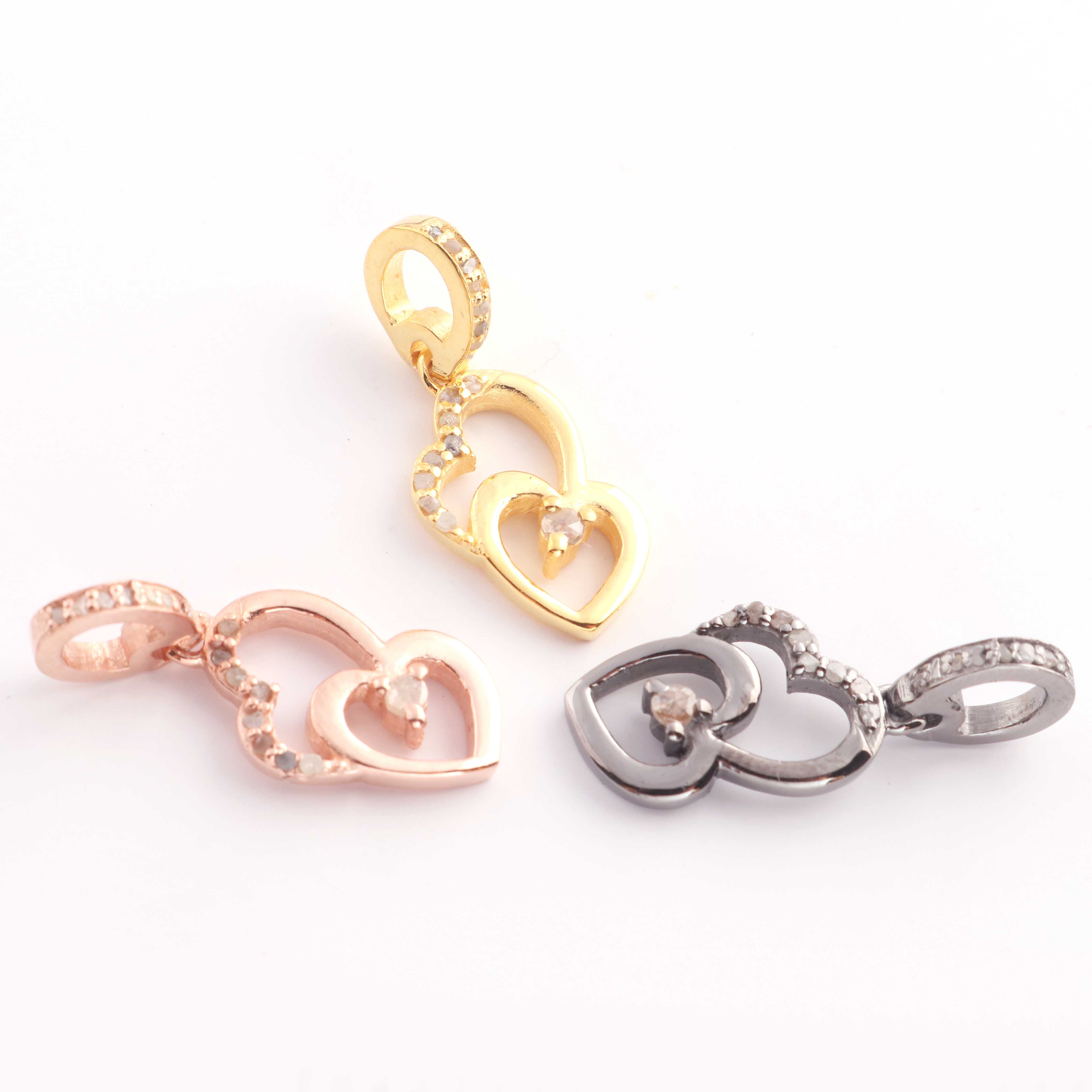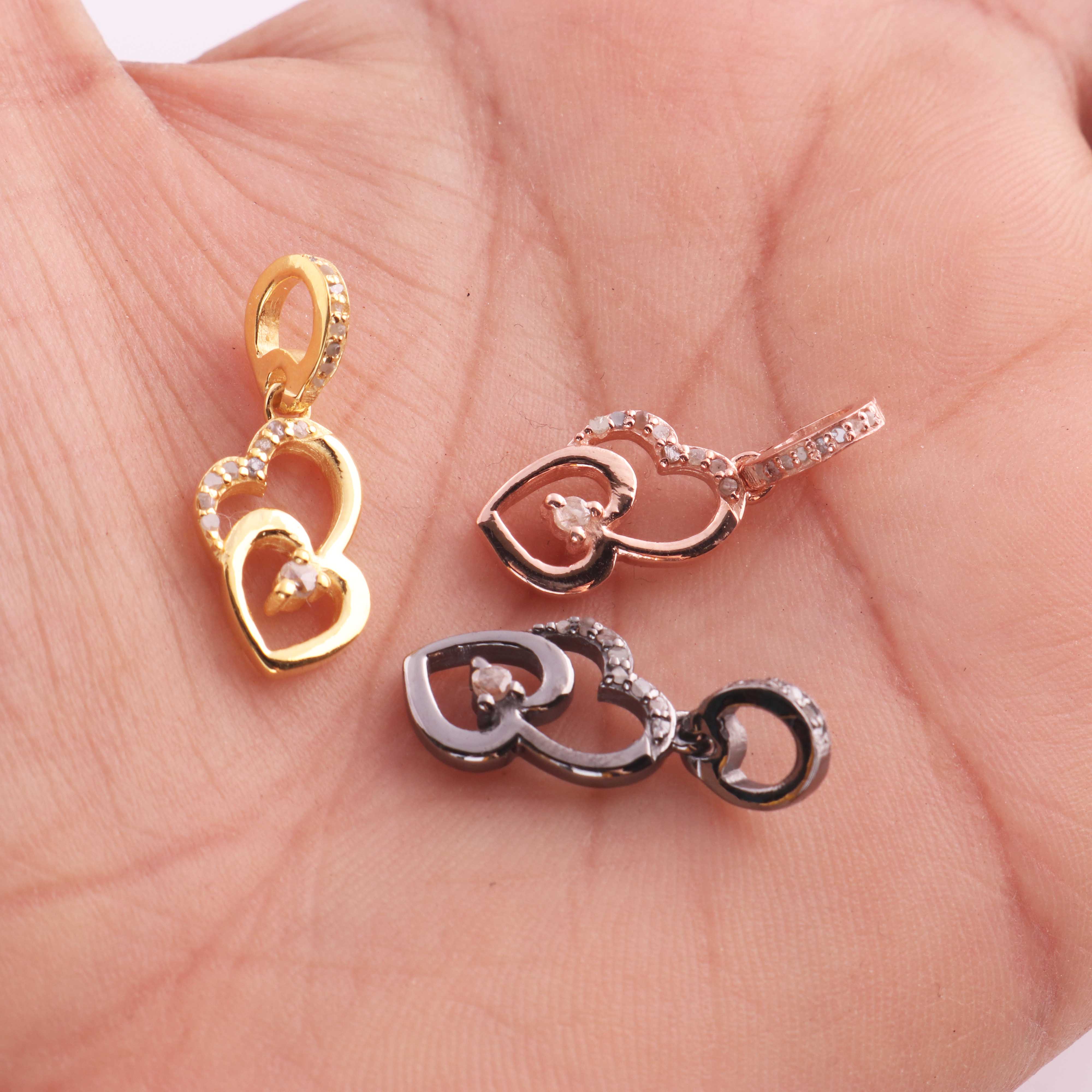 1 Pc Pave Diamond Heart Charm Pendant, 925 Sterling Silver, Rose & Yellow Gold Vermeil Heart Pendant Pave Diamond Jewelry 17mmx10mm You Choose PDC000444