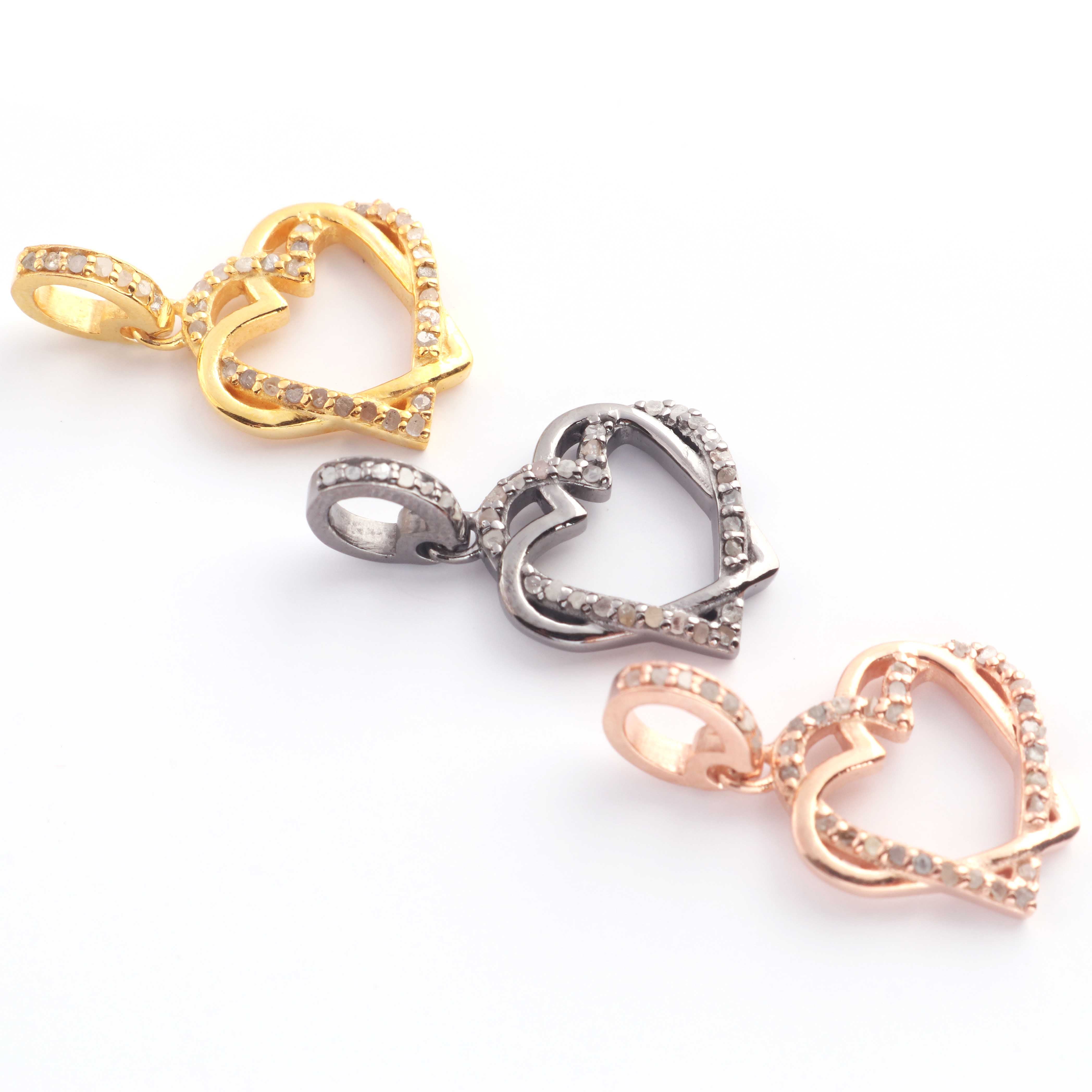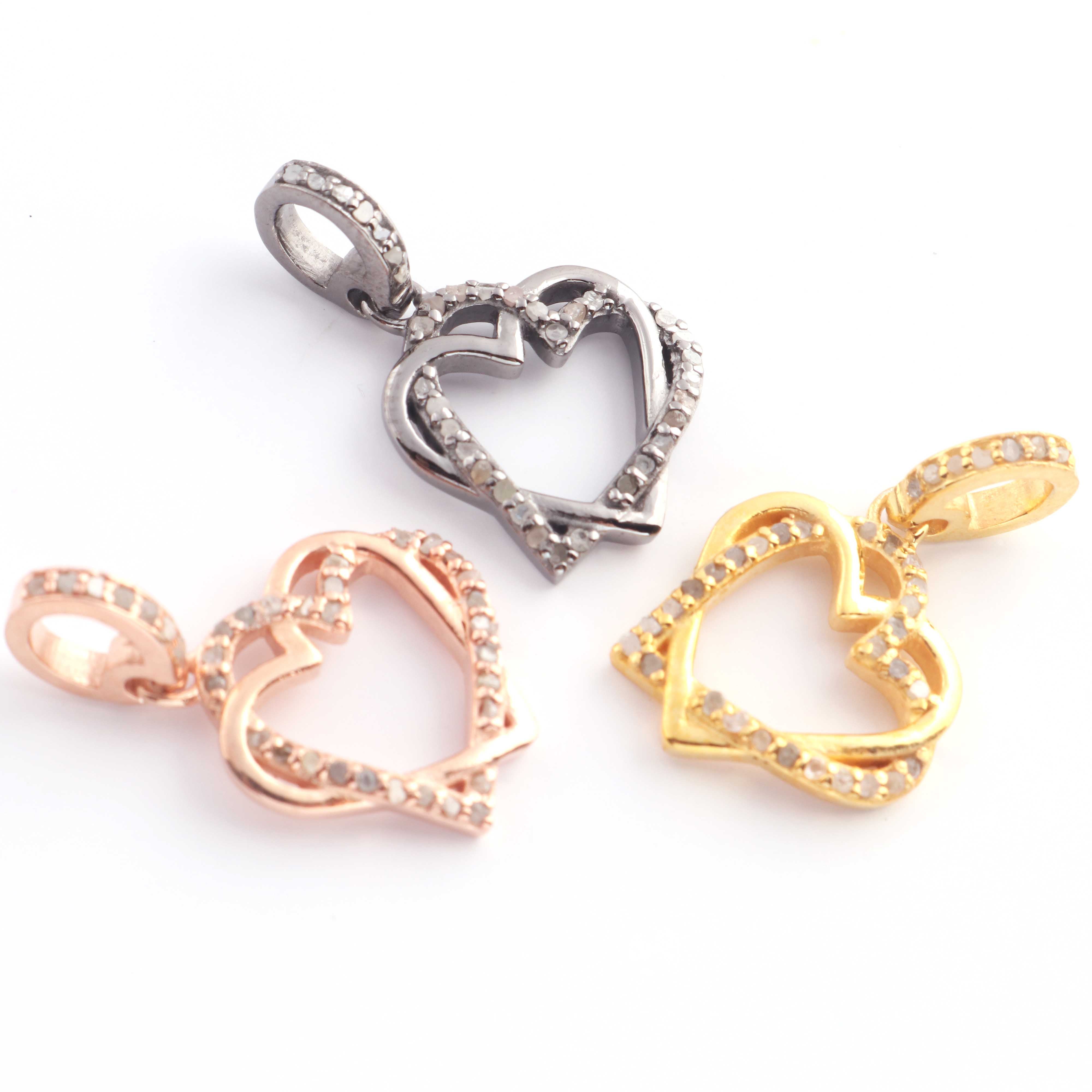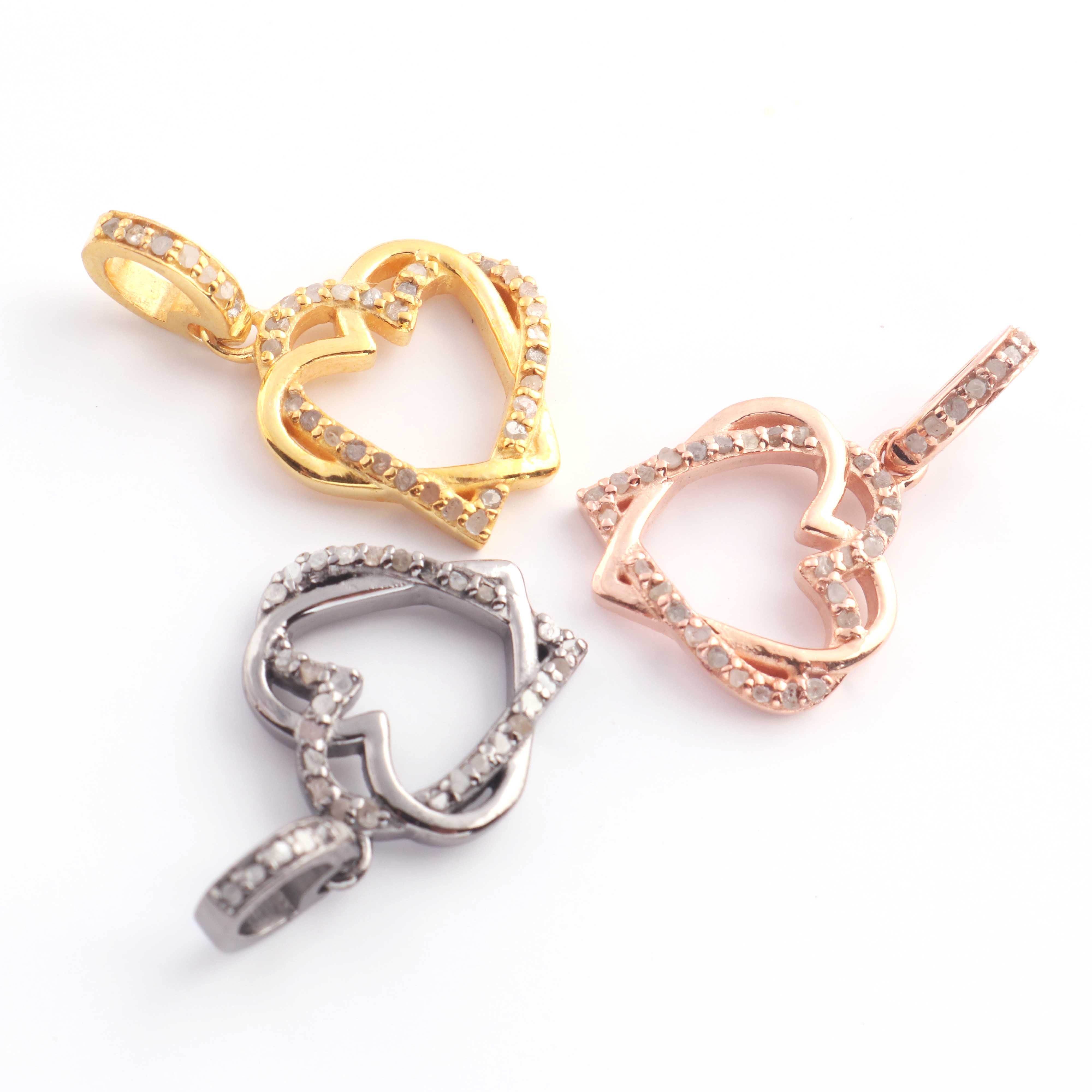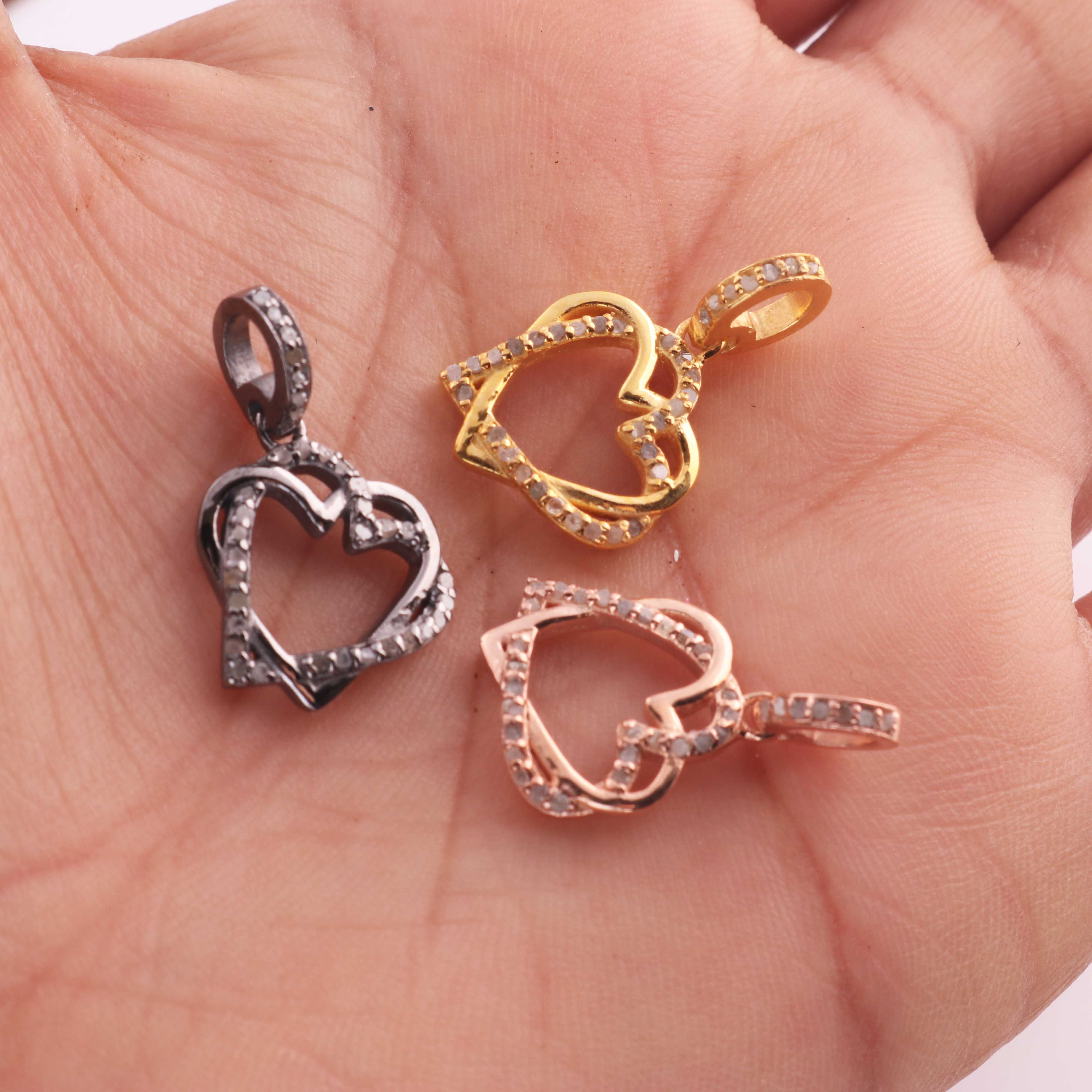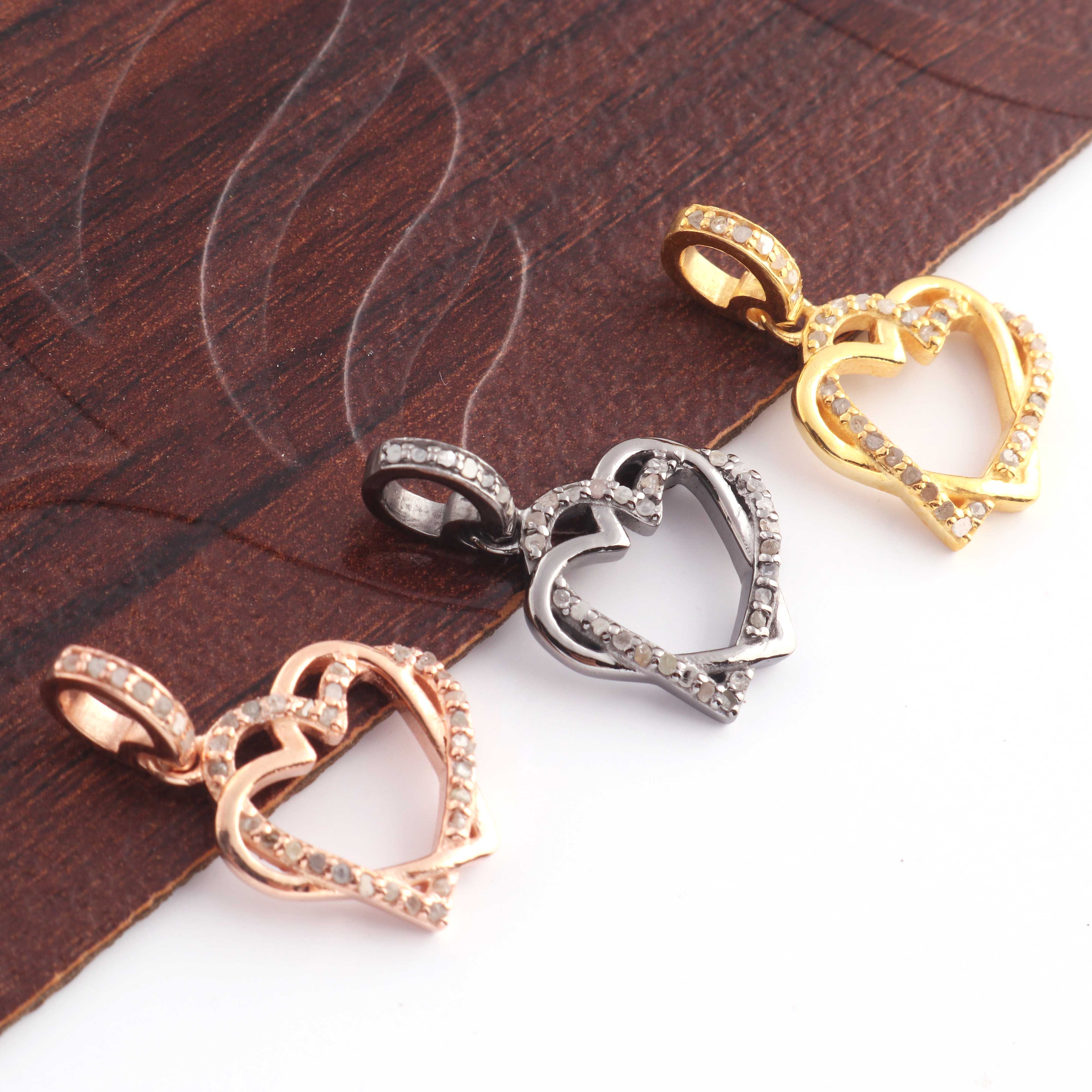 1 Pc Pave Diamond Heart Charm Pendant, 925 Sterling Silver, Rose & Yellow Gold Vermeil Heart Pendant Pave Diamond Jewelry 17mmx15mm You Choose PDC000435