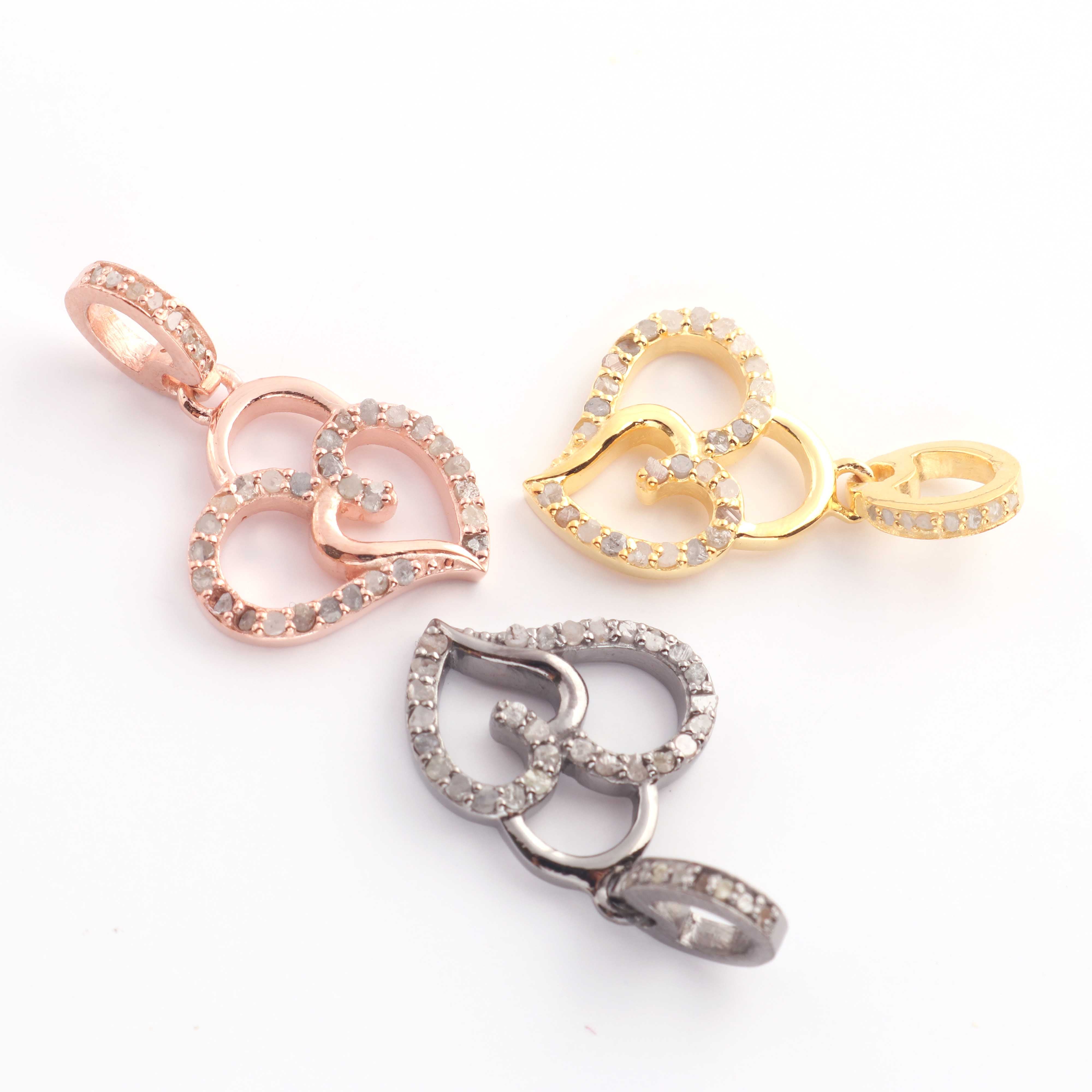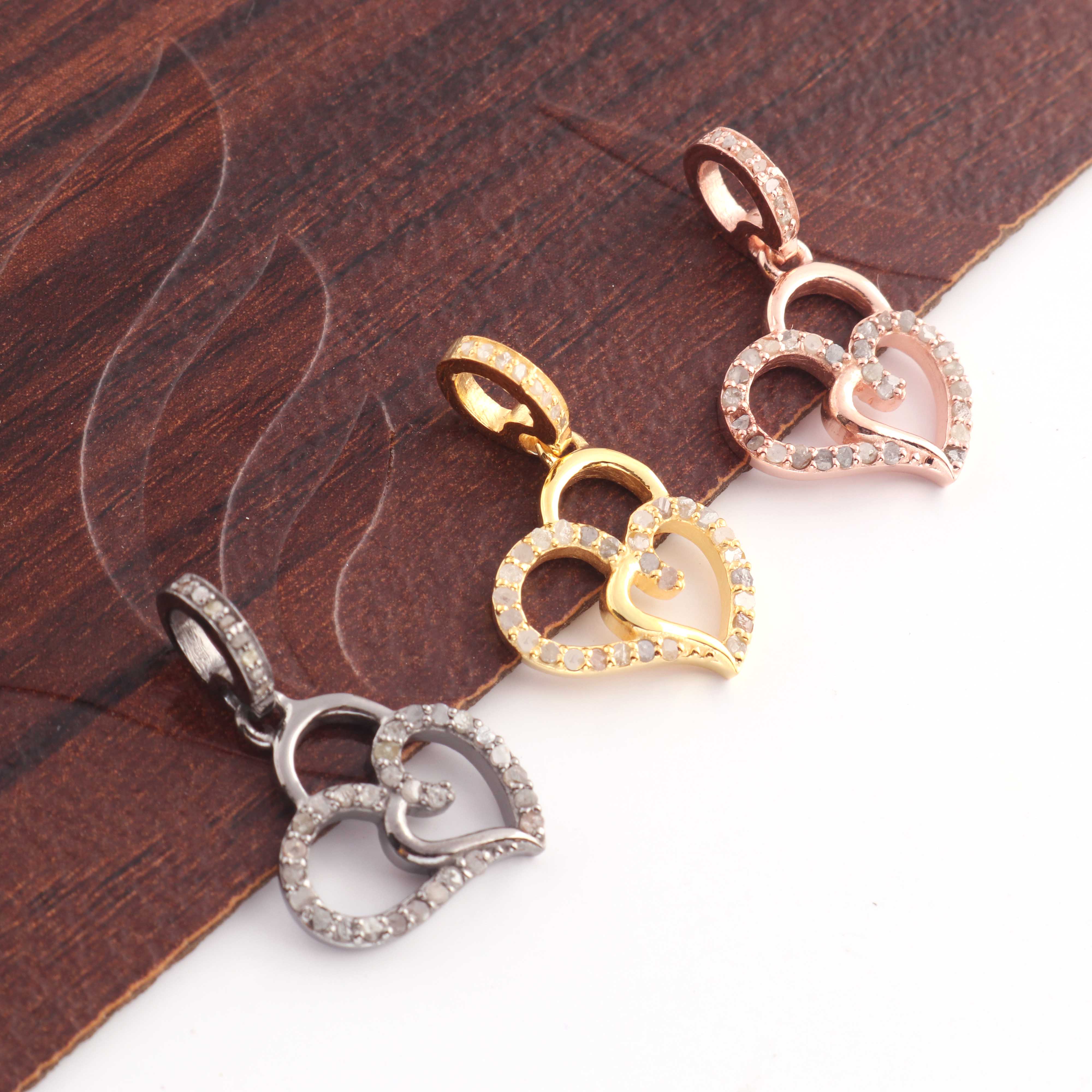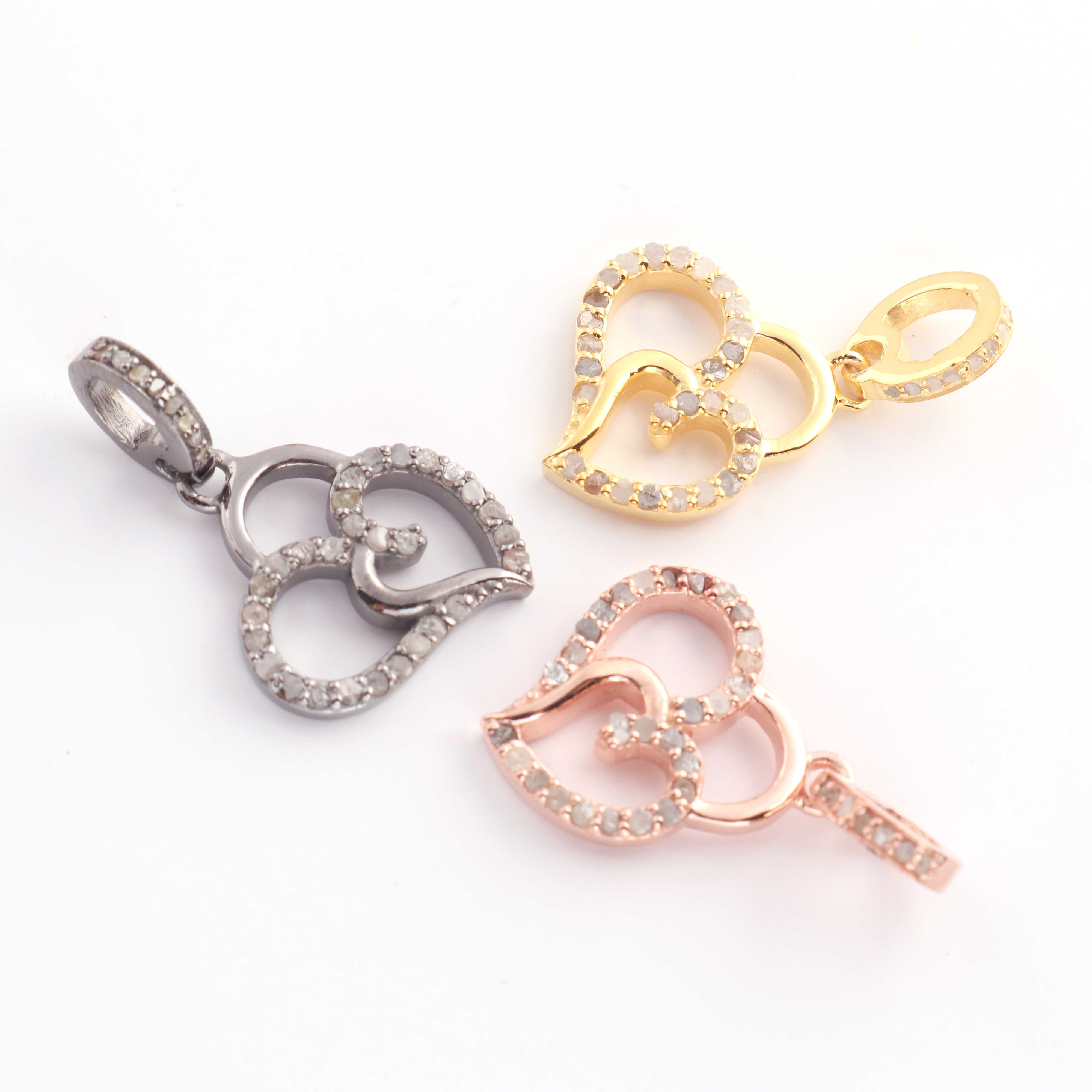 1 Pc Pave Diamond Heart Charm Pendant, 925 Sterling Silver, Rose & Yellow Gold Vermeil Heart Pendant Pave Diamond Jewelry 17mmx15mm You Choose PDC000443
