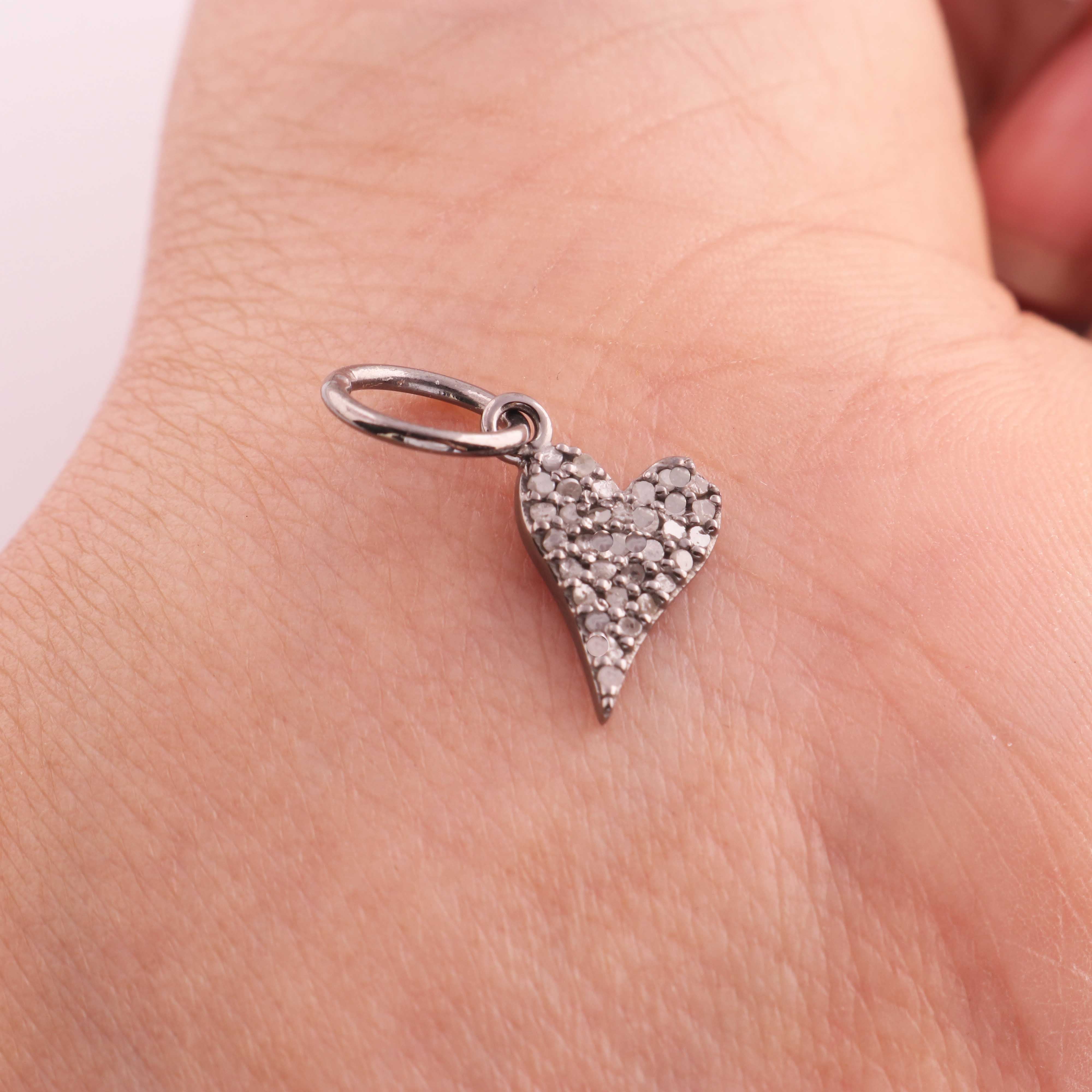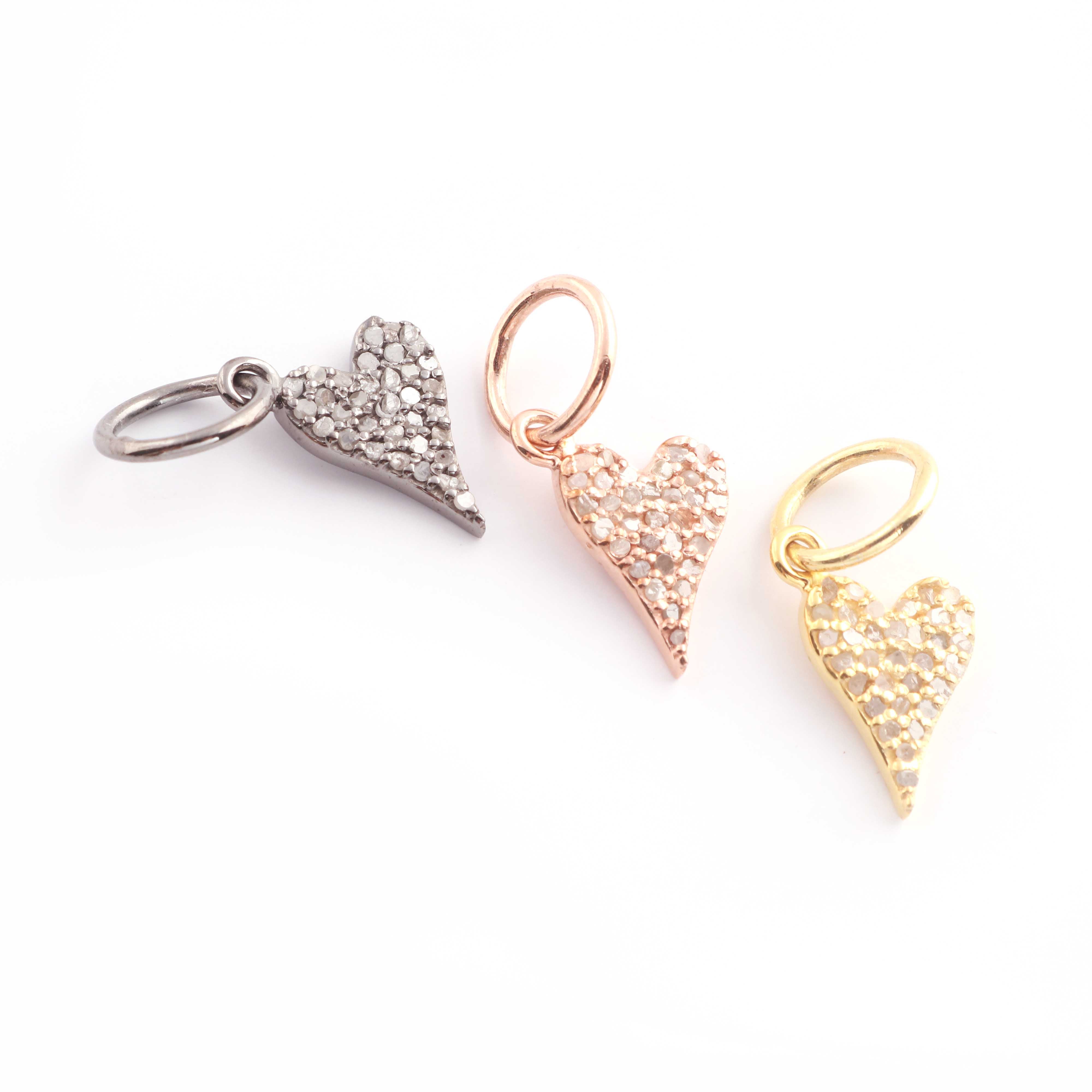 1 Pc Pave Diamond Heart Charm Pendant, 925 Sterling Silver, Rose & Yellow Gold Vermeil Heart Pendant Pave Diamond Jewelry 18mmx7mm You Choose PDC00058