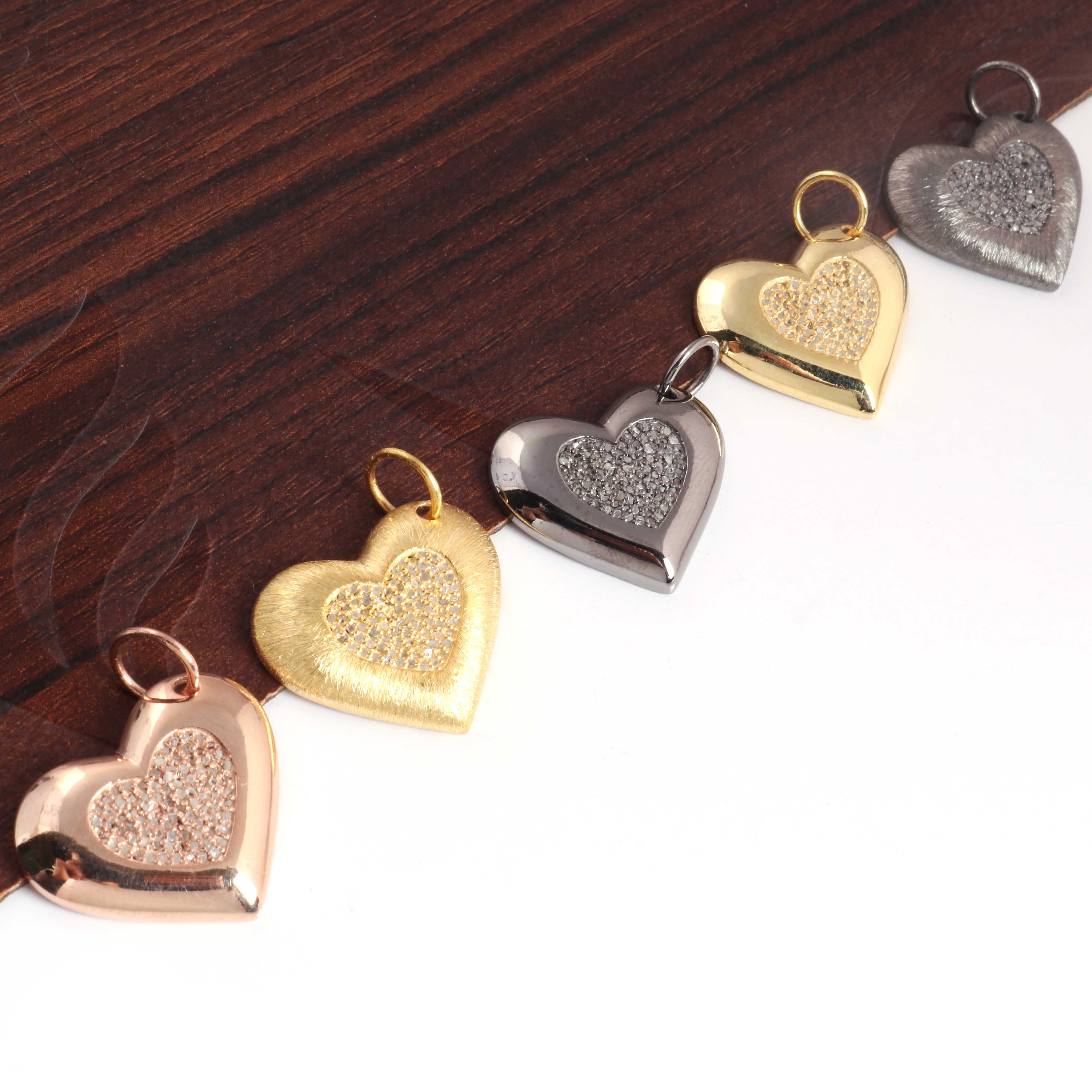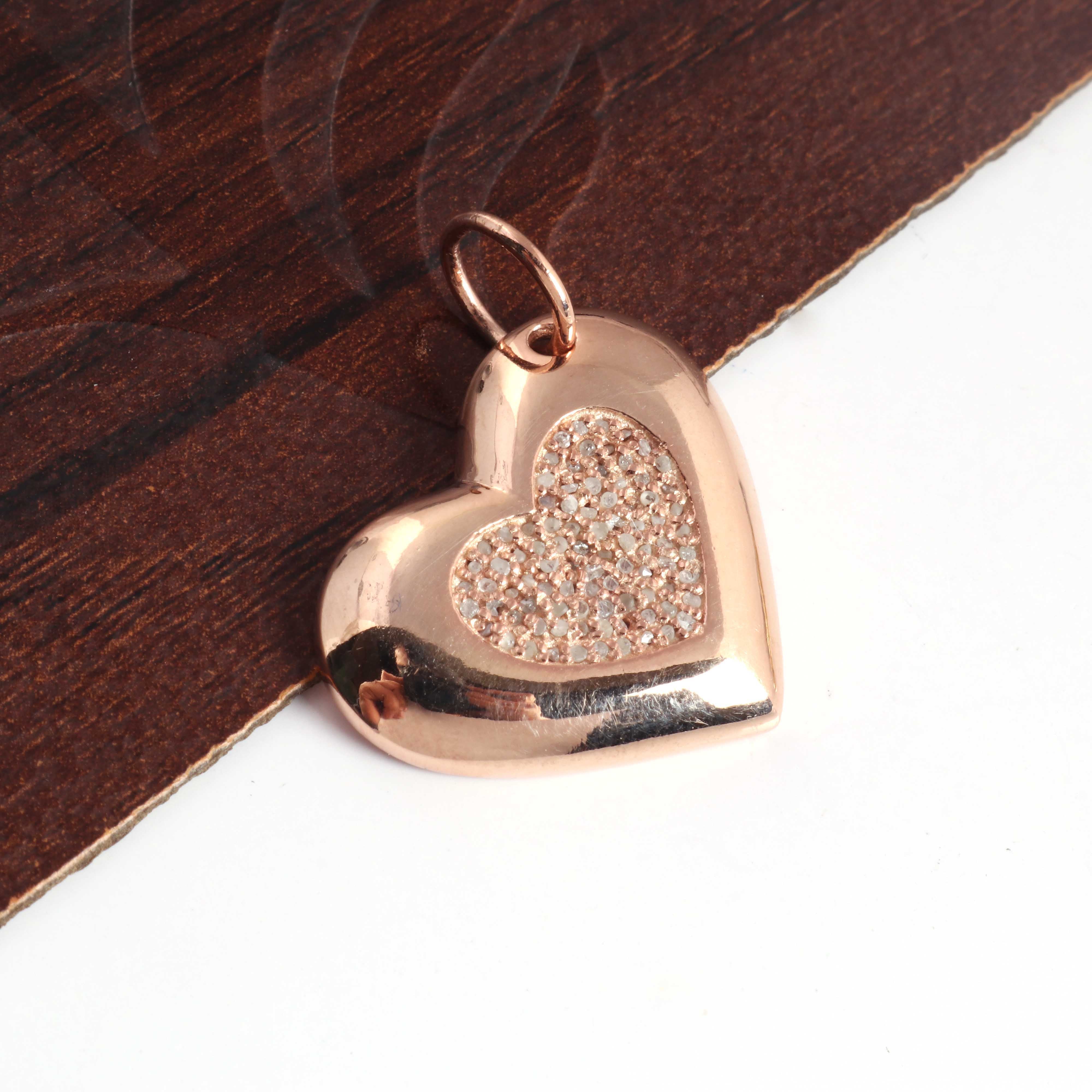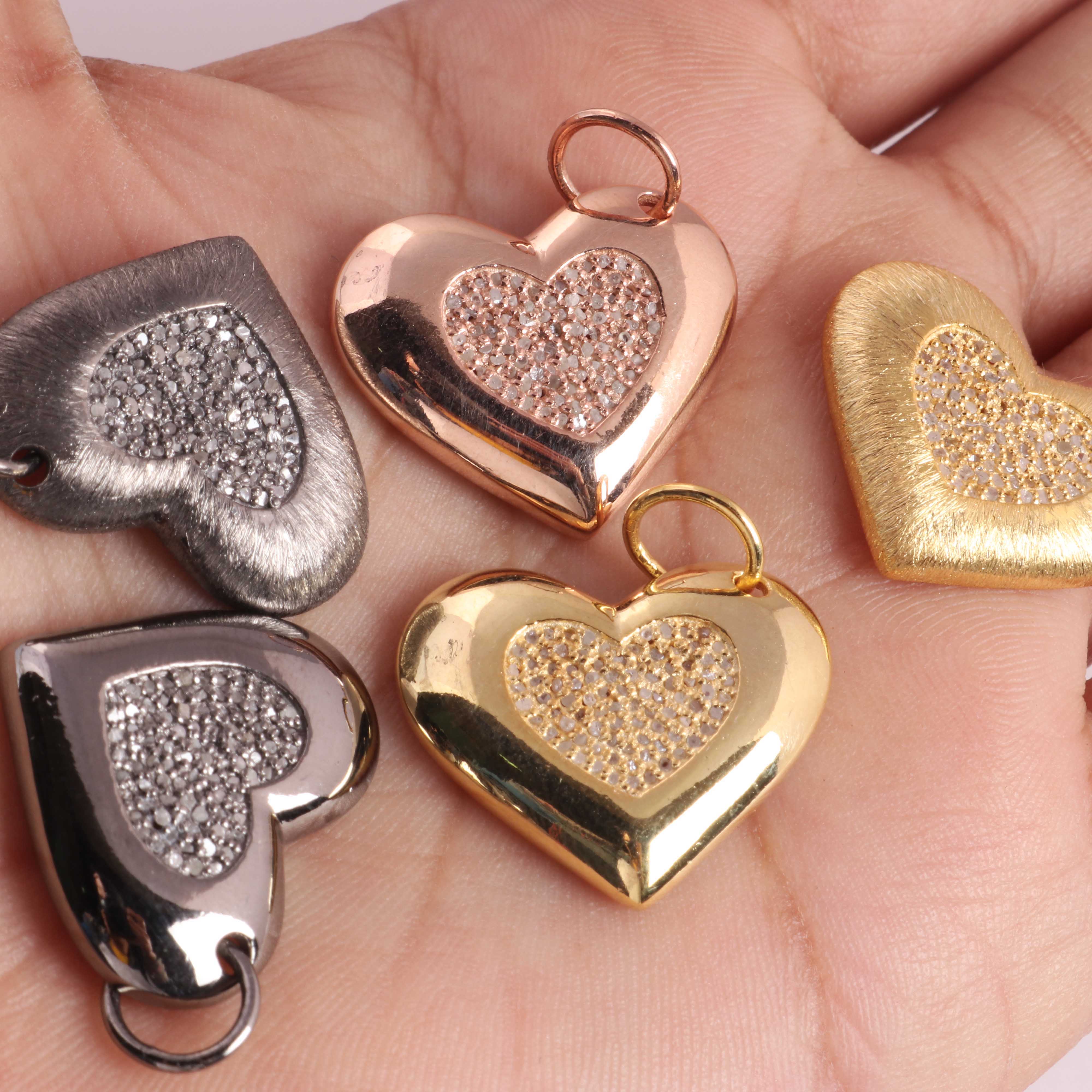 1 Pc Pave Diamond Heart Charm Pendant, 925 Sterling Silver, Rose & Yellow Gold Vermeil Heart Pendant Pave Diamond Jewelry 24mmx20mm You Choose PDC00368
