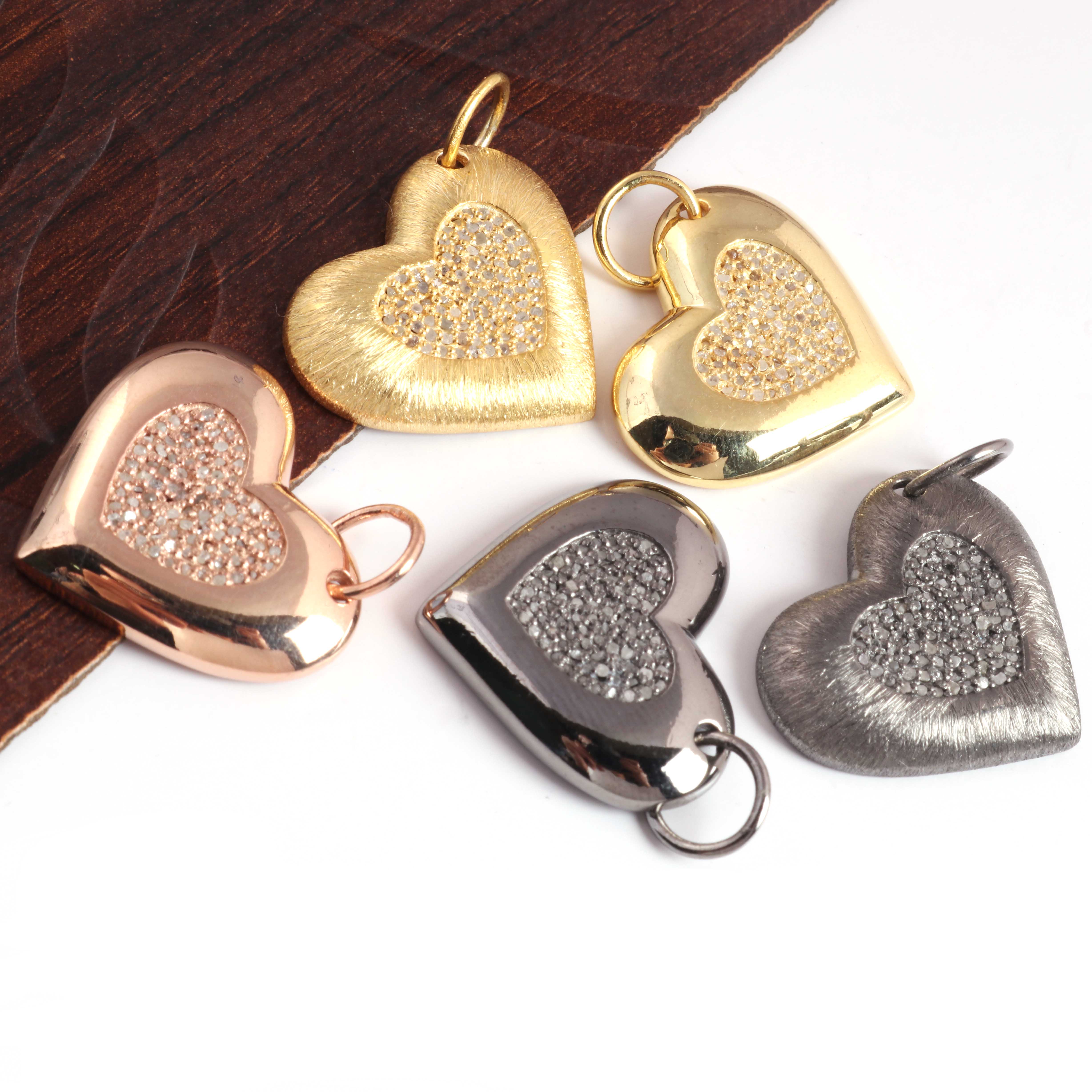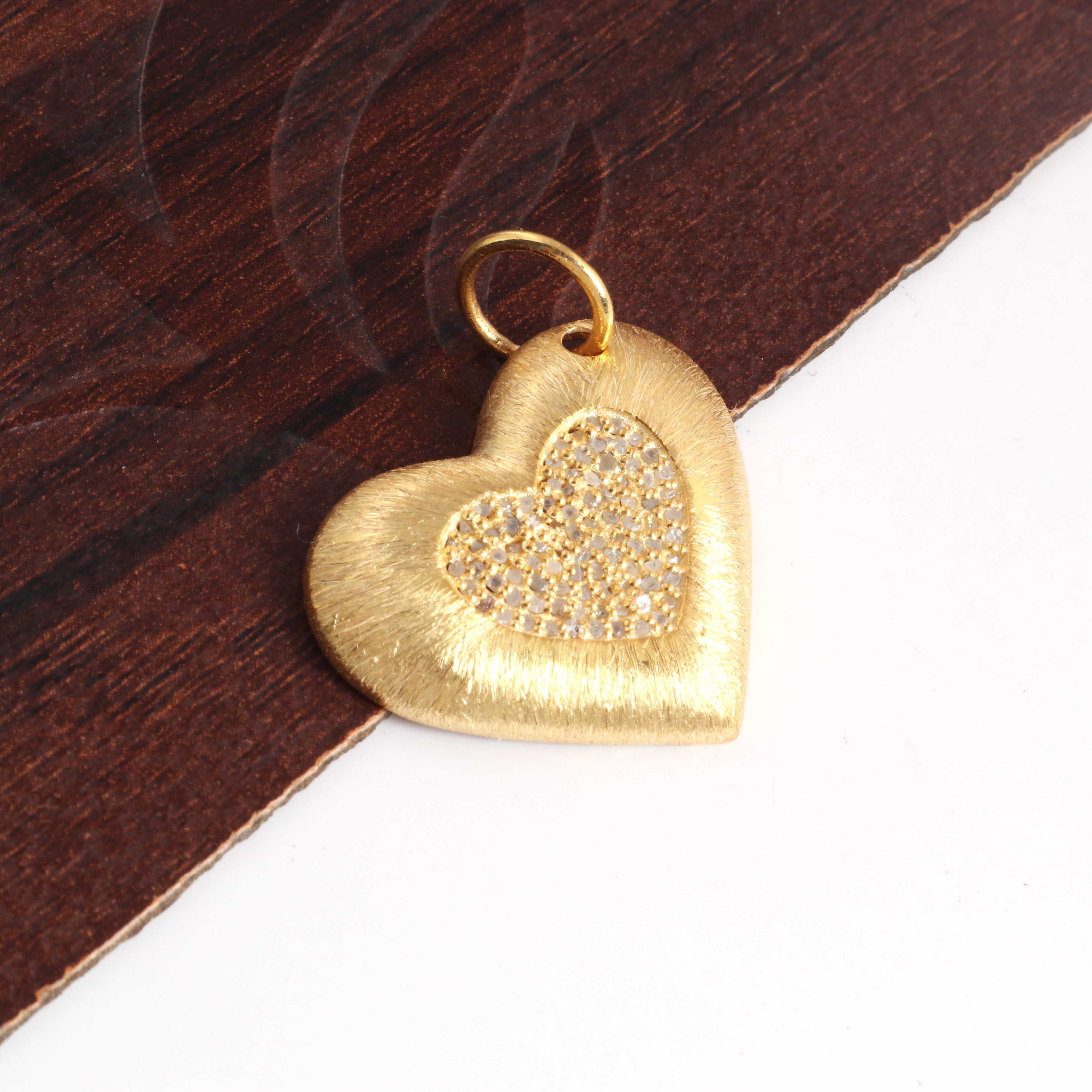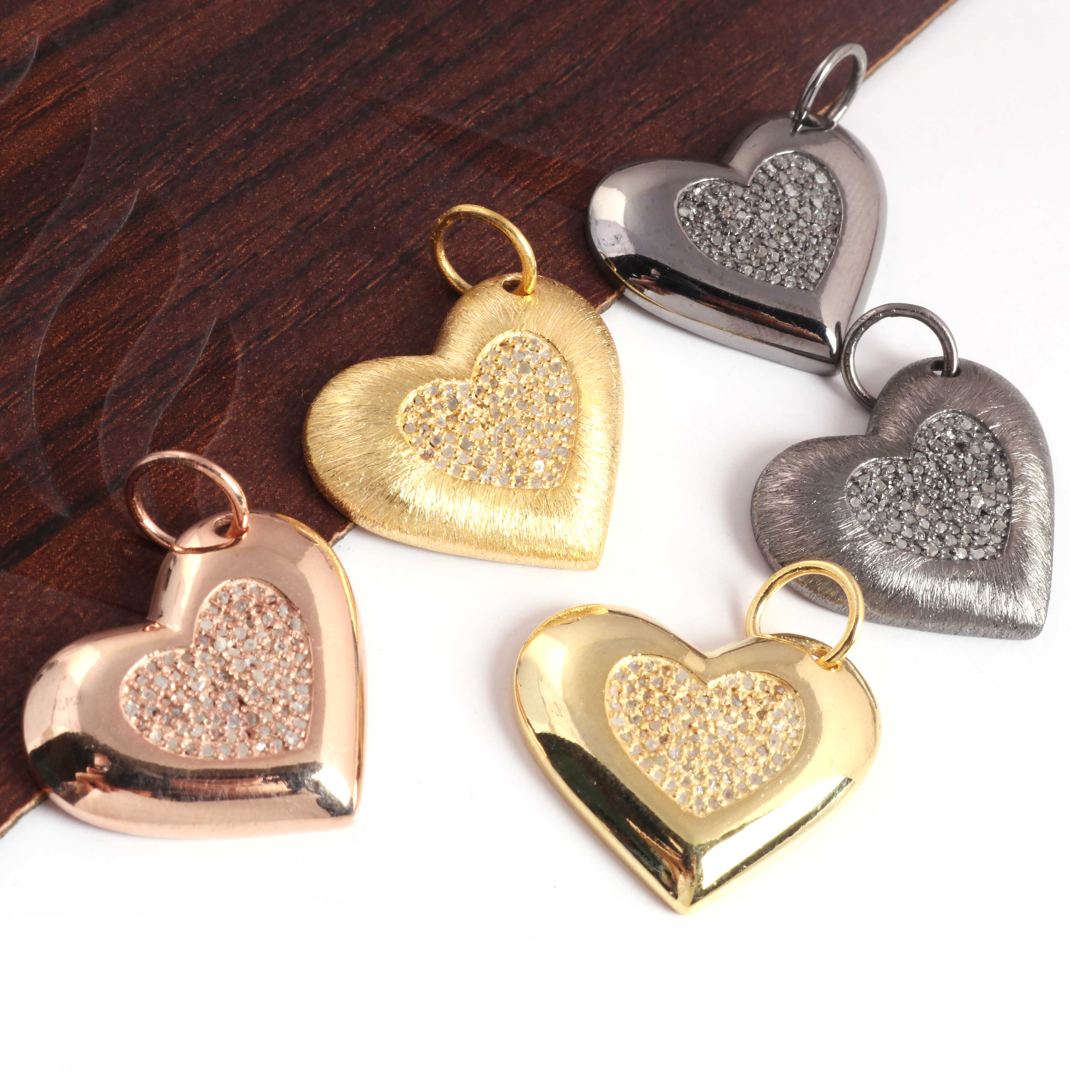 1 Pc Pave Diamond Heart Charm Pendant, 925 Sterling Silver, Rose & Yellow Gold Vermeil Heart Pendant Pave Diamond Jewelry 24mmx20mm You Choose PDC00368