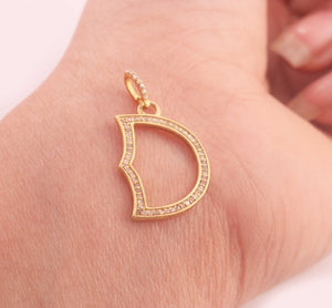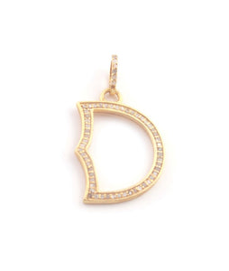 1 PC Pave Diamond Letter " D " Shape Yellow Gold Vermeil Pendant - 22mmx13mm-8mmx5mm RRPD015