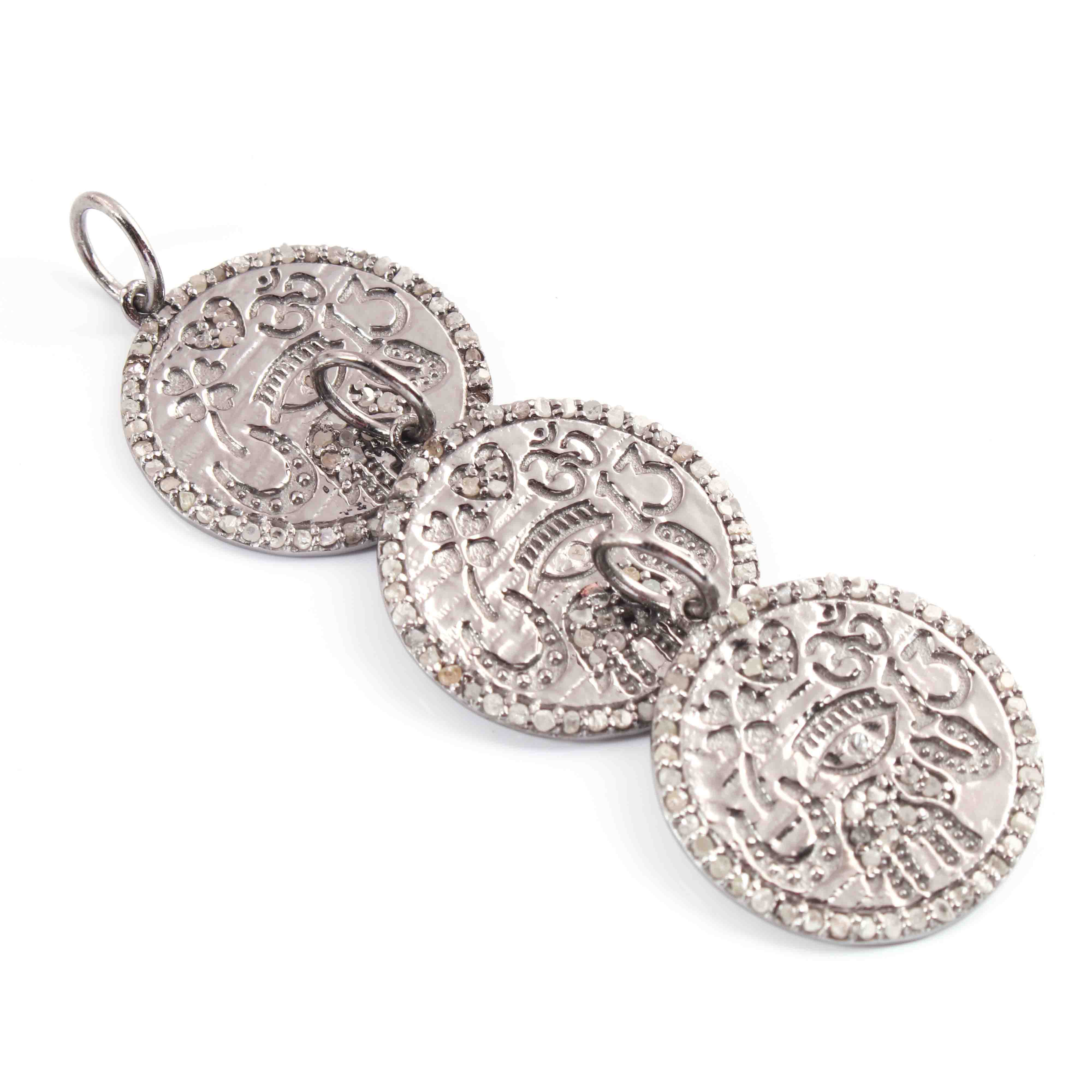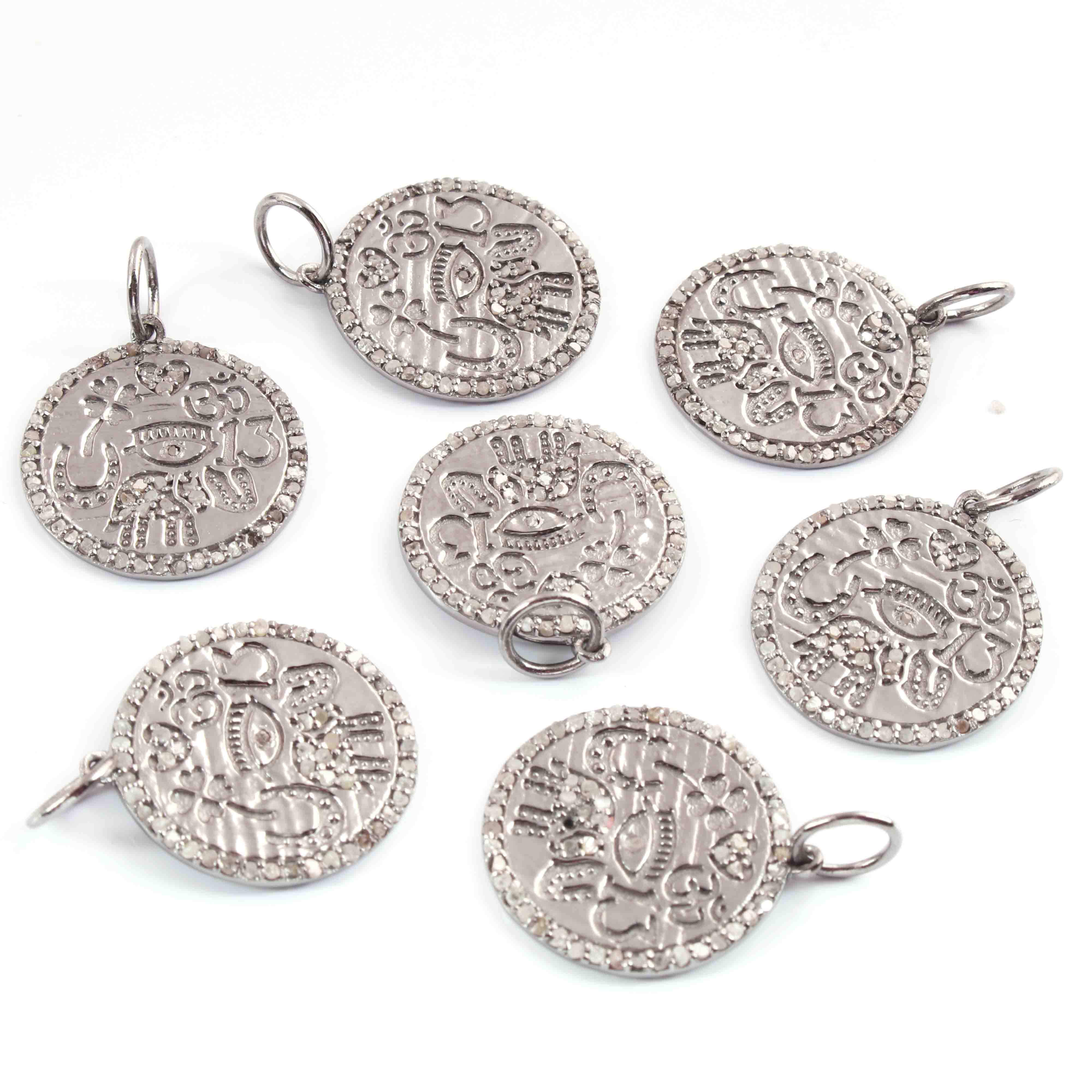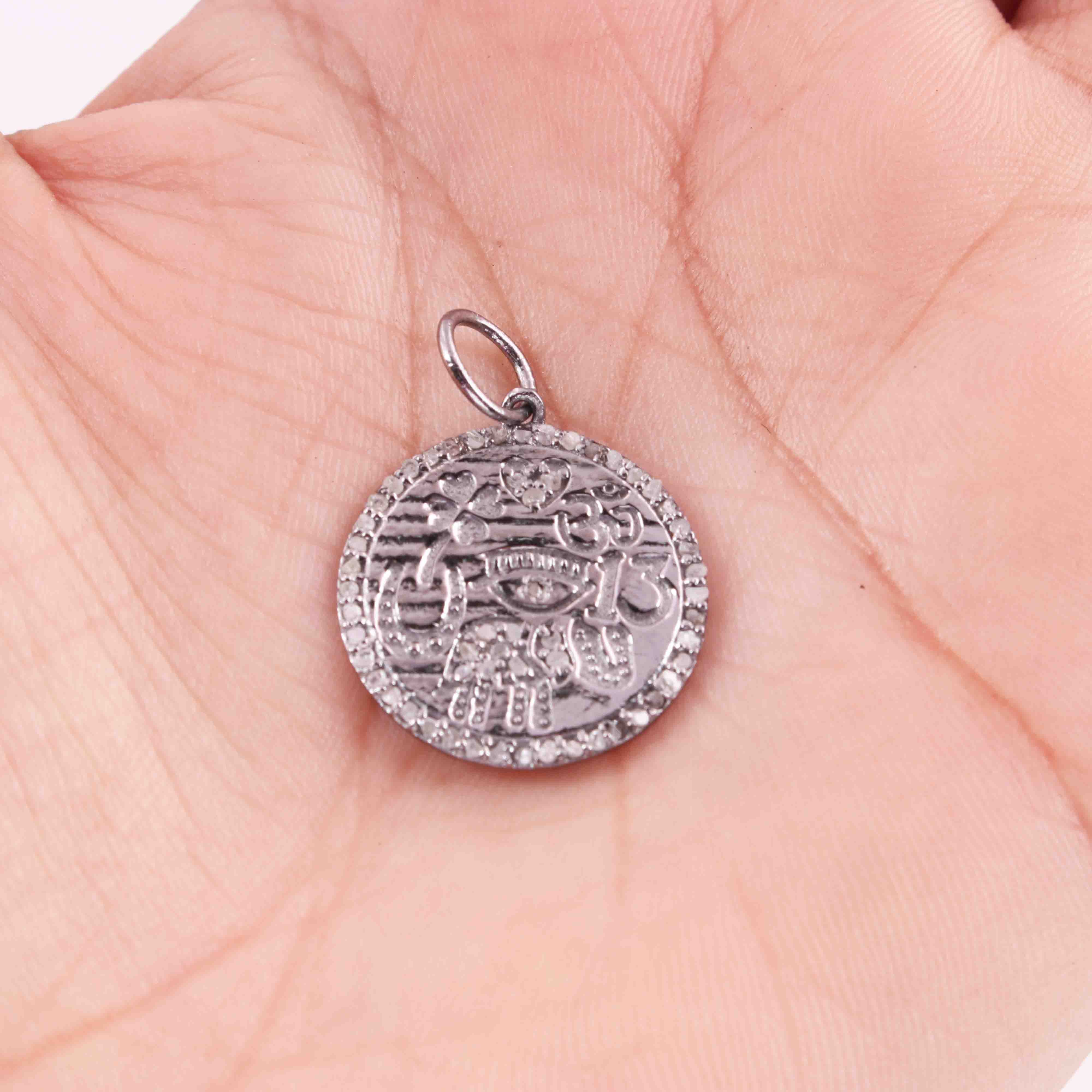 1 Pc Pave Diamond Matte Finish Designer Round Charm 925 Sterling Silver Pendant - Diamond Round Necklace Pendant 21mmx19mm PD1940