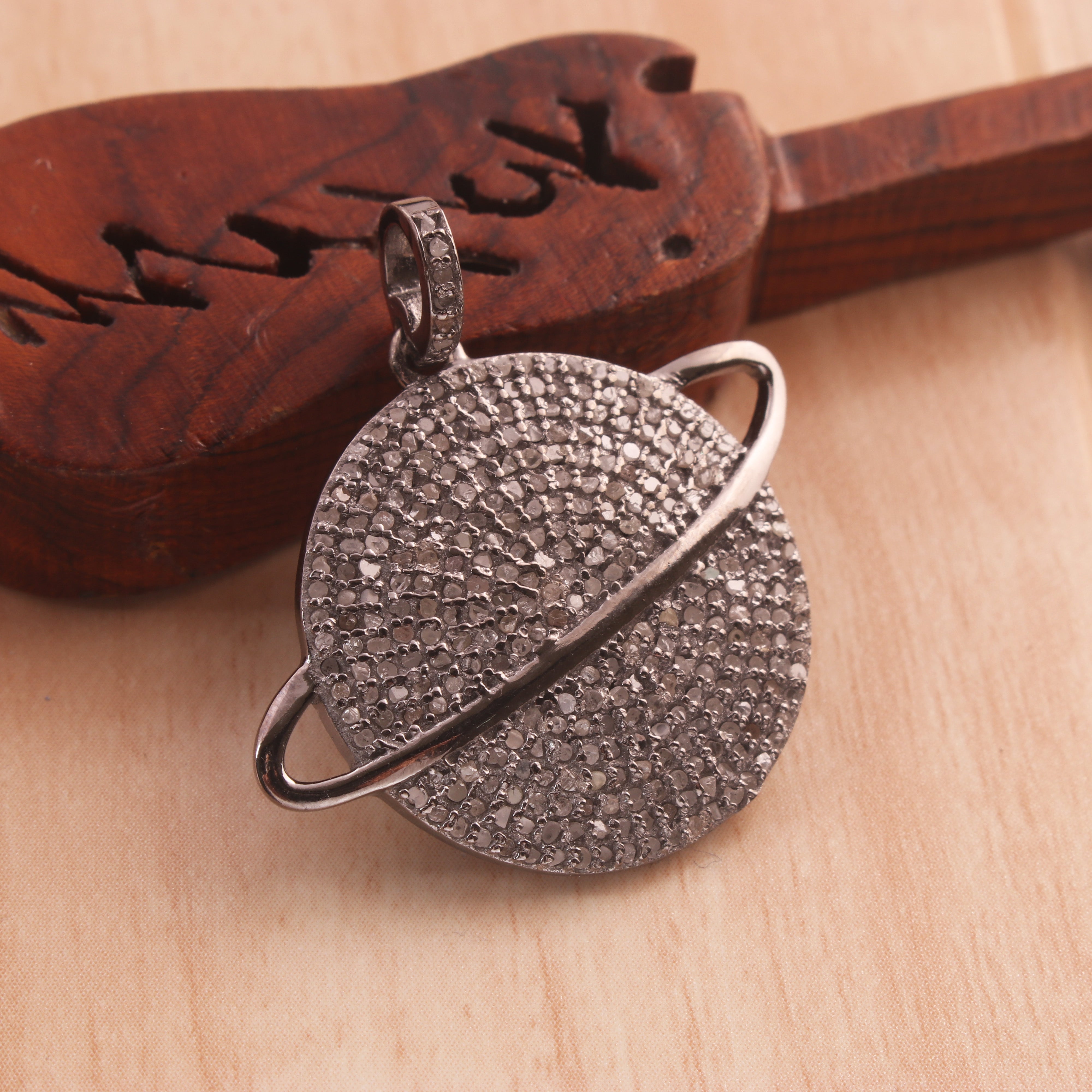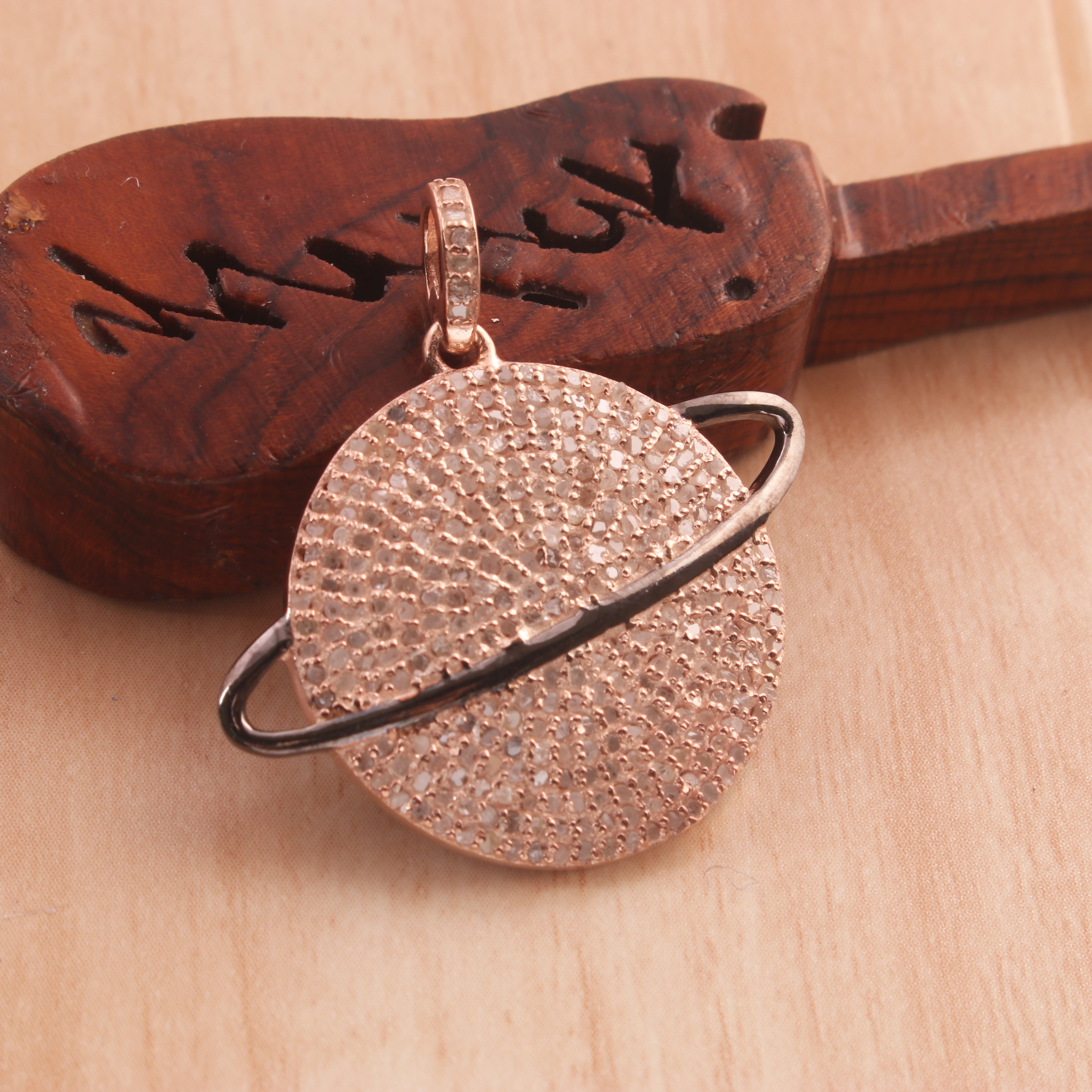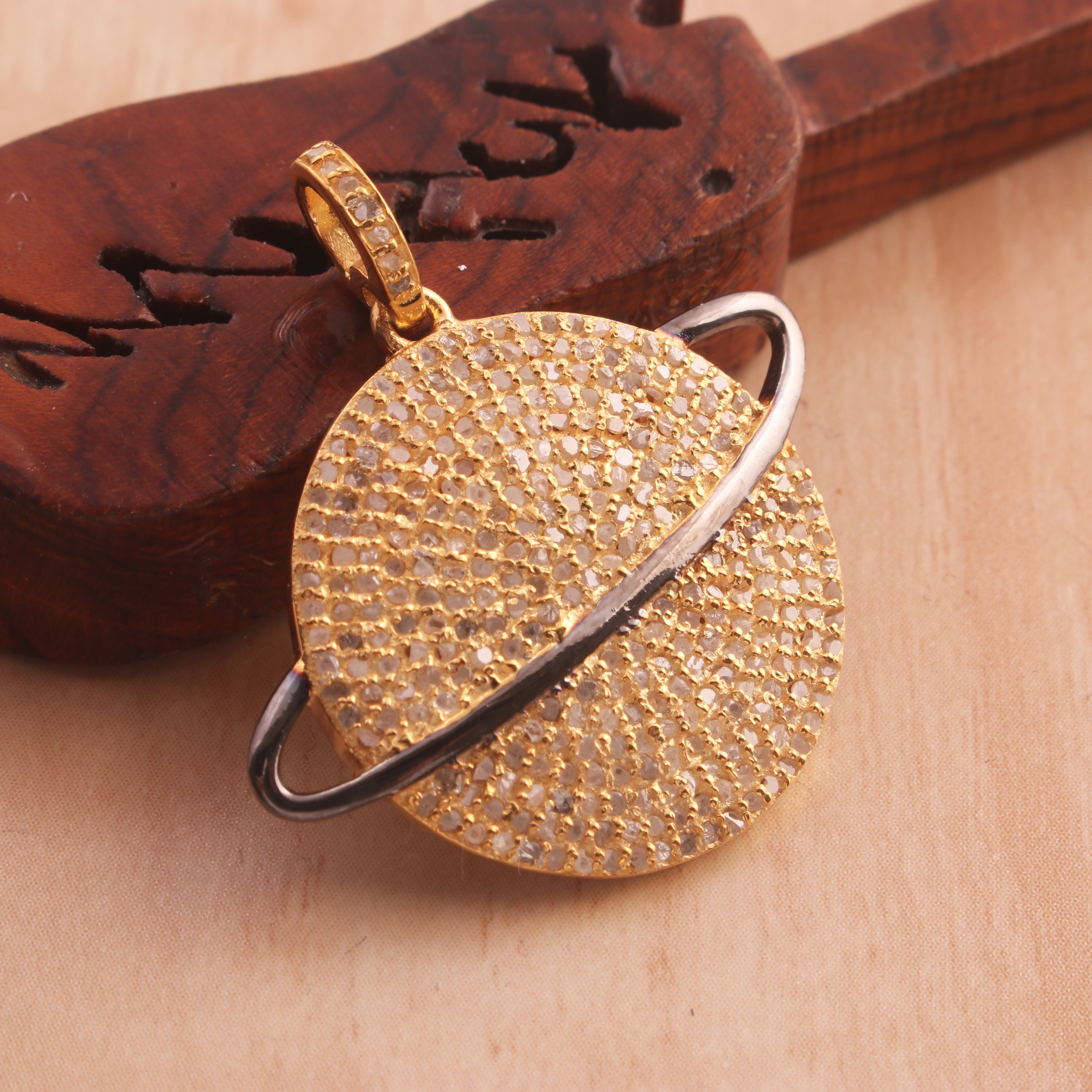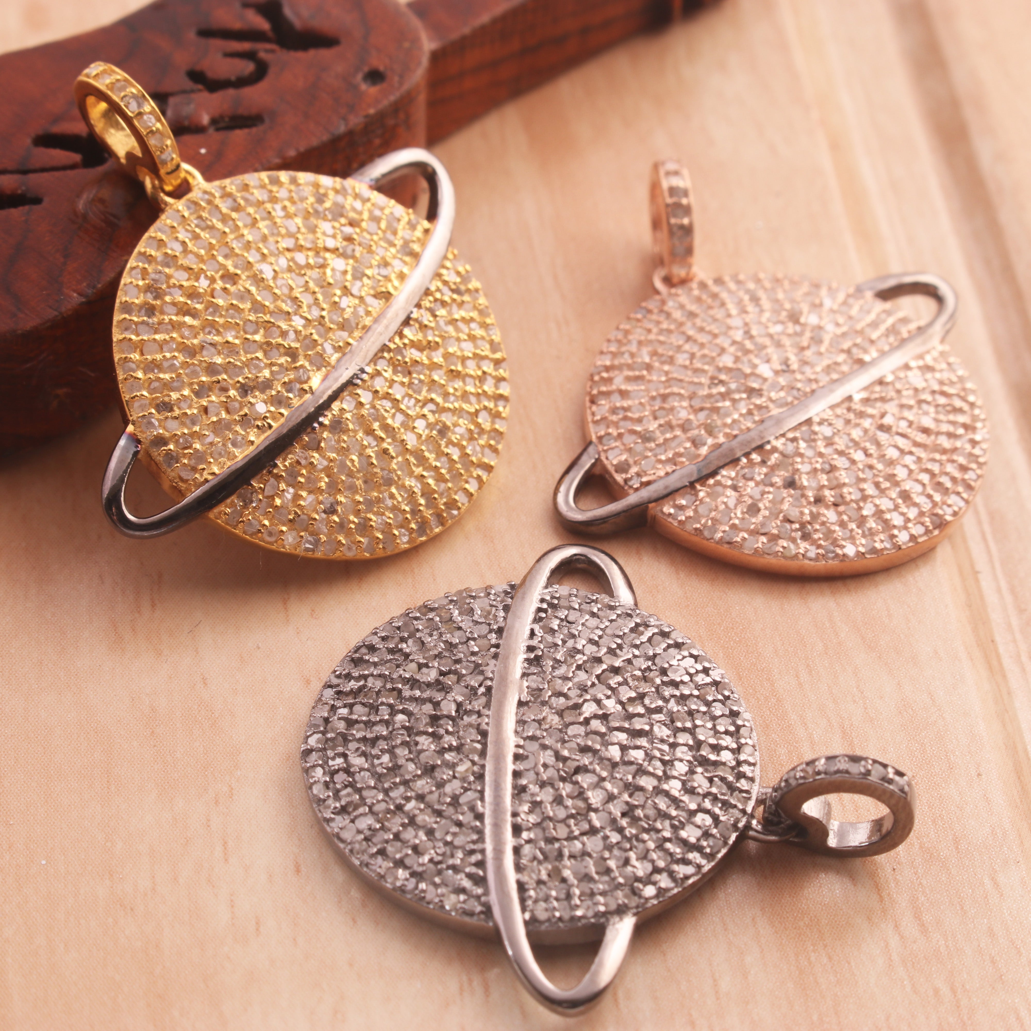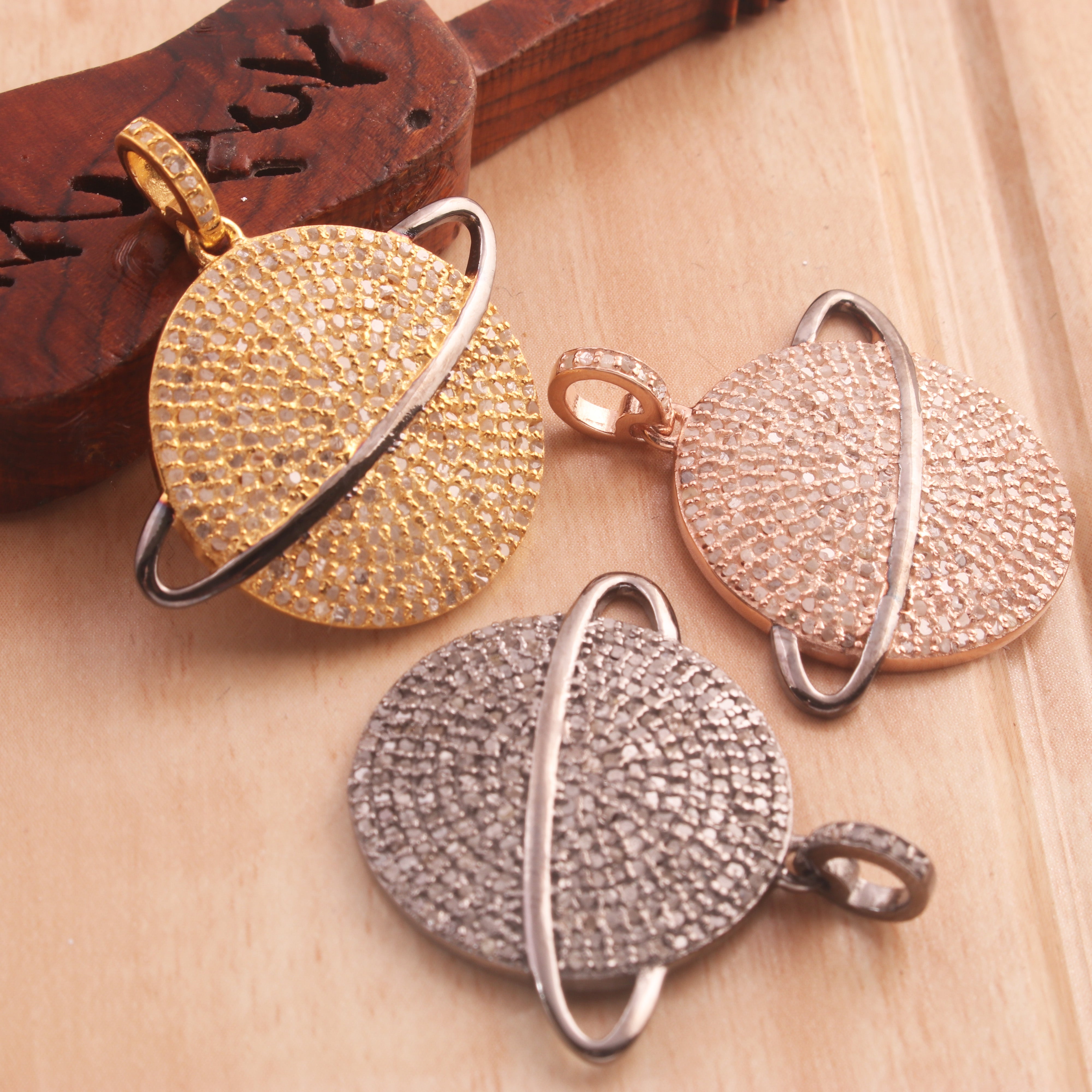 1 Pc Pave Diamond Saturn Pendant - 925 Sterling Silver, Yellow & Rose Gold Vermeil - Diamond Pendant 28mmx34mm PD1854