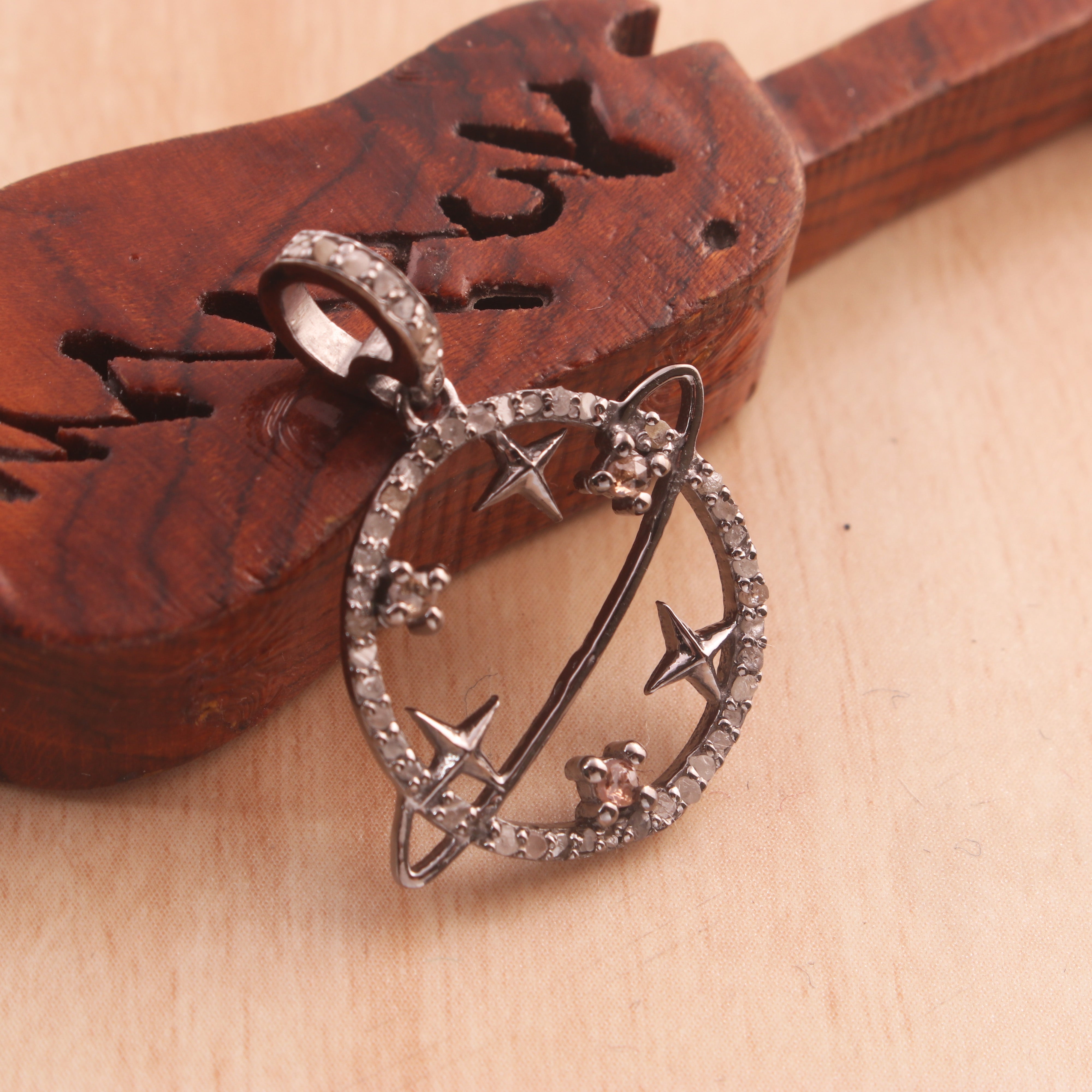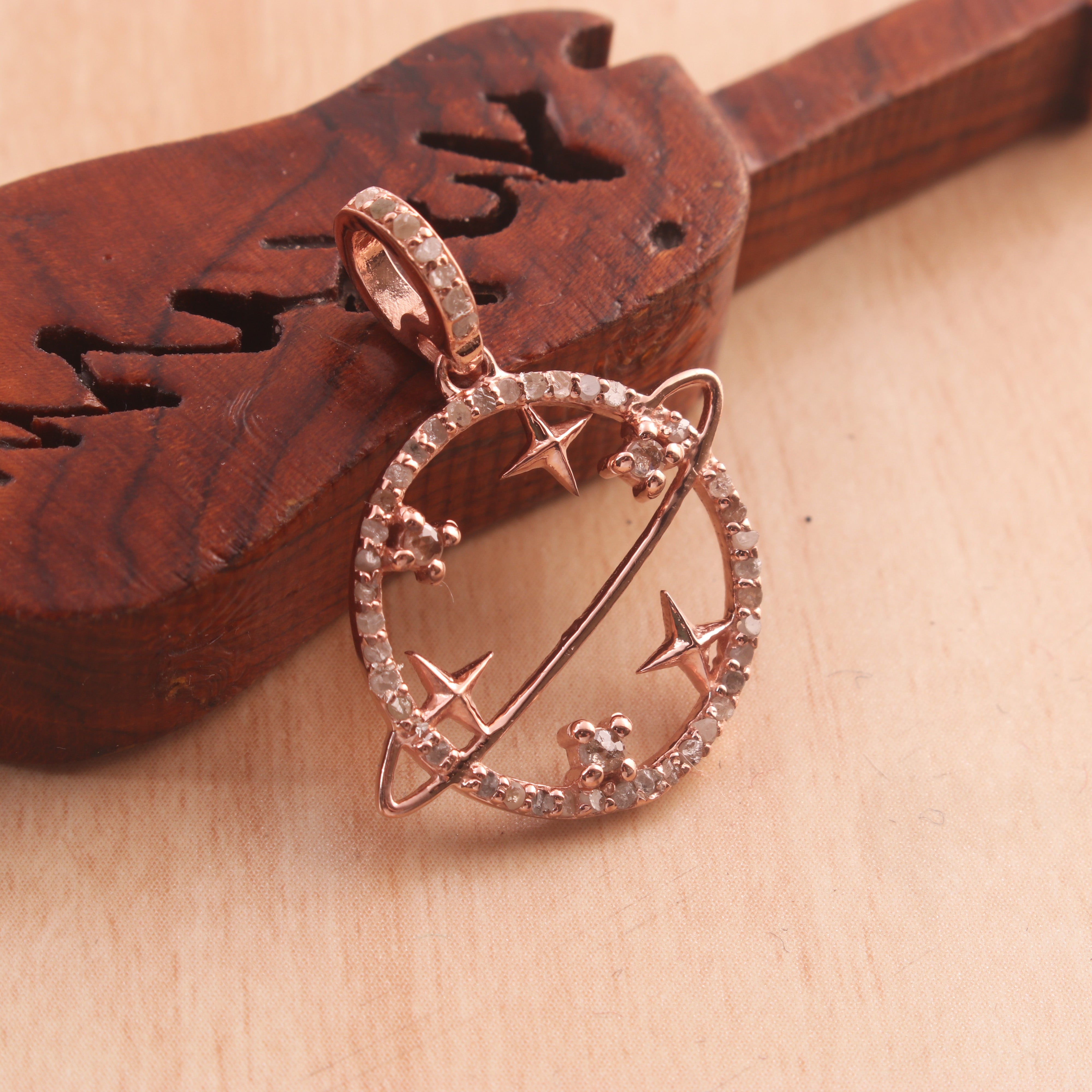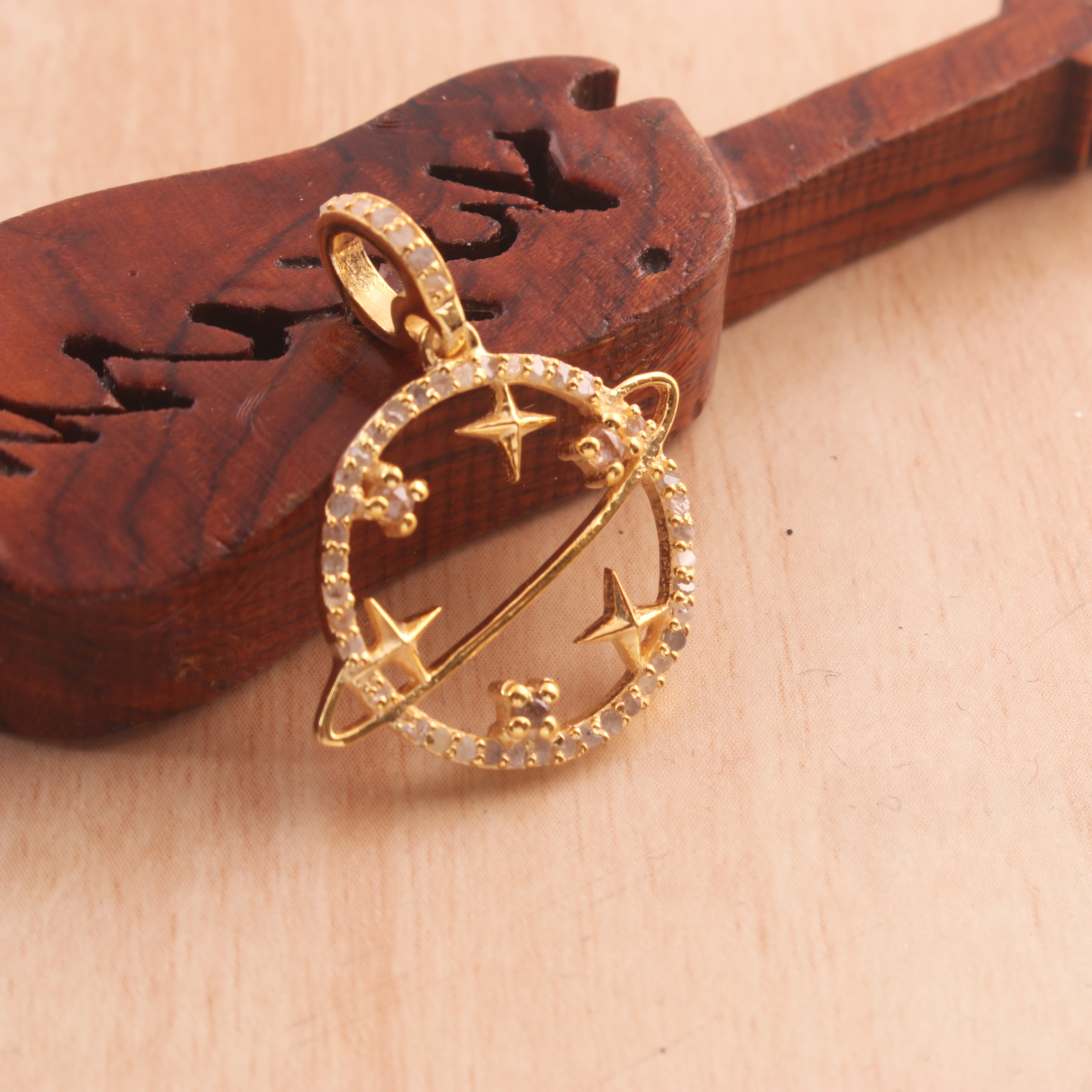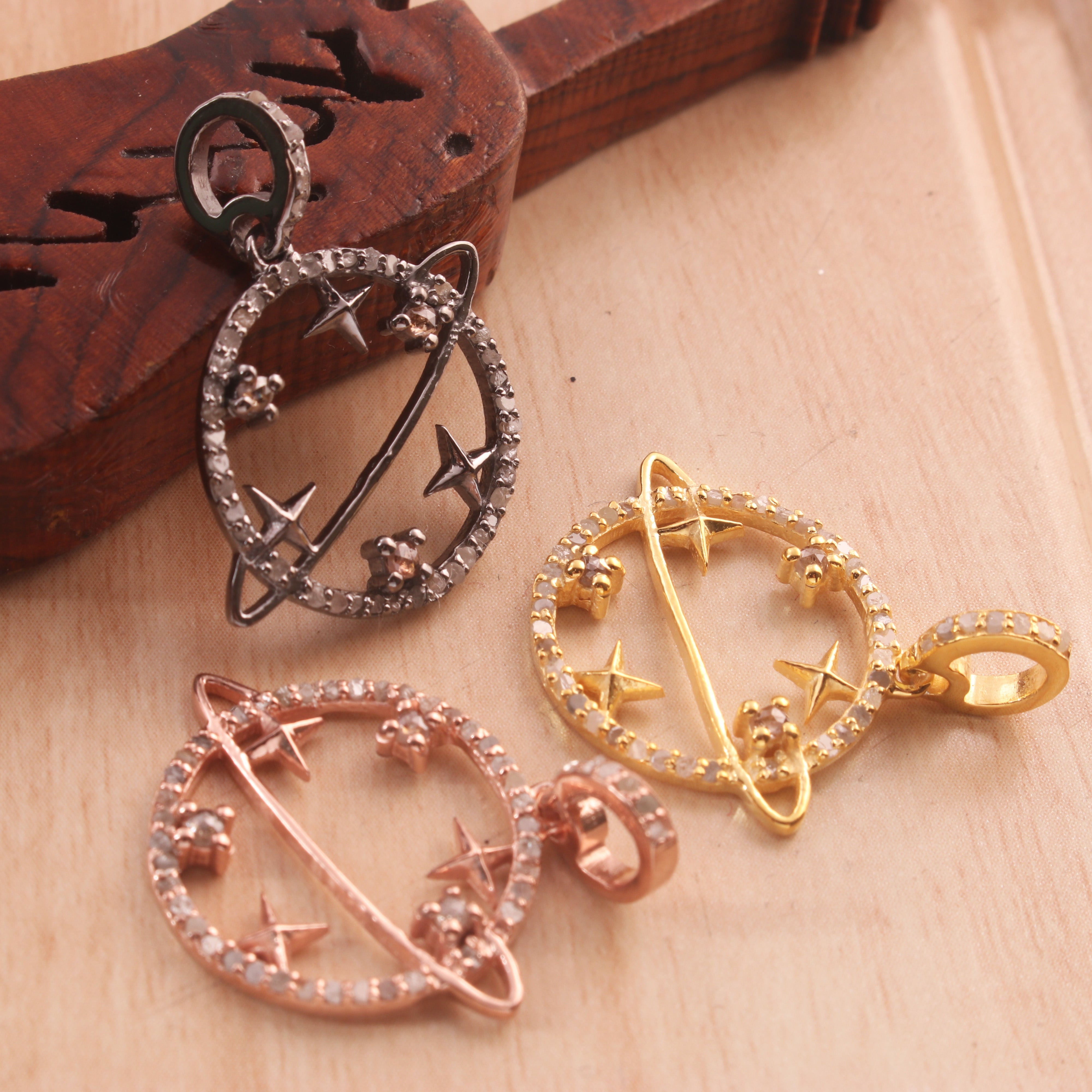 1 Pc Pave Diamond Open Star Saturn Pendant - 925 Sterling Silver, Yellow & Rose Gold Vermeil - Diamond Pendant 21mmx24mm PD1855