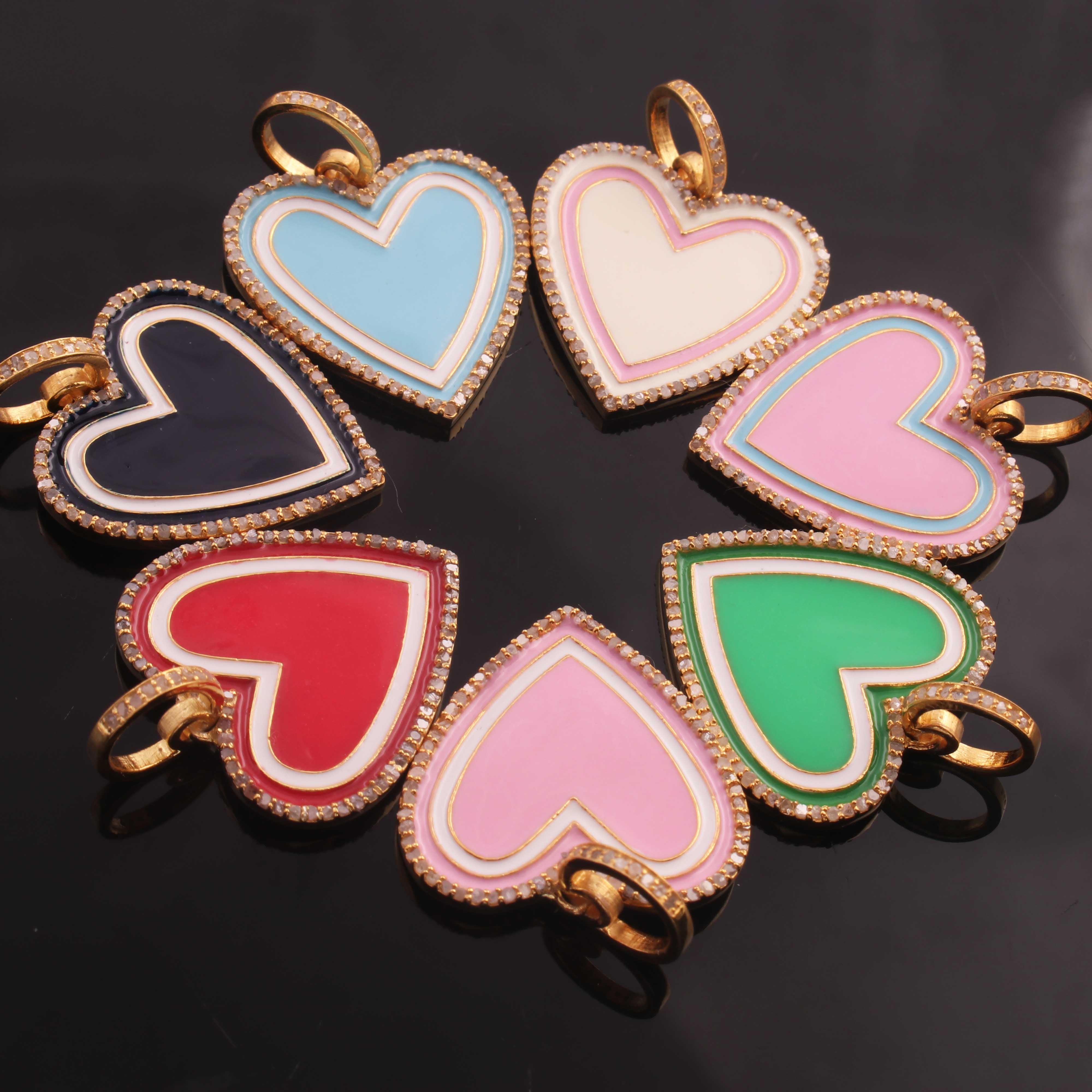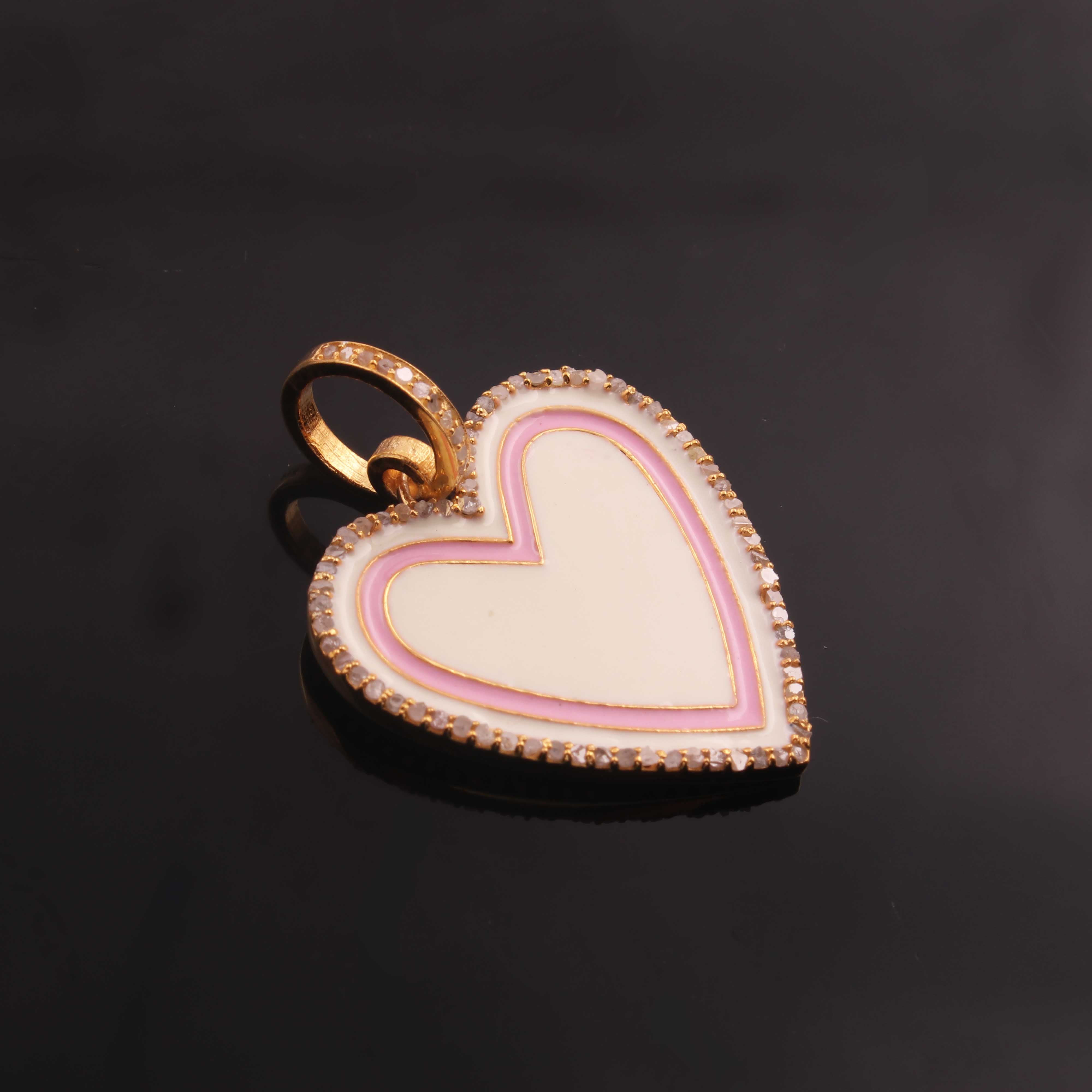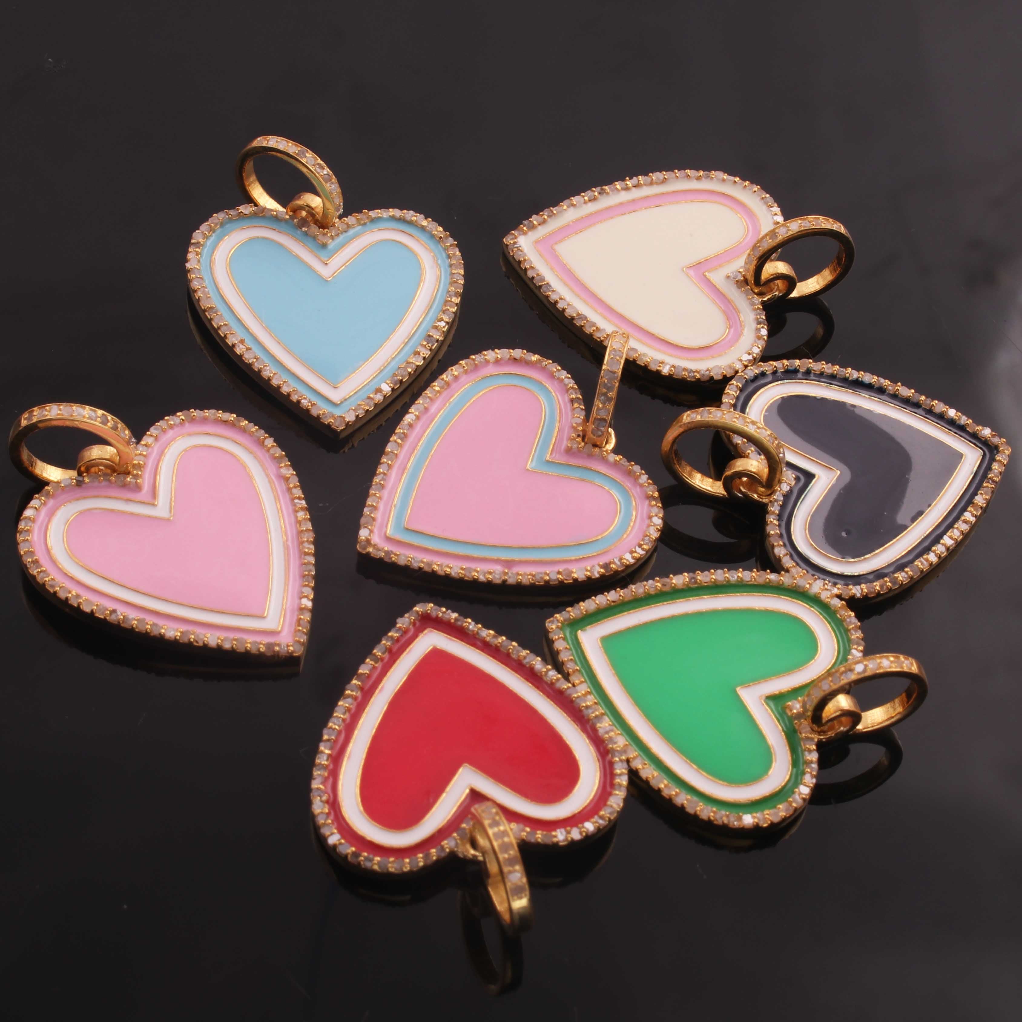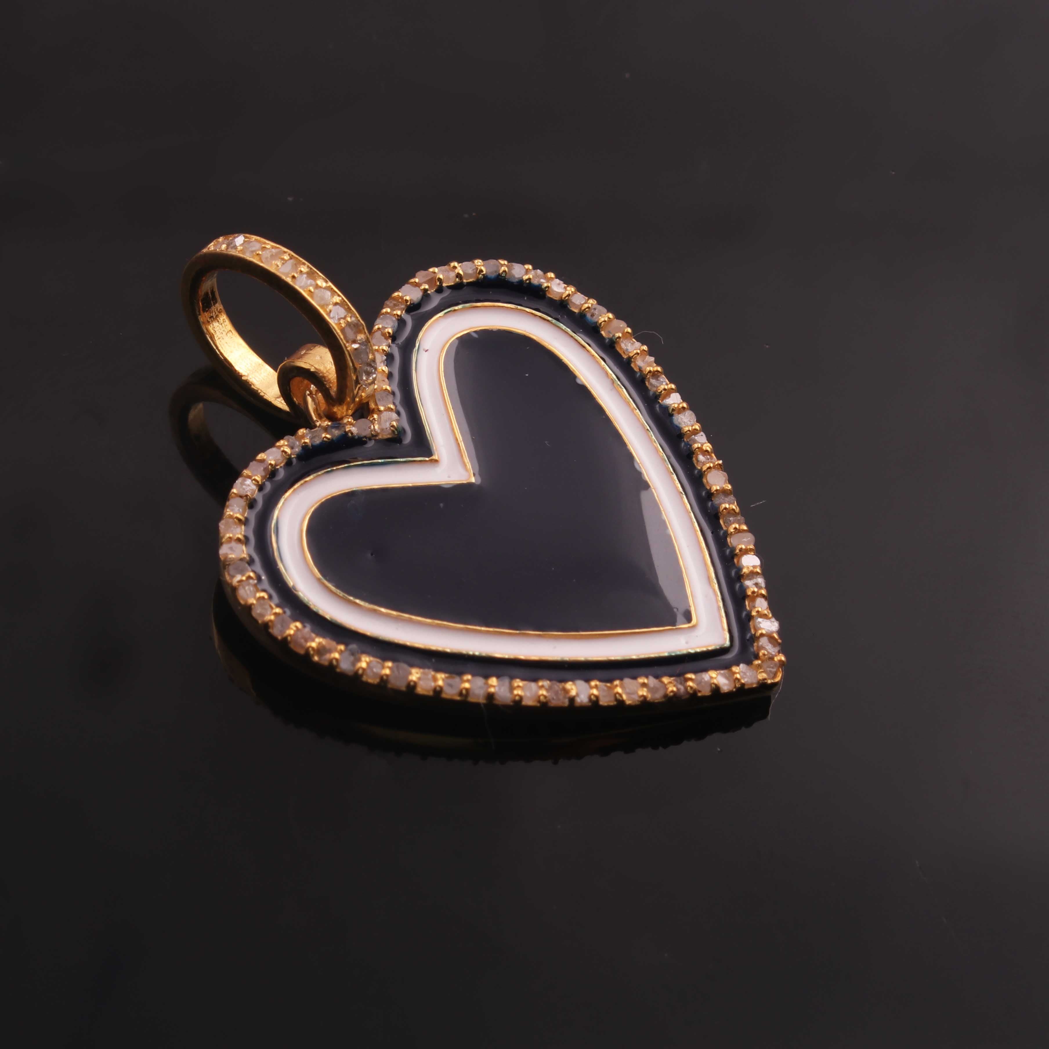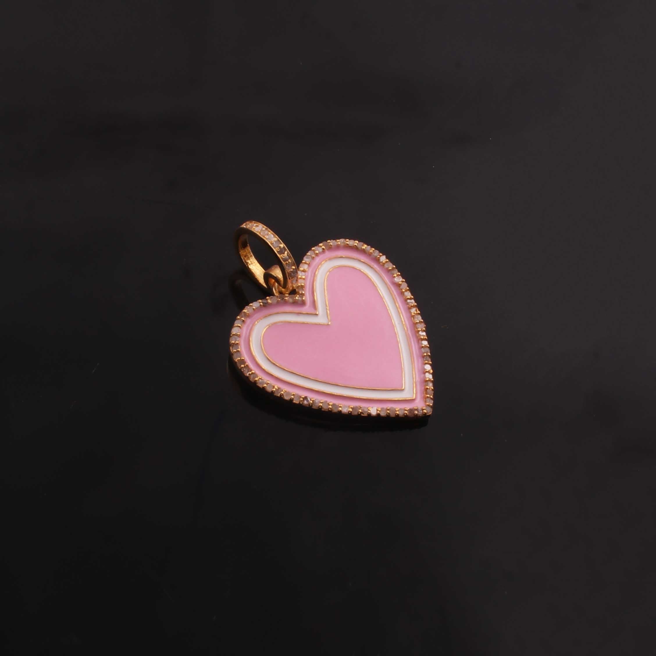 1 Pc Pave Diamond Pendant, Yellow Gold Vermeil , Bakelite Heart Charm, Enamel Heart Pendant 27mmx25mm PD1951
