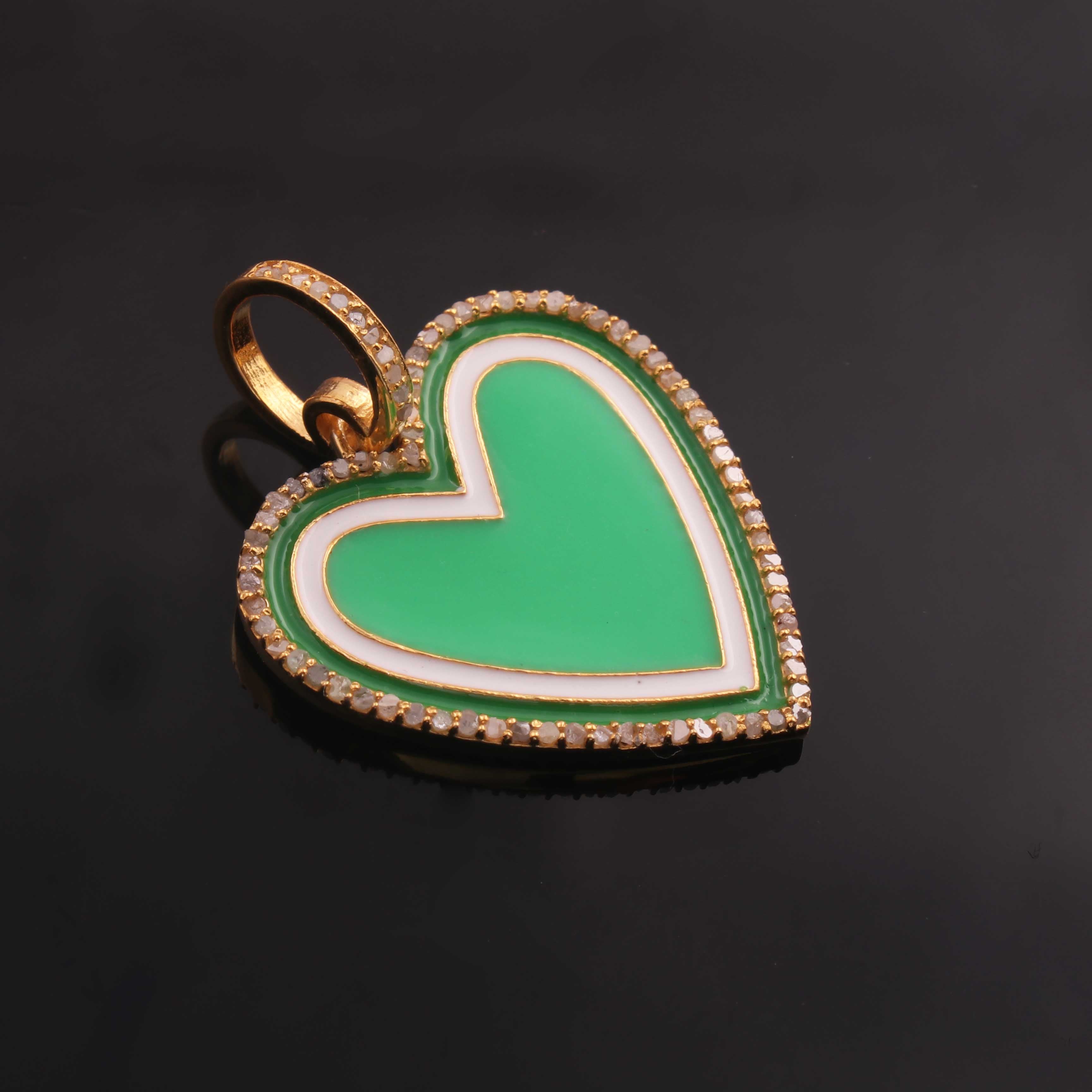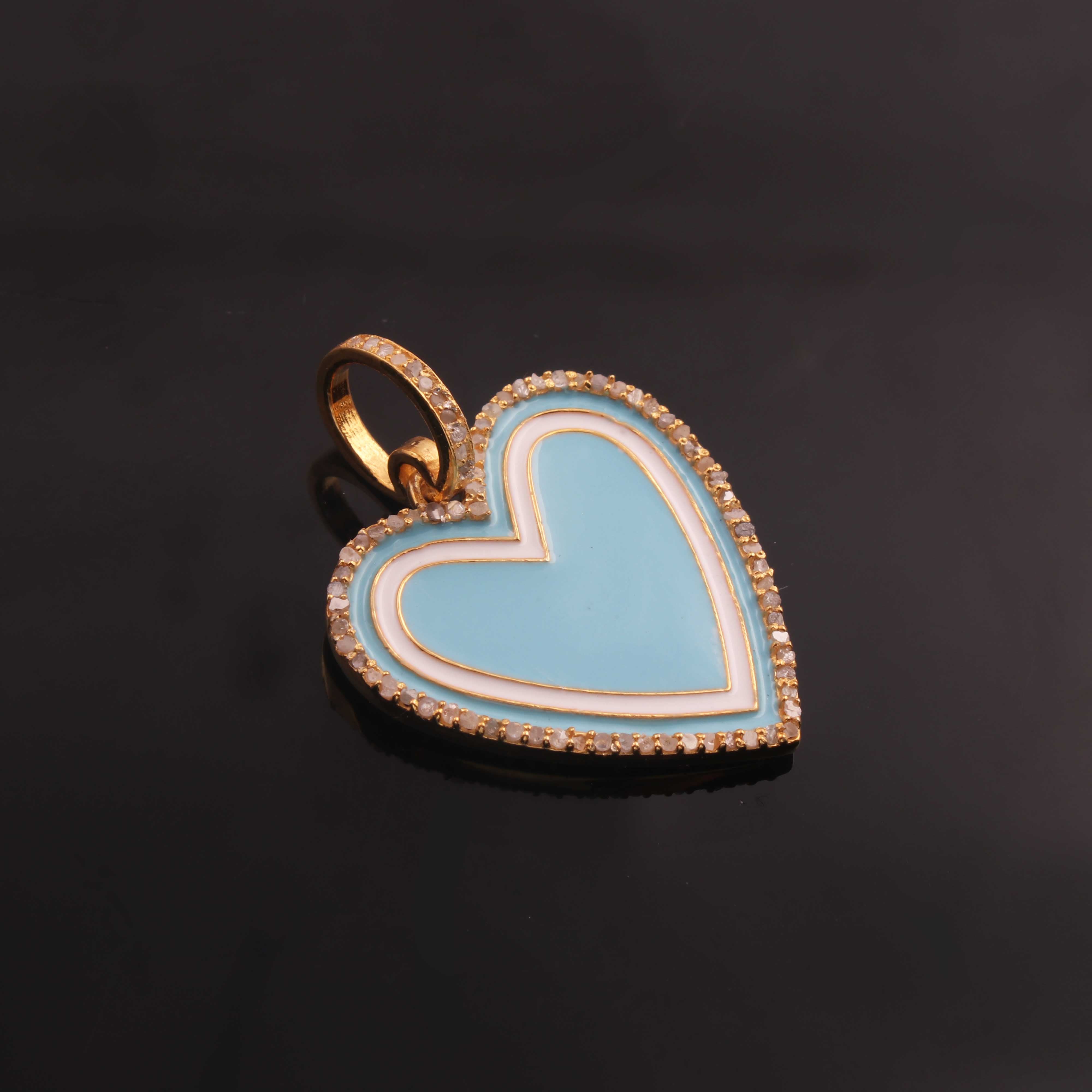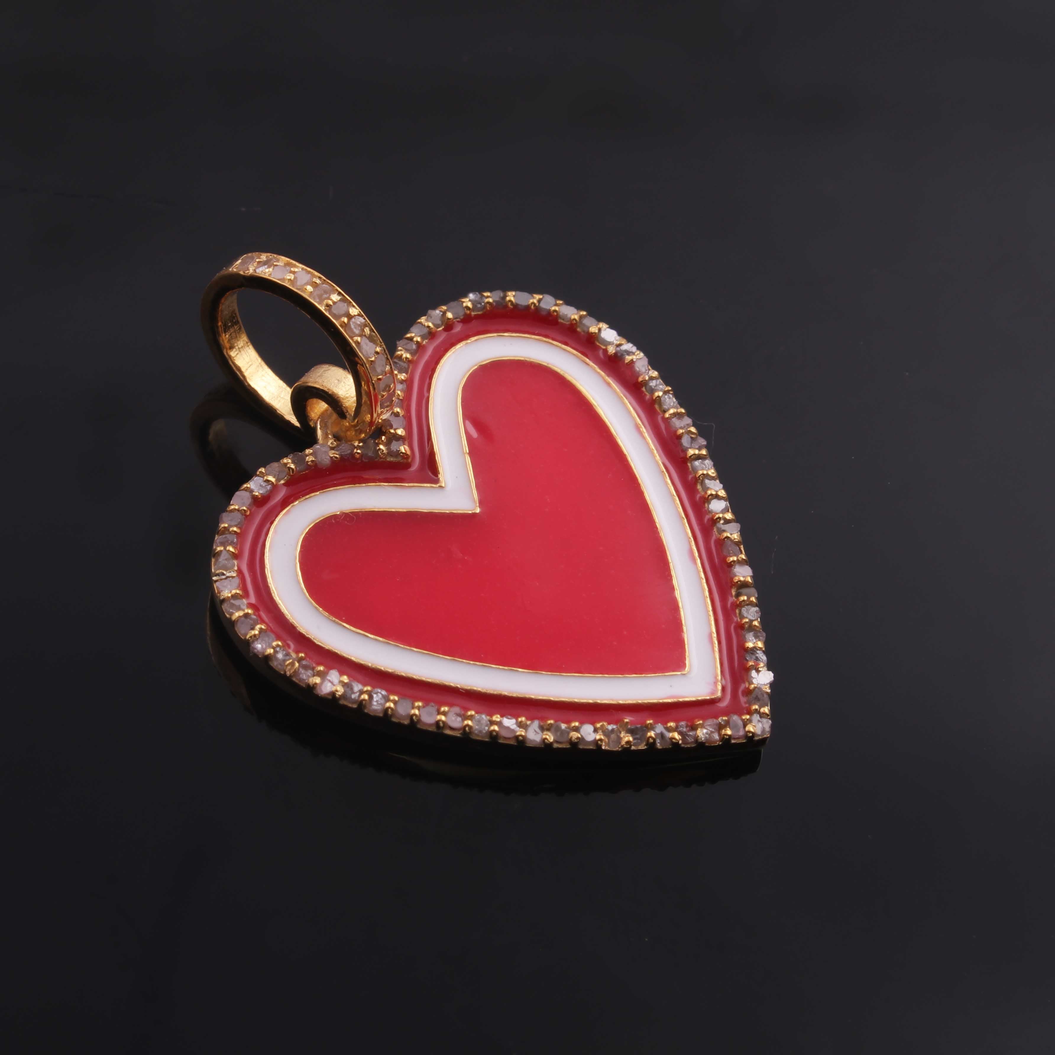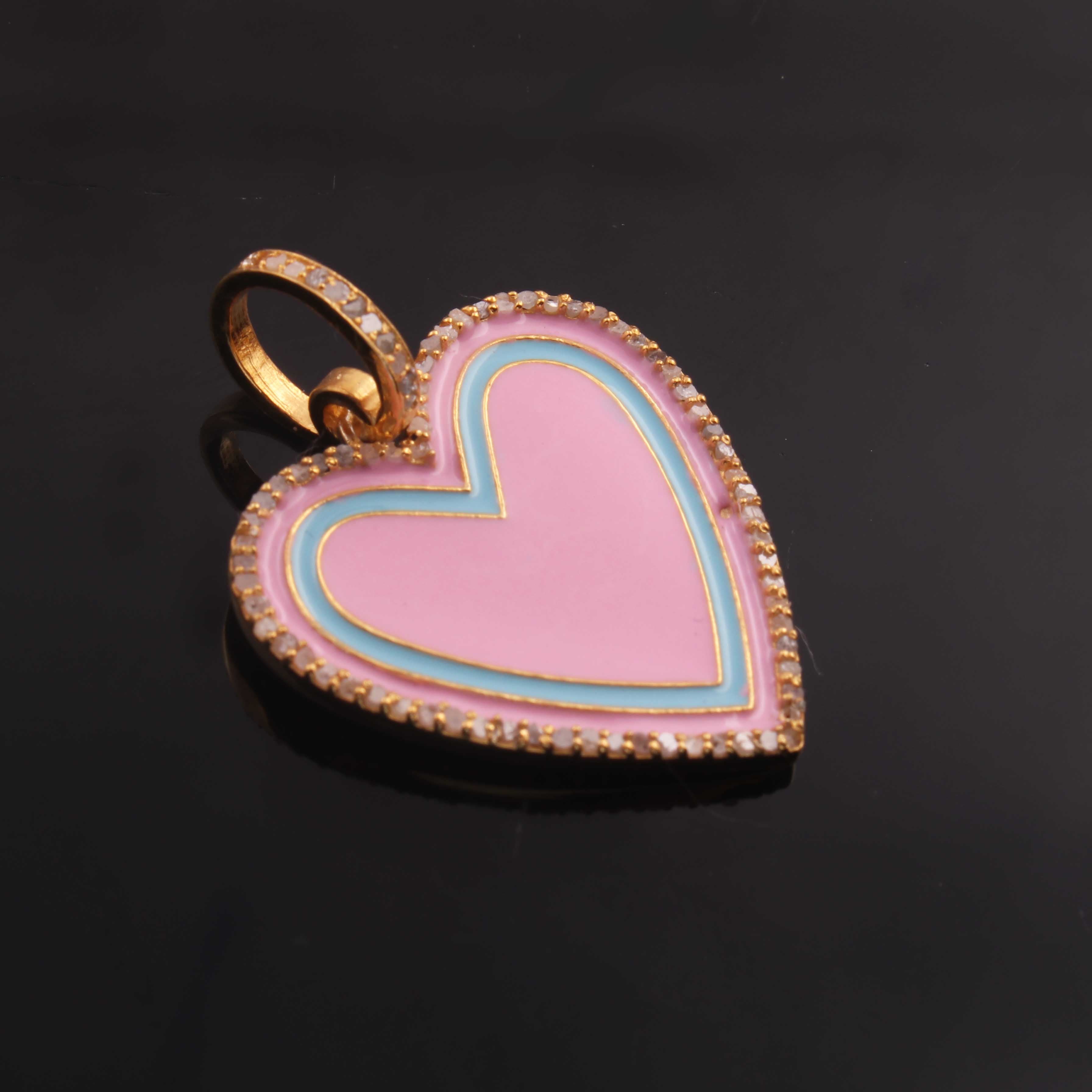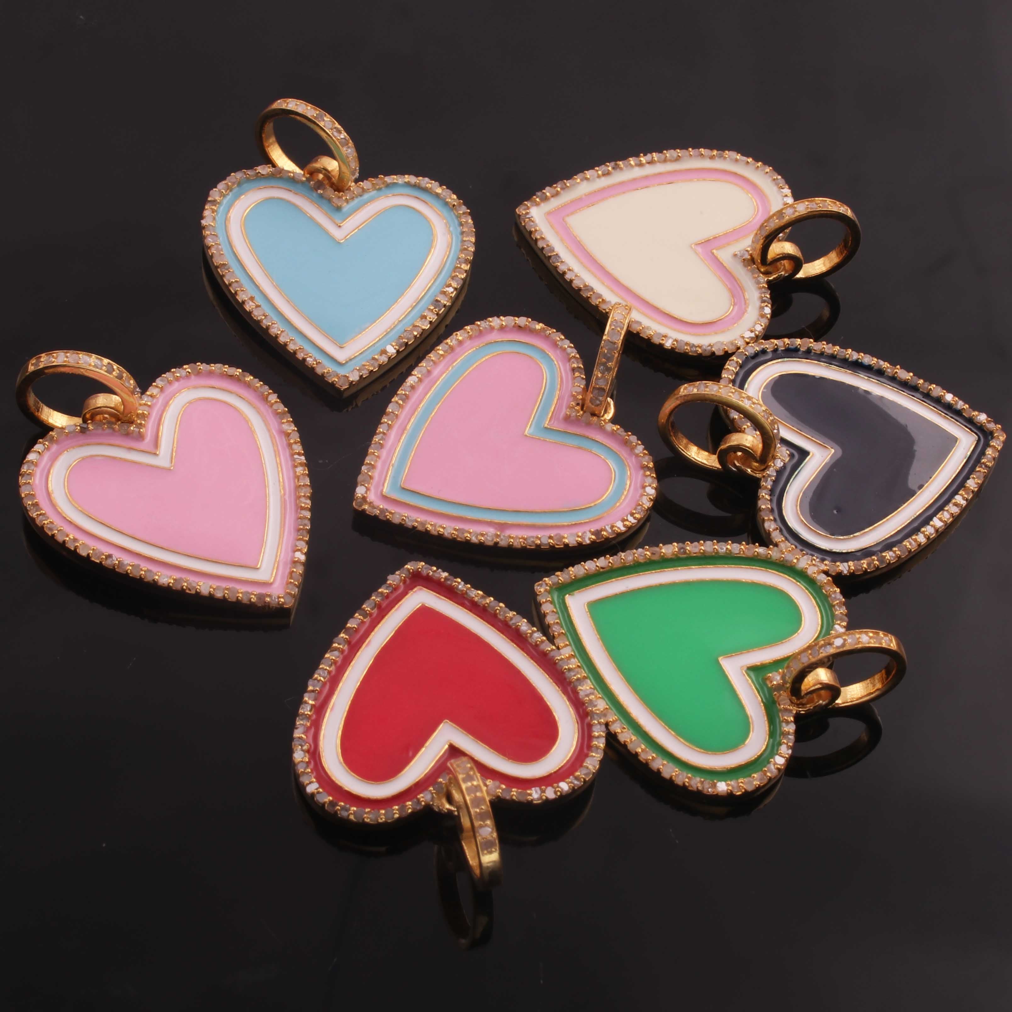 1 Pc Pave Diamond Pendant, Yellow Gold Vermeil , Bakelite Heart Charm, Enamel Heart Pendant 27mmx25mm PD1951
