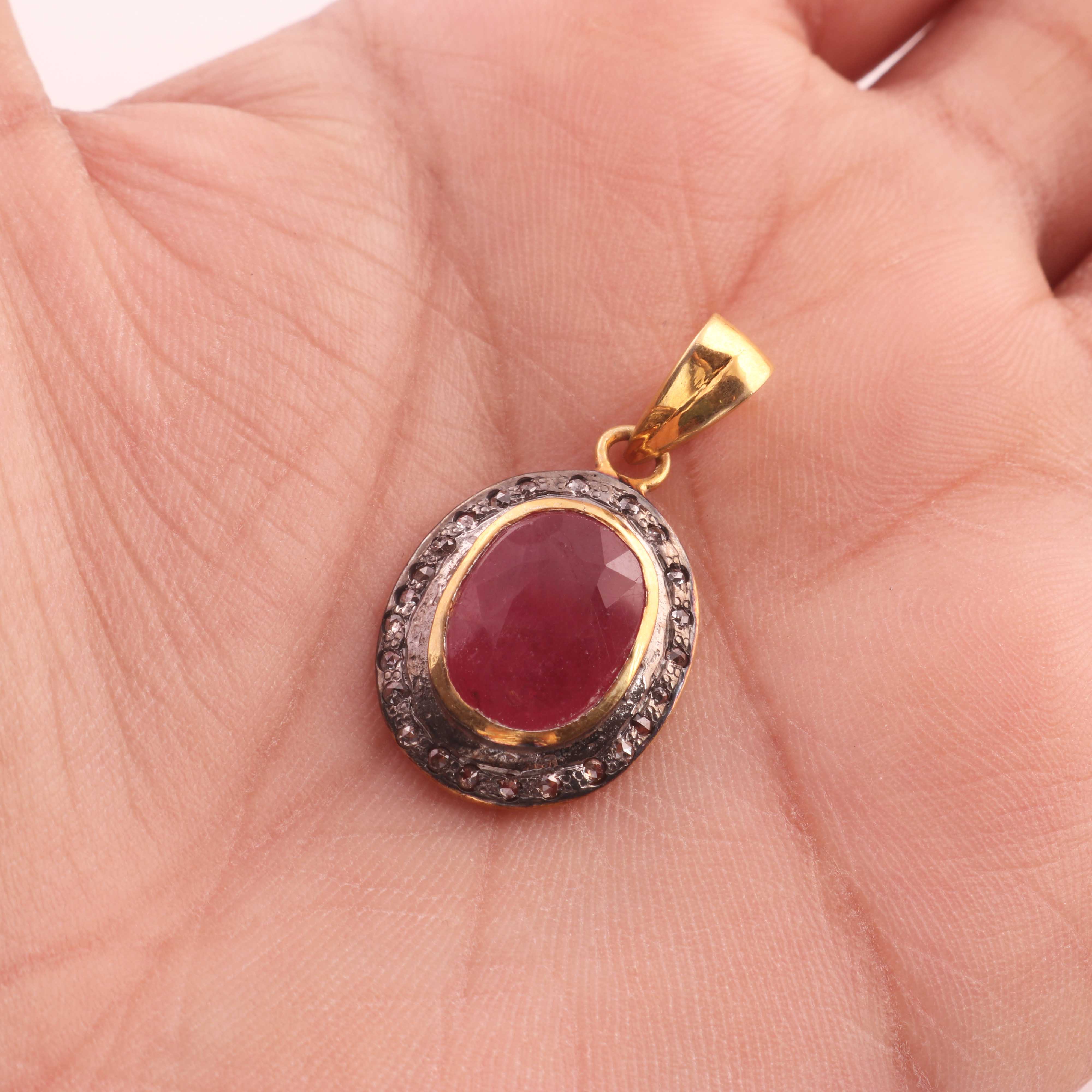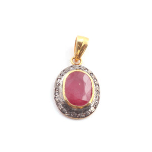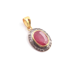 1 Pc Pave Diamond Pink Tourmaline Pendant Over 925 Sterling Vermeil - Pendant 24mmx16mm PD1996