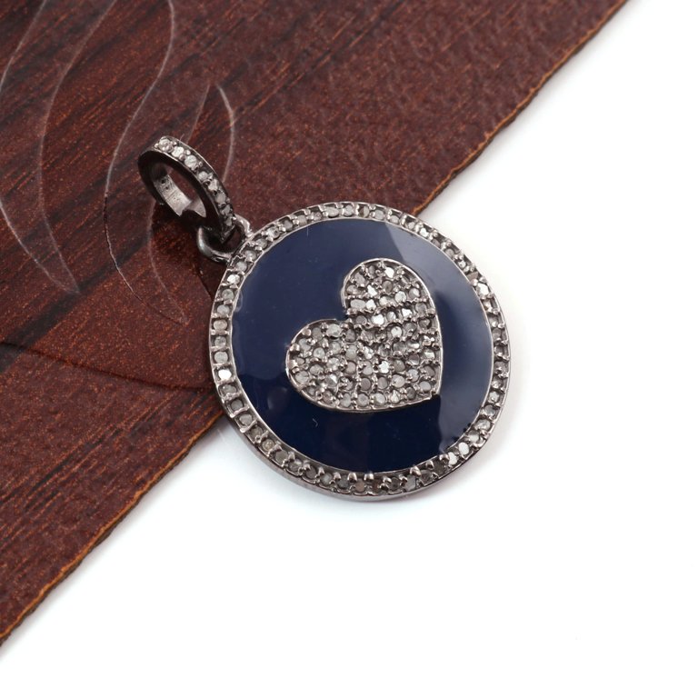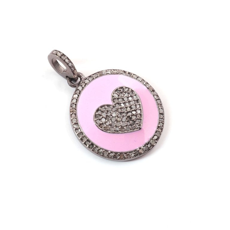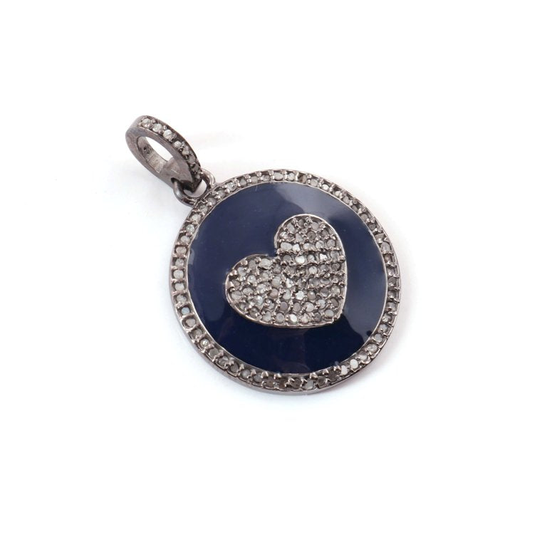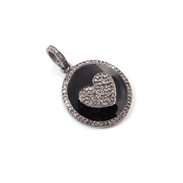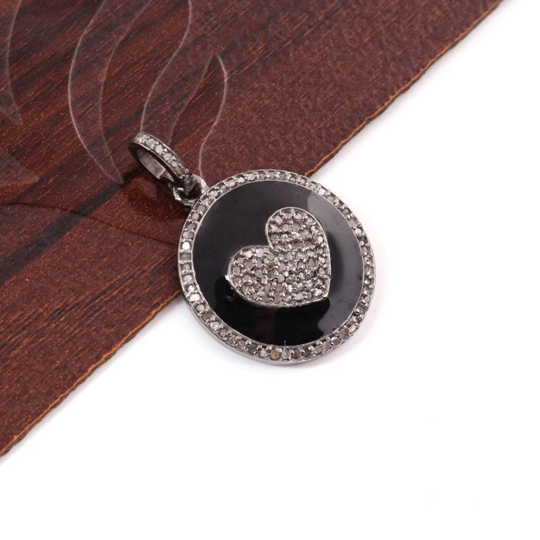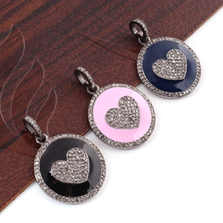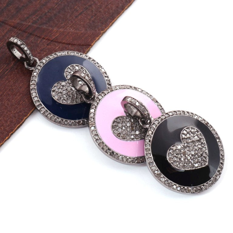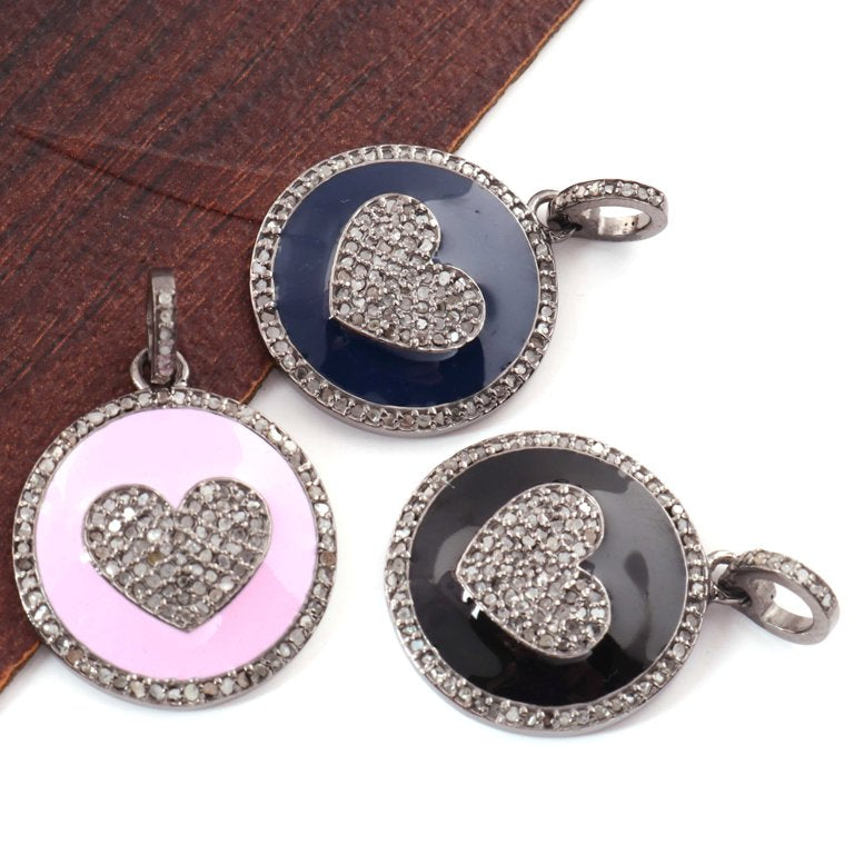 1 PC Pave Diamond Round Bakelite Heart Charm Over 925 sterling Silver Enamel Pendant - 23mmx21mm PD1789