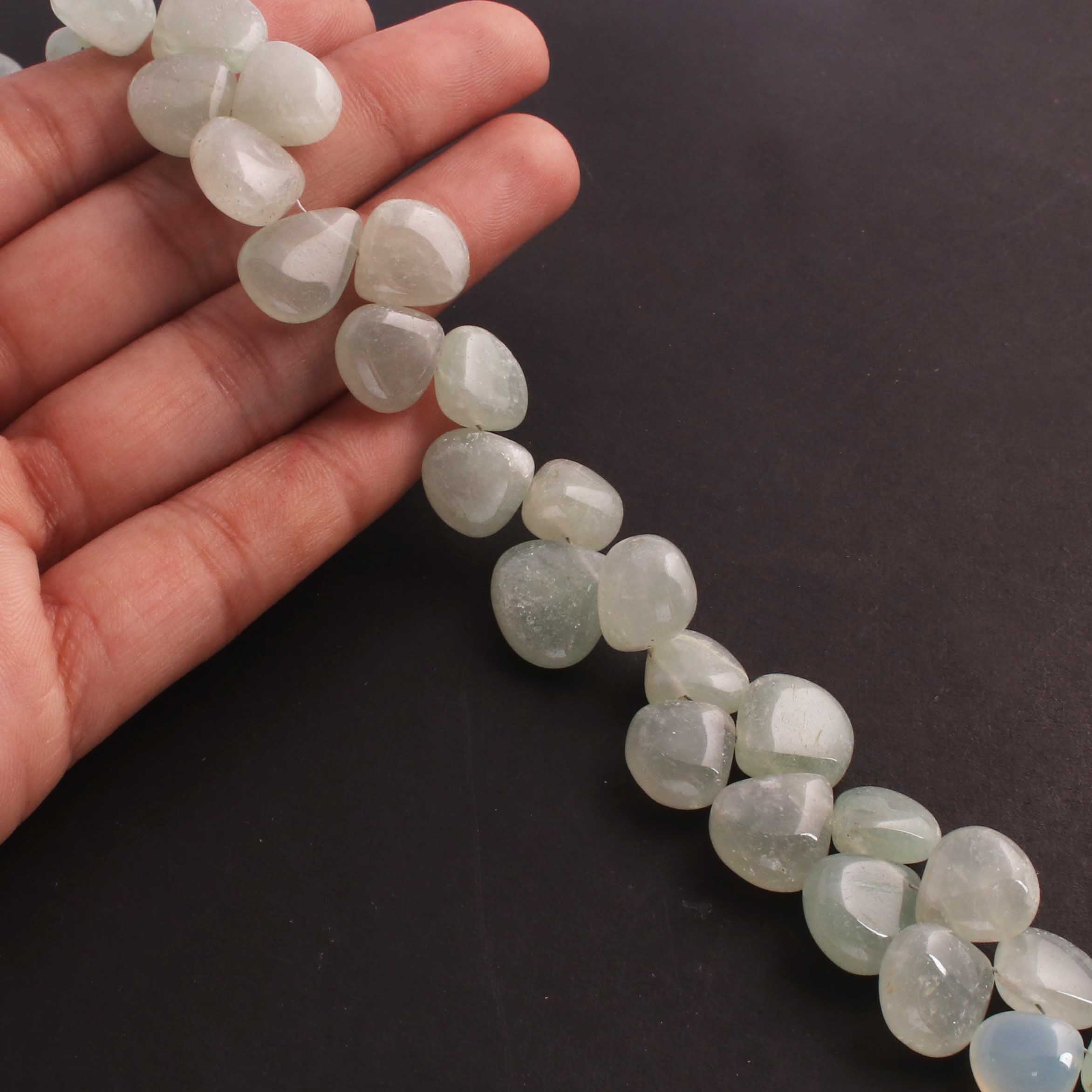 1 Strand Aquamarine Smooth Briolettes -Heart Shape Briolettes 11mmx10mm-14mmx14mm -11 Inches BR1357