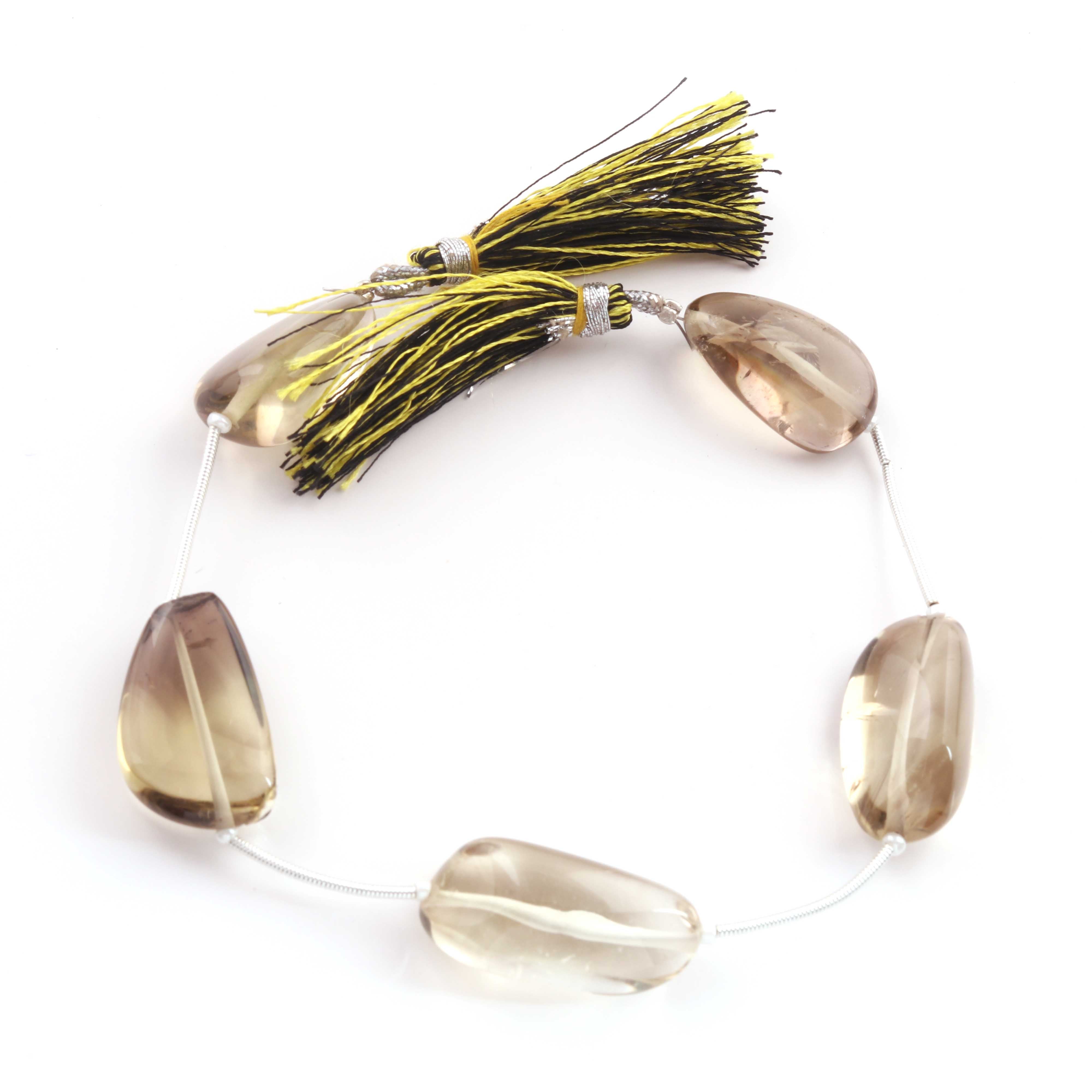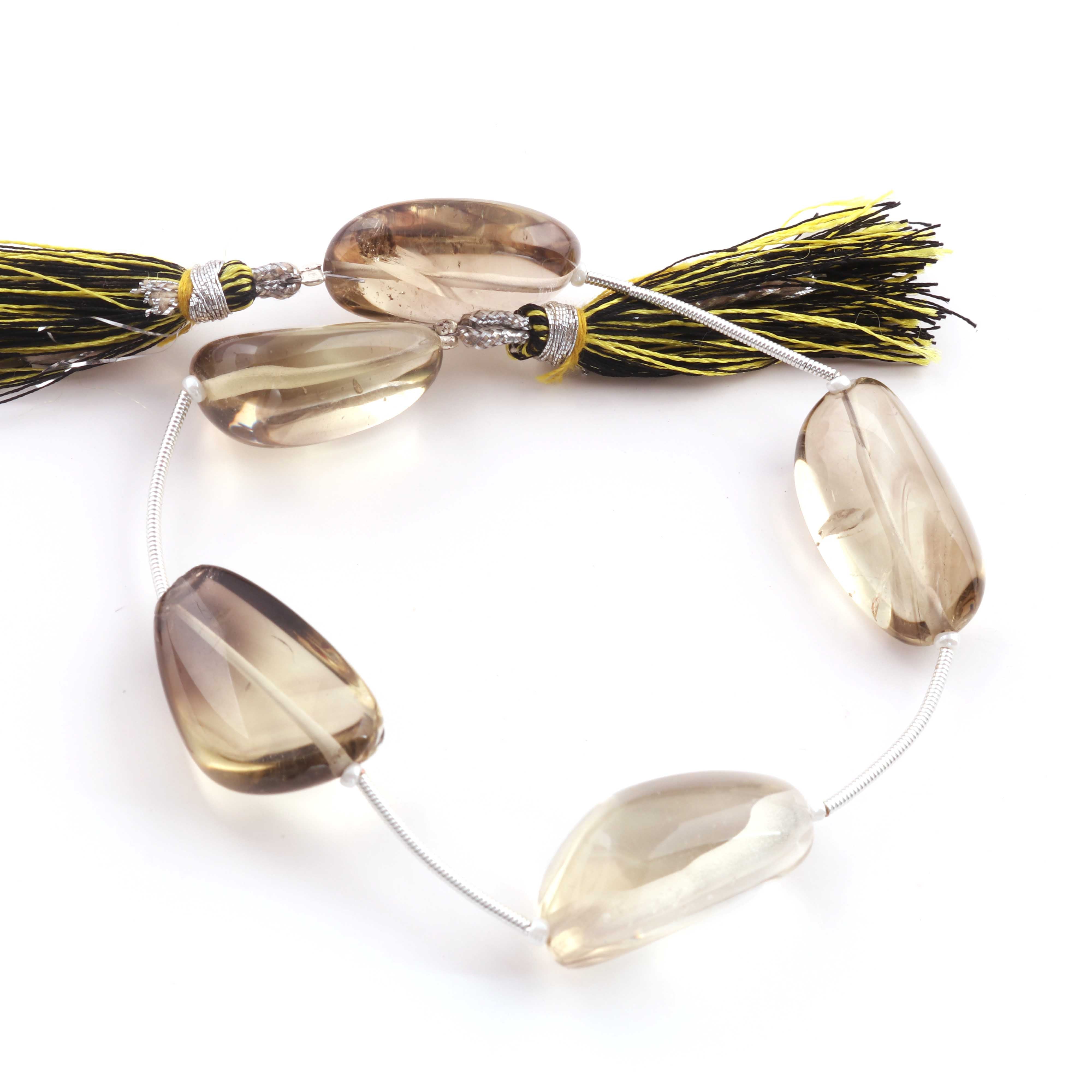 1 Strand Bio Lemon And Smoky Quartz Smooth Briolettes - Assorted Shape Beads 25mmx15mm ,8 Inches BR4404