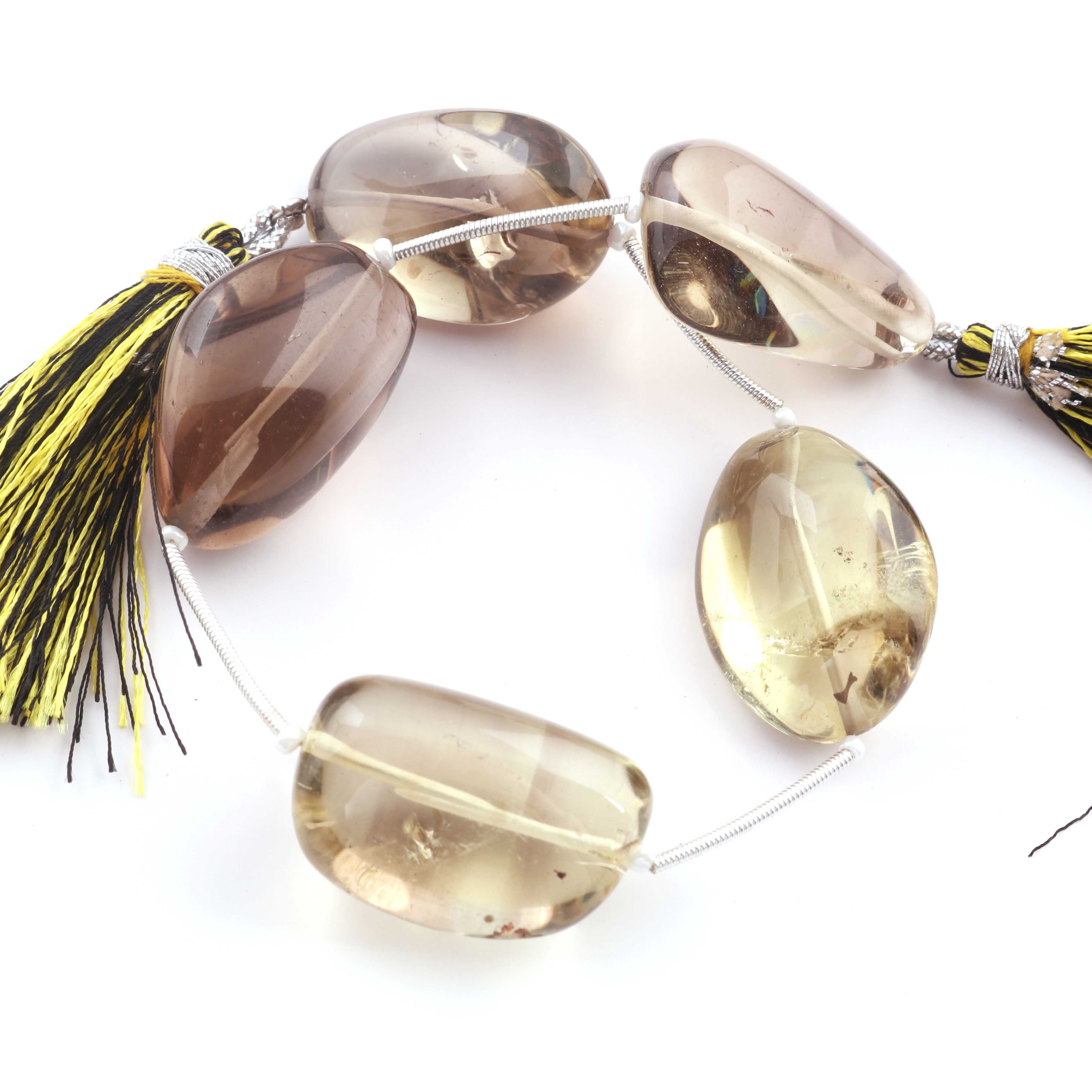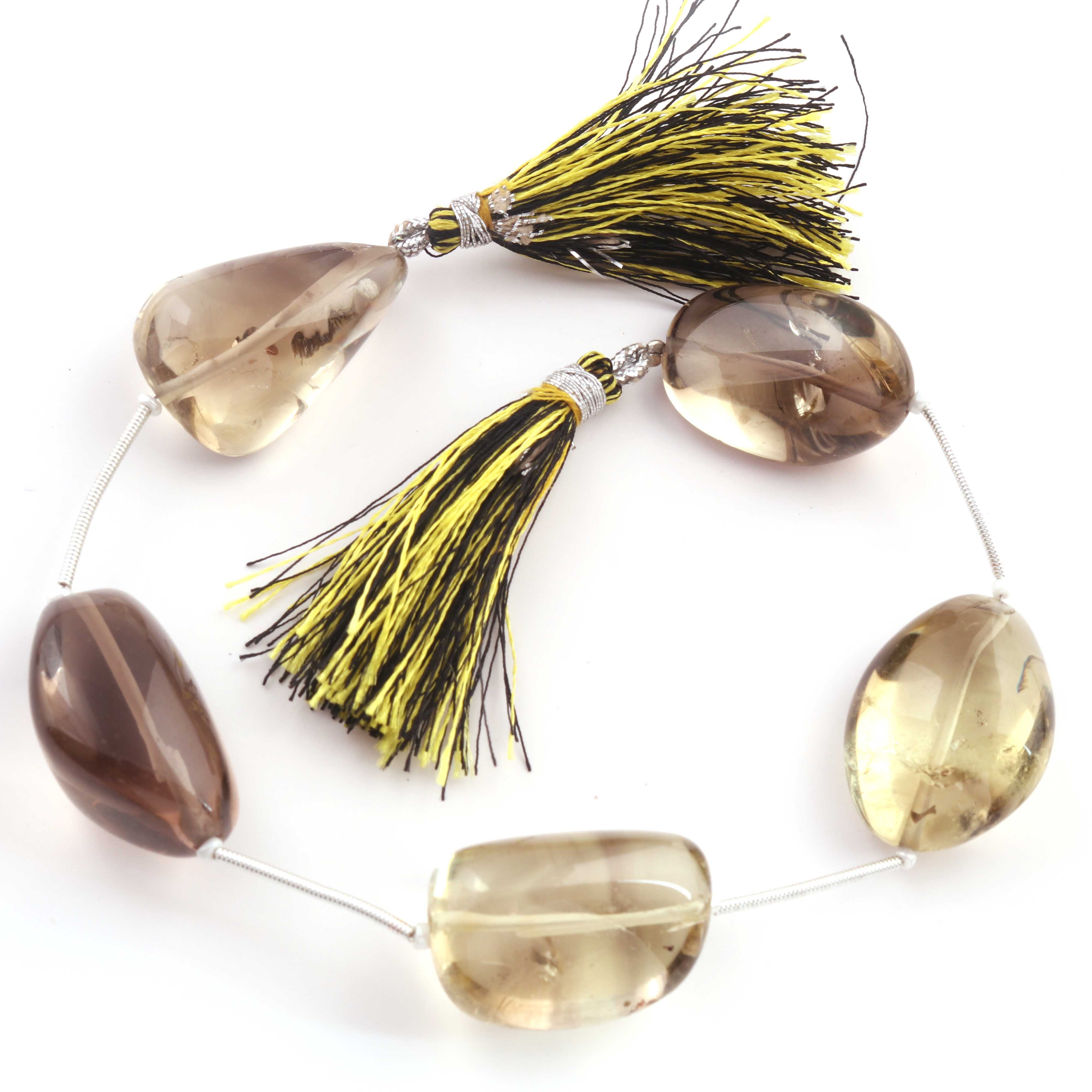 1 Strand Bio Lemon And Smoky Quartz Smooth Briolettes - Assorted Shape Beads 26mmx17mm ,8 Inches BR4406
