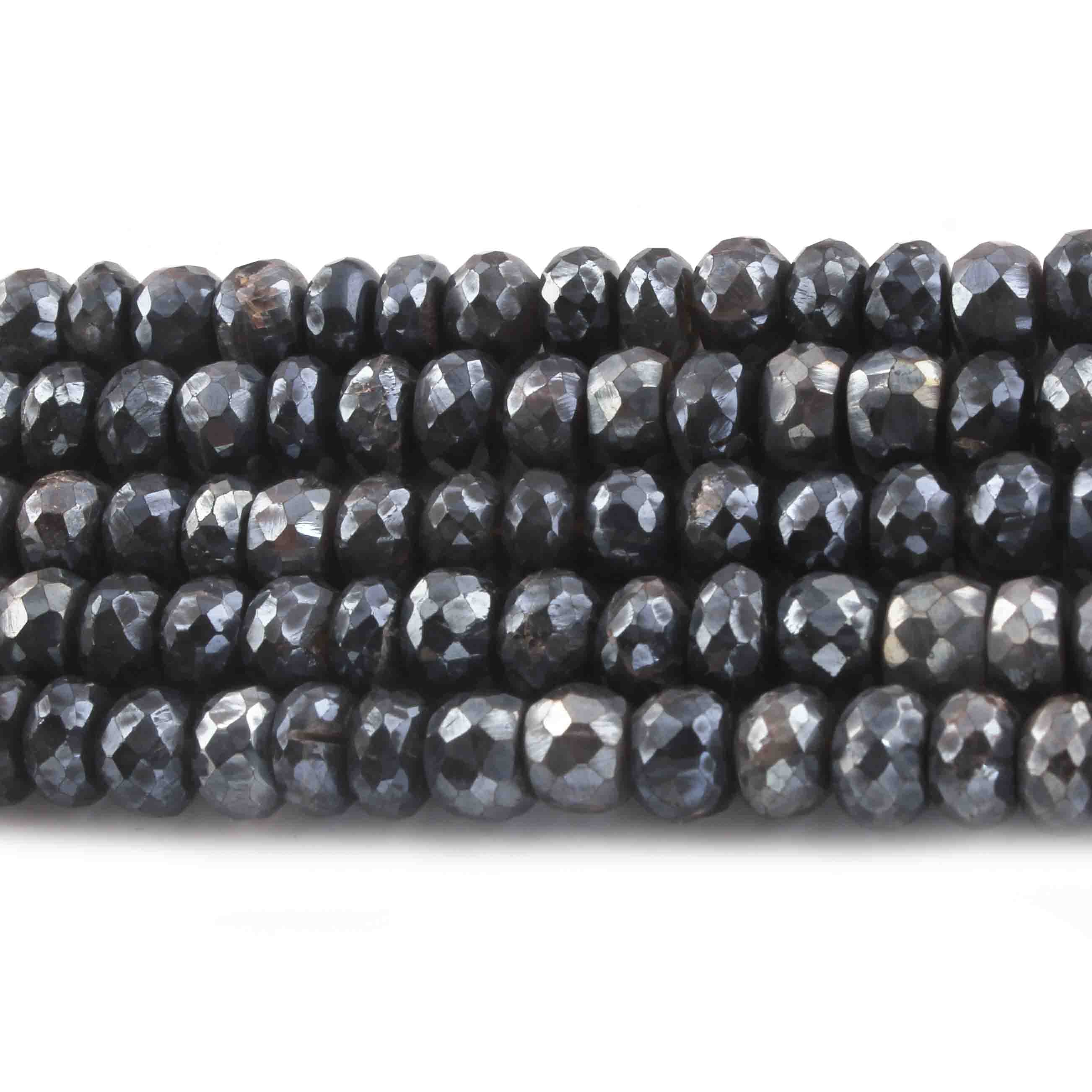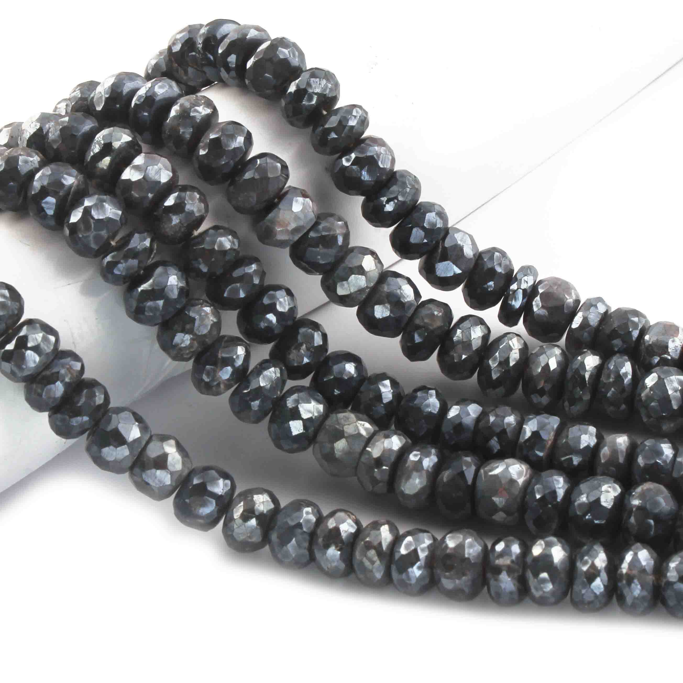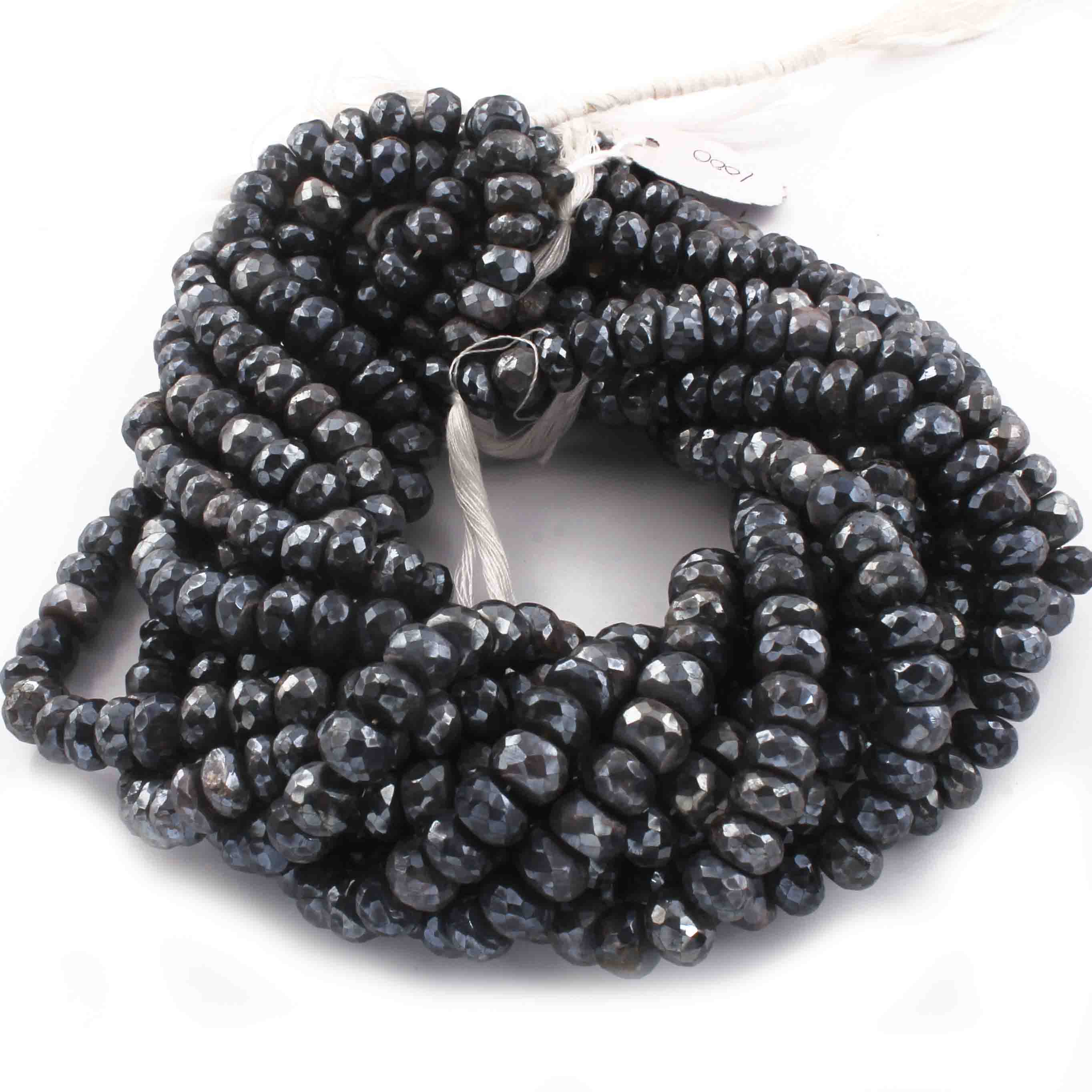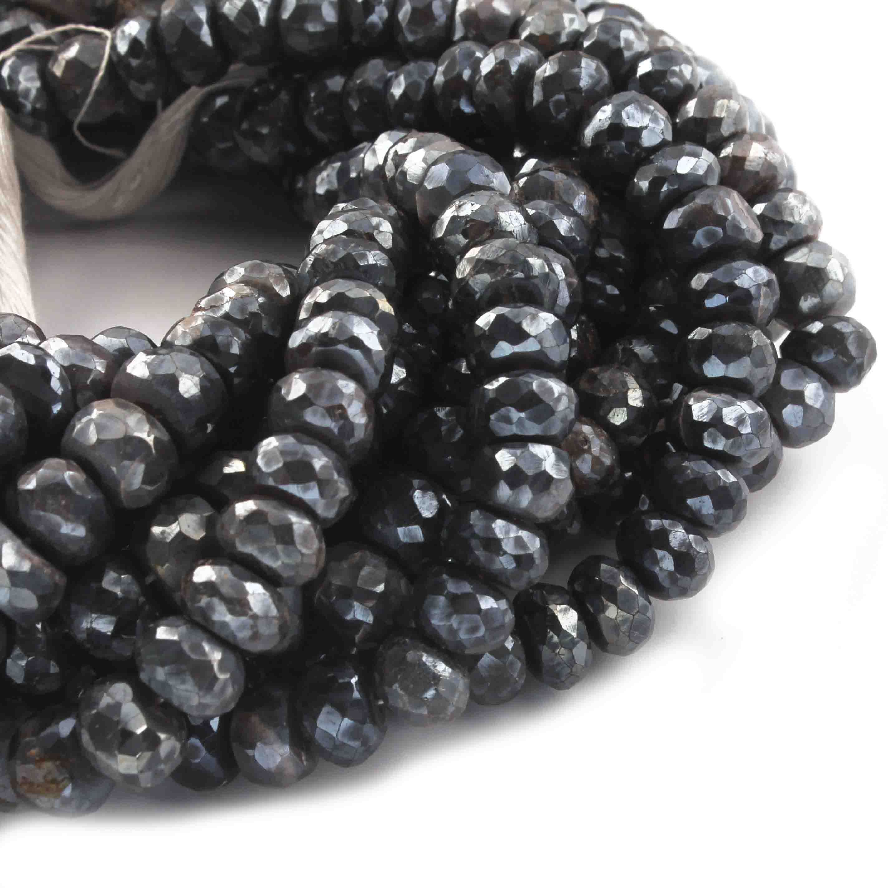 1 Strand Black Moonstone Silver Coated Faceted Rondelles - Gemstone Rondelles 8mm-9mm 14 Inches BR0669