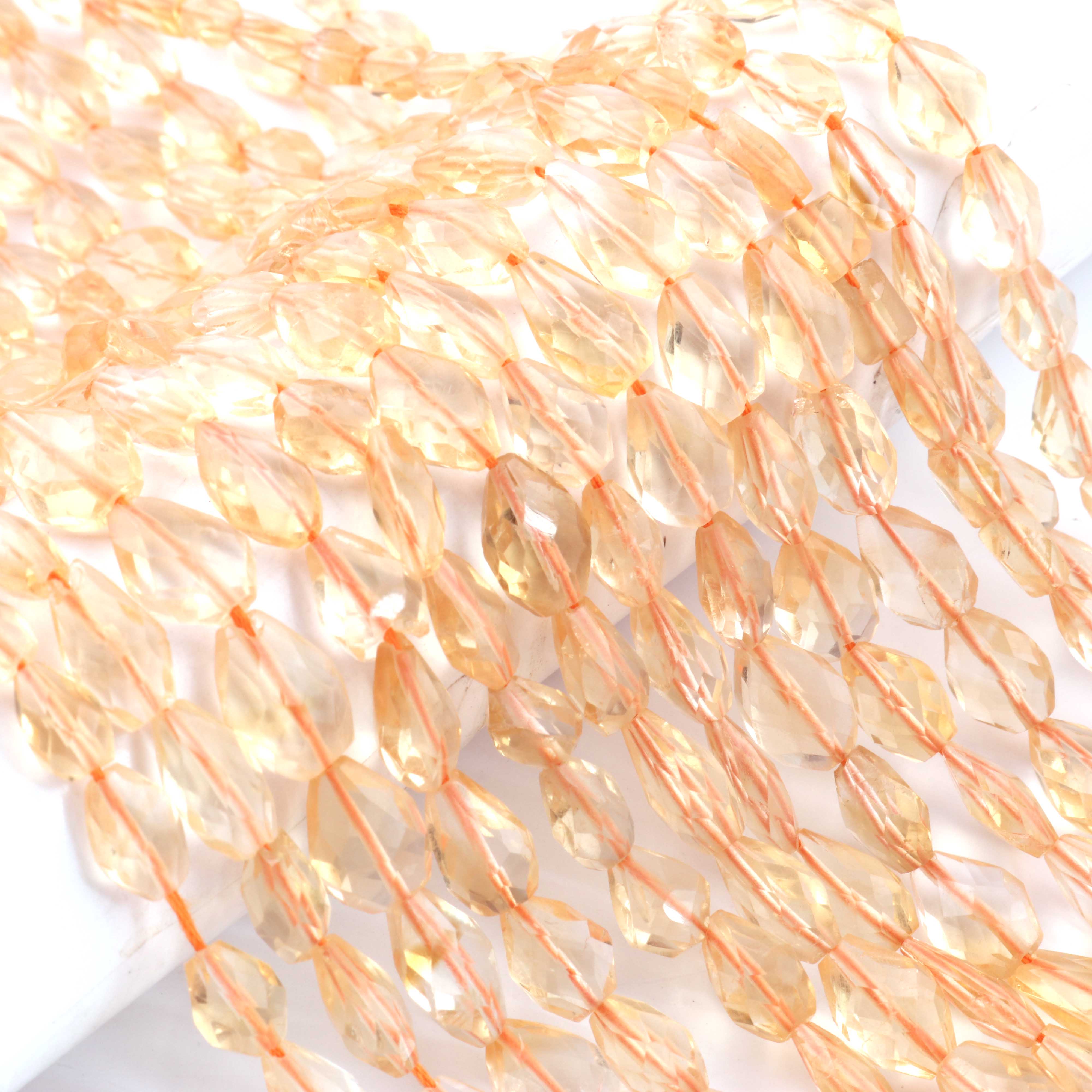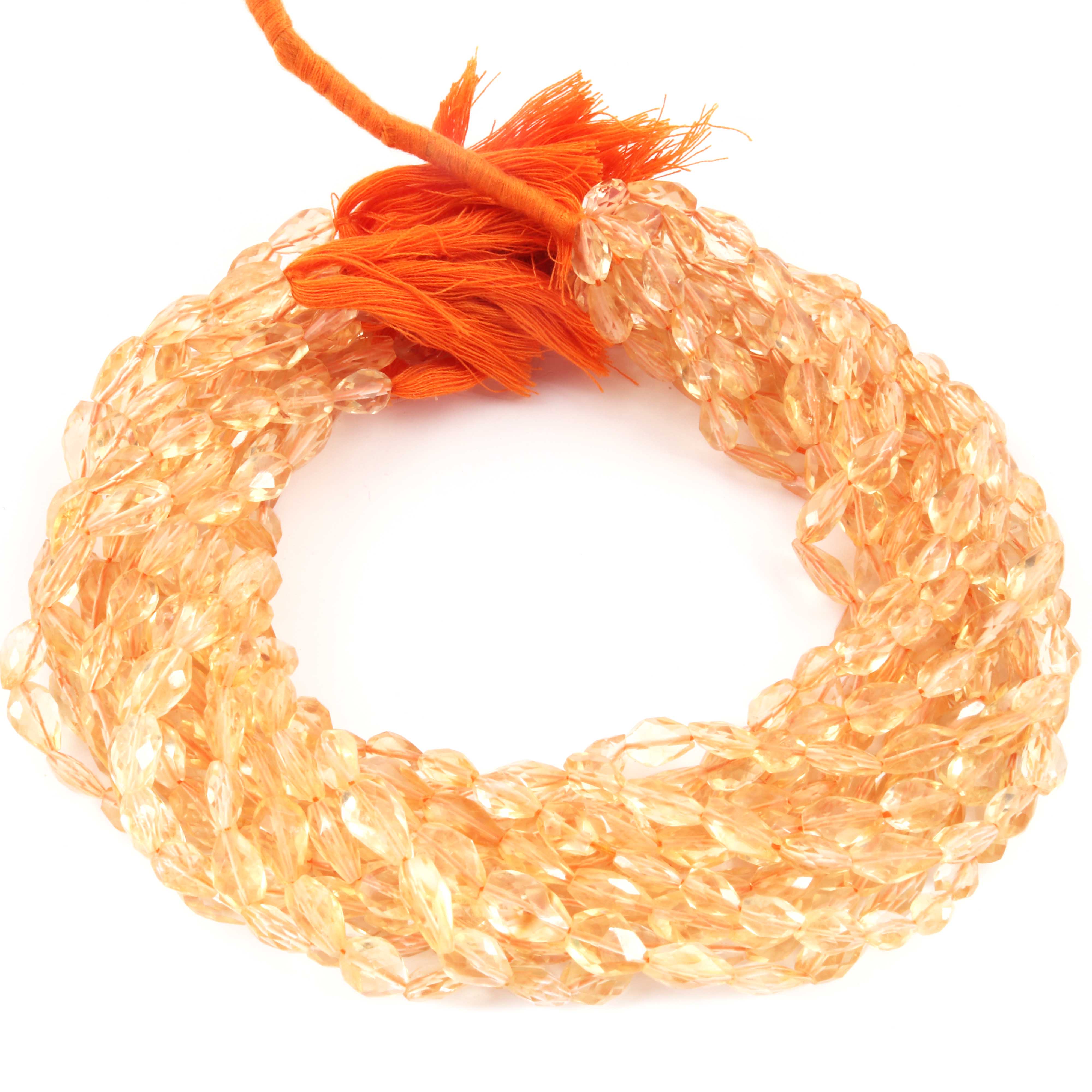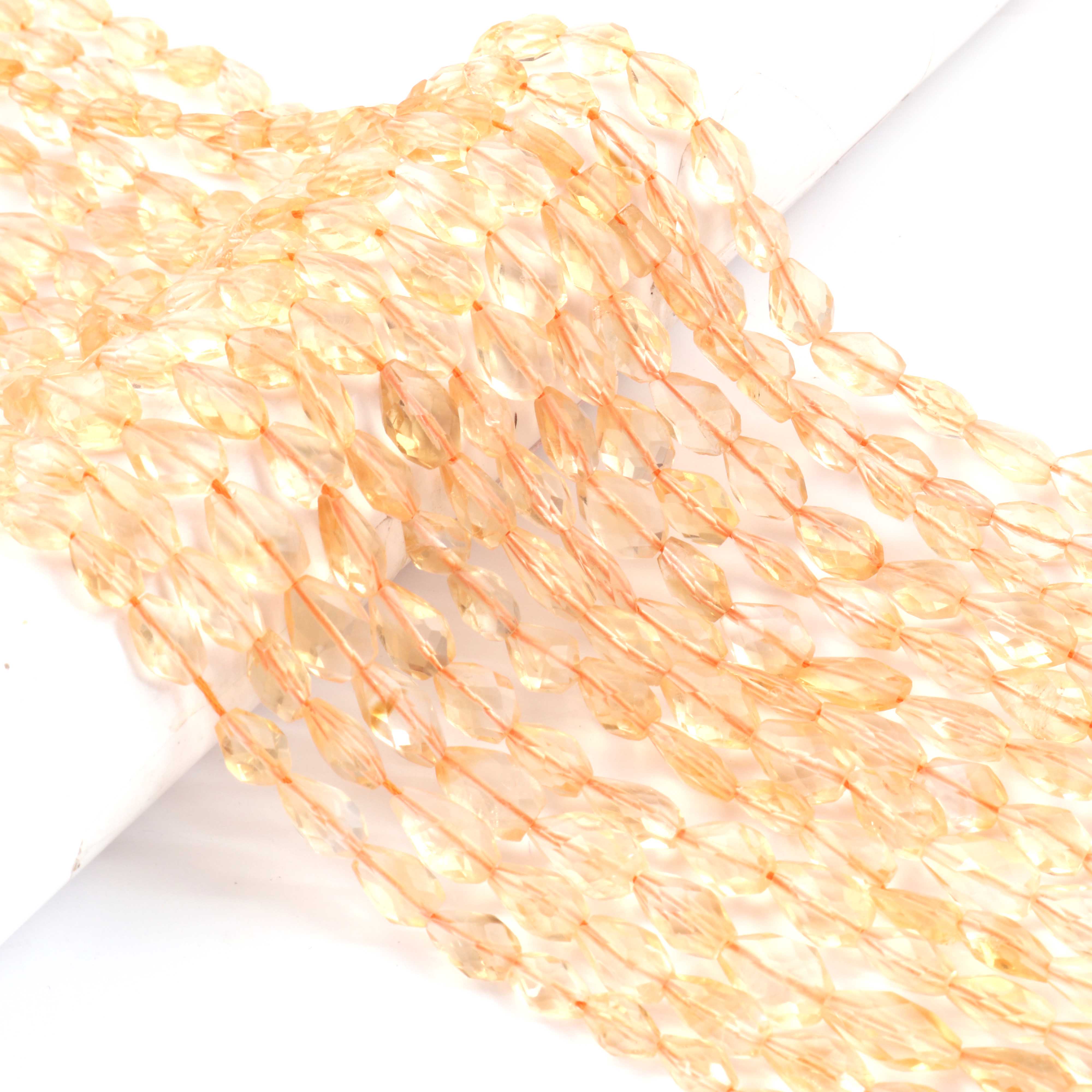 1 Strand Citrine Faceted Dholki Shape Briolettes -Semi Precious Briolettes Beads 10mmx8mm-9mmx5mm -12 Inches BR03876
